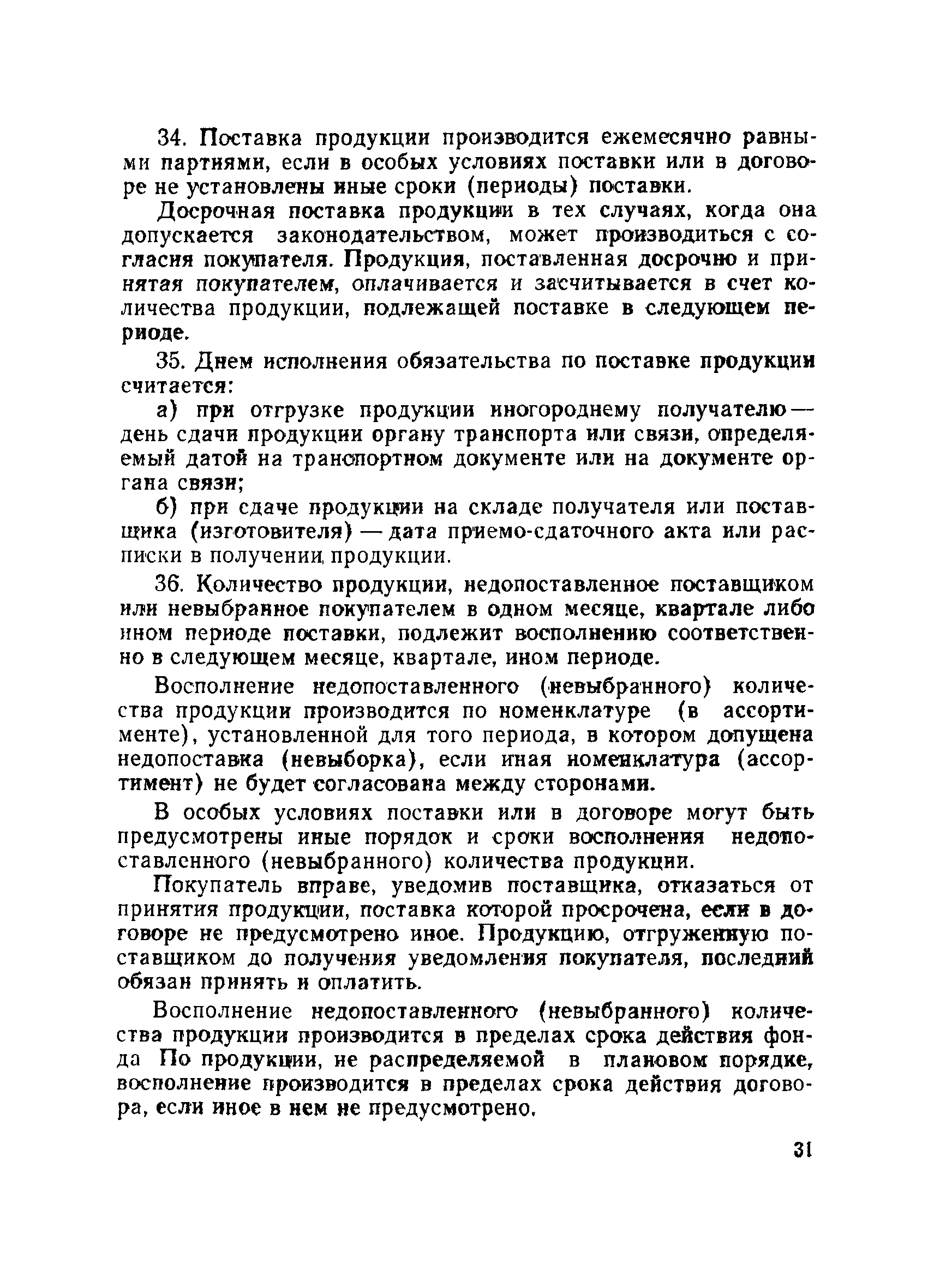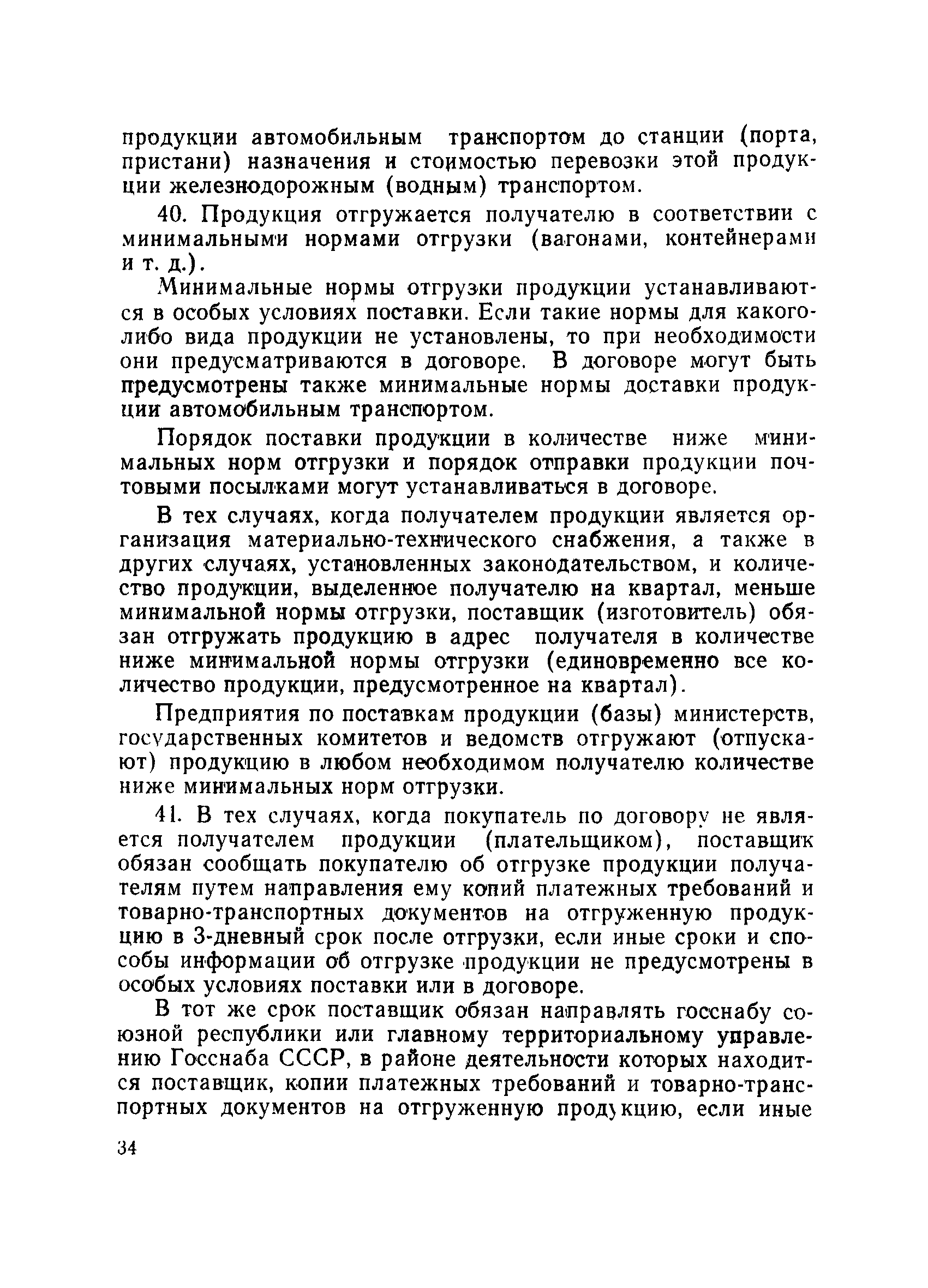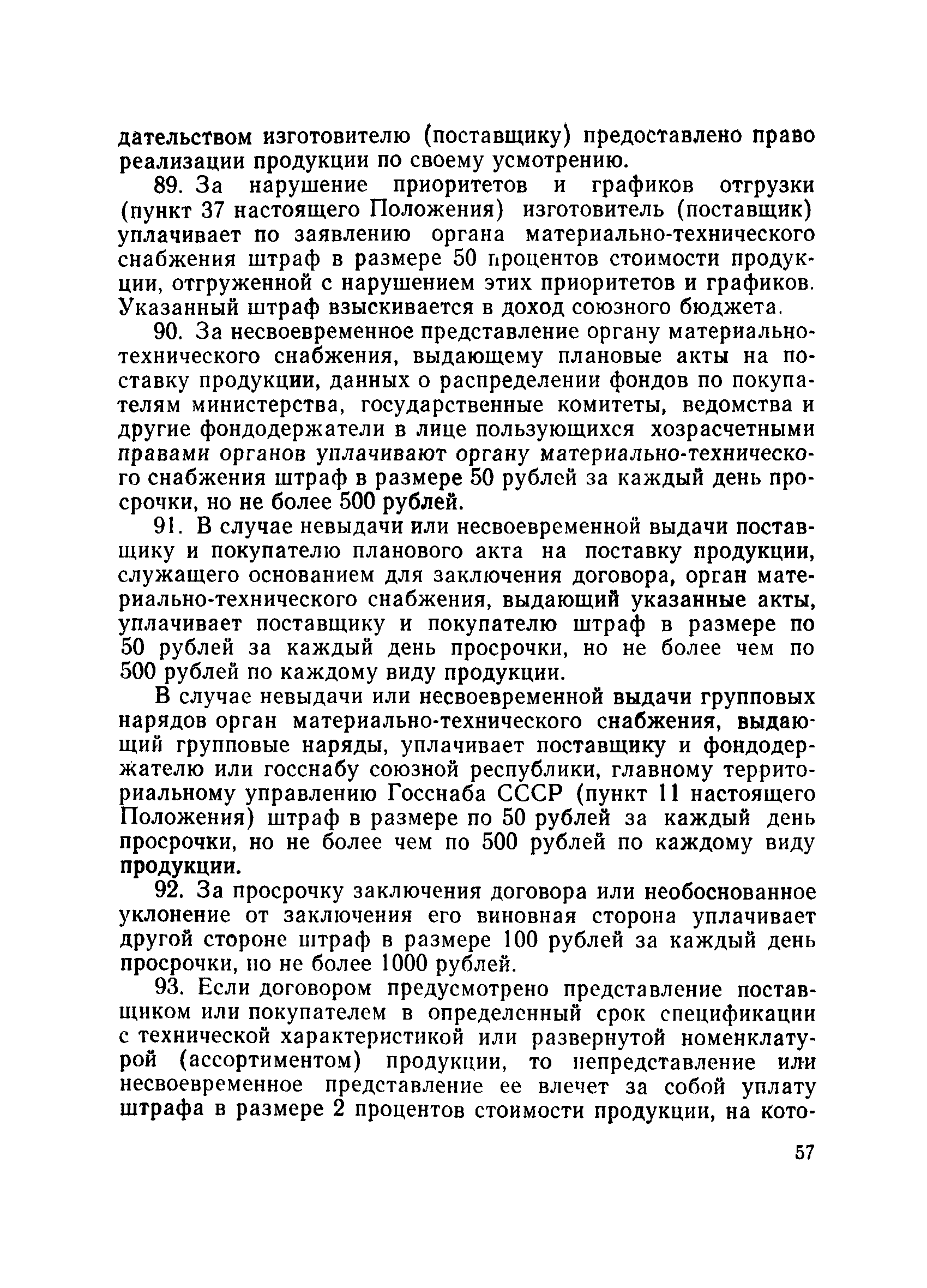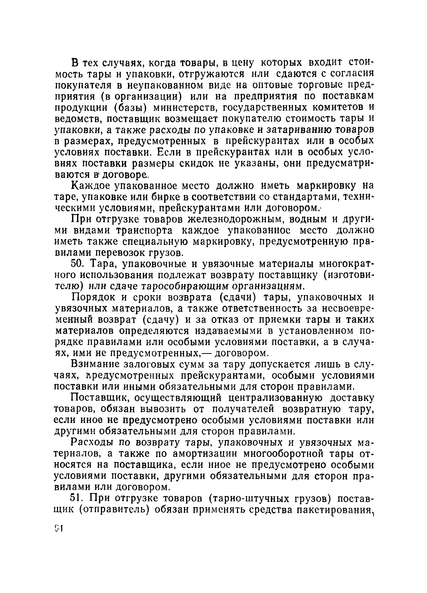 | Оглавление: | Положение о поставках продукции производственно-технического назначения I. Общие положения II. Плановые основания заключения договоров и организация хозяйственных связей III. Порядок и сроки заключения договоров IV. Количество, сроки и порядок поставки продукции V. Качество и комплектность продукции VI. Тара, упаковка и средства пакетирования продукции VII. Цены и порядок расчетов VIII. Имущественная ответственность Положение о поставках товаров народного потребления I. Общие положения II. Плановые основания заключения договоров и организация хозяйственных связей III. Порядок и сроки заключения договоров на поставку товаров IV. Количество, ассортимент, сроки и порядок поставки товаров V. Качество и комплектность товаров VI. Тара, упаковка и средства пакетирования товаров VII. Цены и порядок расчетов VIII. Имущественная ответственность Перечень утративших силу решений Правительства СССР Изменения, которые вносятся в решения Правительства СССР |