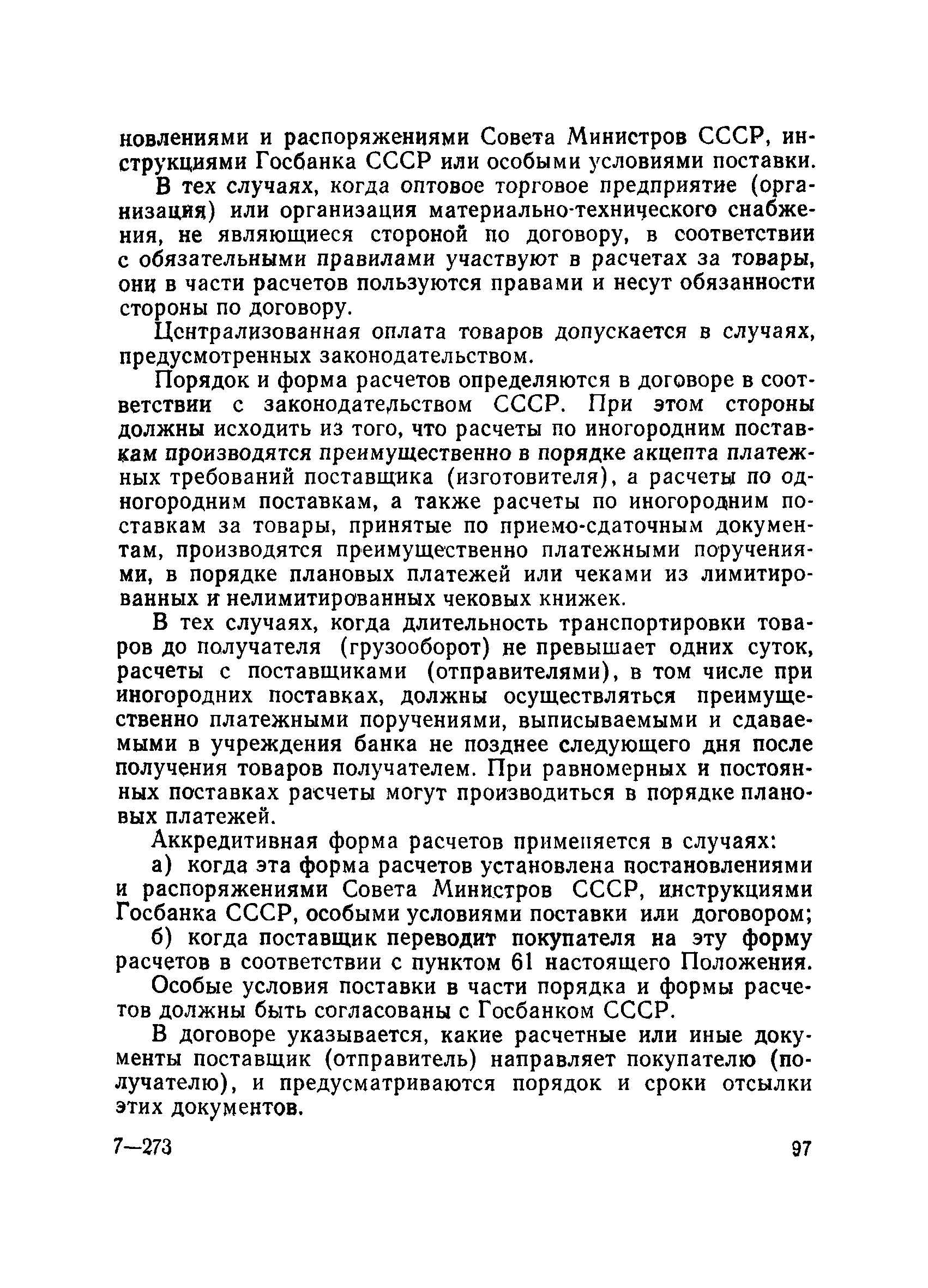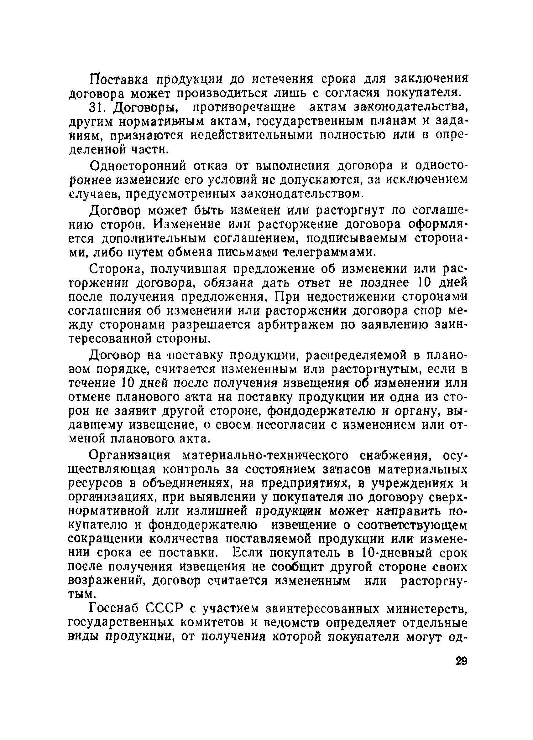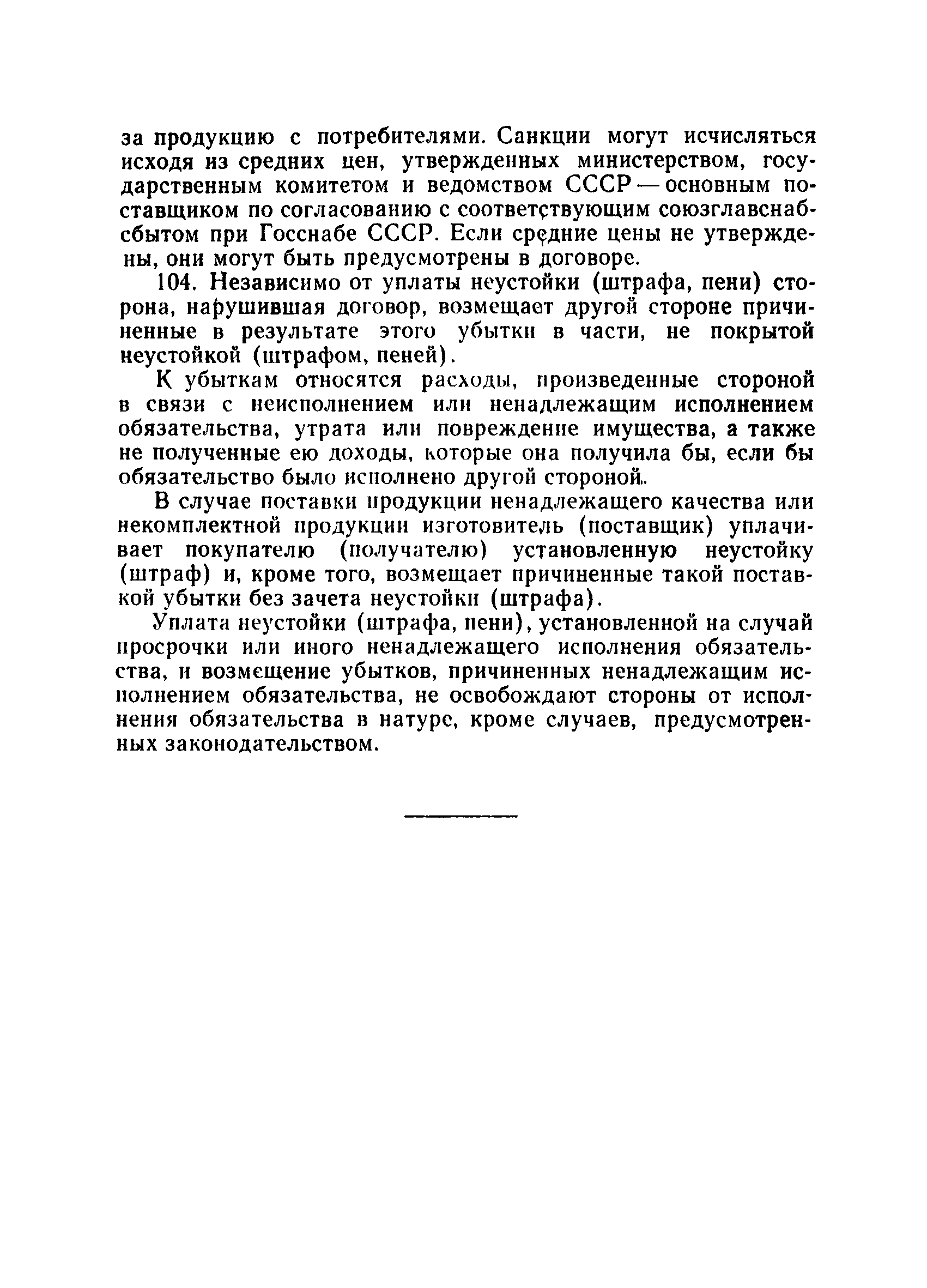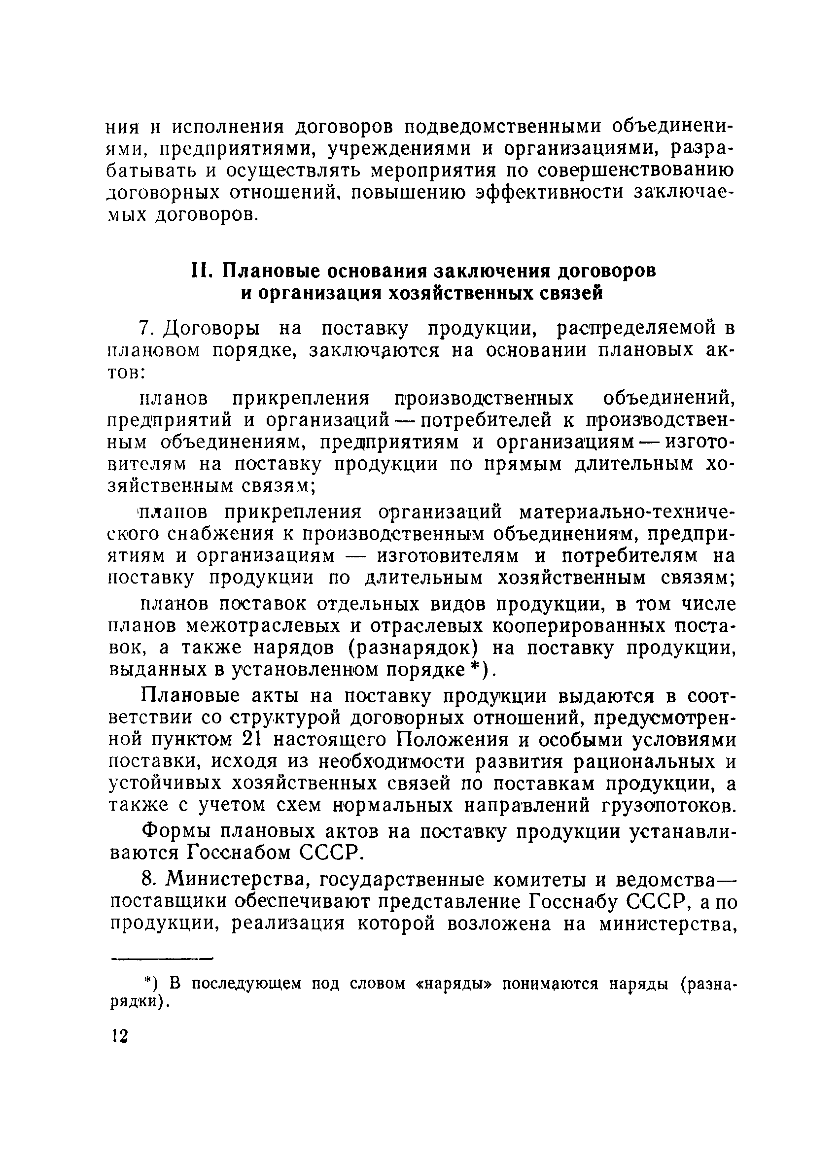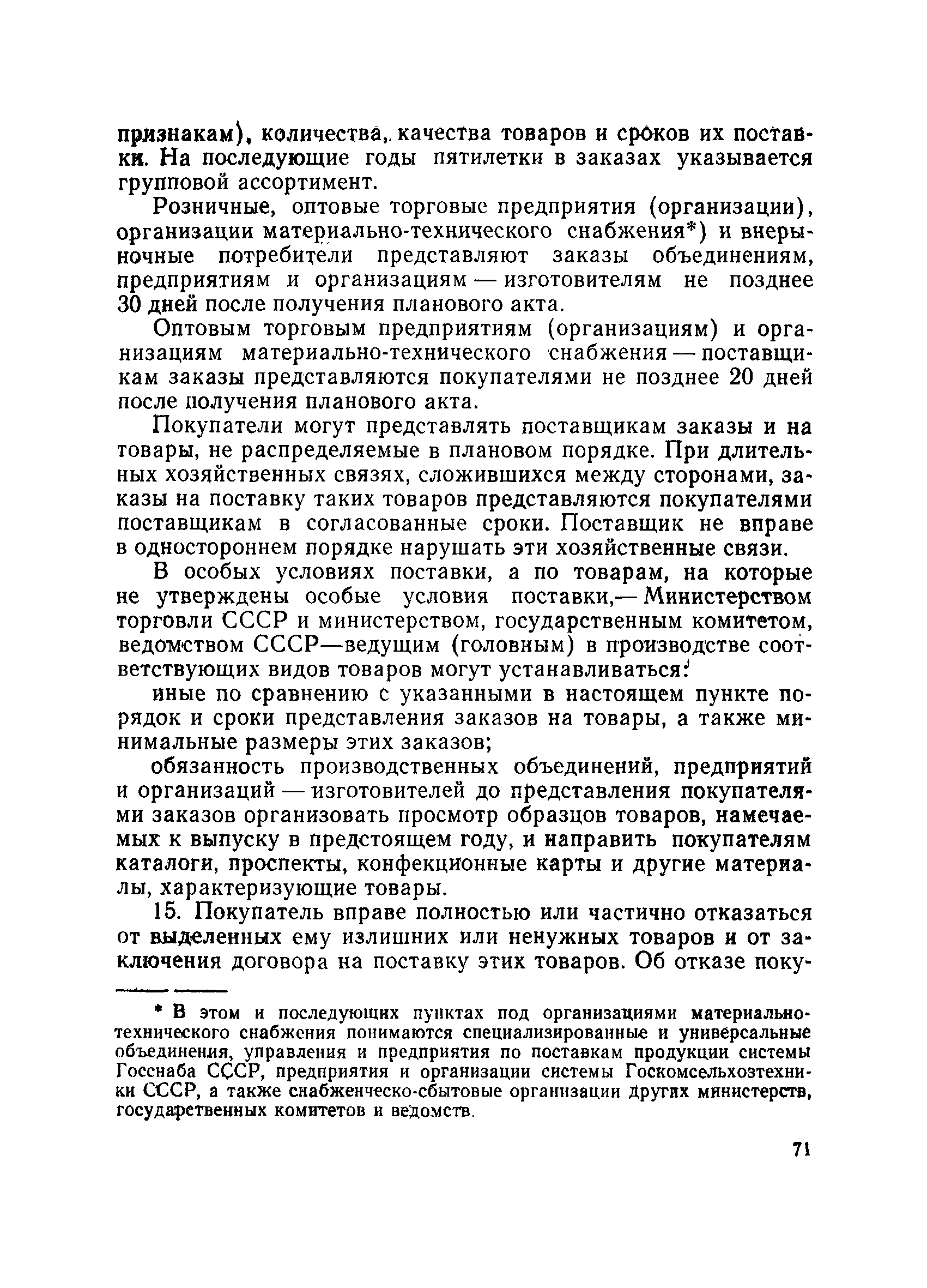 | Оглавление: | Положение о поставках продукции производственно-технического назначения I. Общие положения II. Плановые основания заключения договоров и организация хозяйственных связей III. Порядок и сроки заключения договоров IV. Количество, сроки и порядок поставки продукции V. Качество и комплектность продукции VI. Тара, упаковка и средства пакетирования продукции VII. Цены и порядок расчетов VIII. Имущественная ответственность Положение о поставках товаров народного потребления I. Общие положения II. Плановые основания заключения договоров и организация хозяйственных связей III. Порядок и сроки заключения договоров на поставку товаров IV. Количество, ассортимент, сроки и порядок поставки товаров V. Качество и комплектность товаров VI. Тара, упаковка и средства пакетирования товаров VII. Цены и порядок расчетов VIII. Имущественная ответственность Перечень утративших силу решений Правительства СССР Изменения, которые вносятся в решения Правительства СССР |