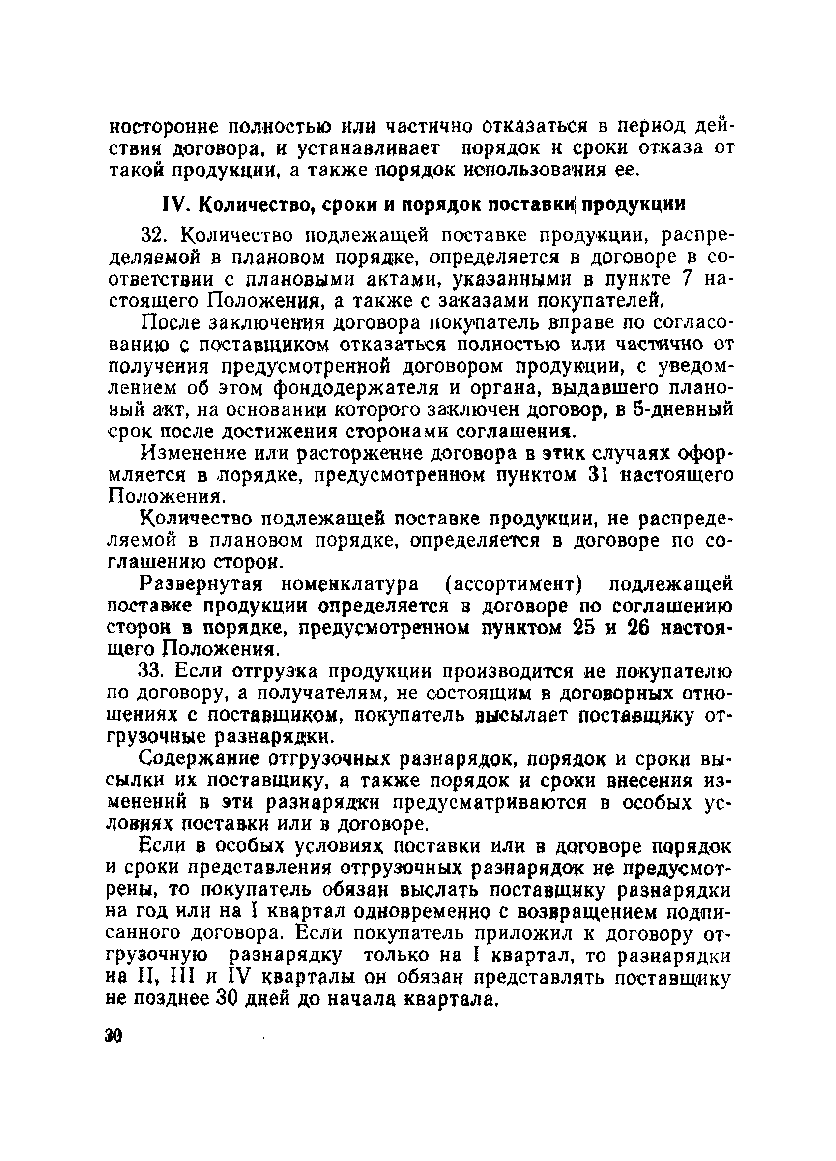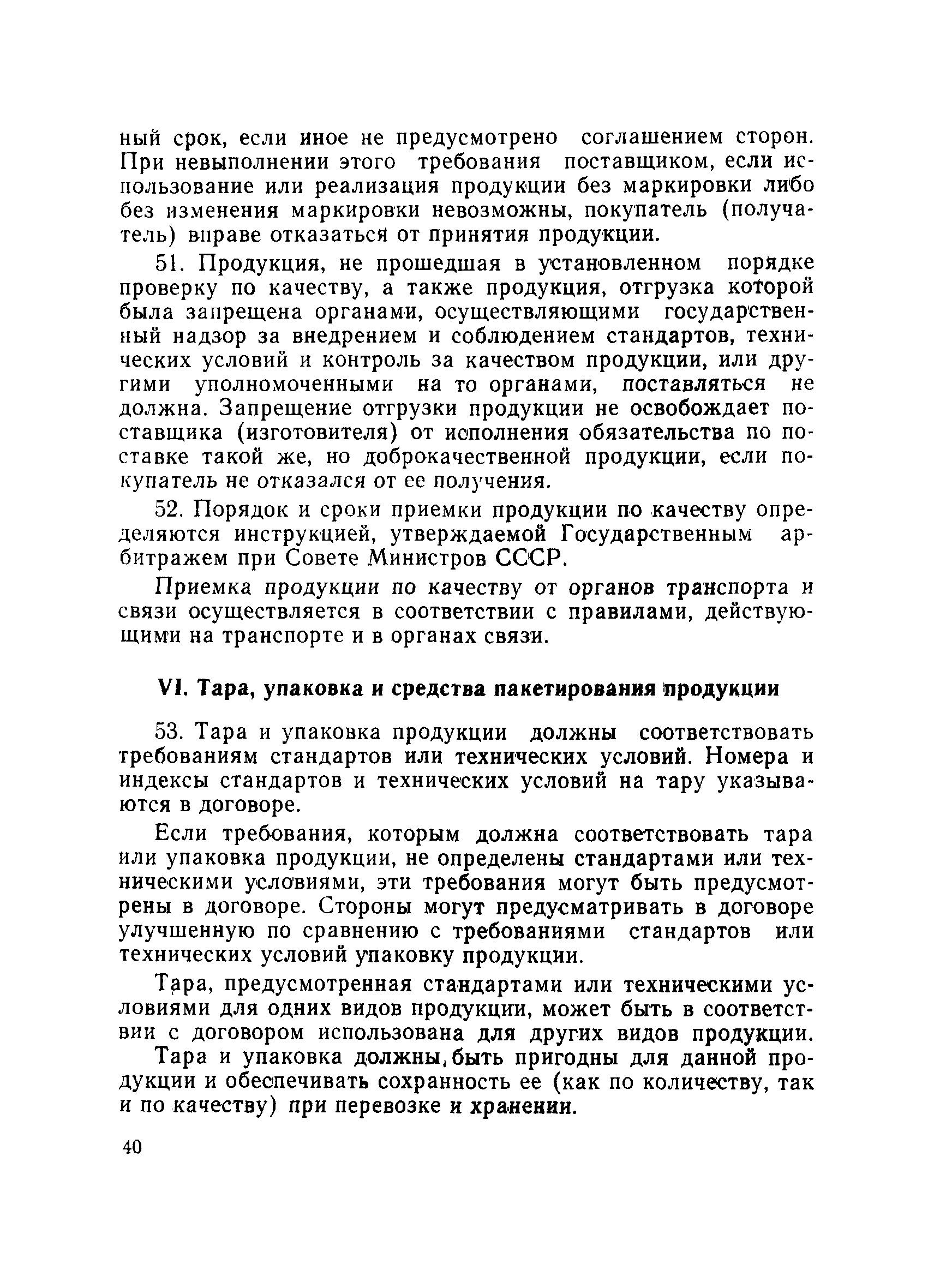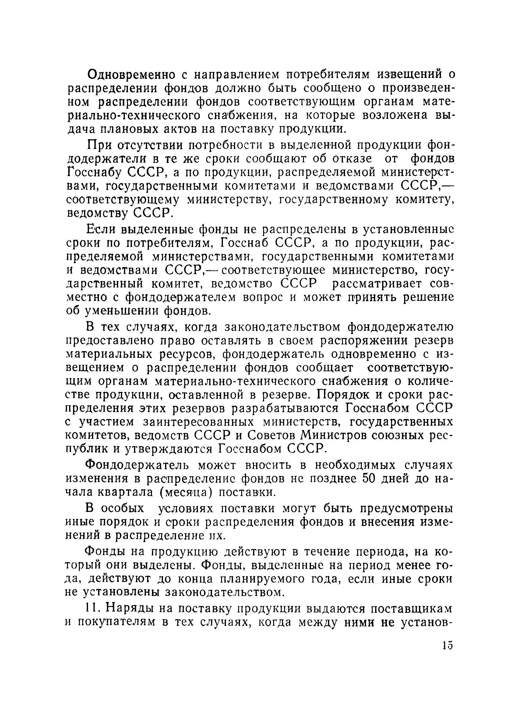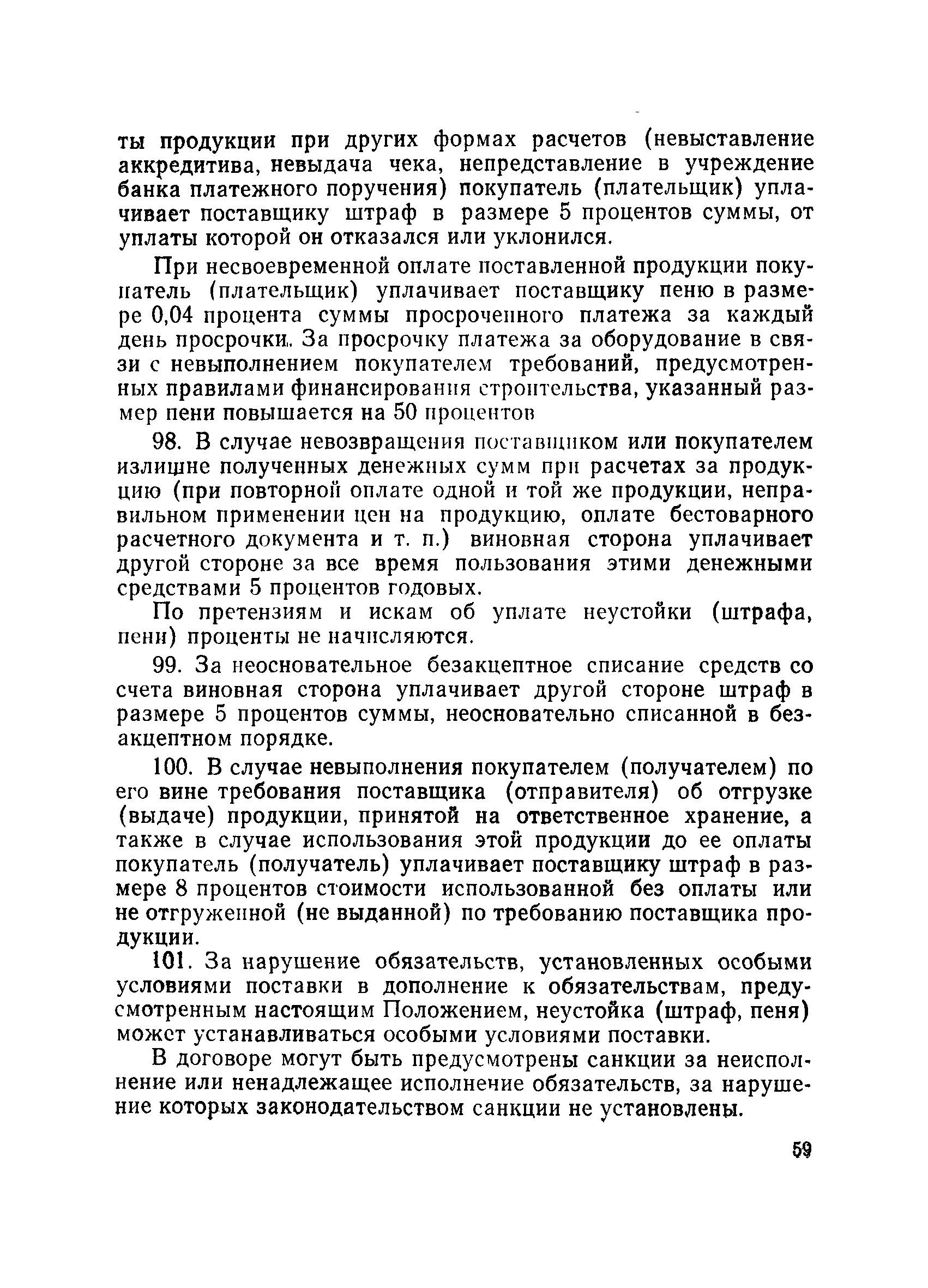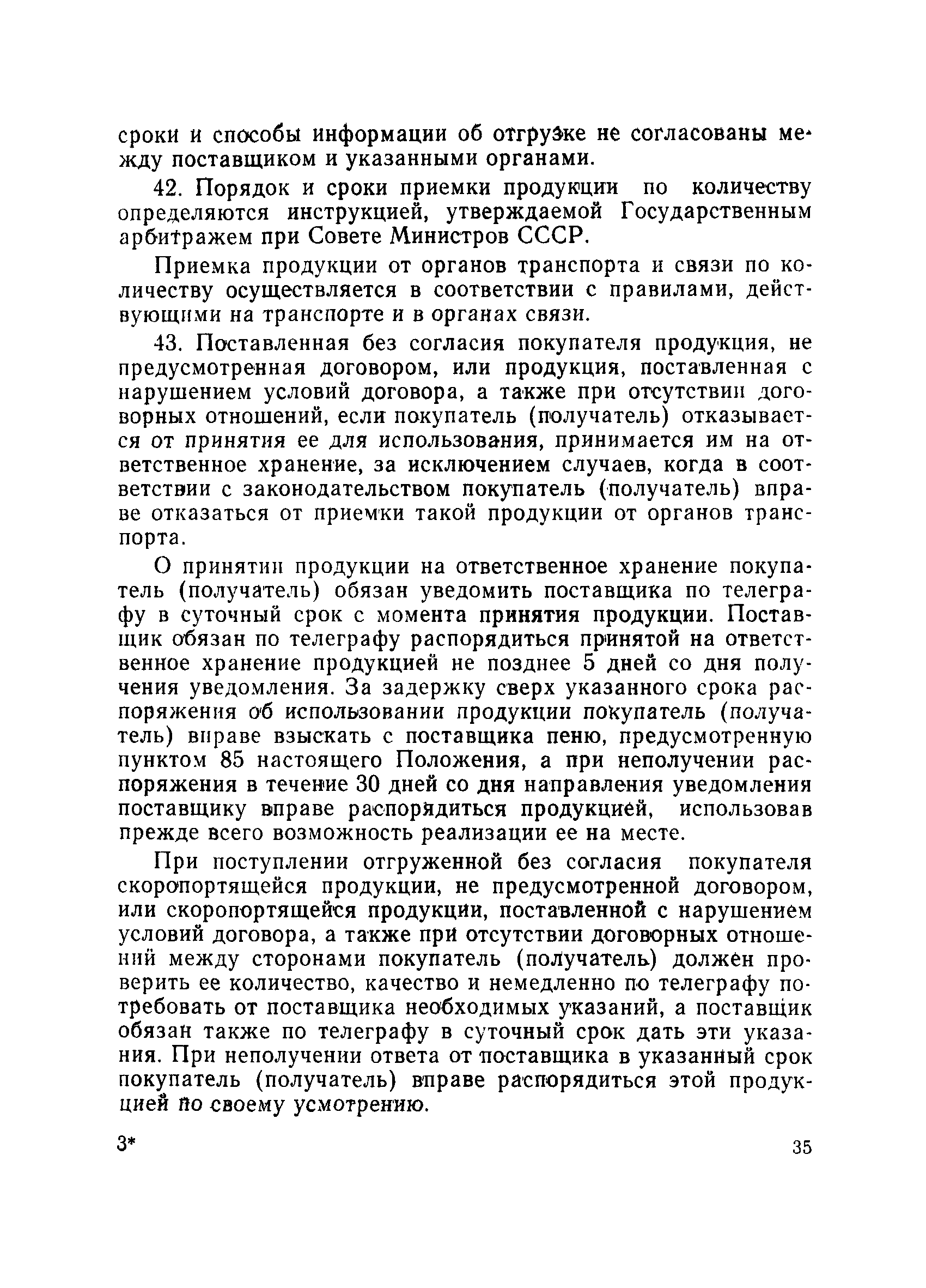 | Оглавление: | Положение о поставках продукции производственно-технического назначения I. Общие положения II. Плановые основания заключения договоров и организация хозяйственных связей III. Порядок и сроки заключения договоров IV. Количество, сроки и порядок поставки продукции V. Качество и комплектность продукции VI. Тара, упаковка и средства пакетирования продукции VII. Цены и порядок расчетов VIII. Имущественная ответственность Положение о поставках товаров народного потребления I. Общие положения II. Плановые основания заключения договоров и организация хозяйственных связей III. Порядок и сроки заключения договоров на поставку товаров IV. Количество, ассортимент, сроки и порядок поставки товаров V. Качество и комплектность товаров VI. Тара, упаковка и средства пакетирования товаров VII. Цены и порядок расчетов VIII. Имущественная ответственность Перечень утративших силу решений Правительства СССР Изменения, которые вносятся в решения Правительства СССР |