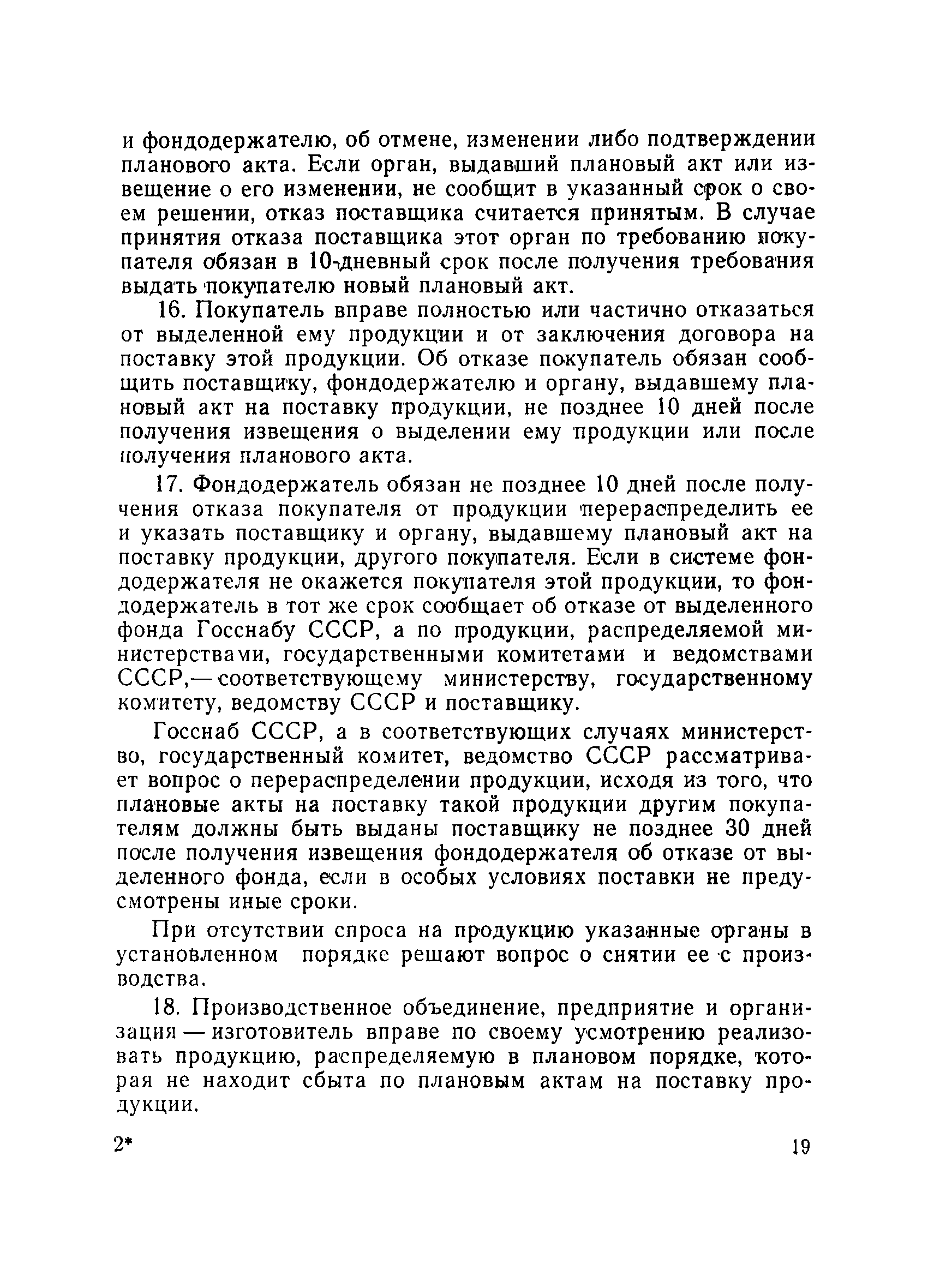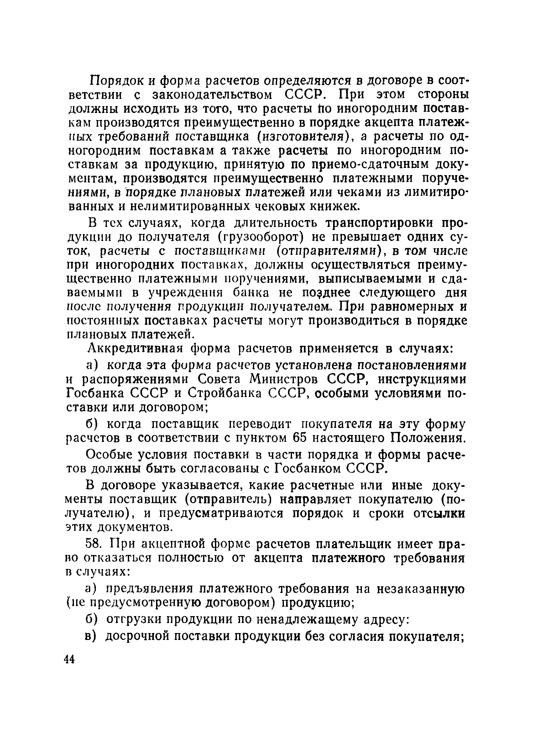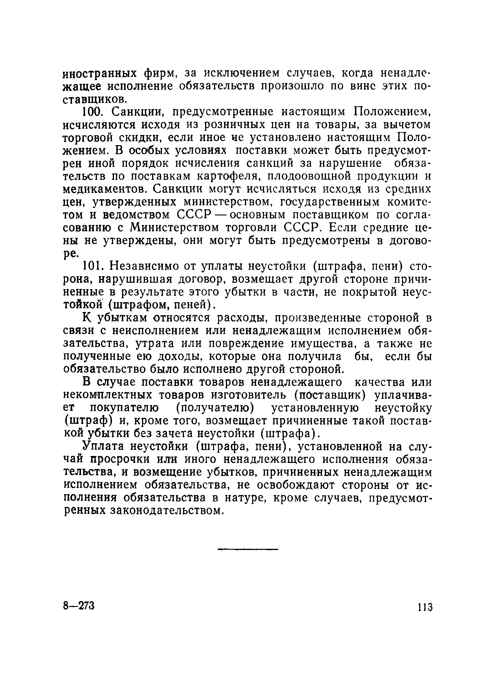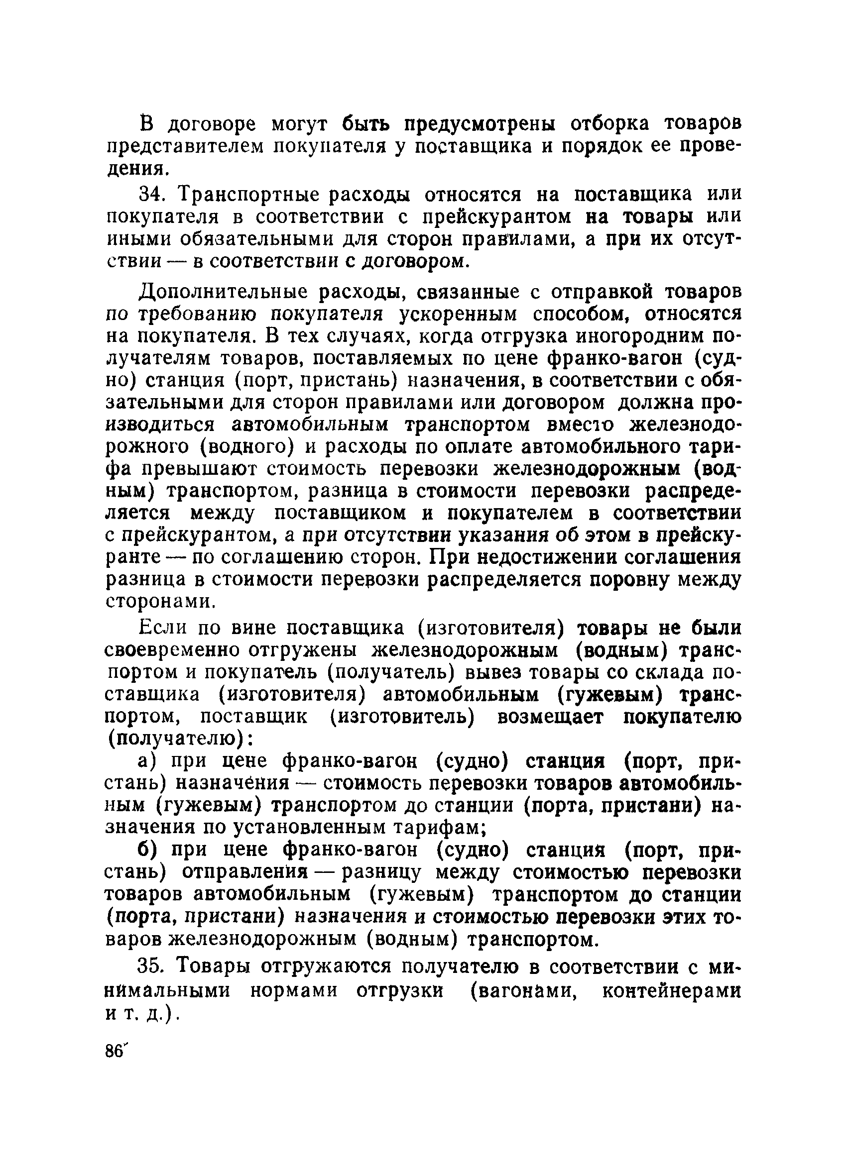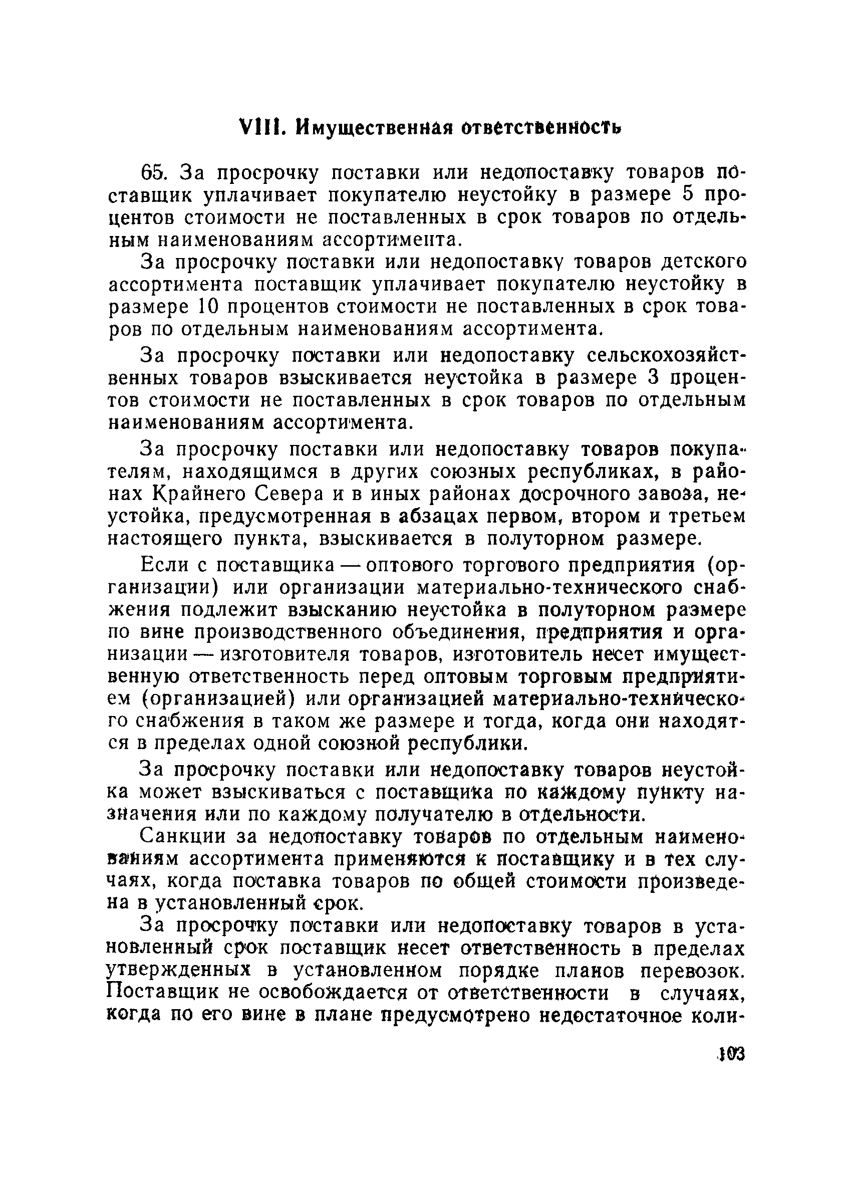| Оглавление: | Положение о поставках продукции производственно-технического назначения I. Общие положения II. Плановые основания заключения договоров и организация хозяйственных связей III. Порядок и сроки заключения договоров IV. Количество, сроки и порядок поставки продукции V. Качество и комплектность продукции VI. Тара, упаковка и средства пакетирования продукции VII. Цены и порядок расчетов VIII. Имущественная ответственность Положение о поставках товаров народного потребления I. Общие положения II. Плановые основания заключения договоров и организация хозяйственных связей III. Порядок и сроки заключения договоров на поставку товаров IV. Количество, ассортимент, сроки и порядок поставки товаров V. Качество и комплектность товаров VI. Тара, упаковка и средства пакетирования товаров VII. Цены и порядок расчетов VIII. Имущественная ответственность Перечень утративших силу решений Правительства СССР Изменения, которые вносятся в решения Правительства СССР |