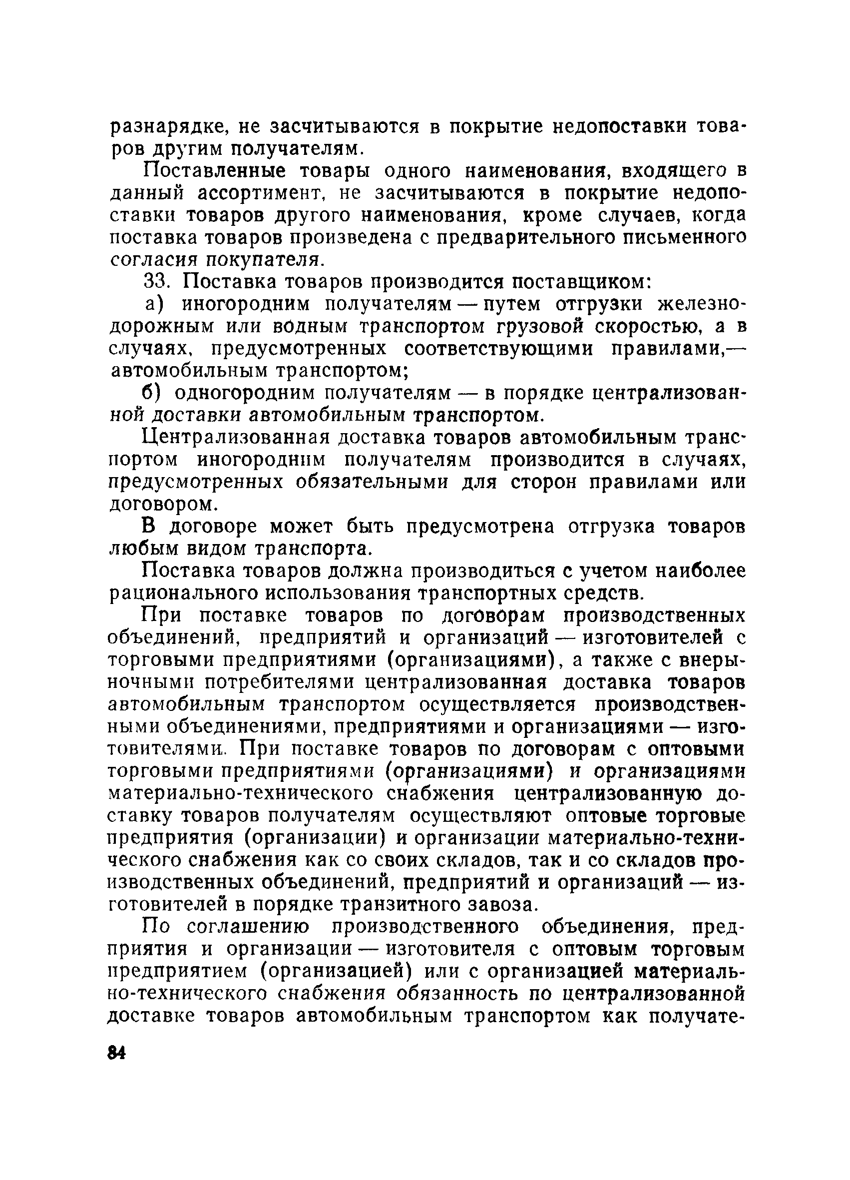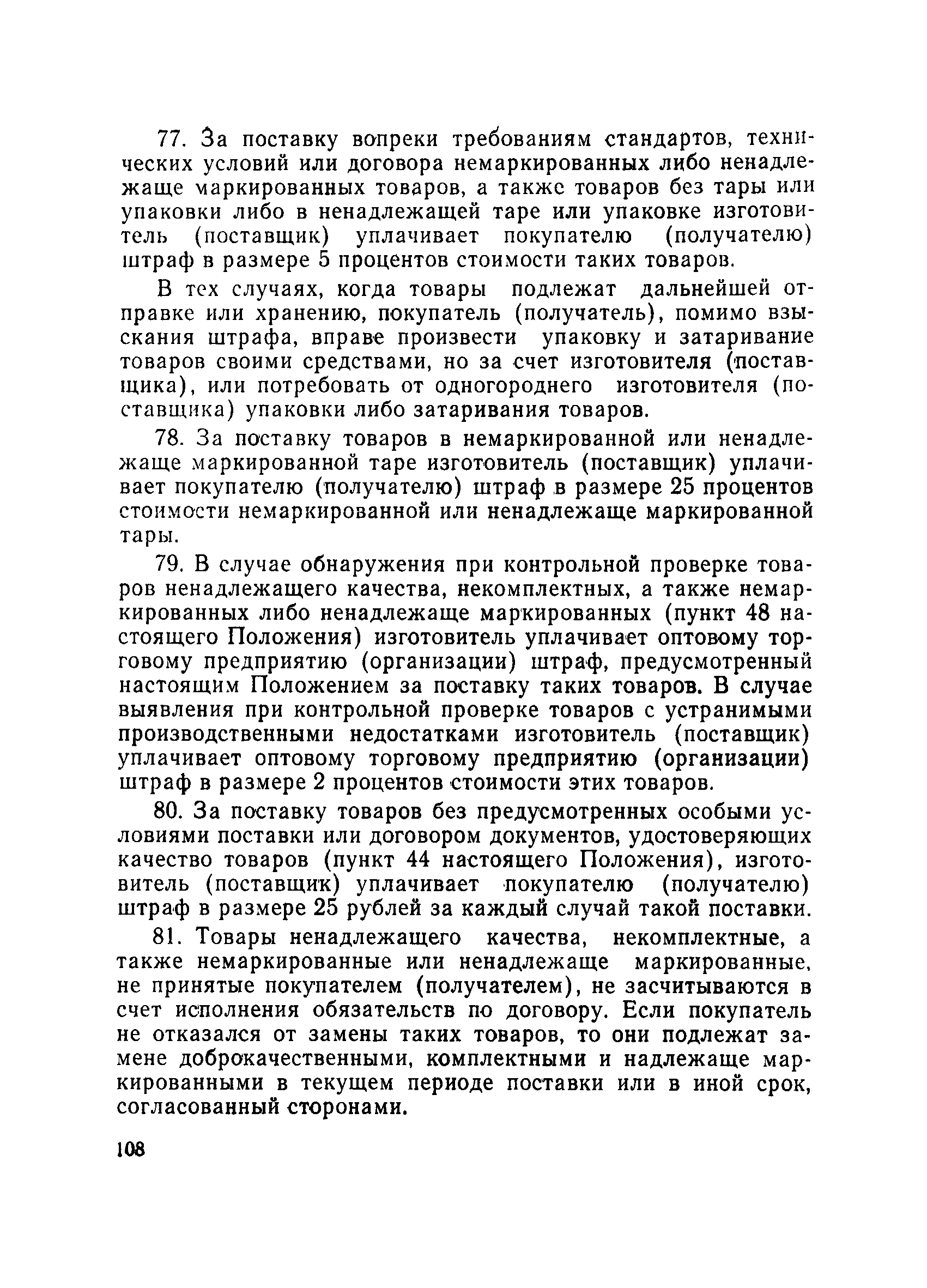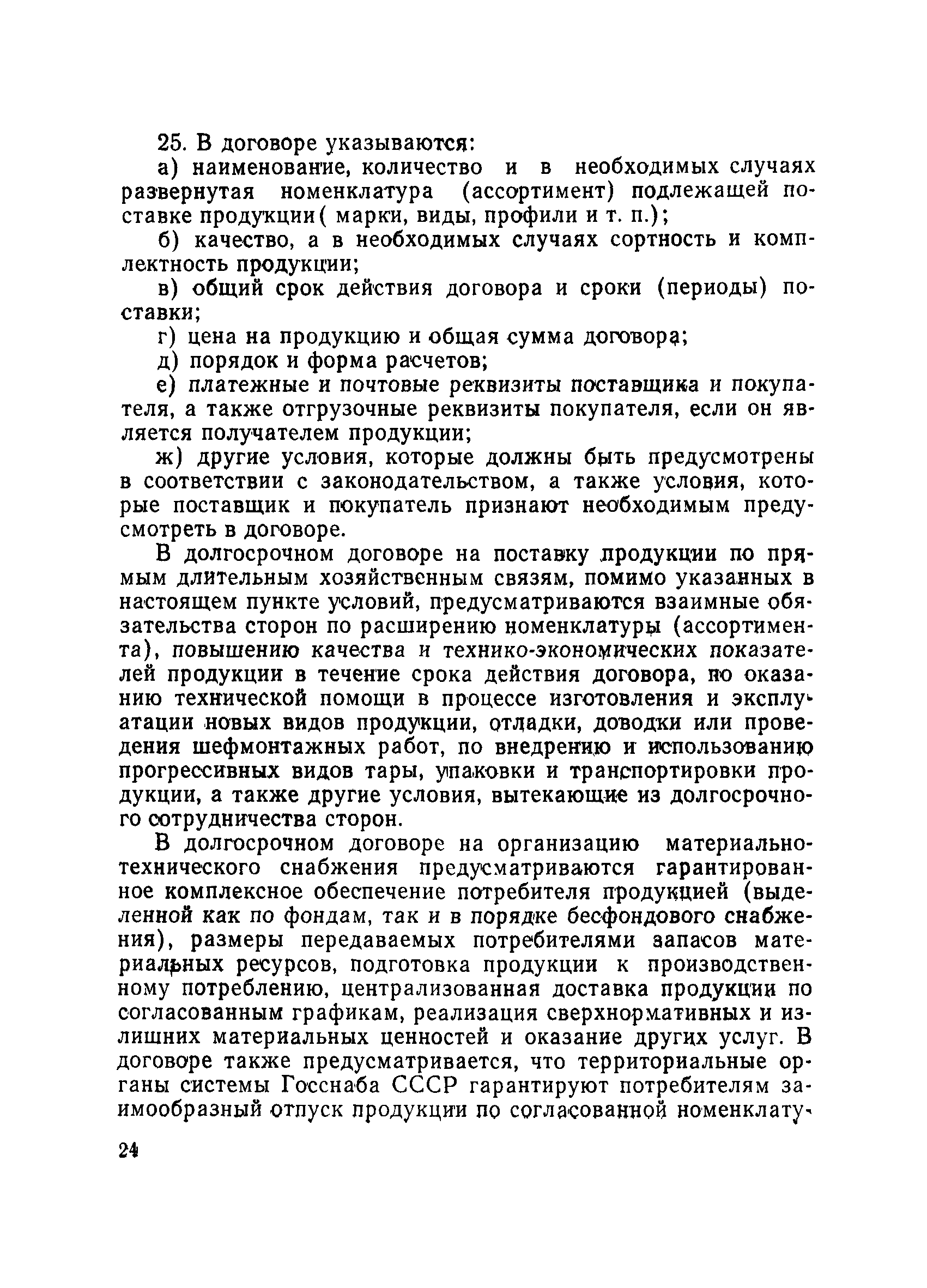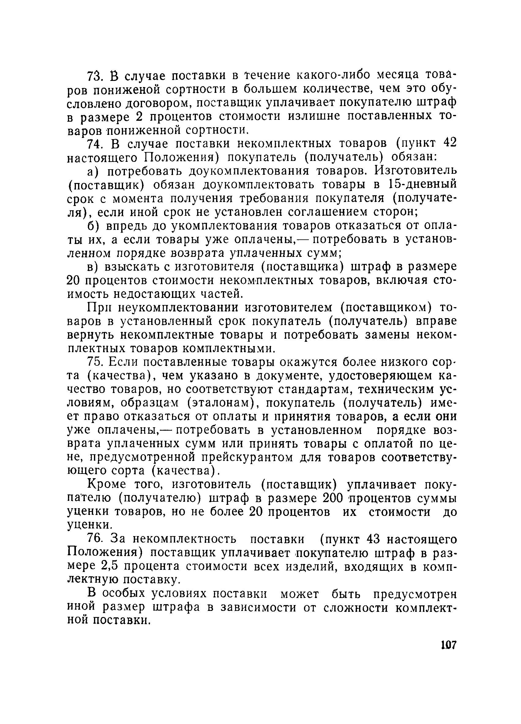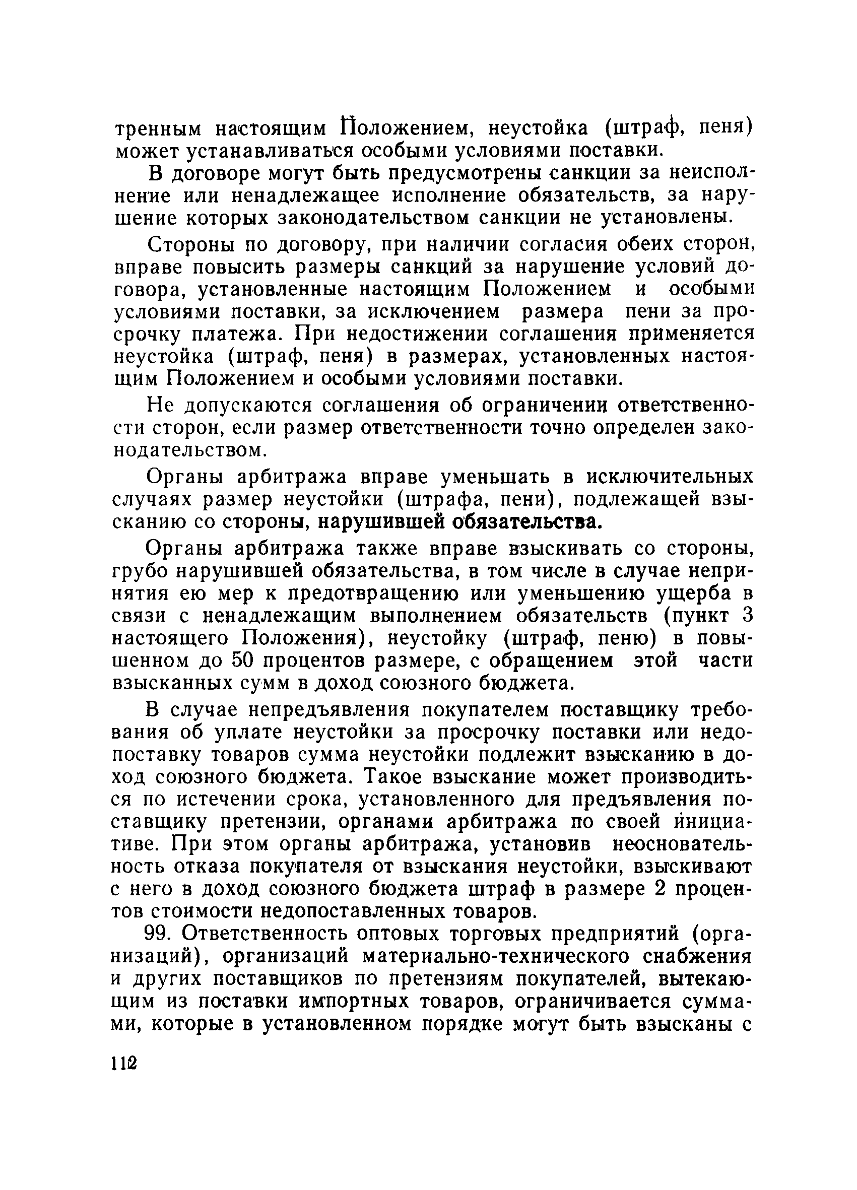 | Оглавление: | Положение о поставках продукции производственно-технического назначения I. Общие положения II. Плановые основания заключения договоров и организация хозяйственных связей III. Порядок и сроки заключения договоров IV. Количество, сроки и порядок поставки продукции V. Качество и комплектность продукции VI. Тара, упаковка и средства пакетирования продукции VII. Цены и порядок расчетов VIII. Имущественная ответственность Положение о поставках товаров народного потребления I. Общие положения II. Плановые основания заключения договоров и организация хозяйственных связей III. Порядок и сроки заключения договоров на поставку товаров IV. Количество, ассортимент, сроки и порядок поставки товаров V. Качество и комплектность товаров VI. Тара, упаковка и средства пакетирования товаров VII. Цены и порядок расчетов VIII. Имущественная ответственность Перечень утративших силу решений Правительства СССР Изменения, которые вносятся в решения Правительства СССР |