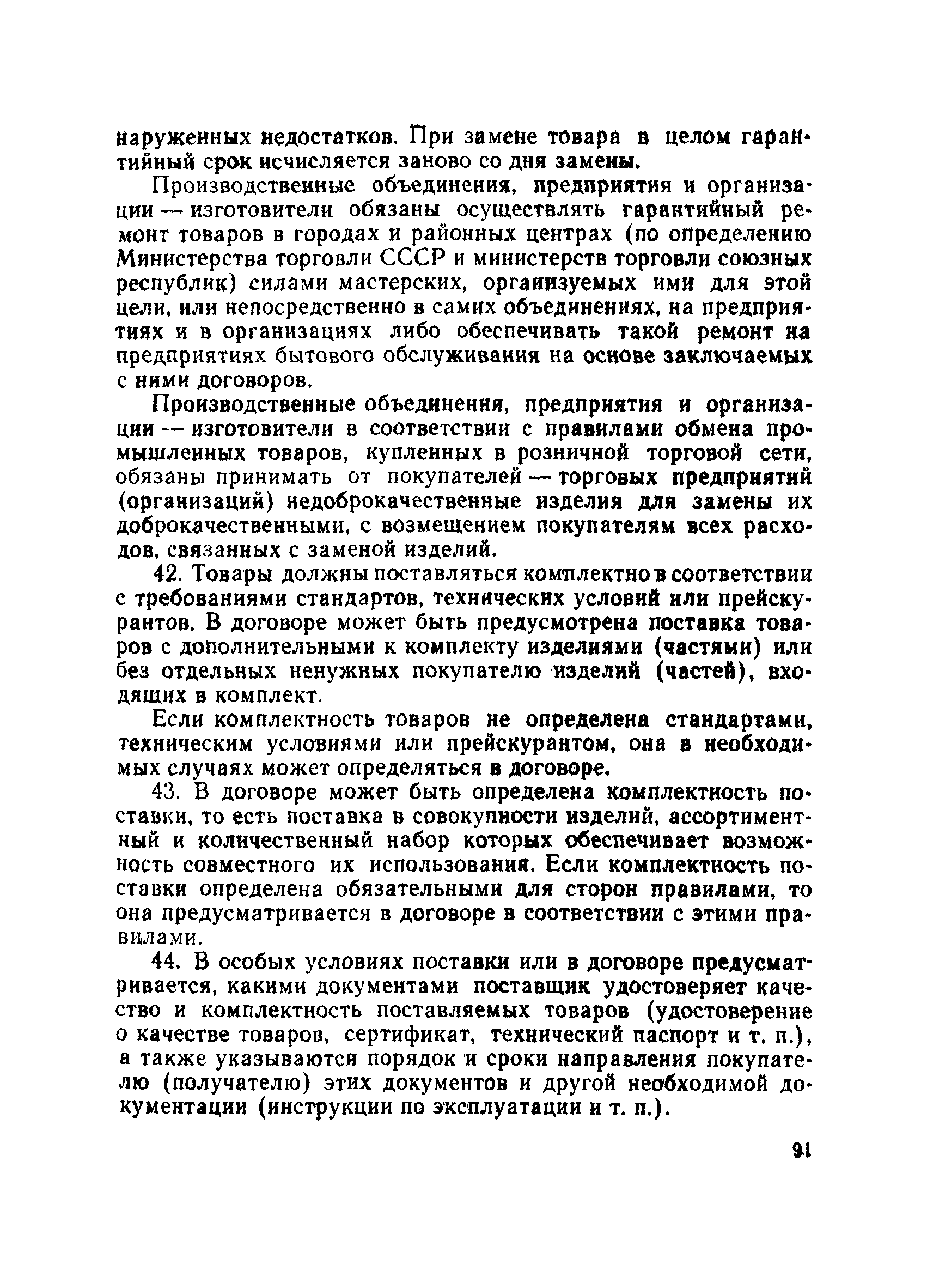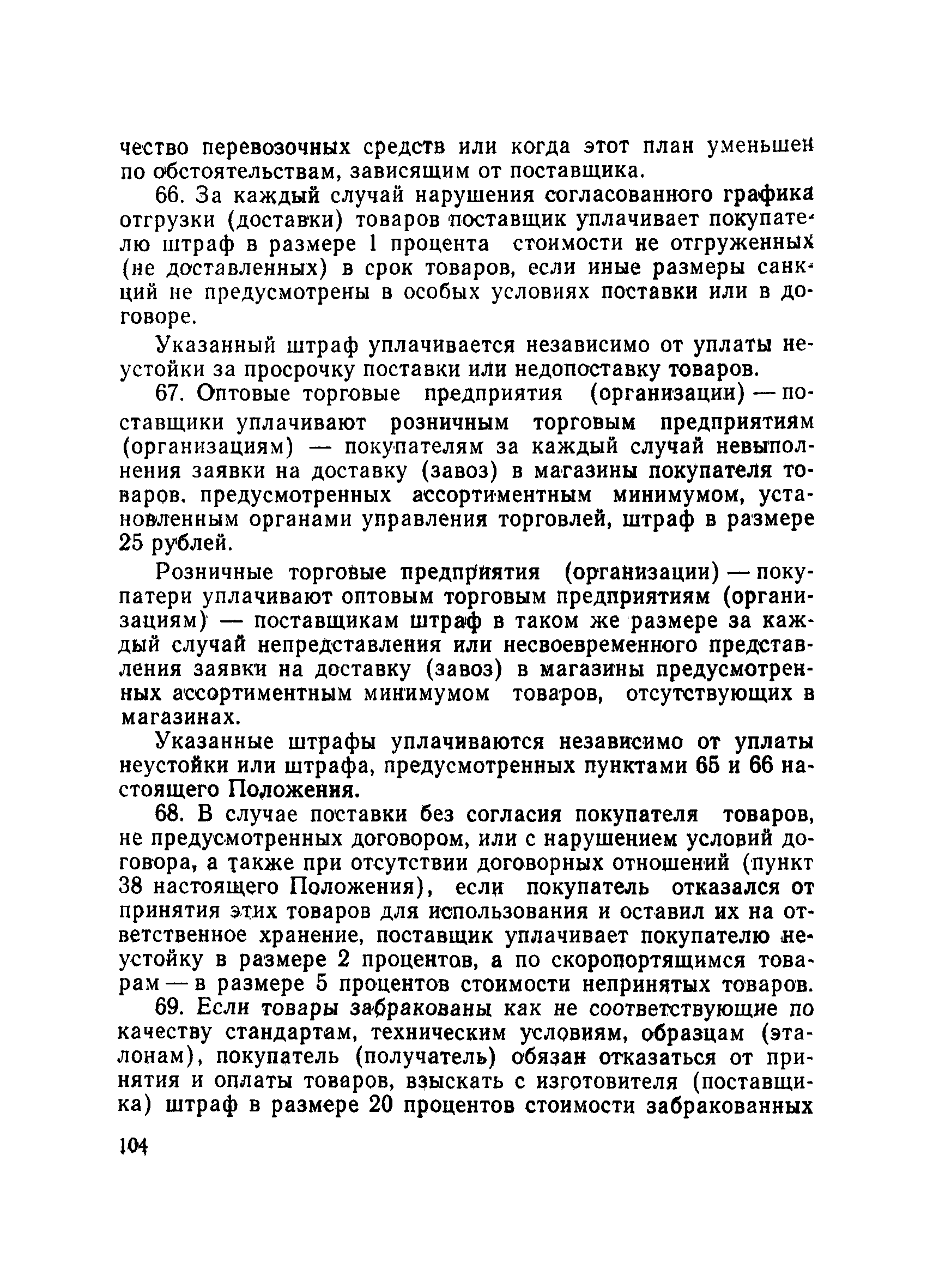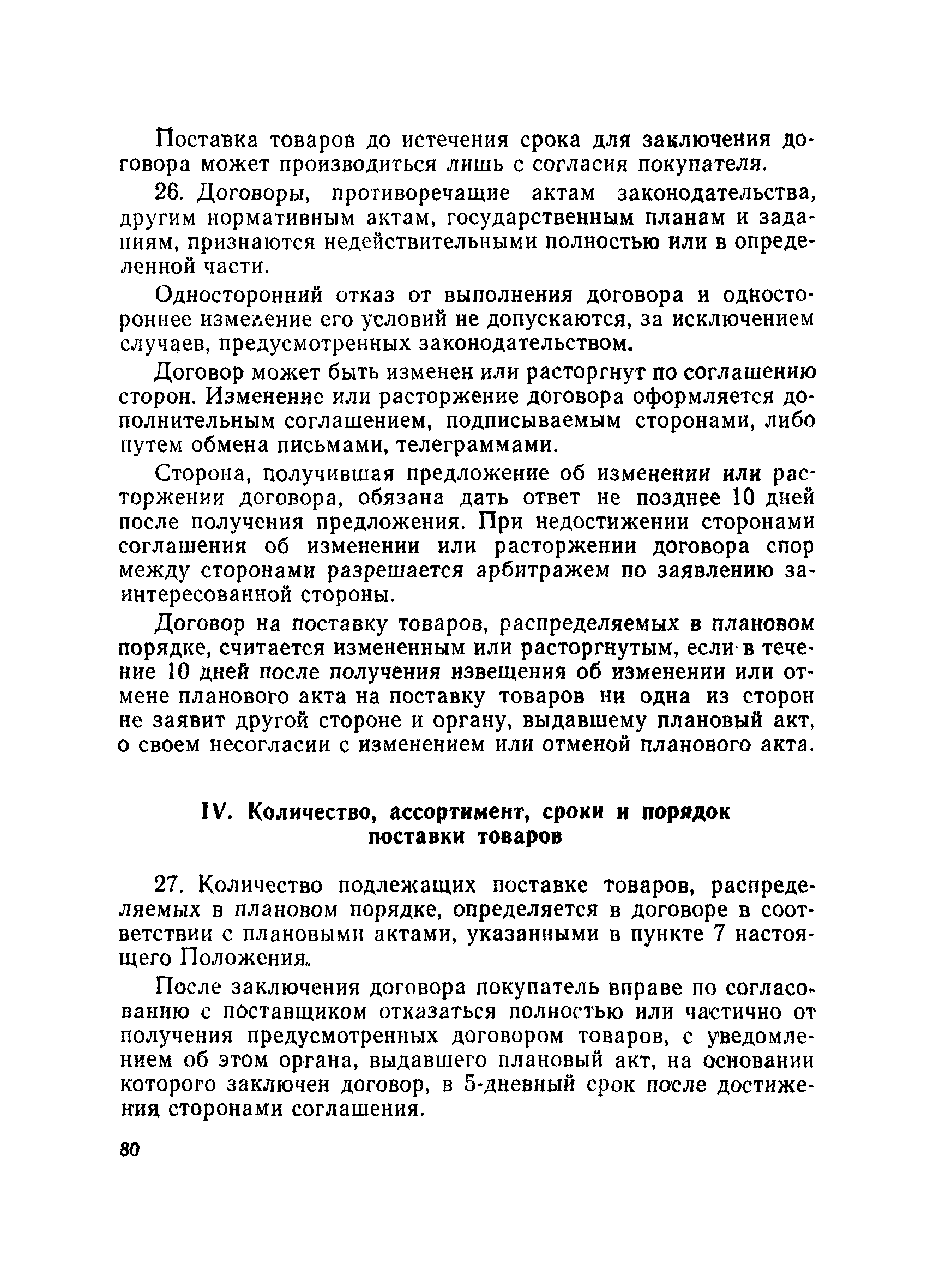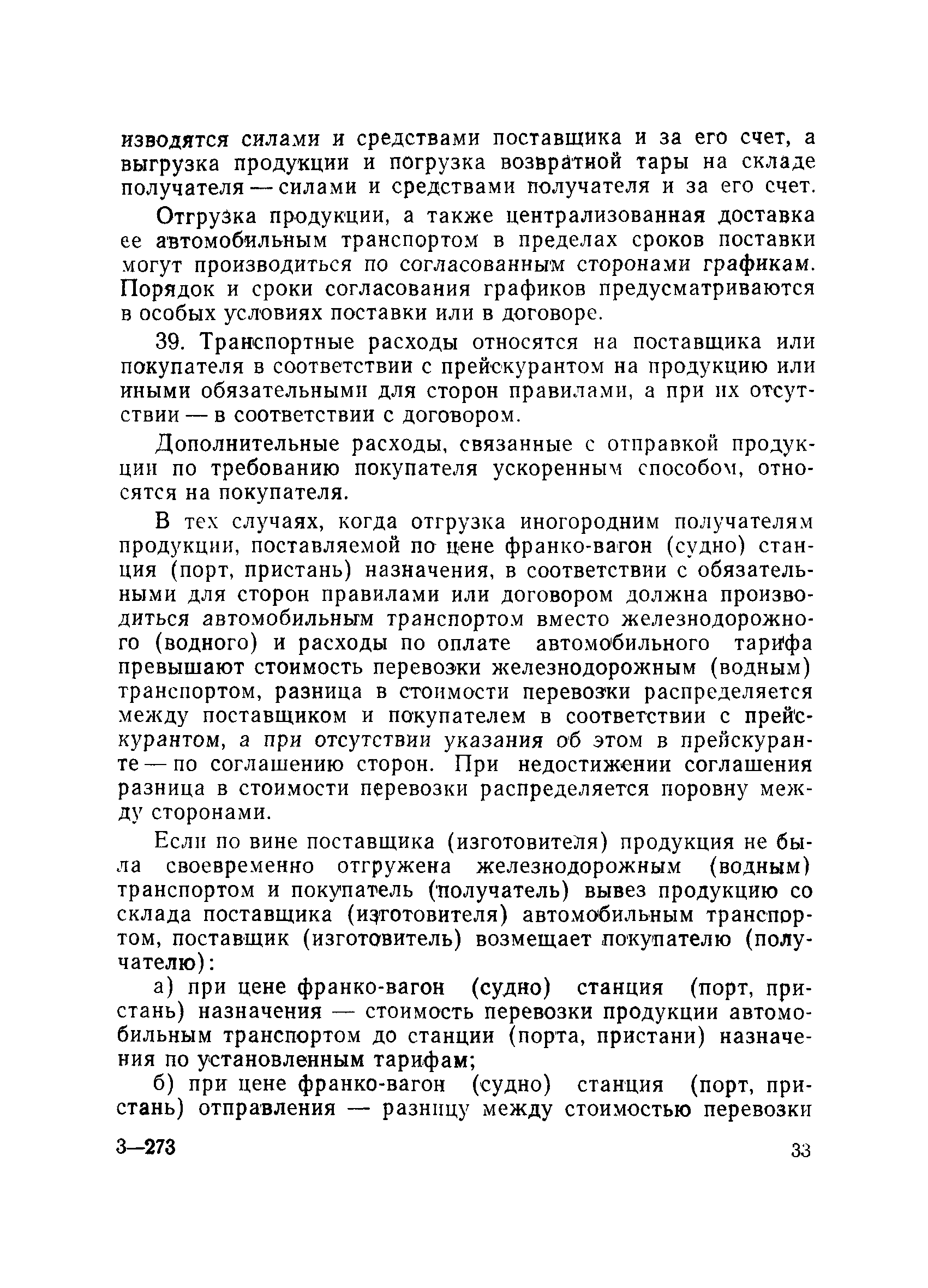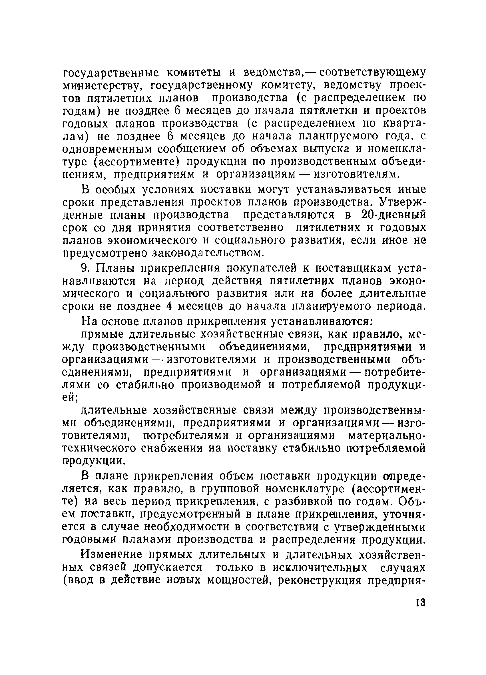 | Оглавление: | Положение о поставках продукции производственно-технического назначения I. Общие положения II. Плановые основания заключения договоров и организация хозяйственных связей III. Порядок и сроки заключения договоров IV. Количество, сроки и порядок поставки продукции V. Качество и комплектность продукции VI. Тара, упаковка и средства пакетирования продукции VII. Цены и порядок расчетов VIII. Имущественная ответственность Положение о поставках товаров народного потребления I. Общие положения II. Плановые основания заключения договоров и организация хозяйственных связей III. Порядок и сроки заключения договоров на поставку товаров IV. Количество, ассортимент, сроки и порядок поставки товаров V. Качество и комплектность товаров VI. Тара, упаковка и средства пакетирования товаров VII. Цены и порядок расчетов VIII. Имущественная ответственность Перечень утративших силу решений Правительства СССР Изменения, которые вносятся в решения Правительства СССР |