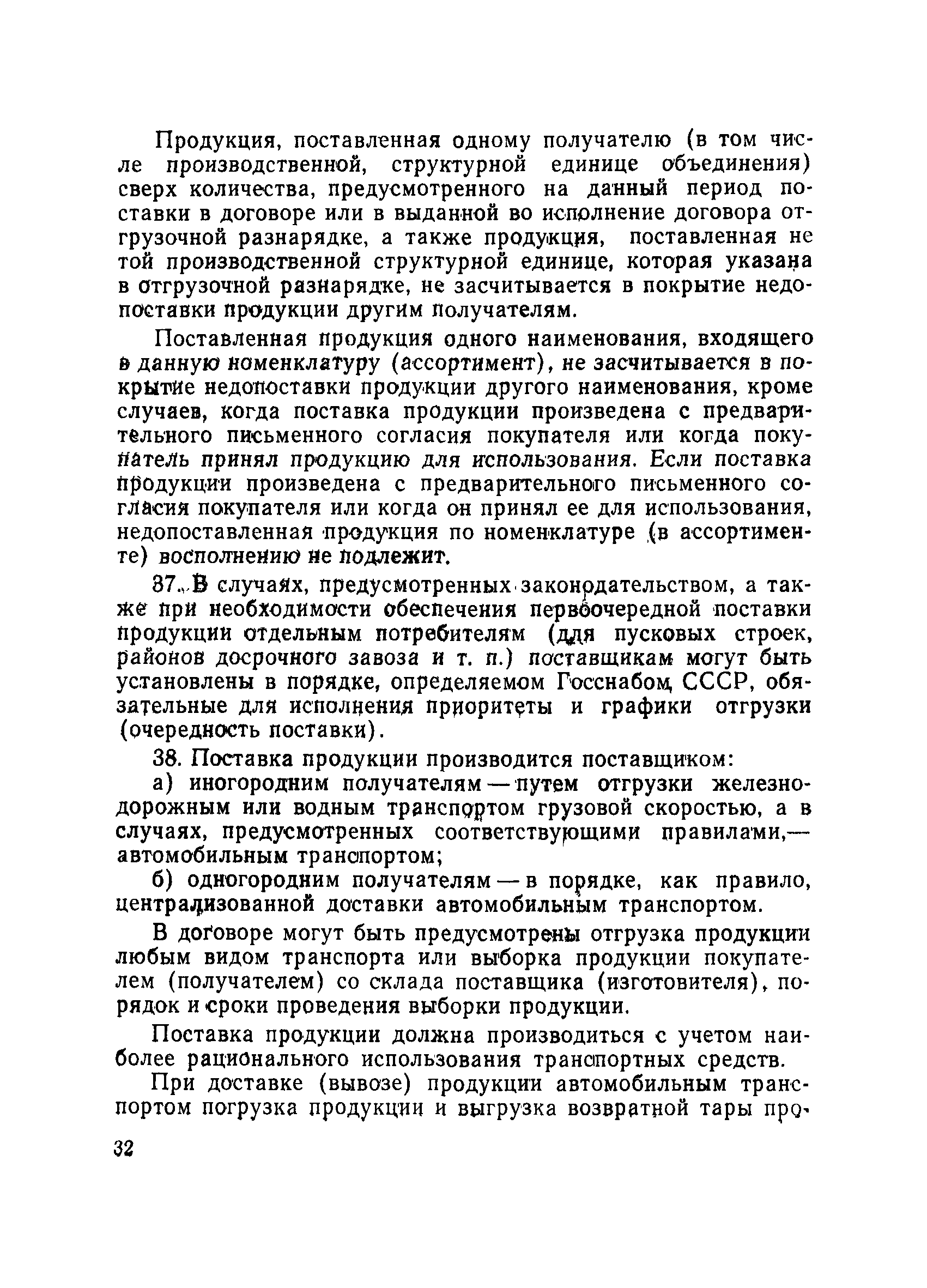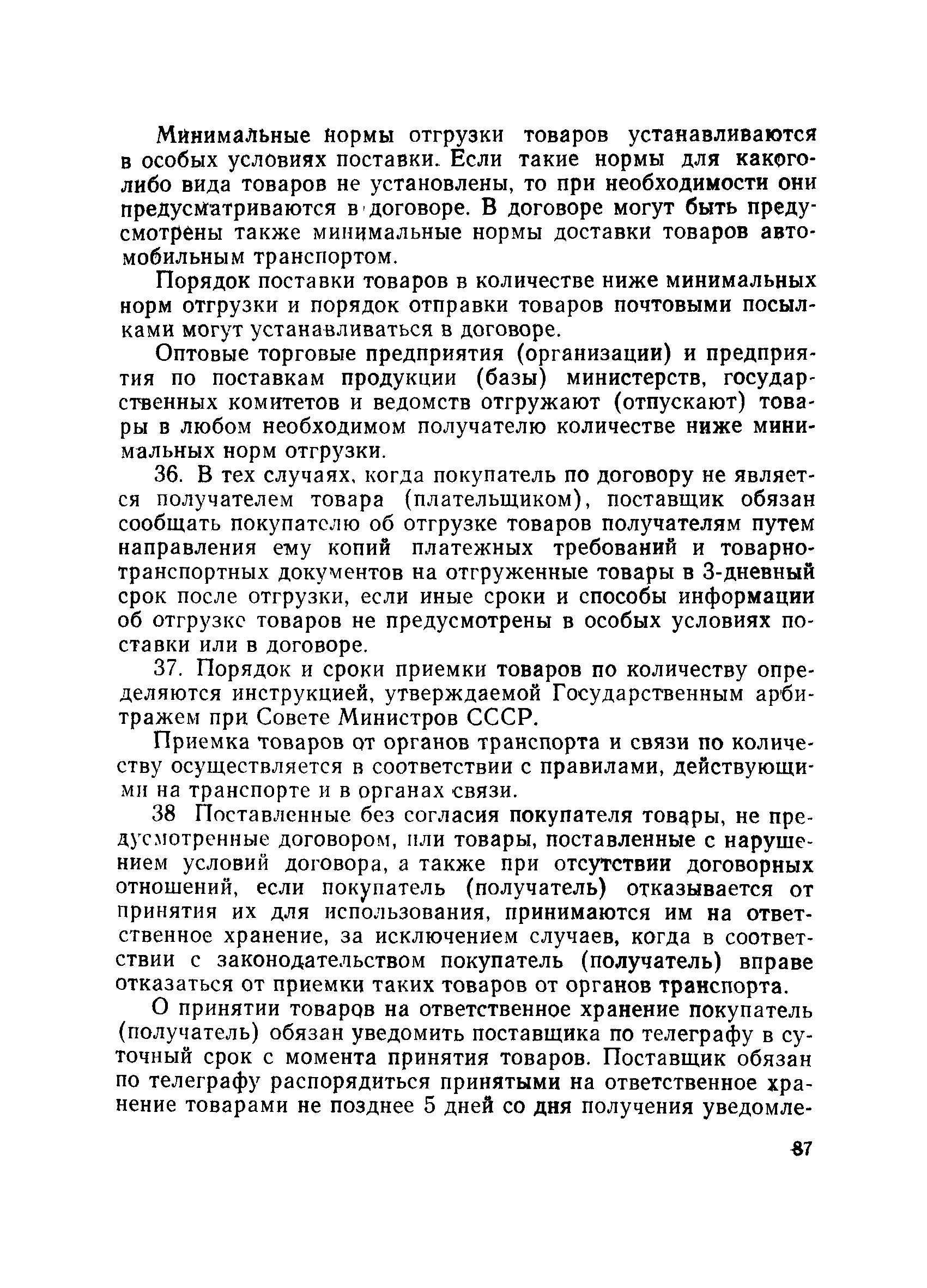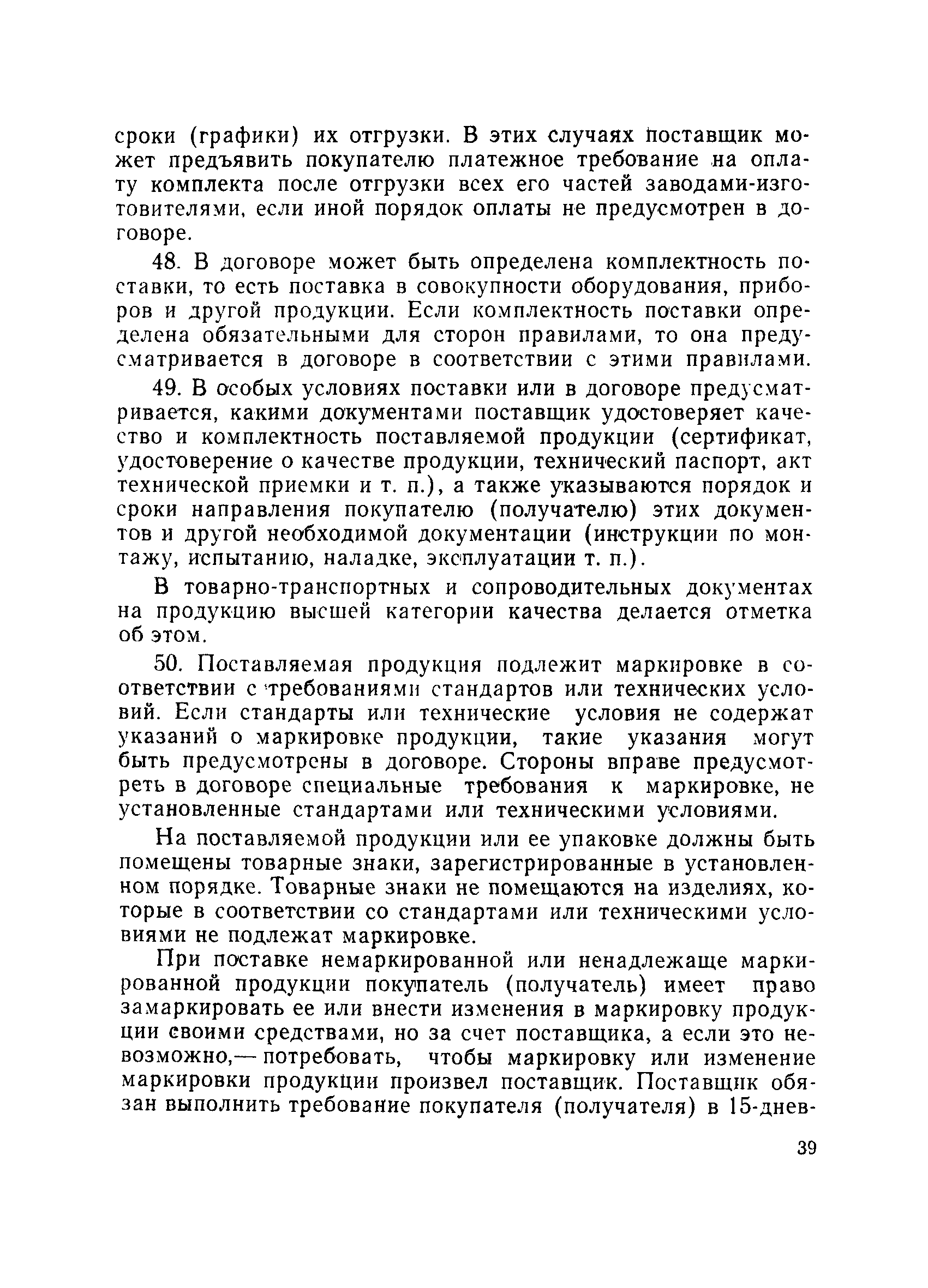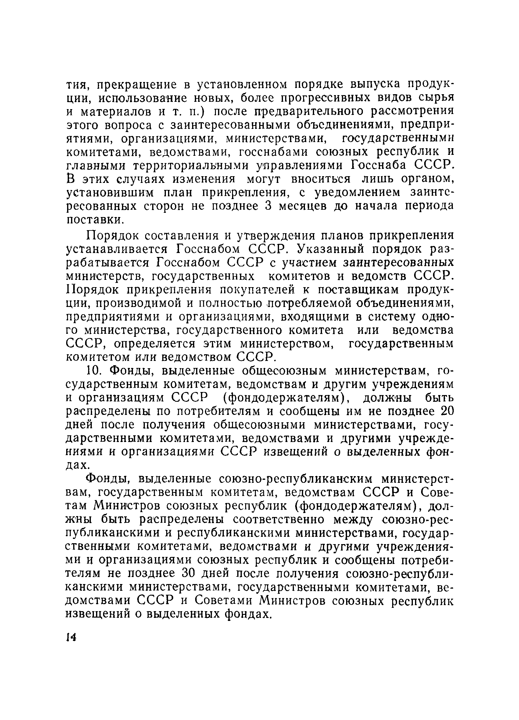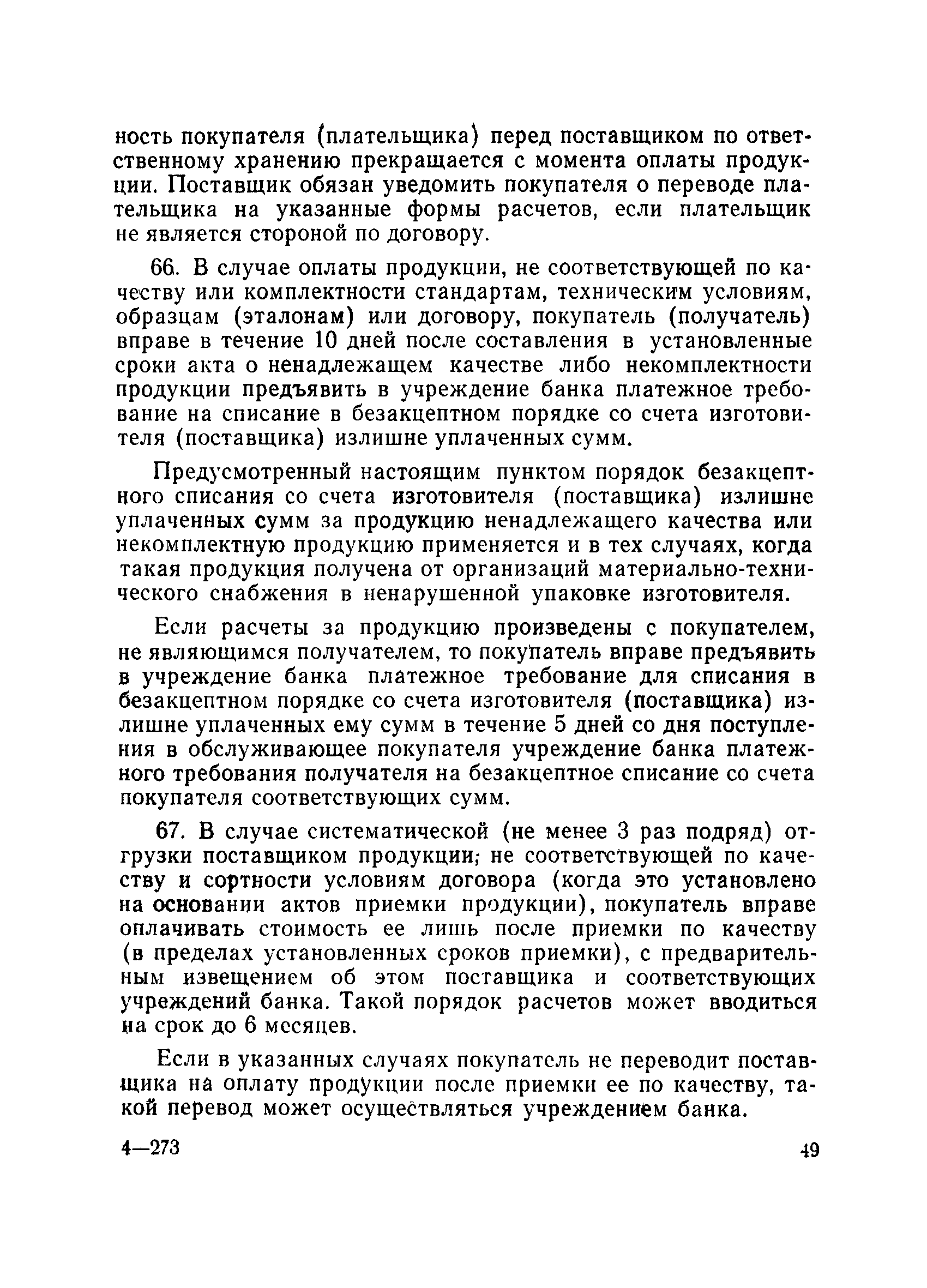 | Оглавление: | Положение о поставках продукции производственно-технического назначения I. Общие положения II. Плановые основания заключения договоров и организация хозяйственных связей III. Порядок и сроки заключения договоров IV. Количество, сроки и порядок поставки продукции V. Качество и комплектность продукции VI. Тара, упаковка и средства пакетирования продукции VII. Цены и порядок расчетов VIII. Имущественная ответственность Положение о поставках товаров народного потребления I. Общие положения II. Плановые основания заключения договоров и организация хозяйственных связей III. Порядок и сроки заключения договоров на поставку товаров IV. Количество, ассортимент, сроки и порядок поставки товаров V. Качество и комплектность товаров VI. Тара, упаковка и средства пакетирования товаров VII. Цены и порядок расчетов VIII. Имущественная ответственность Перечень утративших силу решений Правительства СССР Изменения, которые вносятся в решения Правительства СССР |