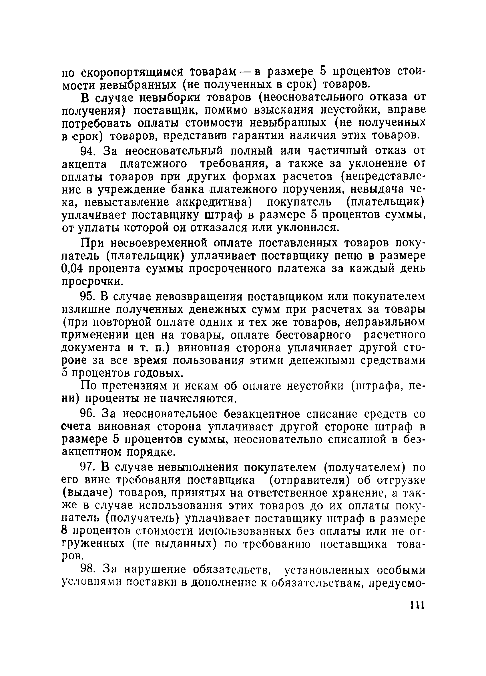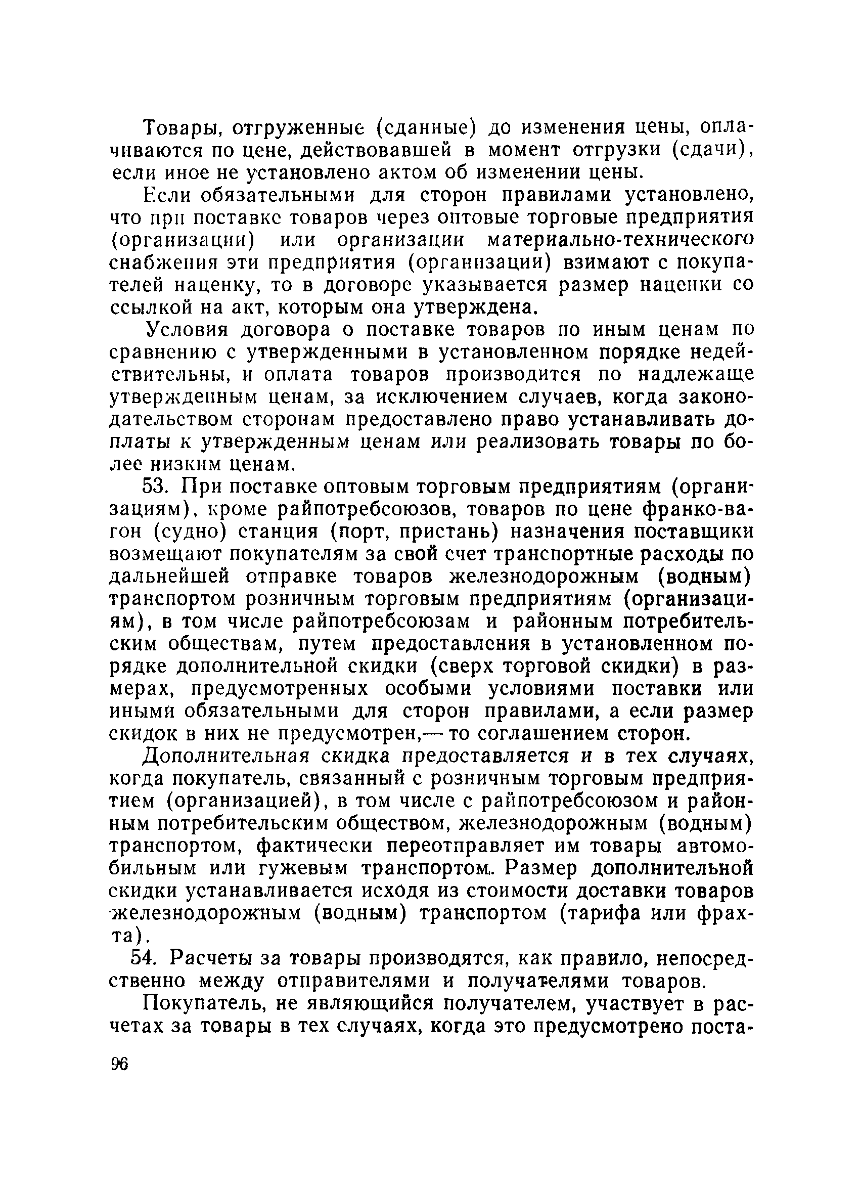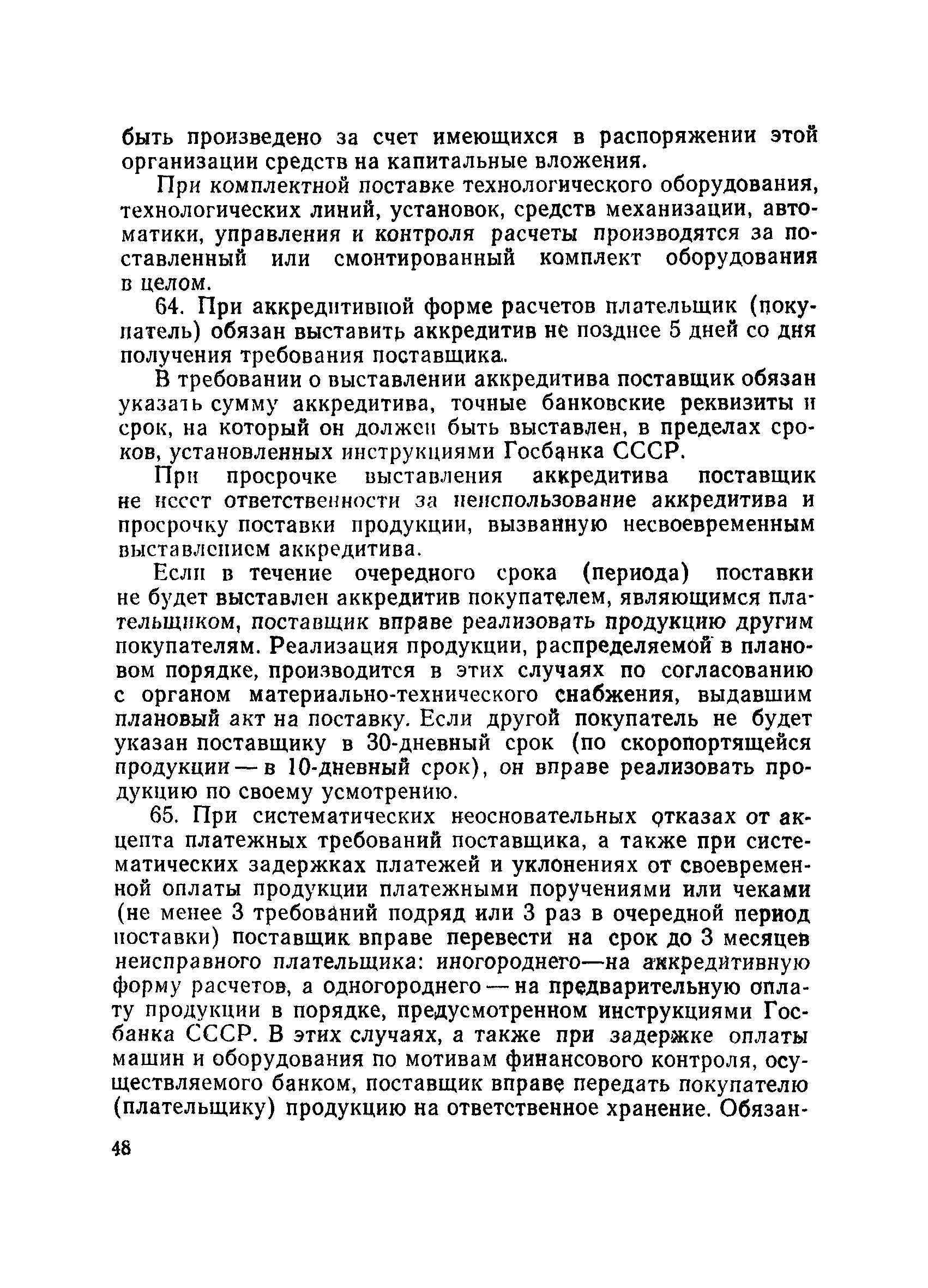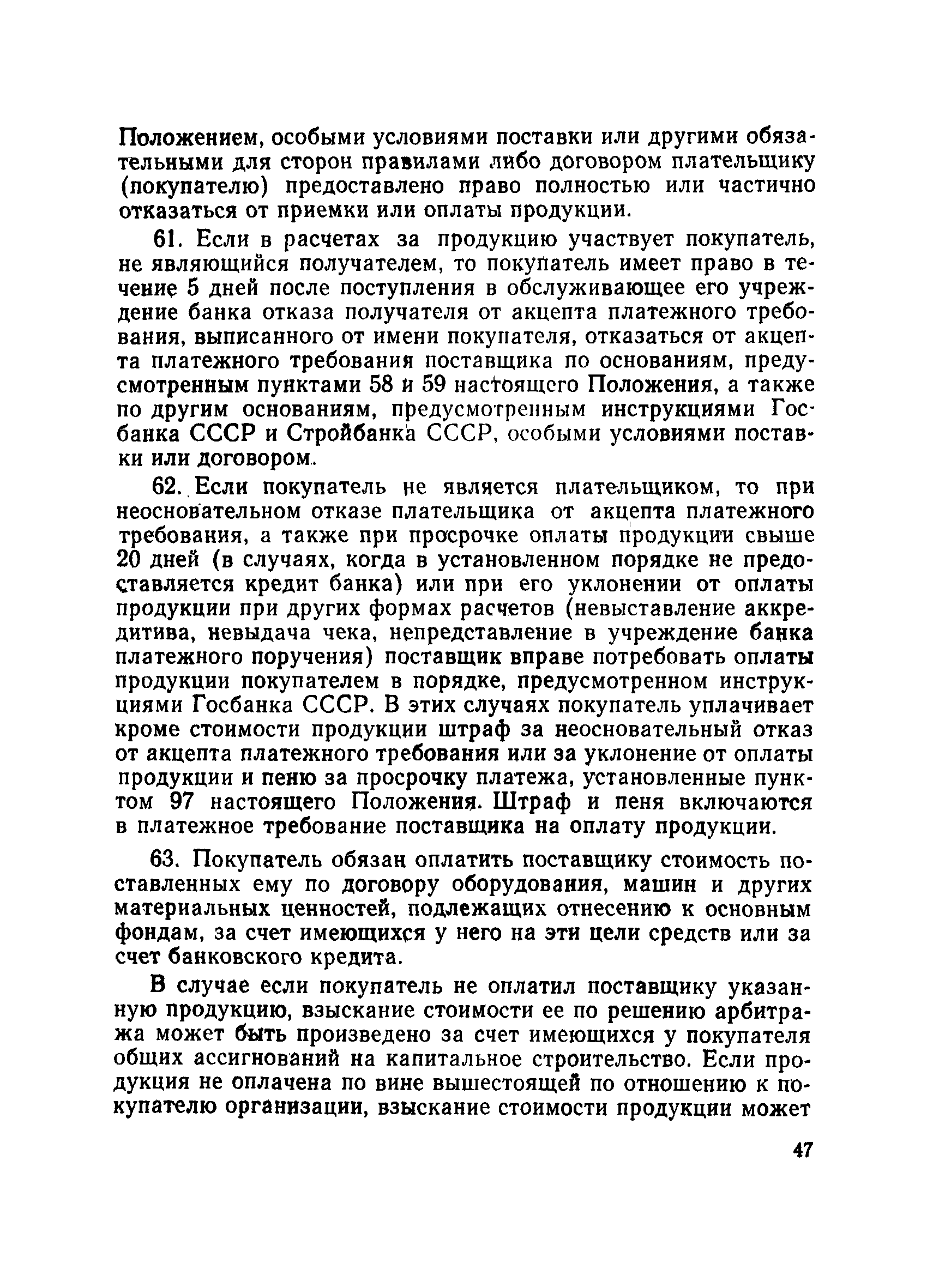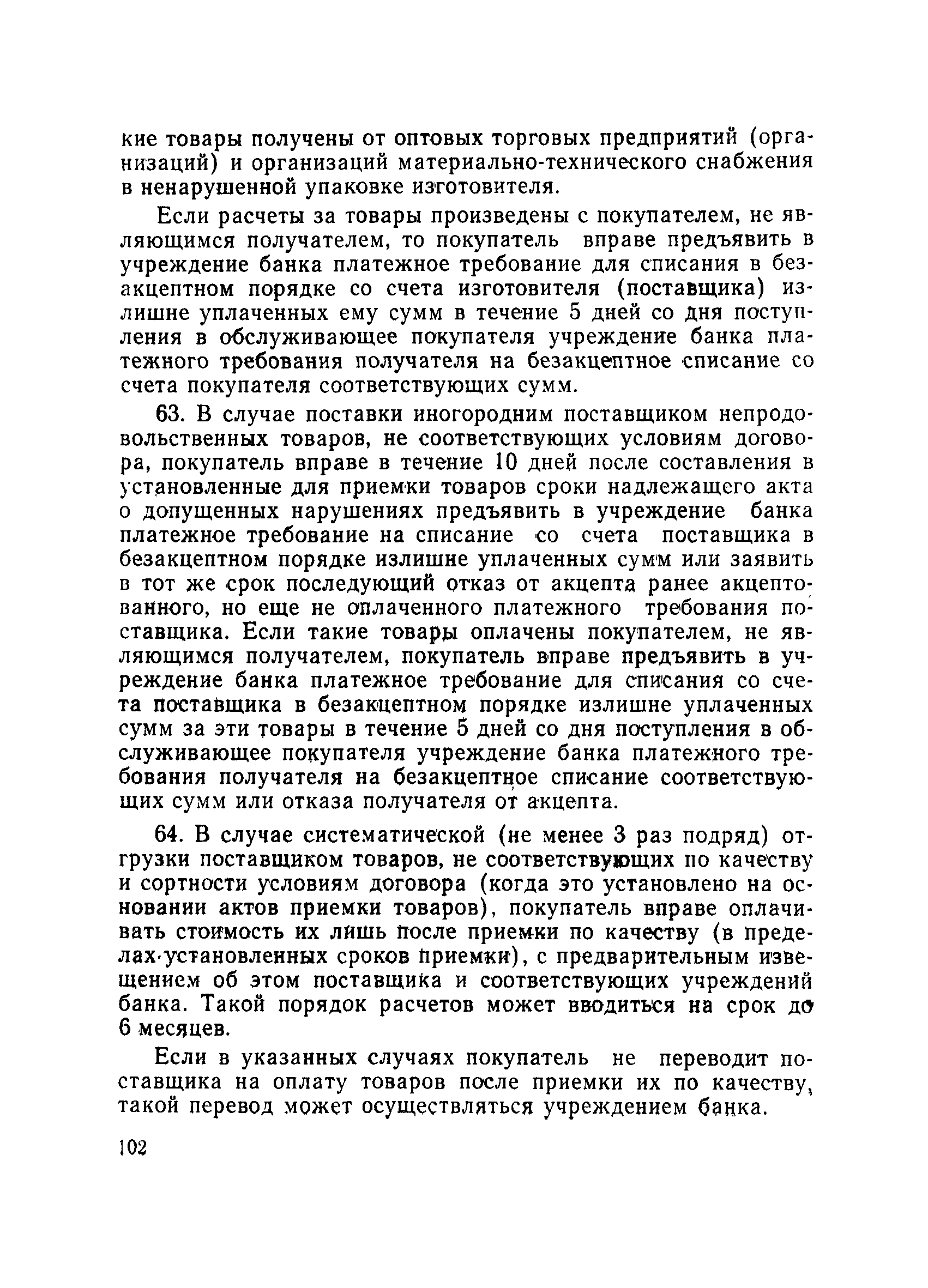 | Оглавление: | Положение о поставках продукции производственно-технического назначения I. Общие положения II. Плановые основания заключения договоров и организация хозяйственных связей III. Порядок и сроки заключения договоров IV. Количество, сроки и порядок поставки продукции V. Качество и комплектность продукции VI. Тара, упаковка и средства пакетирования продукции VII. Цены и порядок расчетов VIII. Имущественная ответственность Положение о поставках товаров народного потребления I. Общие положения II. Плановые основания заключения договоров и организация хозяйственных связей III. Порядок и сроки заключения договоров на поставку товаров IV. Количество, ассортимент, сроки и порядок поставки товаров V. Качество и комплектность товаров VI. Тара, упаковка и средства пакетирования товаров VII. Цены и порядок расчетов VIII. Имущественная ответственность Перечень утративших силу решений Правительства СССР Изменения, которые вносятся в решения Правительства СССР |