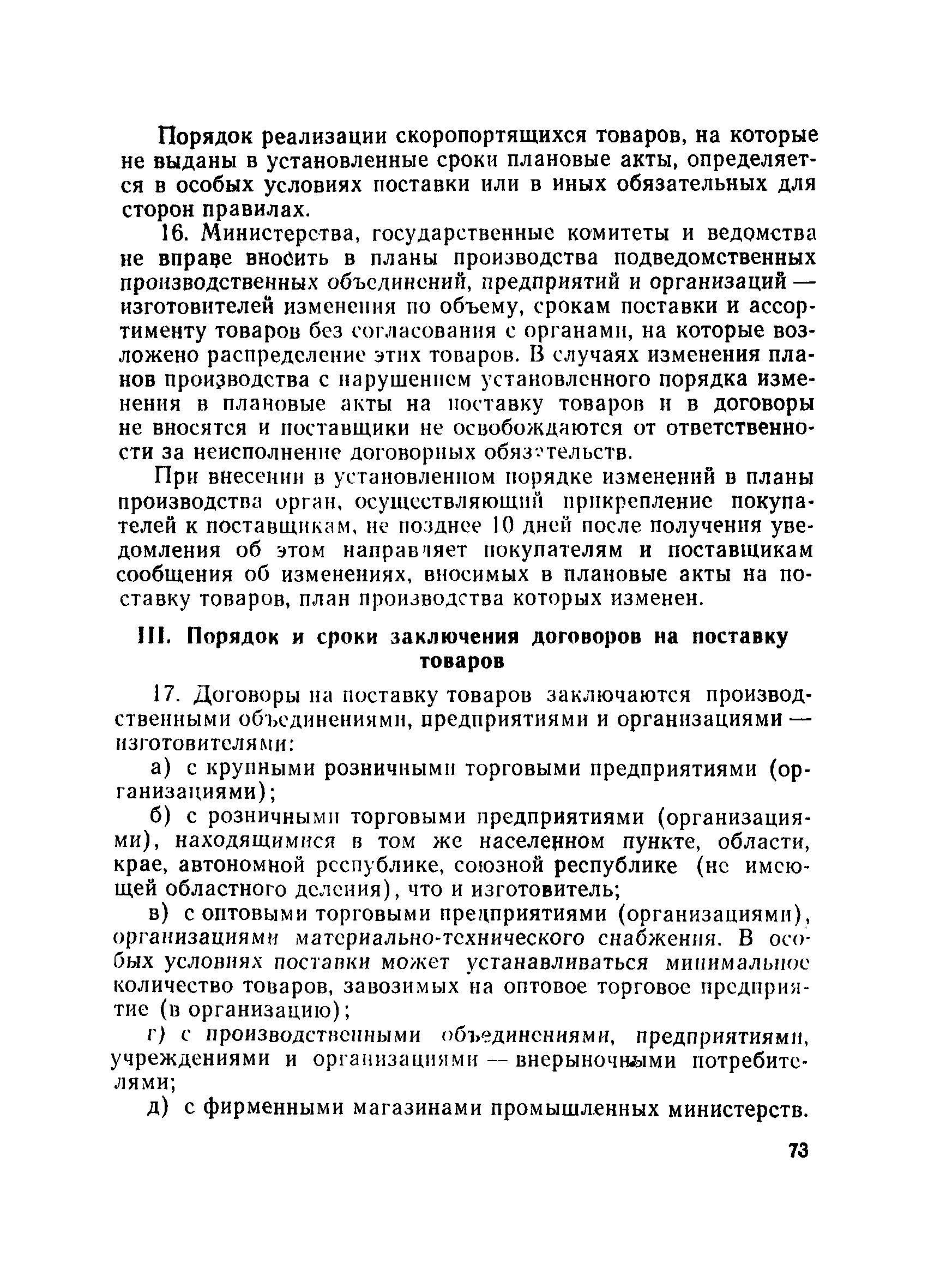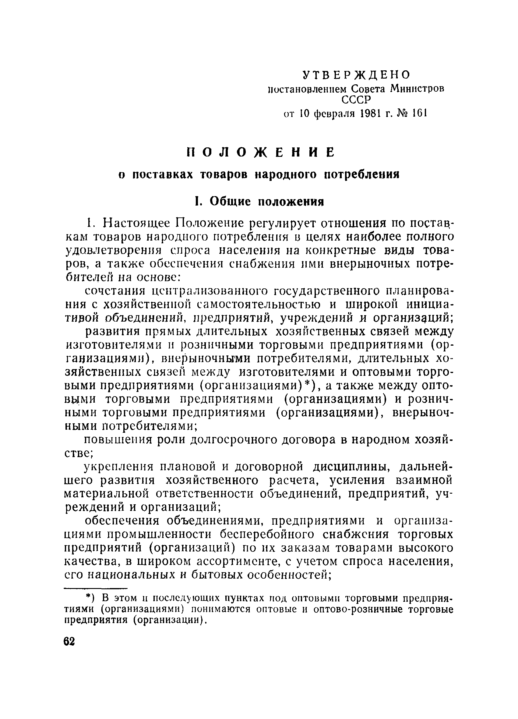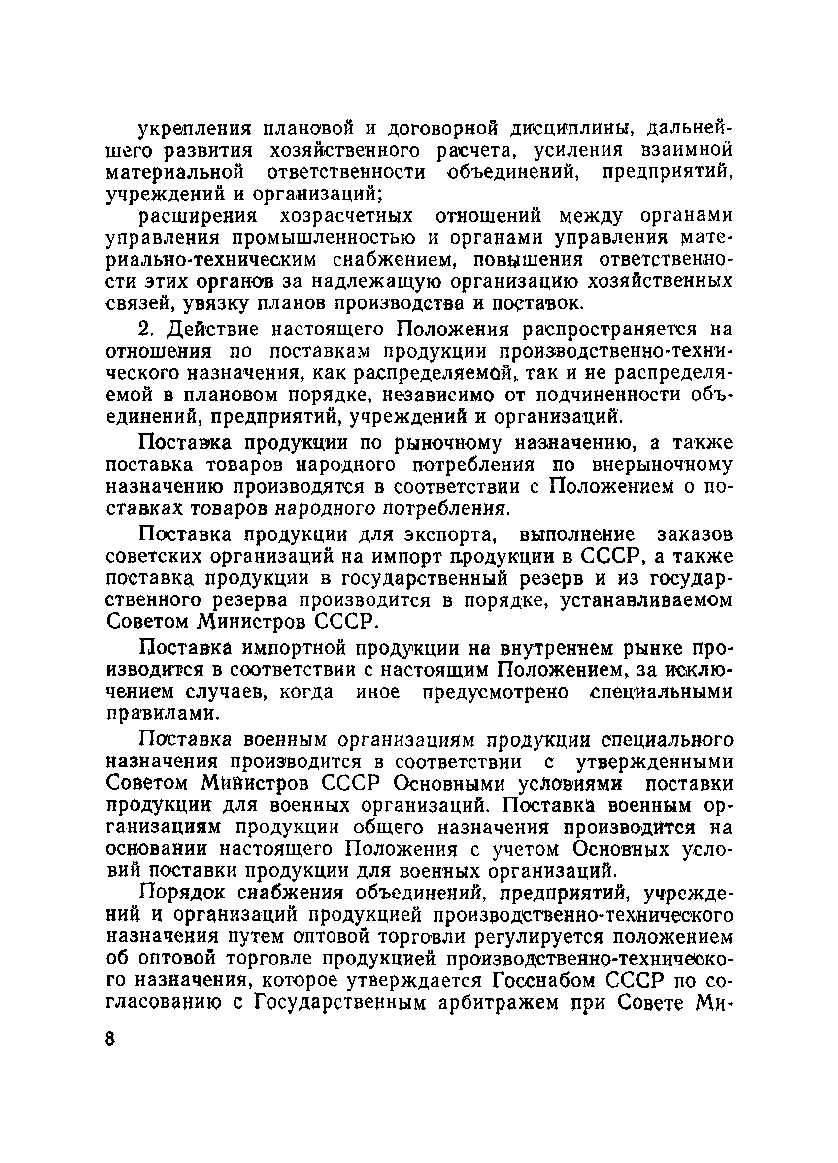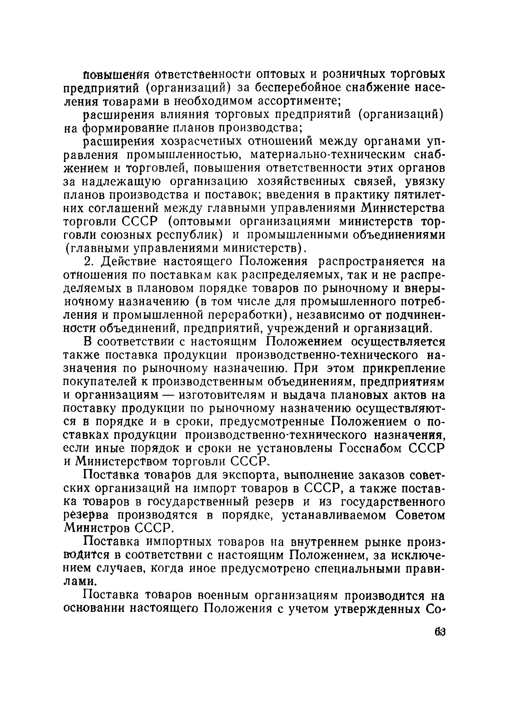 Положение о поставках товаров народного потребления регулирует отношения по поставкам товаров народного потребления в целях наиболее полного удовлетворения спроса населения на конкретные виды товаров, а также обеспечения снабжения ими внерыночных потребителей. |