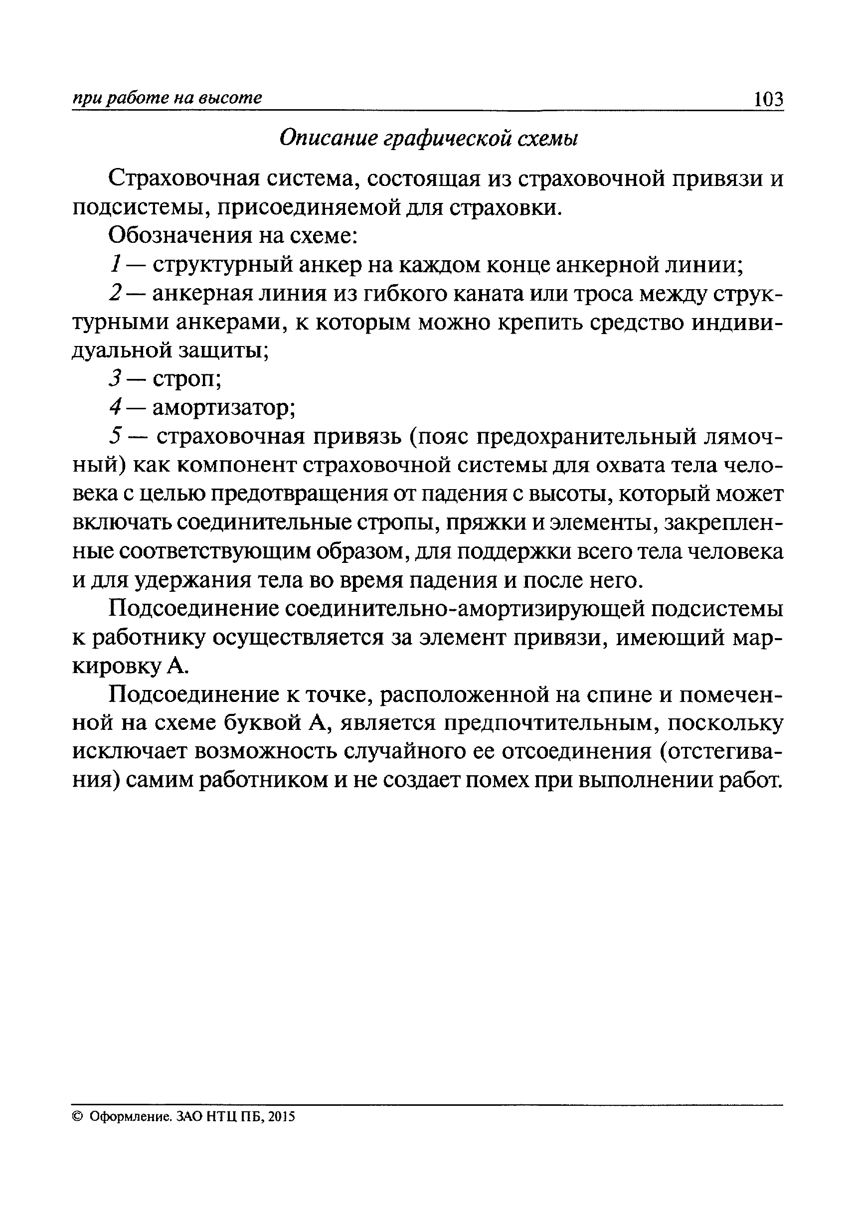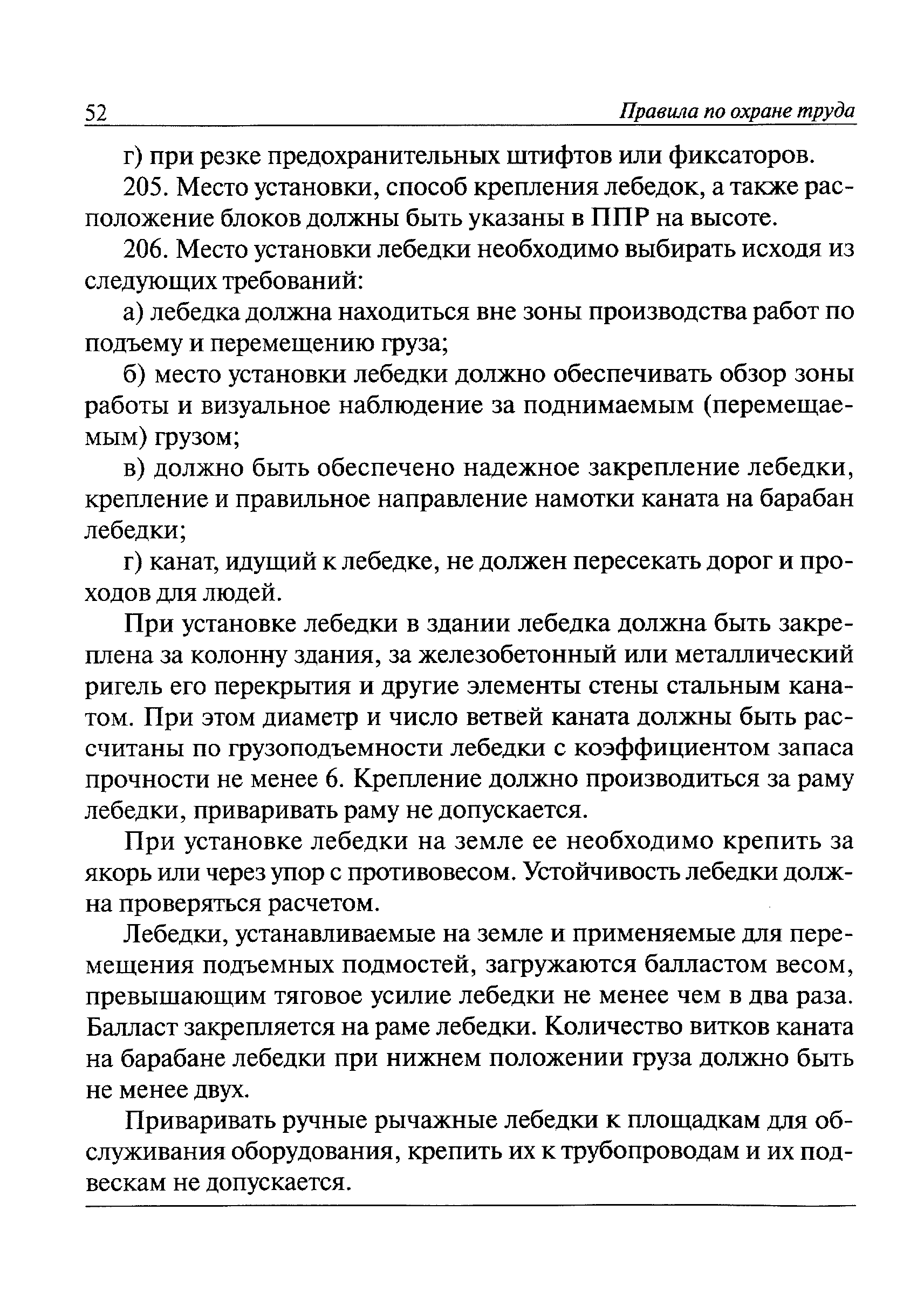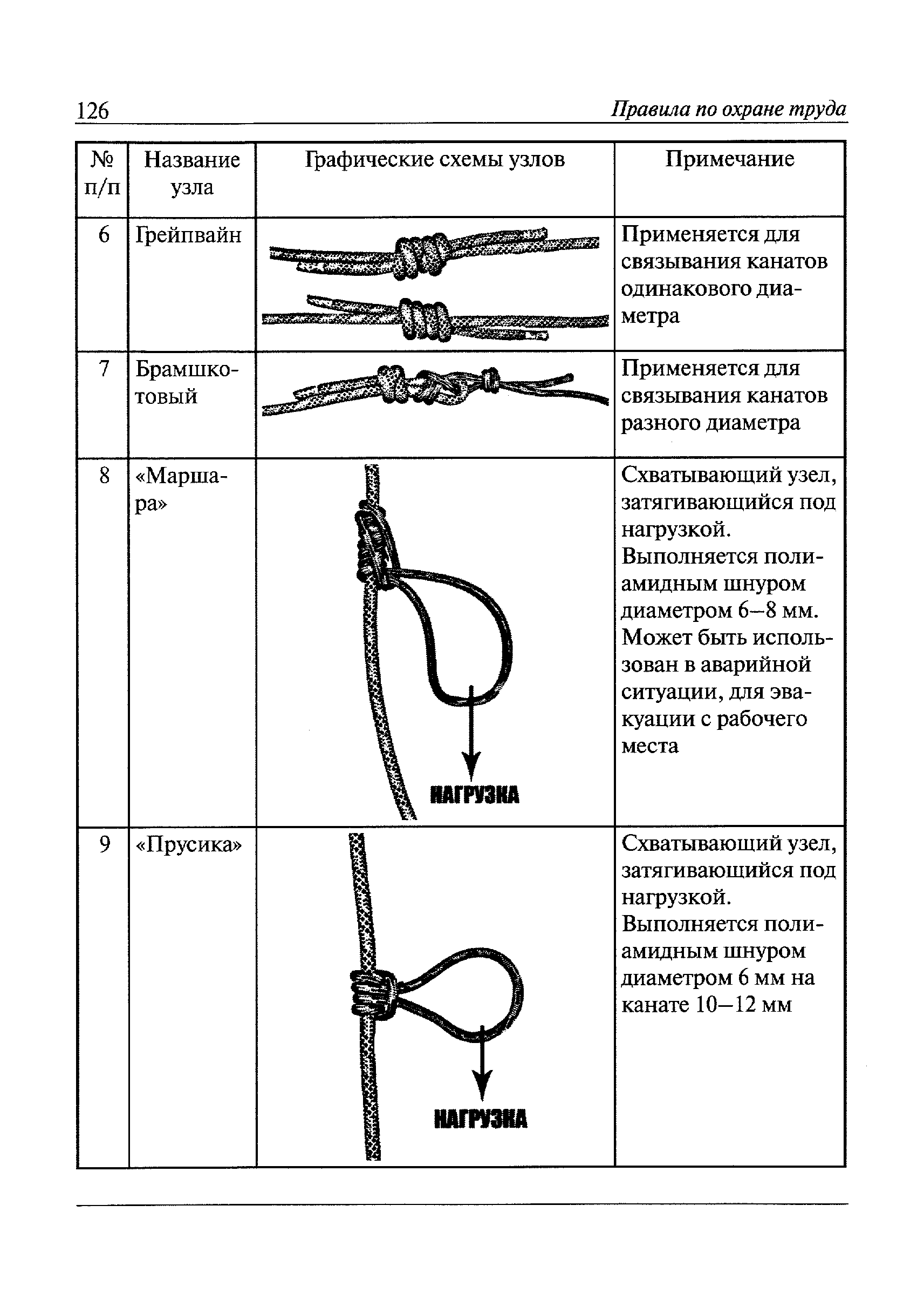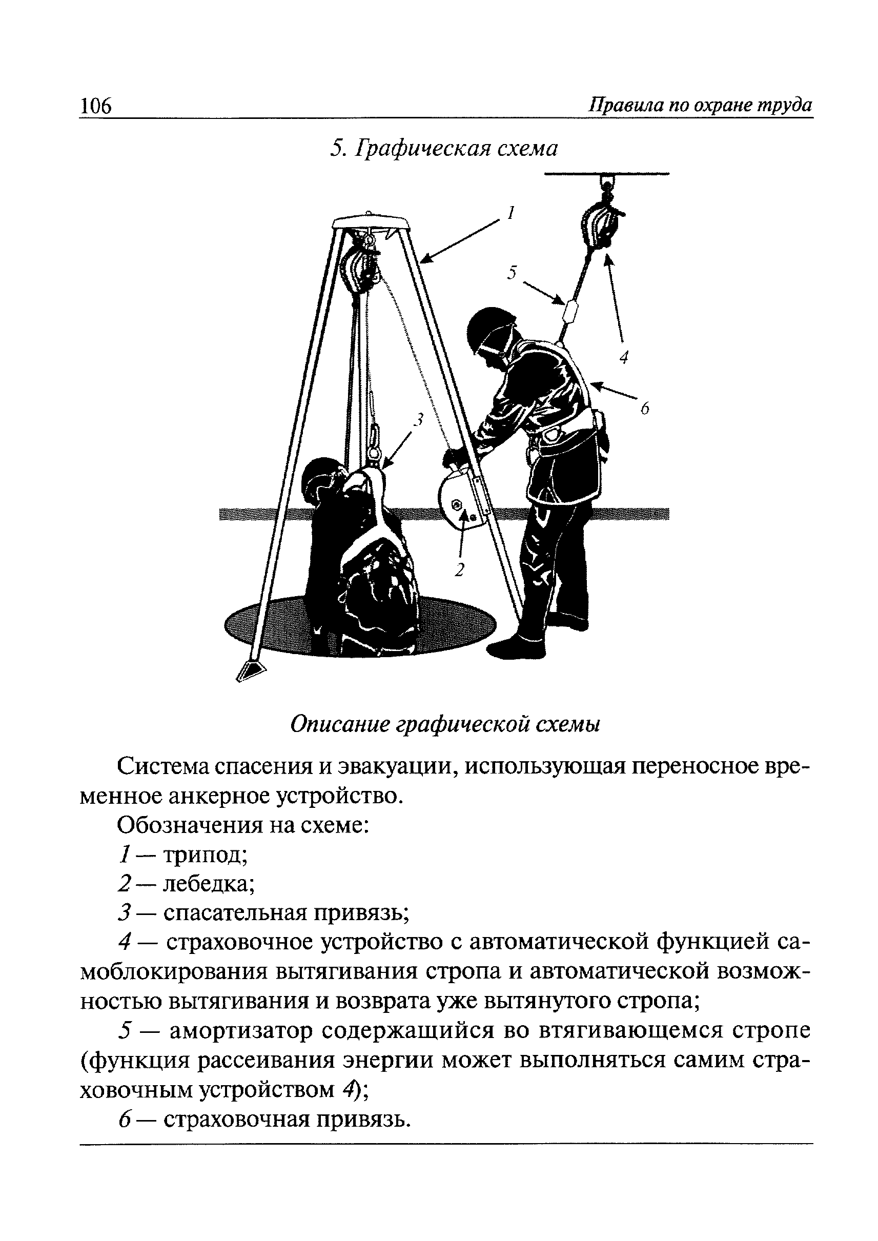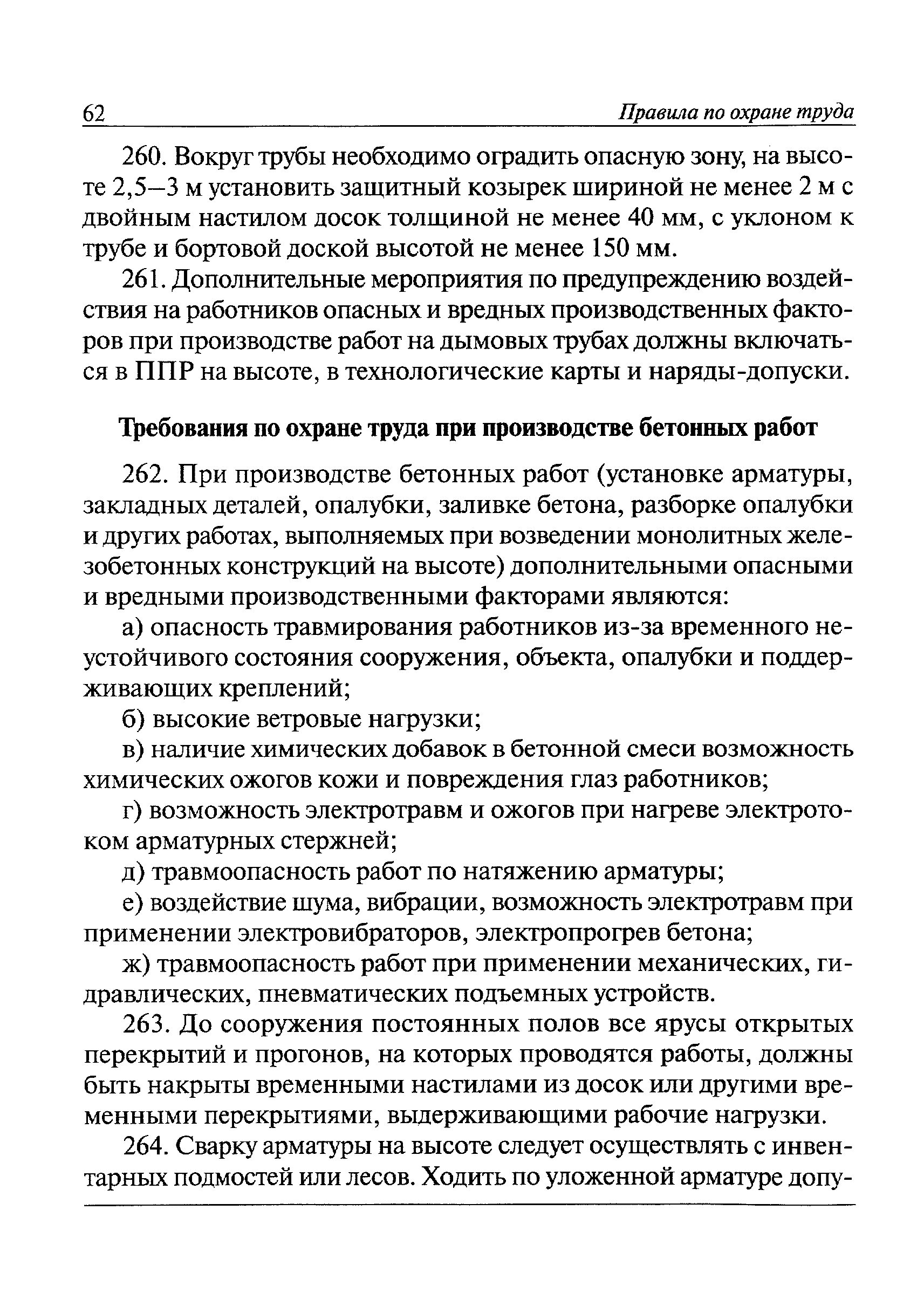 | Оглавление: | I. Общие положения II. Требования по охране труда при организации и проведении работ на высоте III. Требования по охране труда, предъявляемые к производственным помещениям и производственным площадкам IV. Требования к применению систем обеспечения безопасности работ на высоте V. Специальные требования по охране труда, предъявляемые к производству работ на высоте Приложение № 1. Примерный перечень требований, предъявляемых к работникам, проводящим работы на высоте Приложение № 2. Удостоверение о допуске к работам на высоте Приложение № 3. Наряд-допуск на производство работ на высоте Приложение № 4. Удостоверение о допуске к работам на высоте без применения инвентарных лесов и подмостей, с применением систем канатного доступа Приложение № 5. Личная книжка учета работ на высоте без применения инвентарных лесов и подмостей, с применением систем канатного доступа Приложение № 6. Содержание плана производства работ на высоте Приложение № 7. Журнал учета работ по наряду-допуску Приложение № 8. Журнал приема и осмотра лесов и подмостей Приложение № 9. Журнал учета и осмотра такелажных средств, механизмов и приспособлений Приложение № 10. Опасные факторы, обусловленные местоположением анкерных устройств Приложение № 11. Порядок установления зон повышенной опасности Приложение № 12. Системы обеспечения безопасности работ на высоте Приложение № 13. Расчет значения нагрузки в анкерном устройстве Приложение № 14. Система канатного доступа Приложение № 15. Системы обеспечения безопасности работника при перемещении по конструкциям Приложение № 16. Графические схемы различных тормозных систем, их характеристики, соотношение усилий, возникающих на анкерных устройствах в зависимости от углов перегиба страховочного каната и усилия рывка Приложение № 17. Рекомендуемые узлы и полиспасты, используемые при подъеме и спуске грузов |
