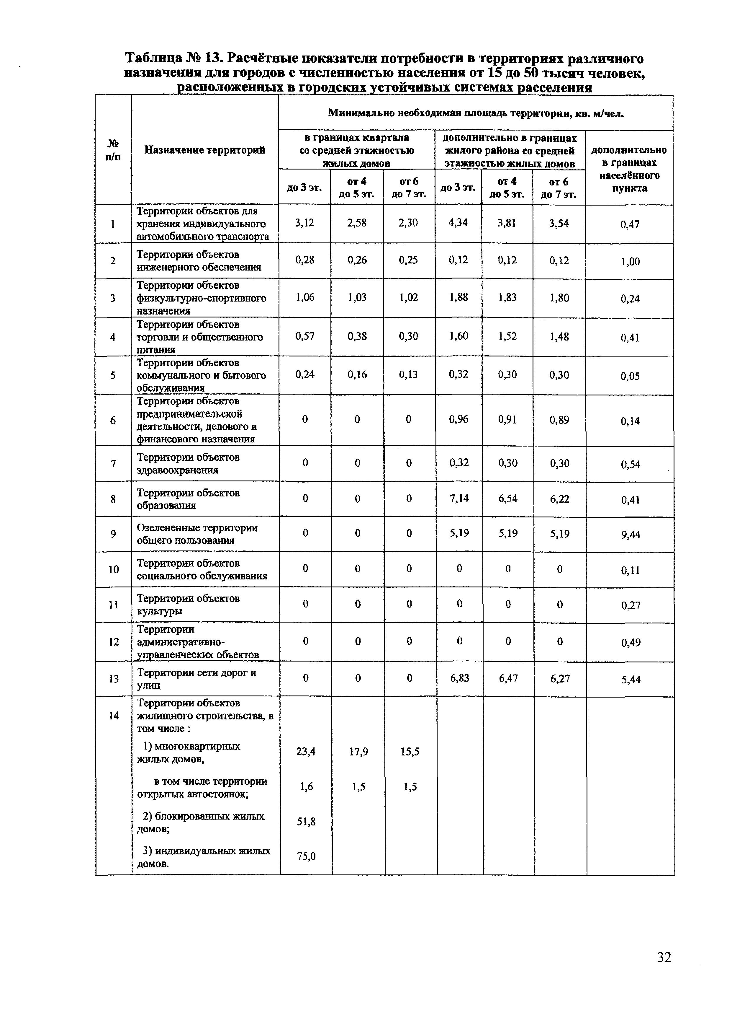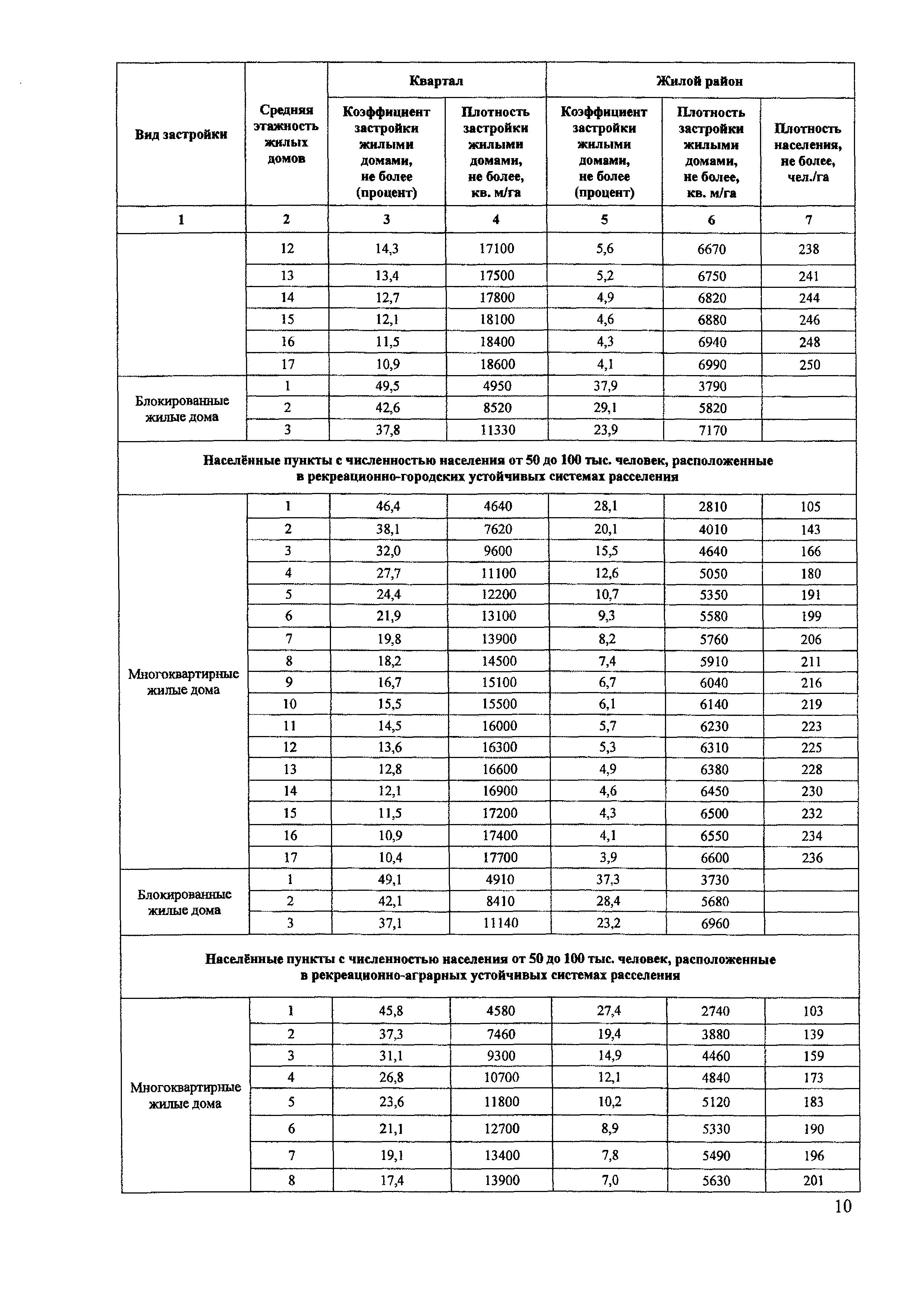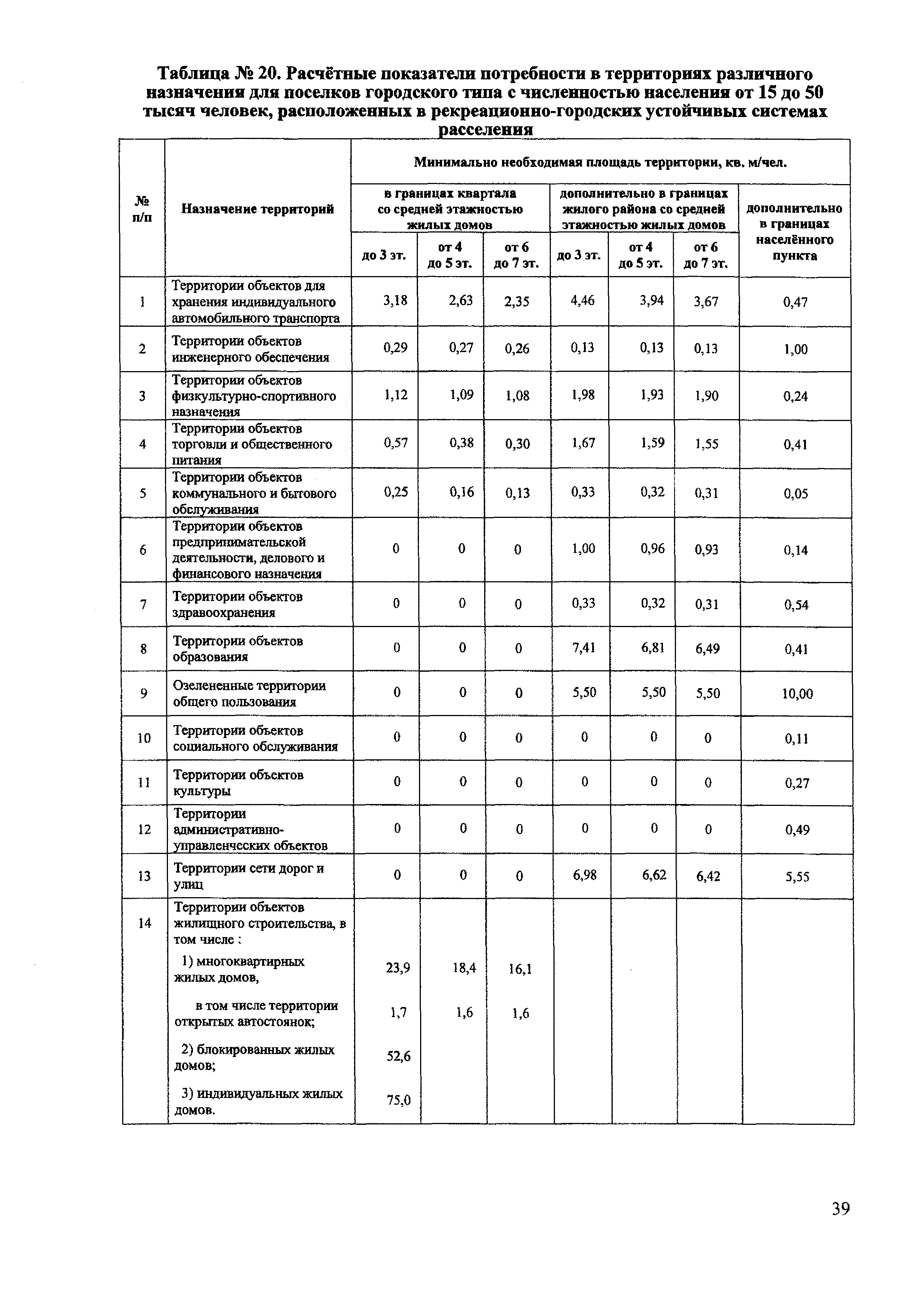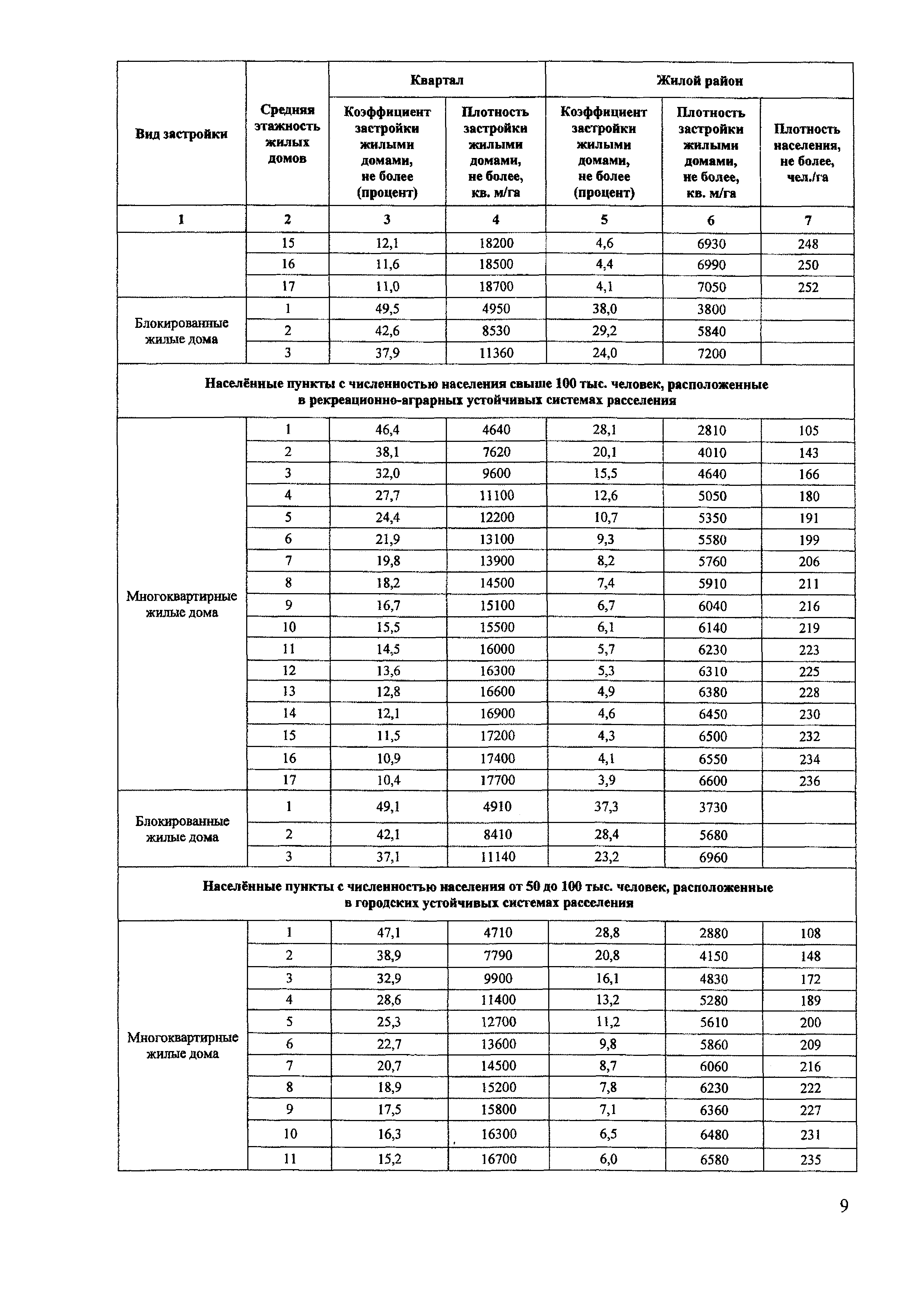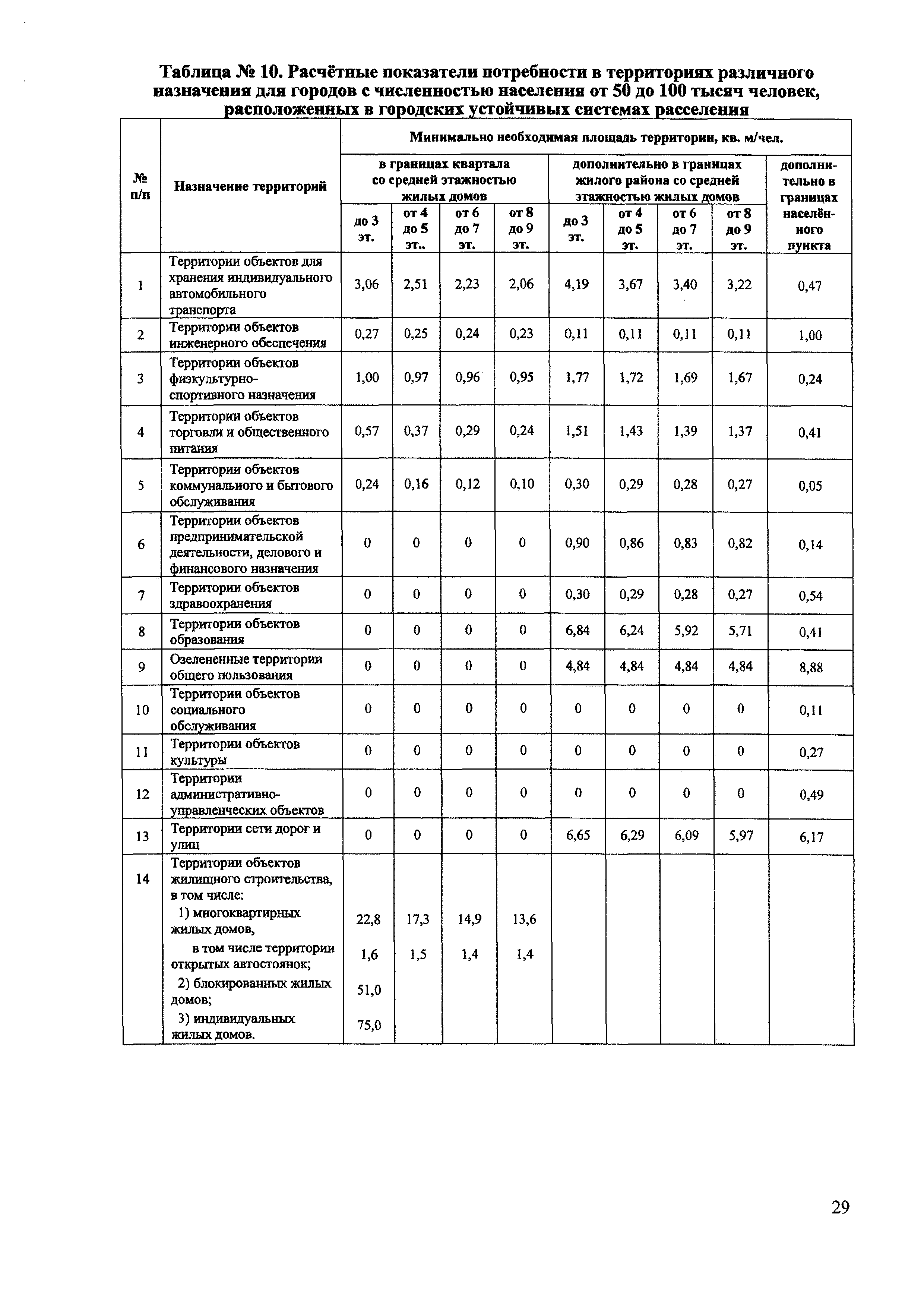| Оглавление: | Общие положения Раздел I. Расчетные показатели интенсивности использования жилых территорий в населенных пунктах и плотности населения на жилых территориях при различных показателях жилищной обеспеченности и при различных типах застройки Раздел II. Расчетные показатели интенсивности использования производственных территорий в населенных пунктах Раздел III. Расчетные показатели плотности сети автомобильных дорог общего пользования Раздел IV. Расчетные показатели плотности сети общественного пассажирского транспорта Раздел V. Расчетные показатели потребности в территориях различного назначения Раздел VI. Расчетные показатели допустимой пешеходной и транспортной доступности объектов социального и культурного обслуживания Раздел VII. Расчетные показатели при различных планировочных условиях минимально и максимально допустимых расстояний между проектируемыми: улицами, проездами, разъездными площадками применительно к различным элементам планировочной структуры территории; зданиями, строениями и сооружениями различных типов Раздел VIII. Расчетные показатели обеспеченности жителей Московской области основными видами инженерного обеспечения (энерго-, тепло-, газоснабжение, водоснабжение, водоотведение) в целом по Московской области и дифференцированные по отдельным территориям Московской области Раздел IX. Допустимые соотношения застроенных, лесных и сельскохозяйственных территорий по Московской области в целом и дифференцированные по отдельным территориям Московской области Приложение № 1. Типология устойчивых систем расселения Московской области Приложение № 2. Состав устойчивых систем расселения Московской области Приложение № 3. Дифференциация городов Московской области по численности населения Приложение № 4. Дифференциация поселков городского типа Московской области по численности населения Приложение № 5. Примерный состав объектов различного назначения, размещаемых в границах квартала, жилого района и населенного пункта |