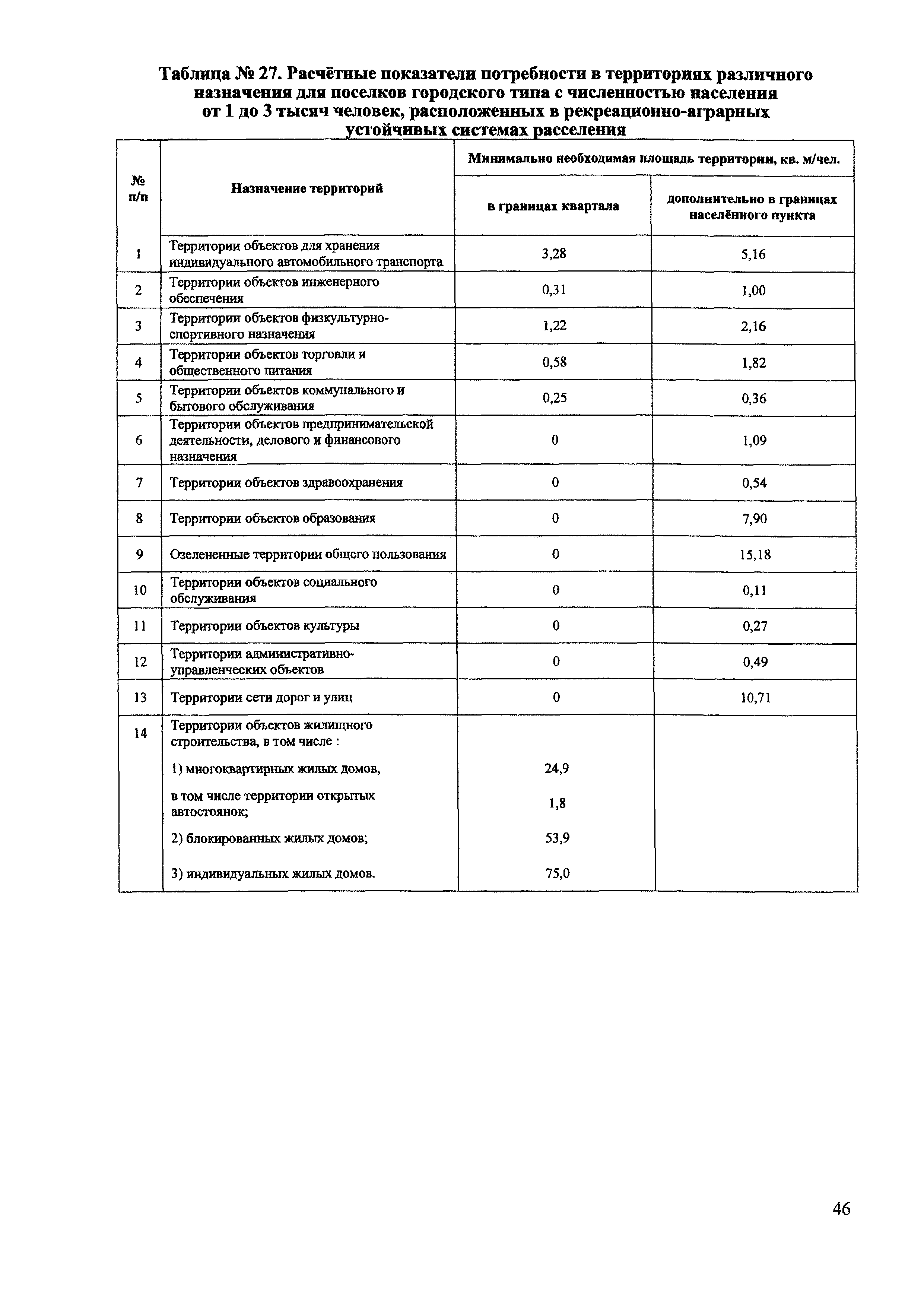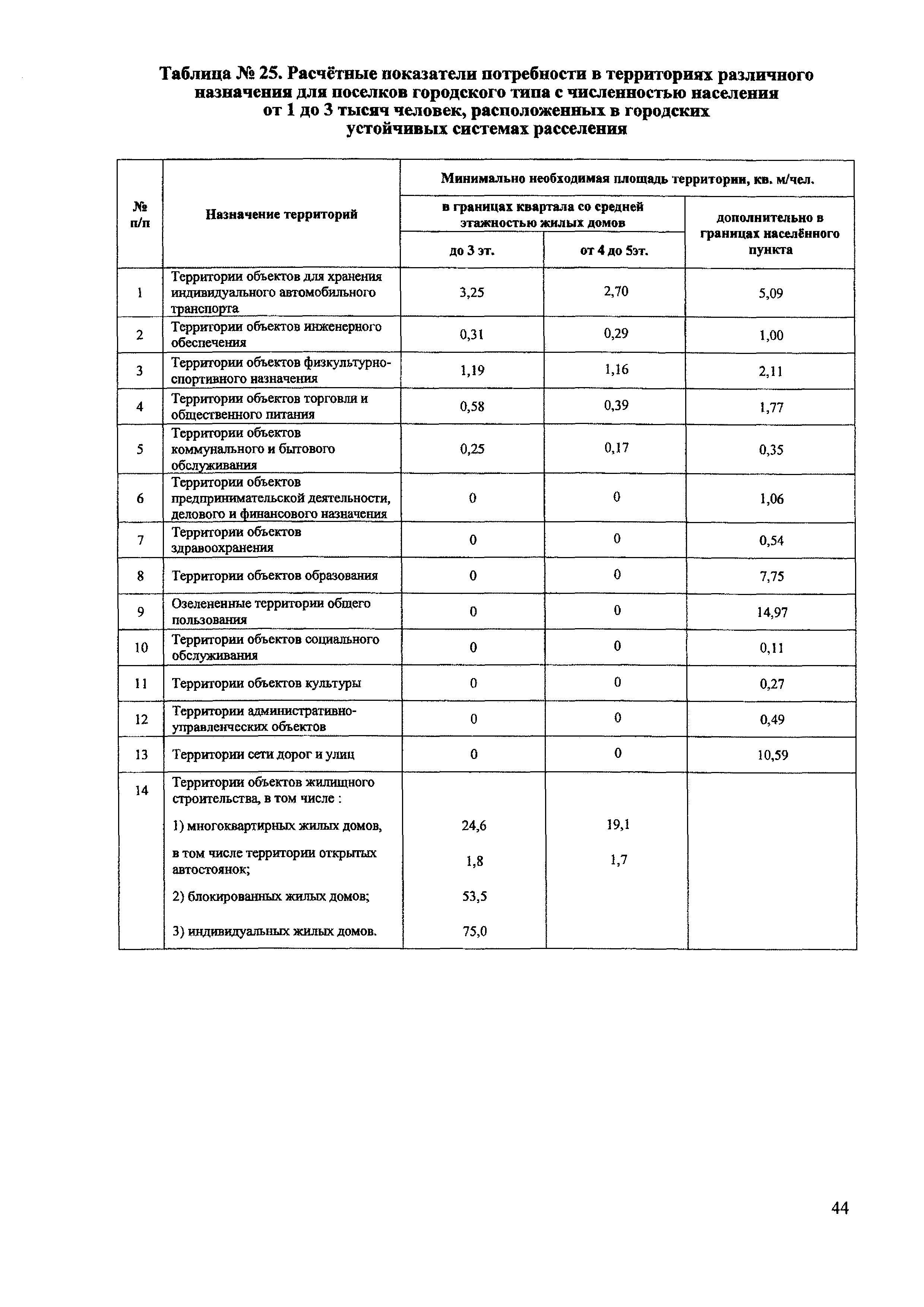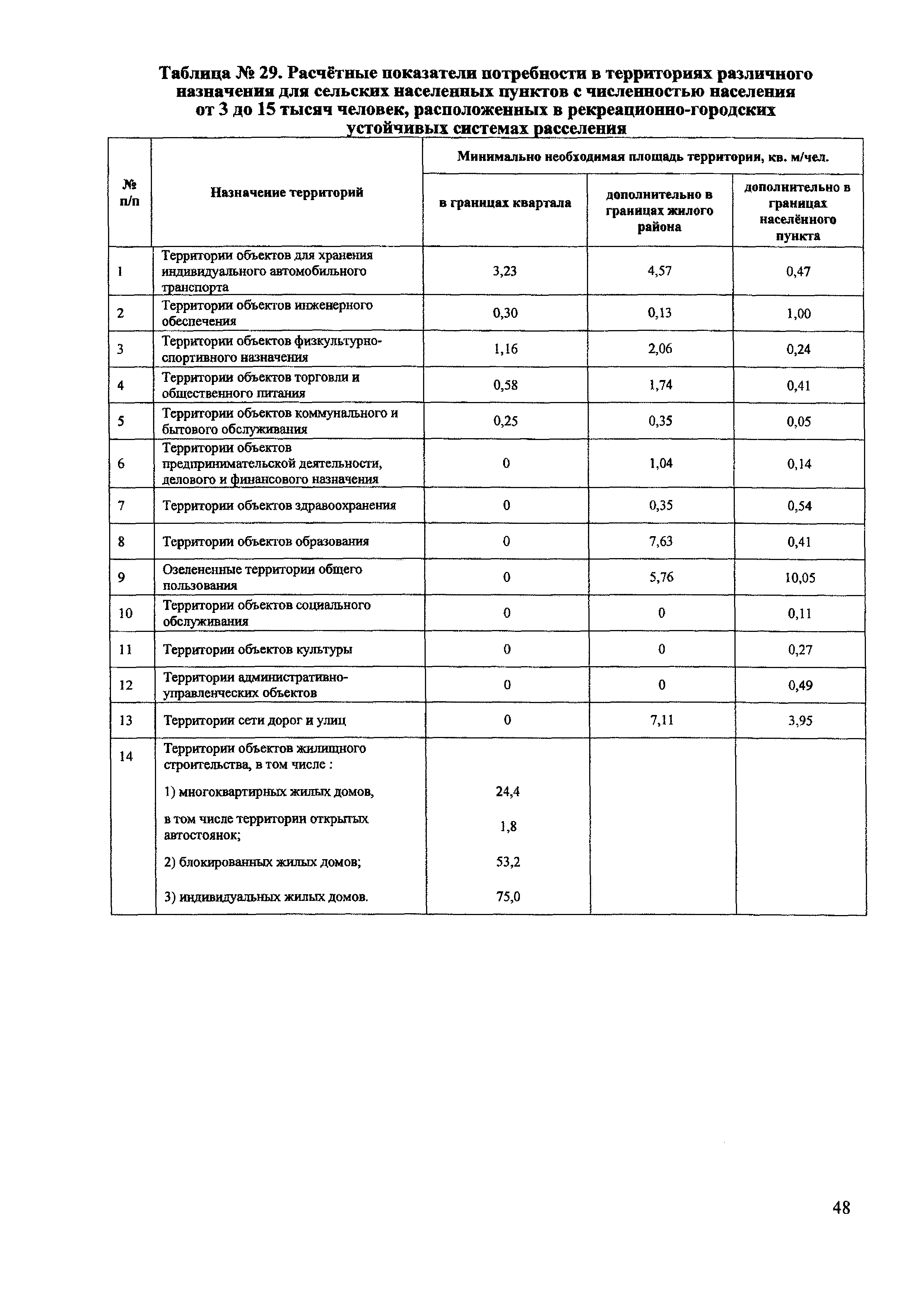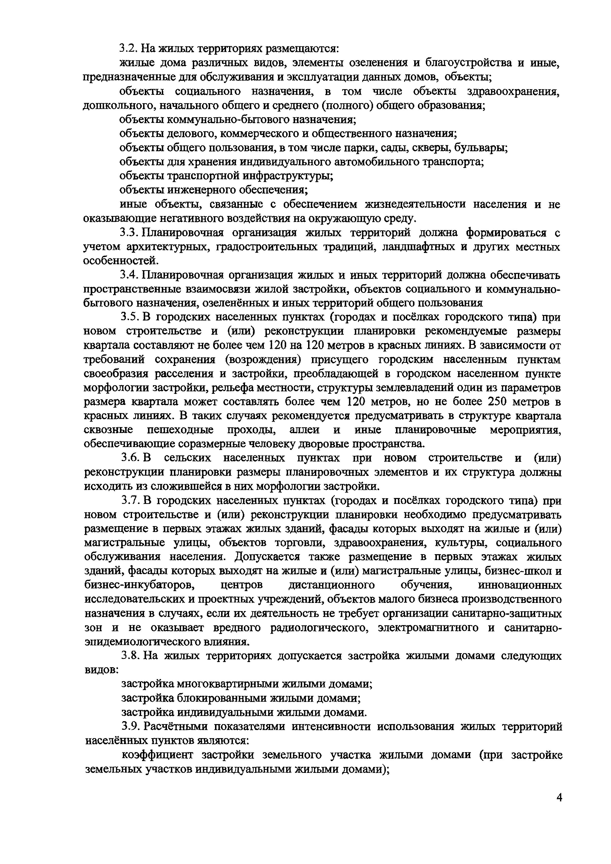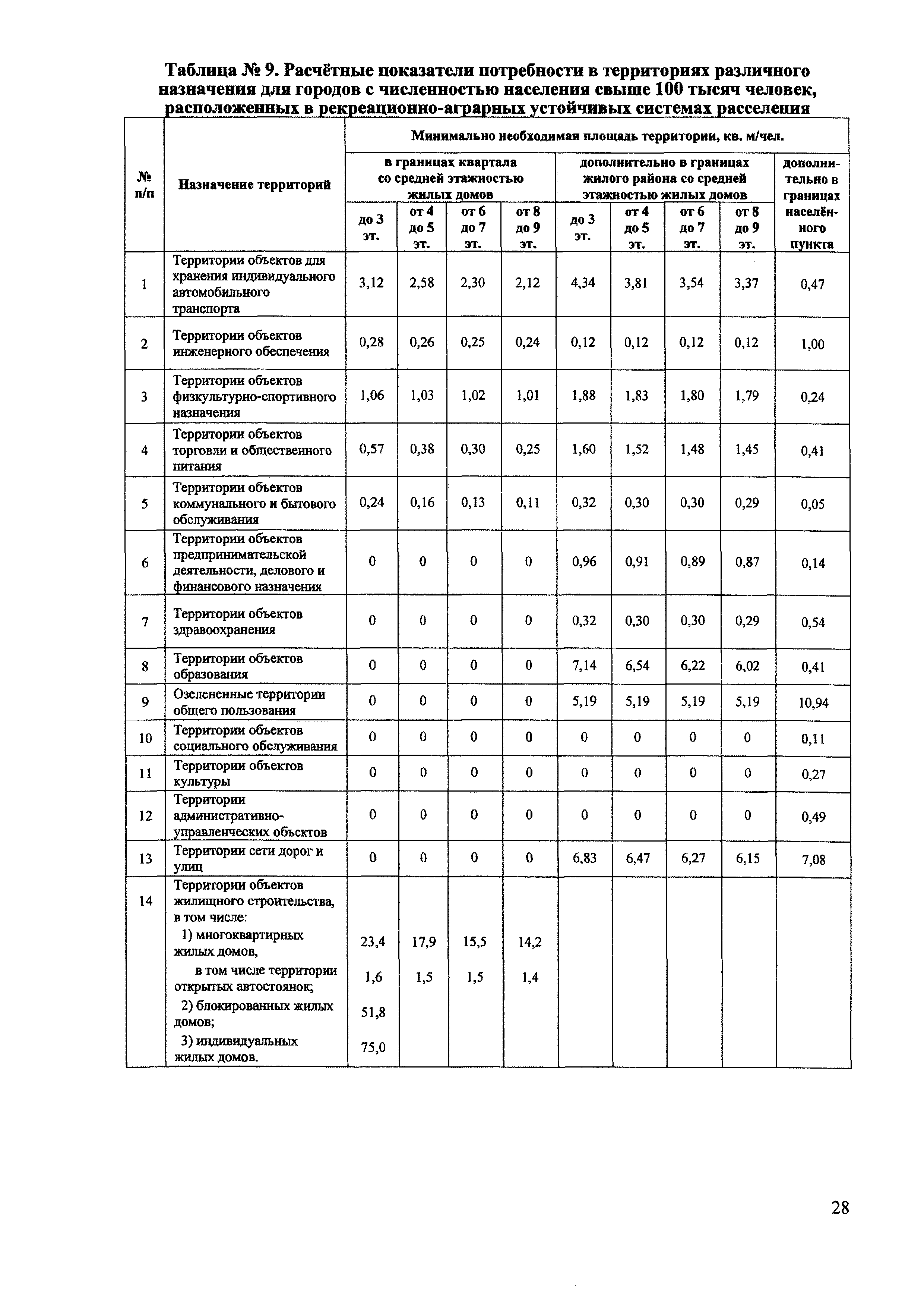 | Оглавление: | Общие положения Раздел I. Расчетные показатели интенсивности использования жилых территорий в населенных пунктах и плотности населения на жилых территориях при различных показателях жилищной обеспеченности и при различных типах застройки Раздел II. Расчетные показатели интенсивности использования производственных территорий в населенных пунктах Раздел III. Расчетные показатели плотности сети автомобильных дорог общего пользования Раздел IV. Расчетные показатели плотности сети общественного пассажирского транспорта Раздел V. Расчетные показатели потребности в территориях различного назначения Раздел VI. Расчетные показатели допустимой пешеходной и транспортной доступности объектов социального и культурного обслуживания Раздел VII. Расчетные показатели при различных планировочных условиях минимально и максимально допустимых расстояний между проектируемыми: улицами, проездами, разъездными площадками применительно к различным элементам планировочной структуры территории; зданиями, строениями и сооружениями различных типов Раздел VIII. Расчетные показатели обеспеченности жителей Московской области основными видами инженерного обеспечения (энерго-, тепло-, газоснабжение, водоснабжение, водоотведение) в целом по Московской области и дифференцированные по отдельным территориям Московской области Раздел IX. Допустимые соотношения застроенных, лесных и сельскохозяйственных территорий по Московской области в целом и дифференцированные по отдельным территориям Московской области Приложение № 1. Типология устойчивых систем расселения Московской области Приложение № 2. Состав устойчивых систем расселения Московской области Приложение № 3. Дифференциация городов Московской области по численности населения Приложение № 4. Дифференциация поселков городского типа Московской области по численности населения Приложение № 5. Примерный состав объектов различного назначения, размещаемых в границах квартала, жилого района и населенного пункта |