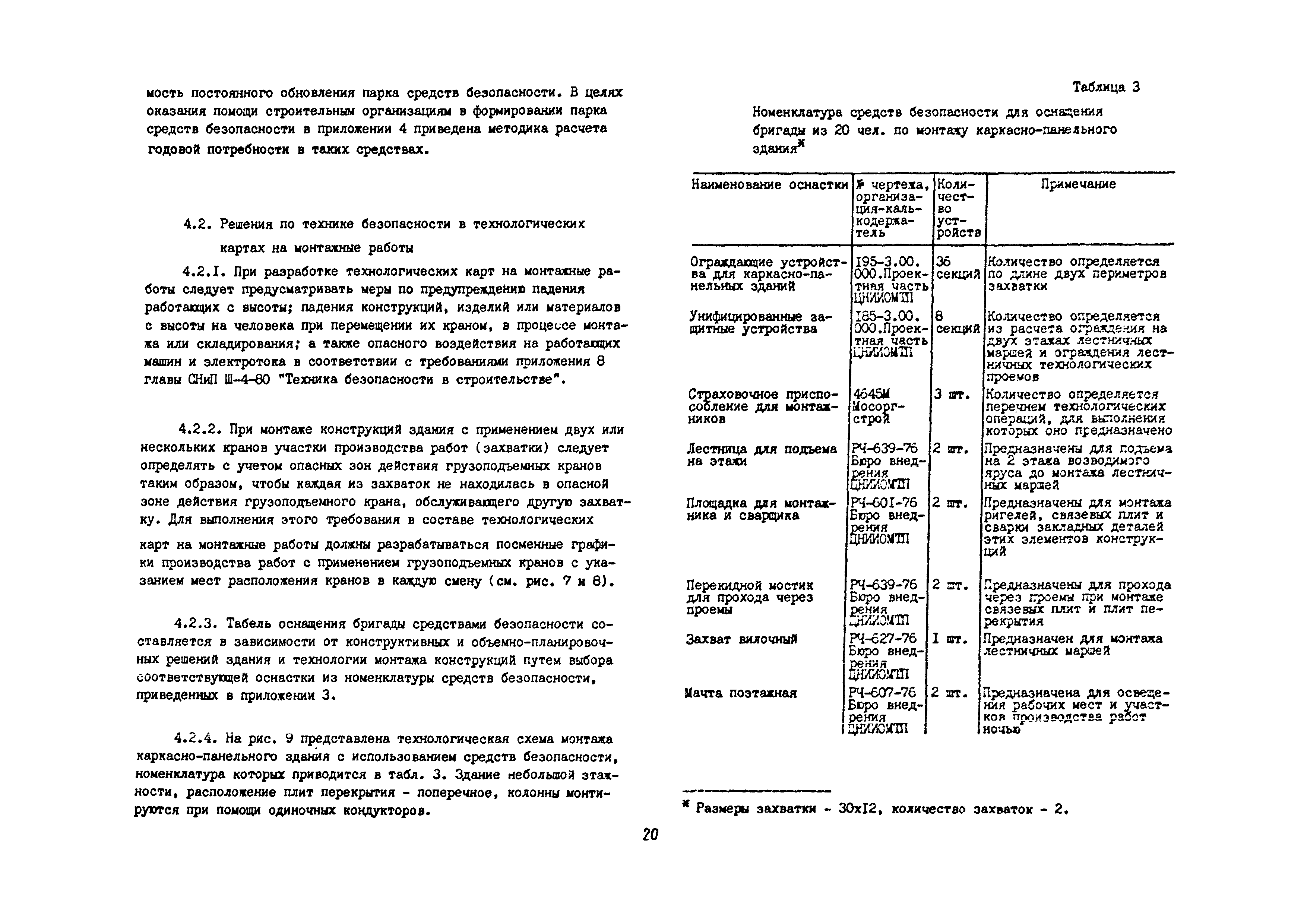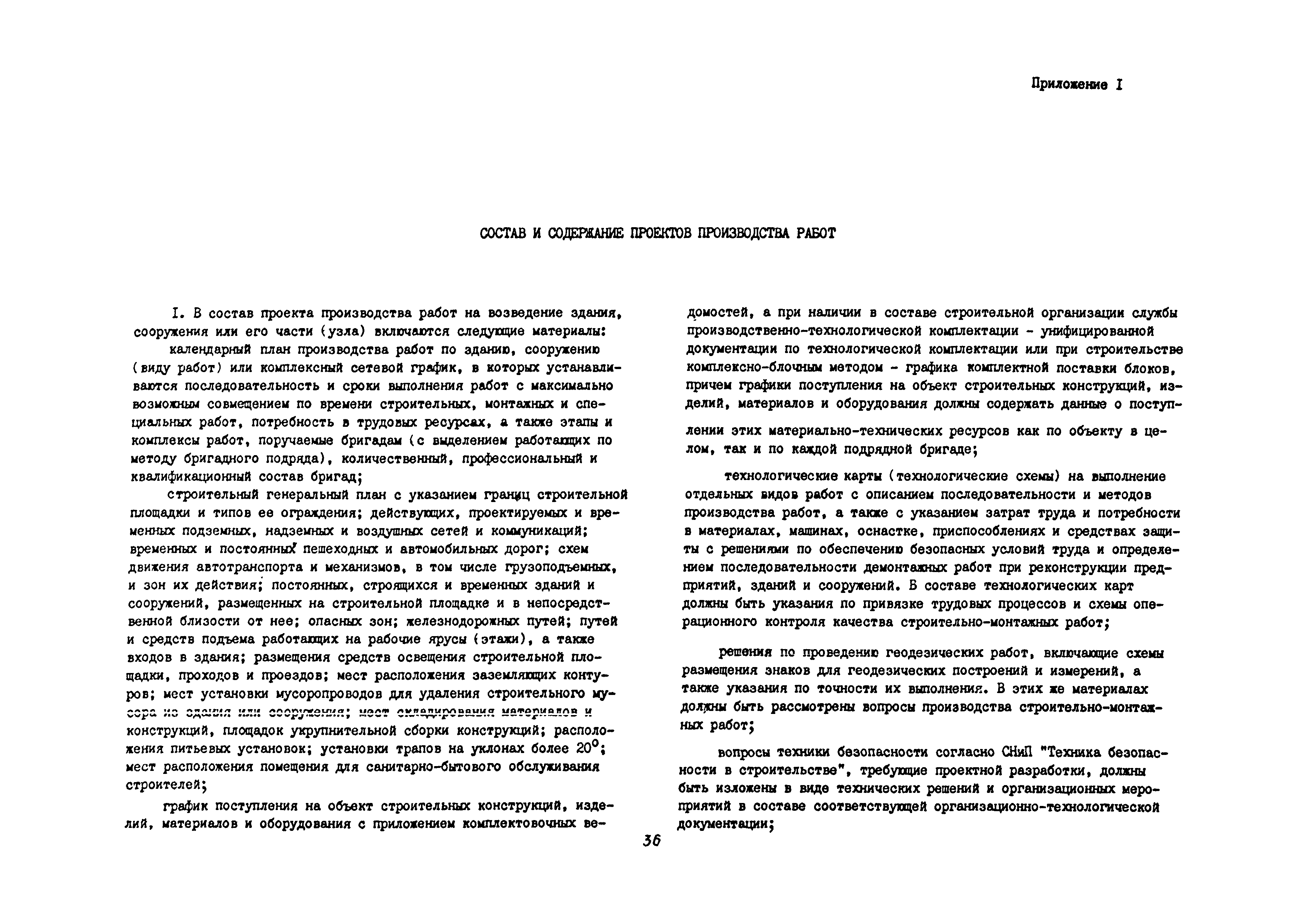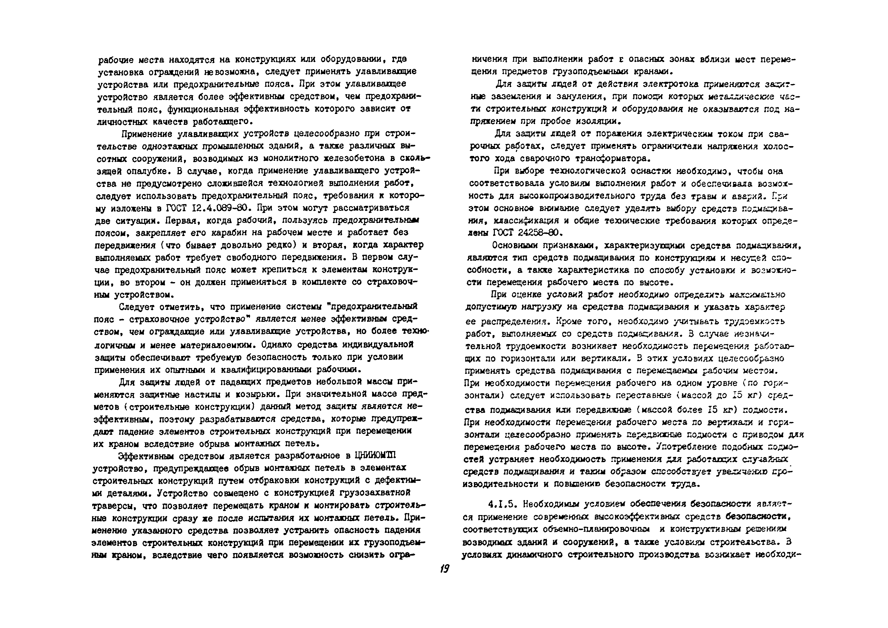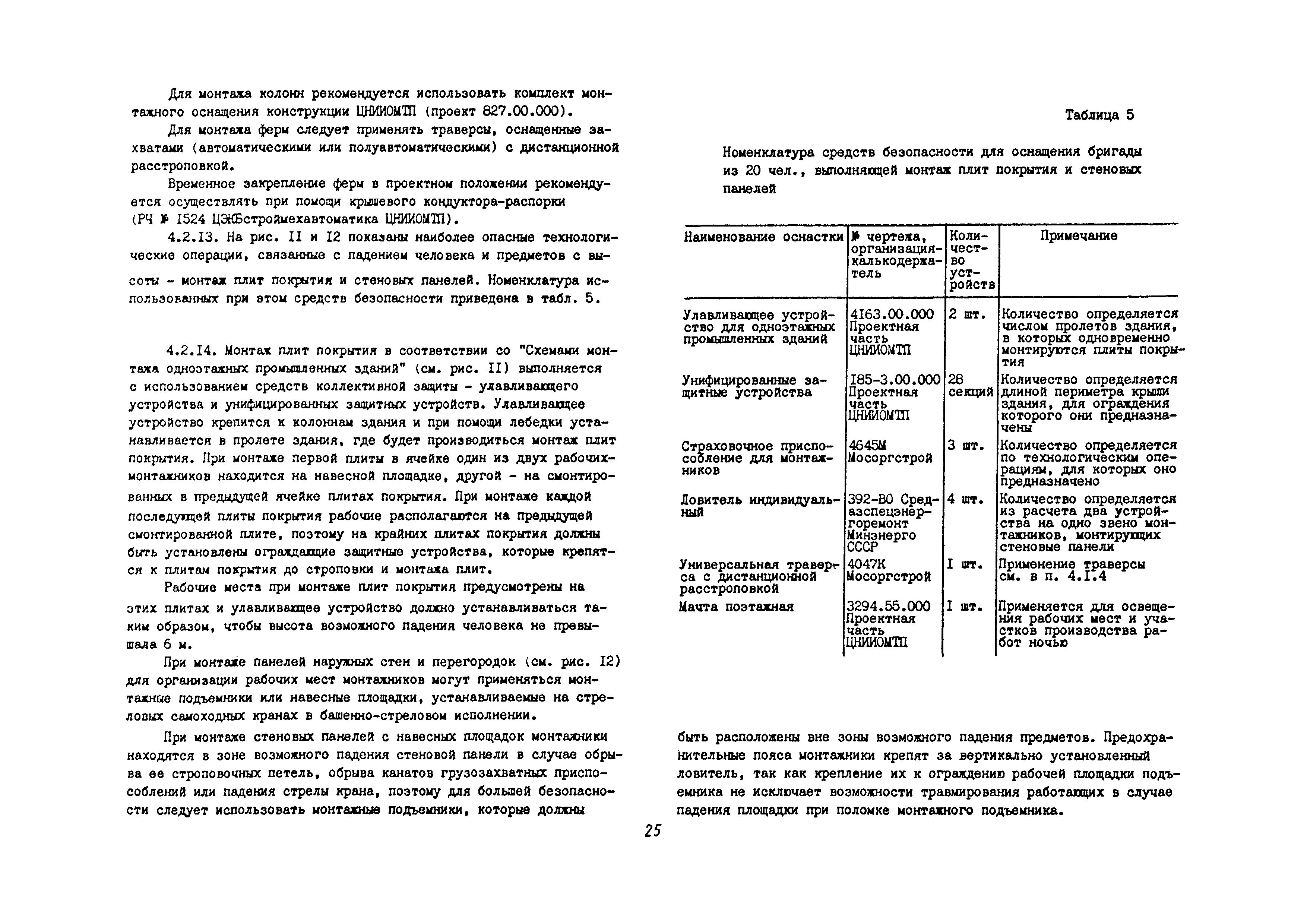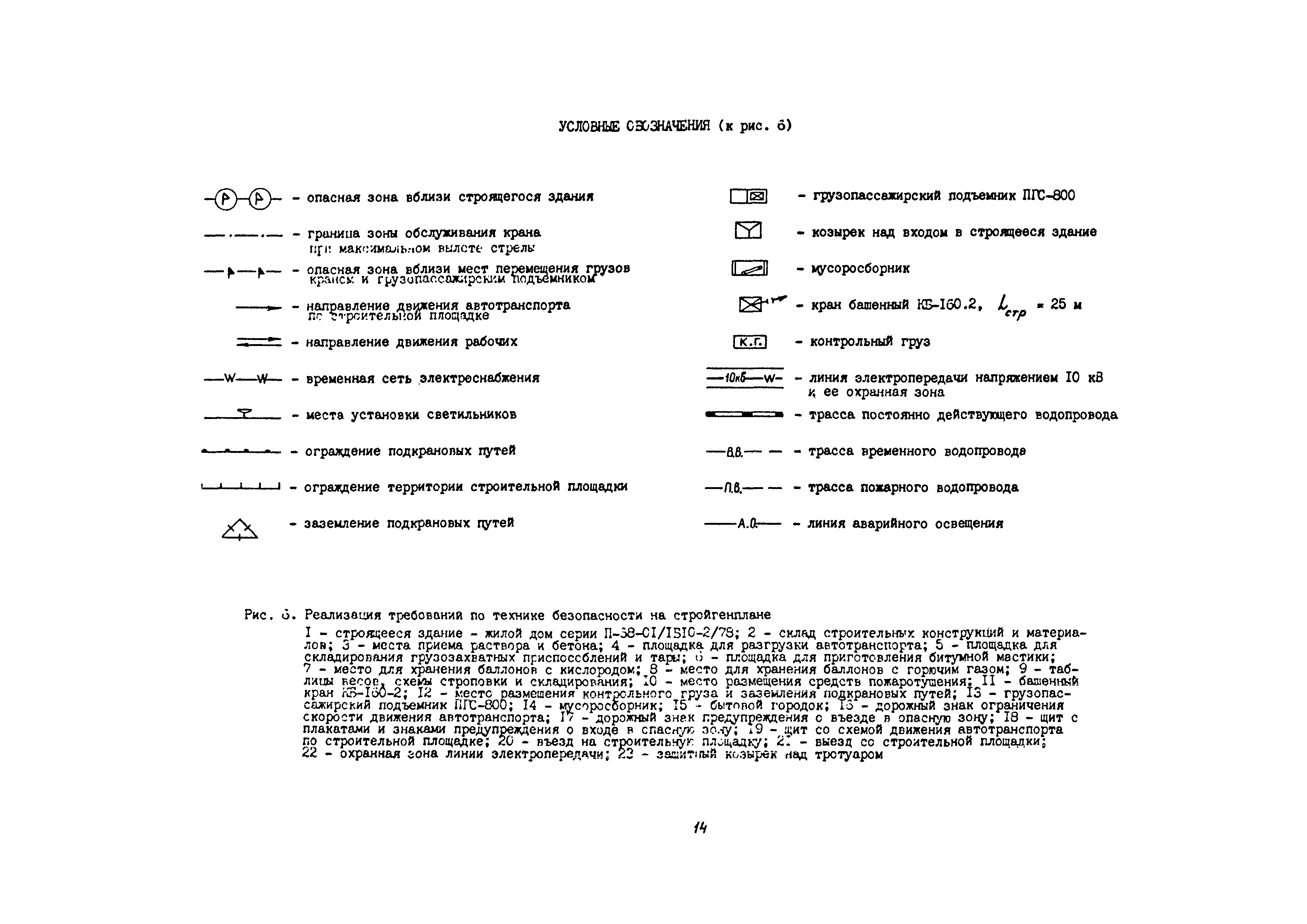| Оглавление: | 1 Общие методические положения 2 Организация стройплощадки и рабочих мест с учетом опасных зон 3 Реализация требований техники безопасности в составе стройгенплана 4 Состав и содержание решений по технике безопасности в технологических картах 4.1 Общая характеристика решений и технических средств, предусматриваемых в технологических картах 4.2 Решения по технике безопасности в технологических картах на монтажные работы 4.3 Решения по технике безопасности в технологических картах на каменные работы 4.4 Решения по технике безопасности в технологических картах на отделочные работы 4.5 Решения по технике безопасности в технологических картах на кровельные работы 5. Решения по технике безопасности в календарных планах производства работ по возведению надземной части зданий Приложение 1. Состав и содержание проектов производства работ Приложение 2. Схемы складирования строительных материалов и элементов строительных конструкций с соблюдением требований техники безопасности Приложение 3. Номенклатура средств безопасности, предназначенных для внедрения в строительных организациях в рамках программы "Травмобезопасность" Приложение 4. Расчет годовой потребности средств безопасности для строительных организаций |