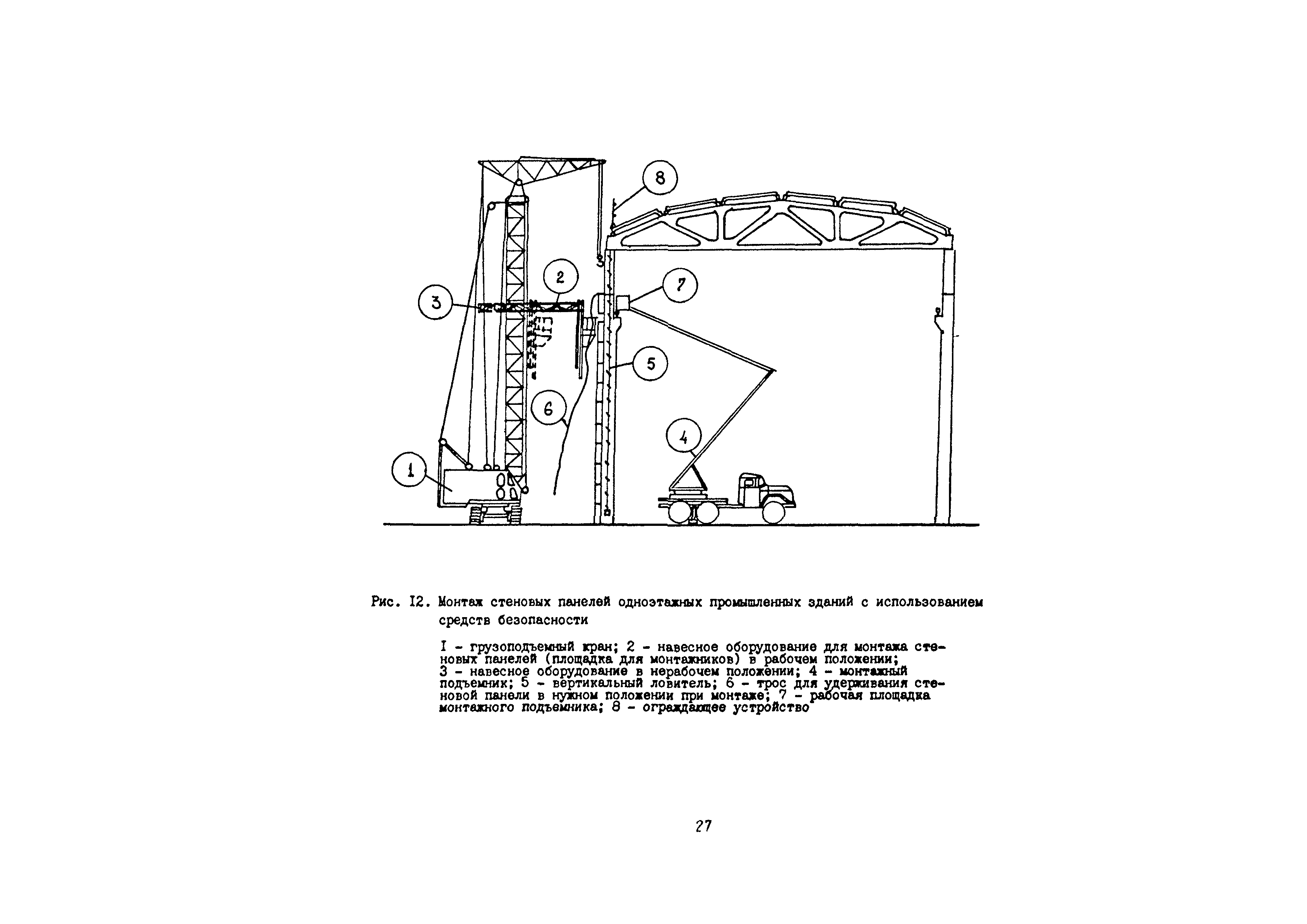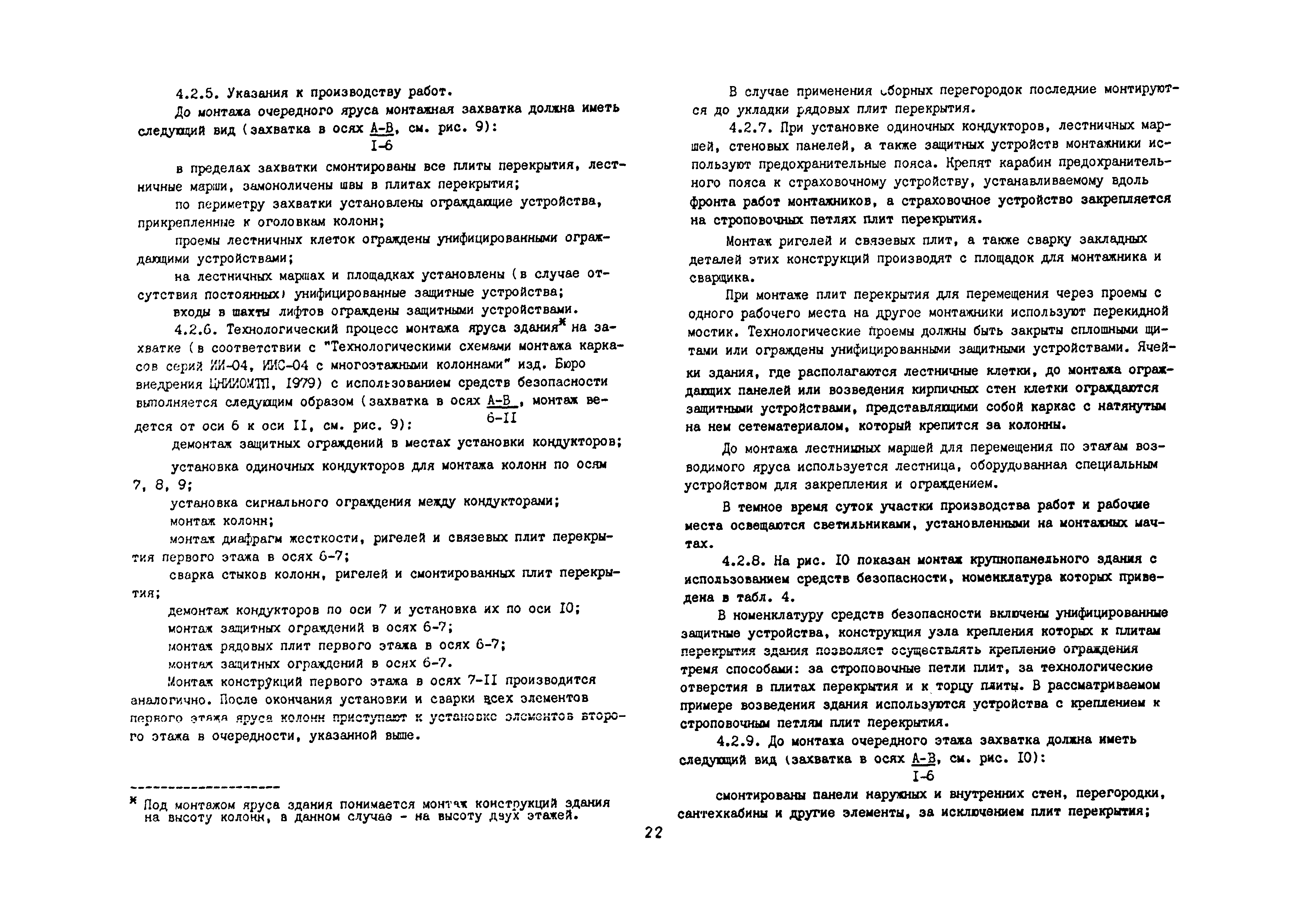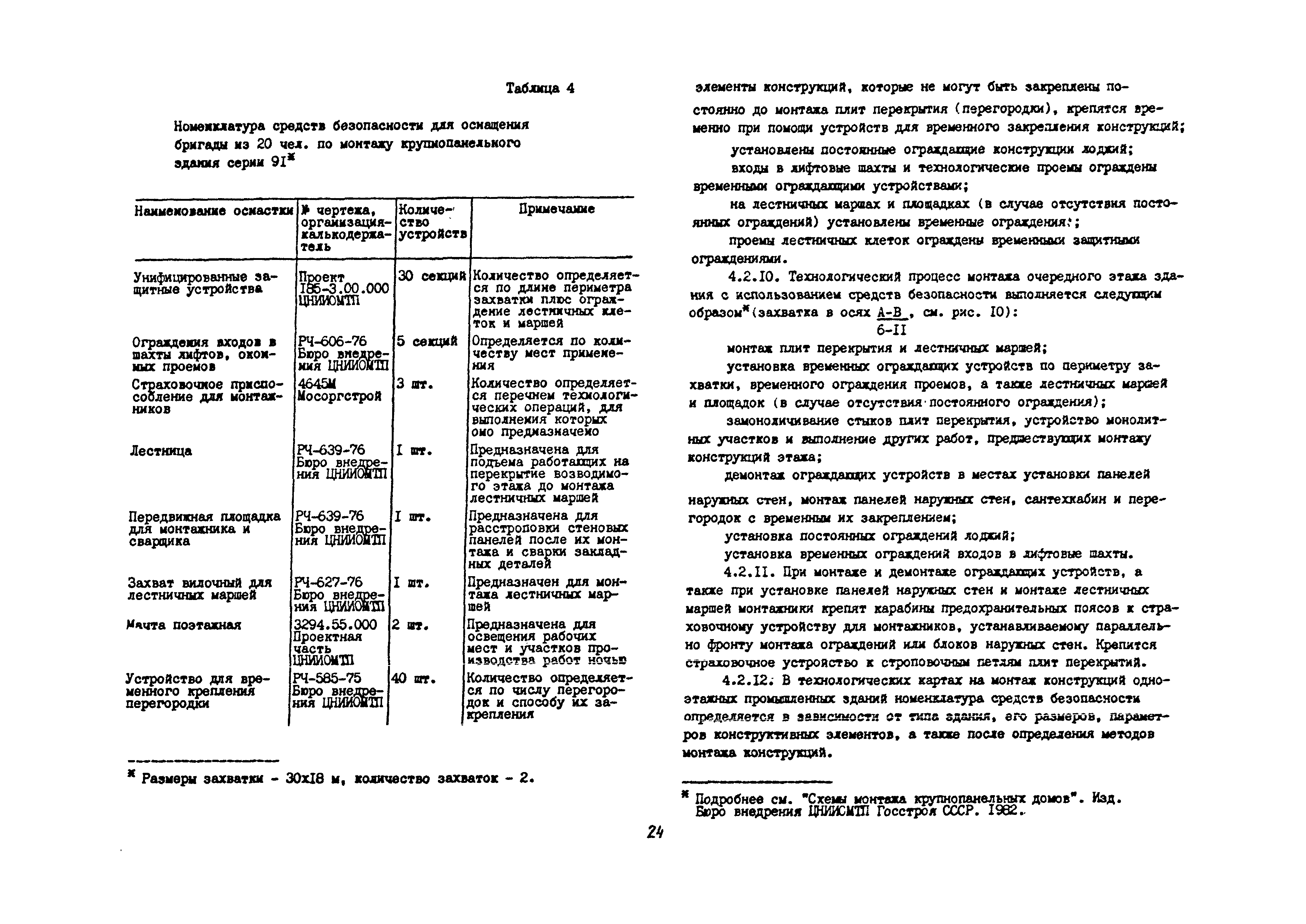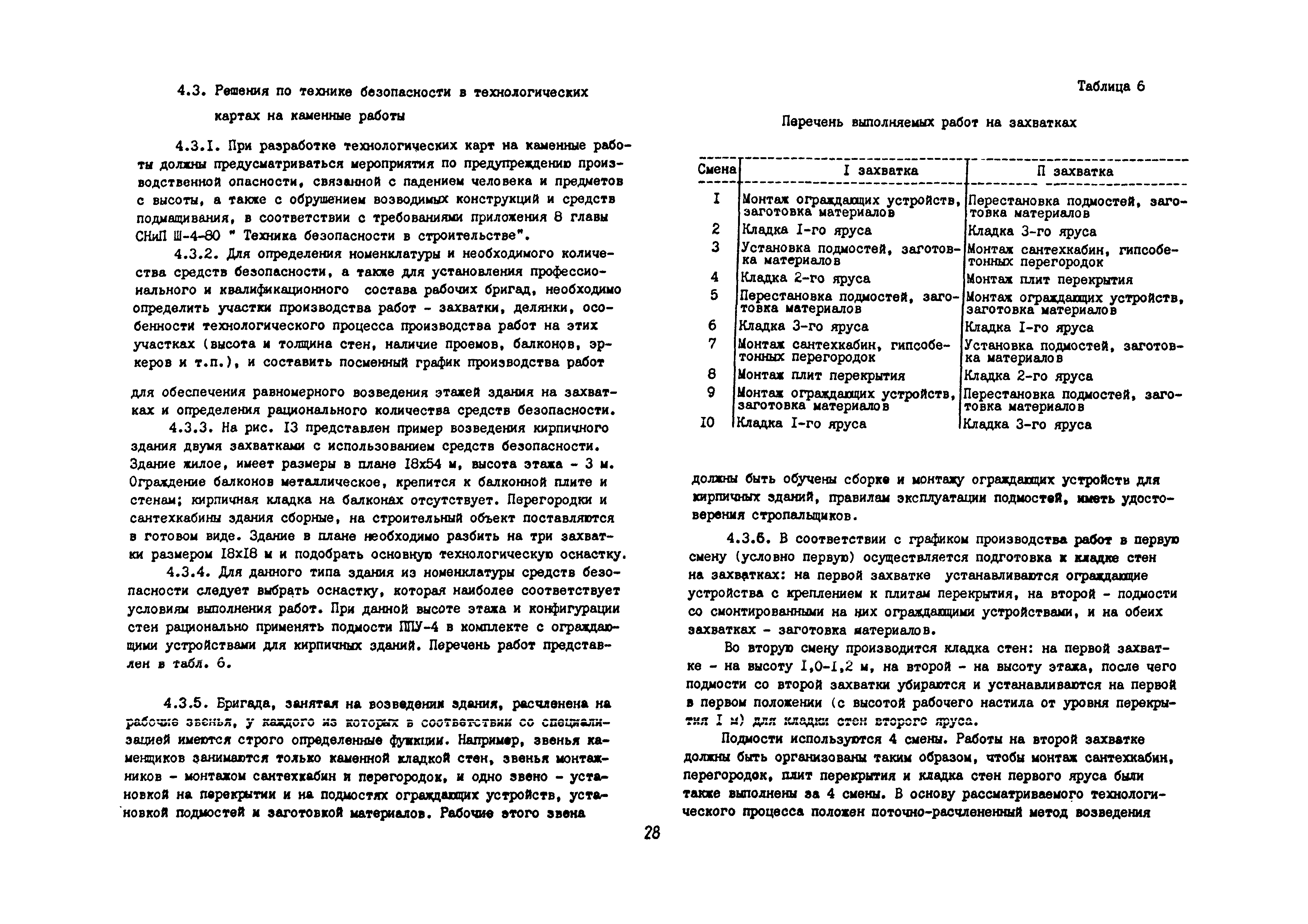 | Оглавление: | 1 Общие методические положения 2 Организация стройплощадки и рабочих мест с учетом опасных зон 3 Реализация требований техники безопасности в составе стройгенплана 4 Состав и содержание решений по технике безопасности в технологических картах 4.1 Общая характеристика решений и технических средств, предусматриваемых в технологических картах 4.2 Решения по технике безопасности в технологических картах на монтажные работы 4.3 Решения по технике безопасности в технологических картах на каменные работы 4.4 Решения по технике безопасности в технологических картах на отделочные работы 4.5 Решения по технике безопасности в технологических картах на кровельные работы 5. Решения по технике безопасности в календарных планах производства работ по возведению надземной части зданий Приложение 1. Состав и содержание проектов производства работ Приложение 2. Схемы складирования строительных материалов и элементов строительных конструкций с соблюдением требований техники безопасности Приложение 3. Номенклатура средств безопасности, предназначенных для внедрения в строительных организациях в рамках программы "Травмобезопасность" Приложение 4. Расчет годовой потребности средств безопасности для строительных организаций |