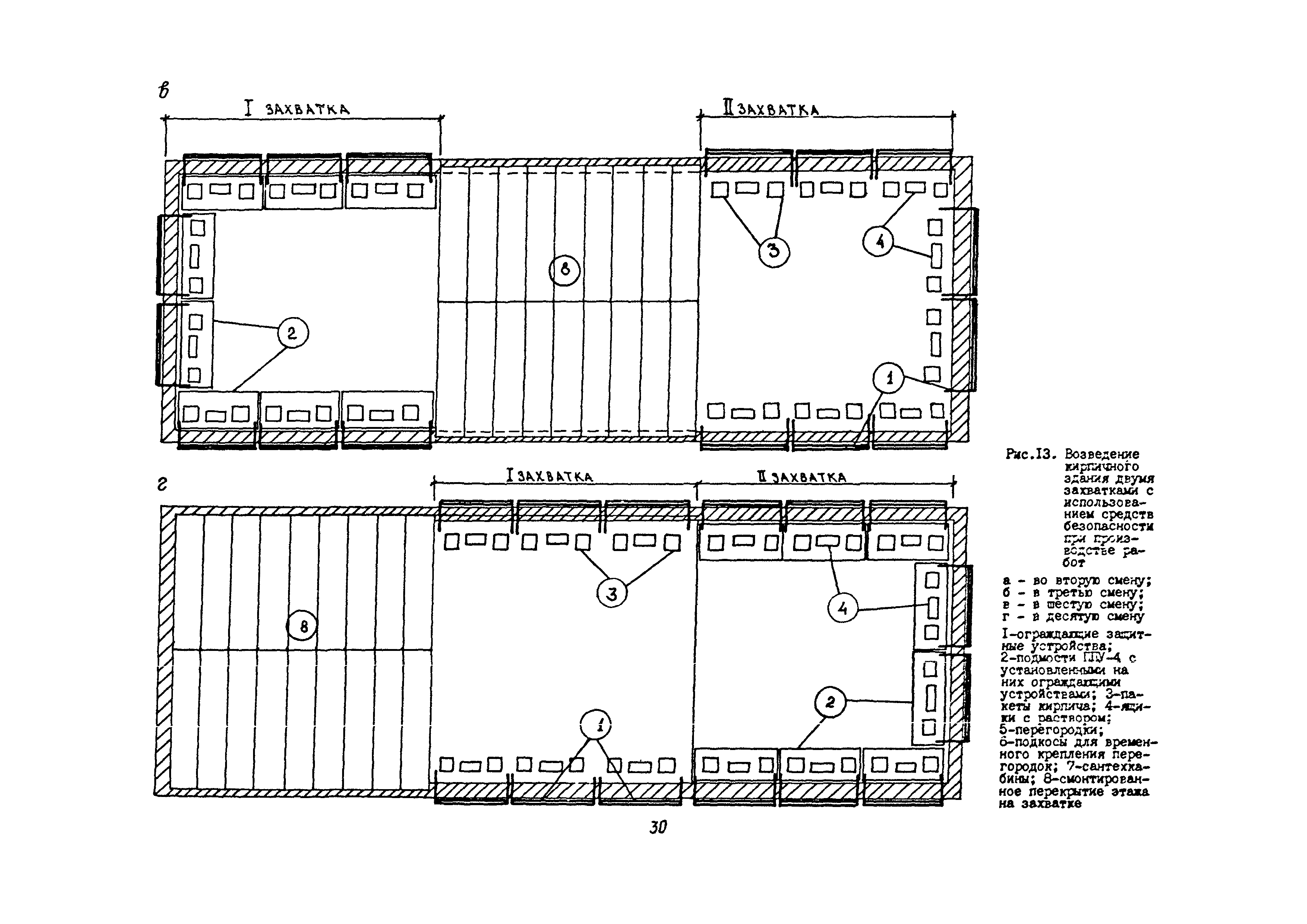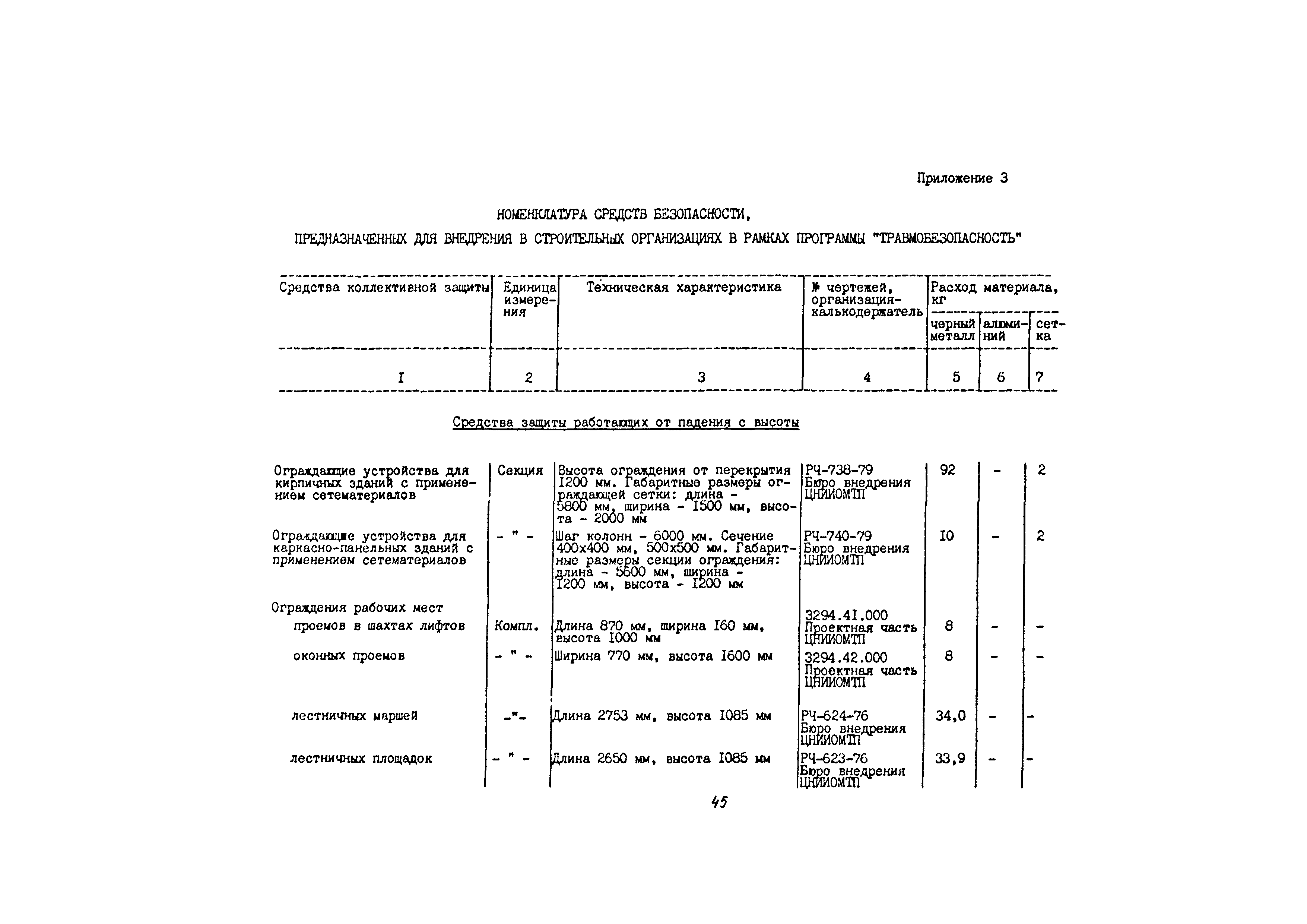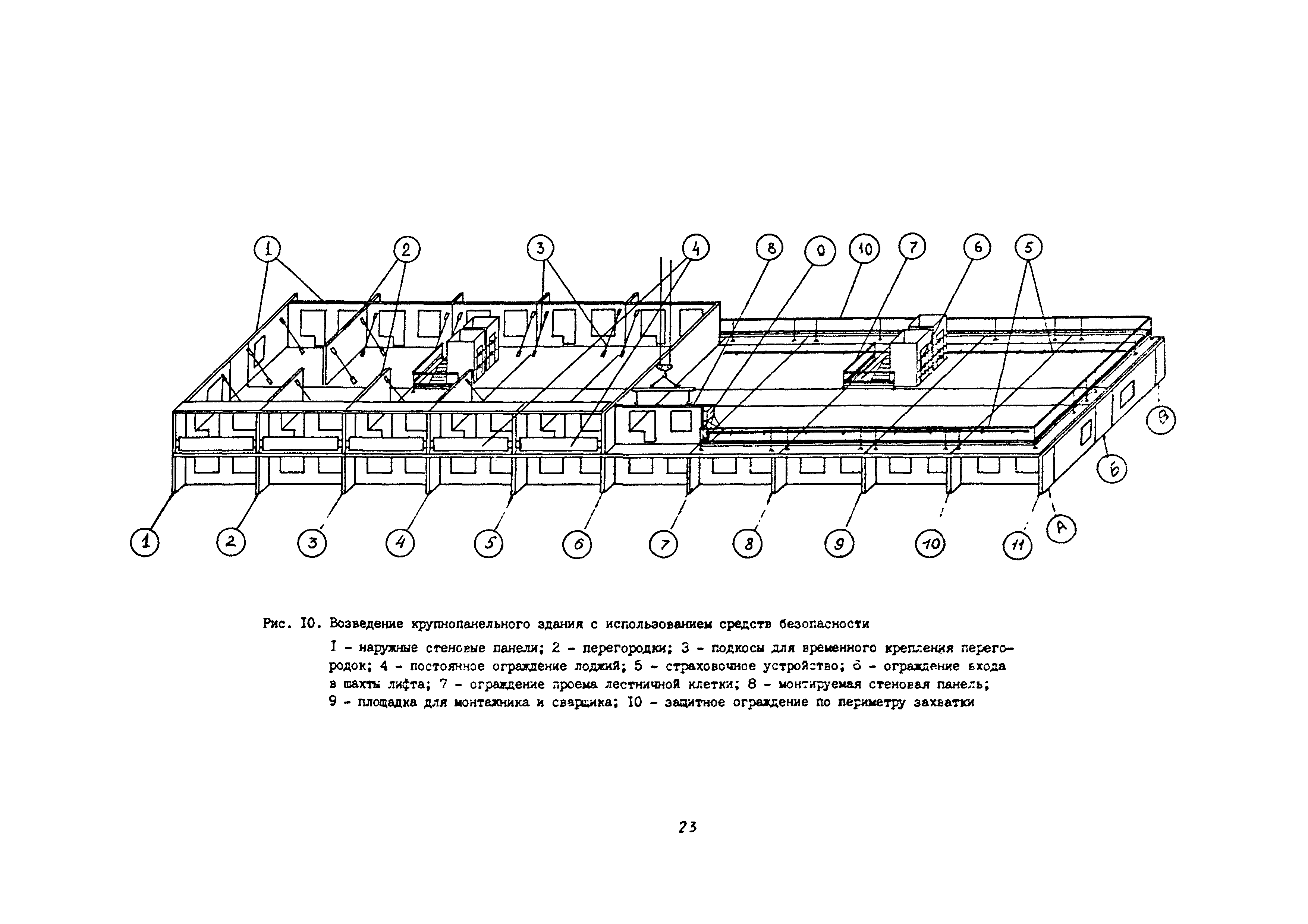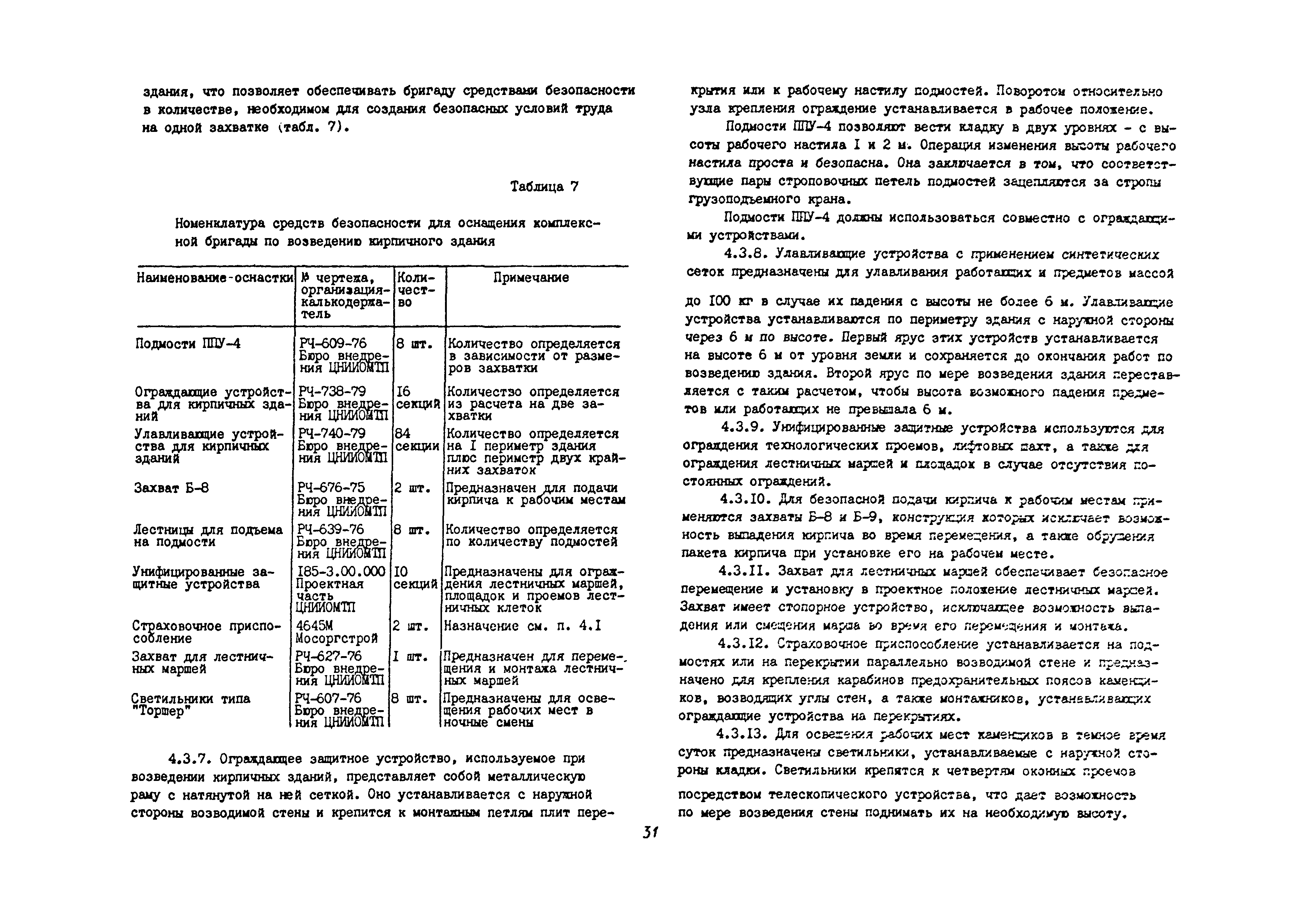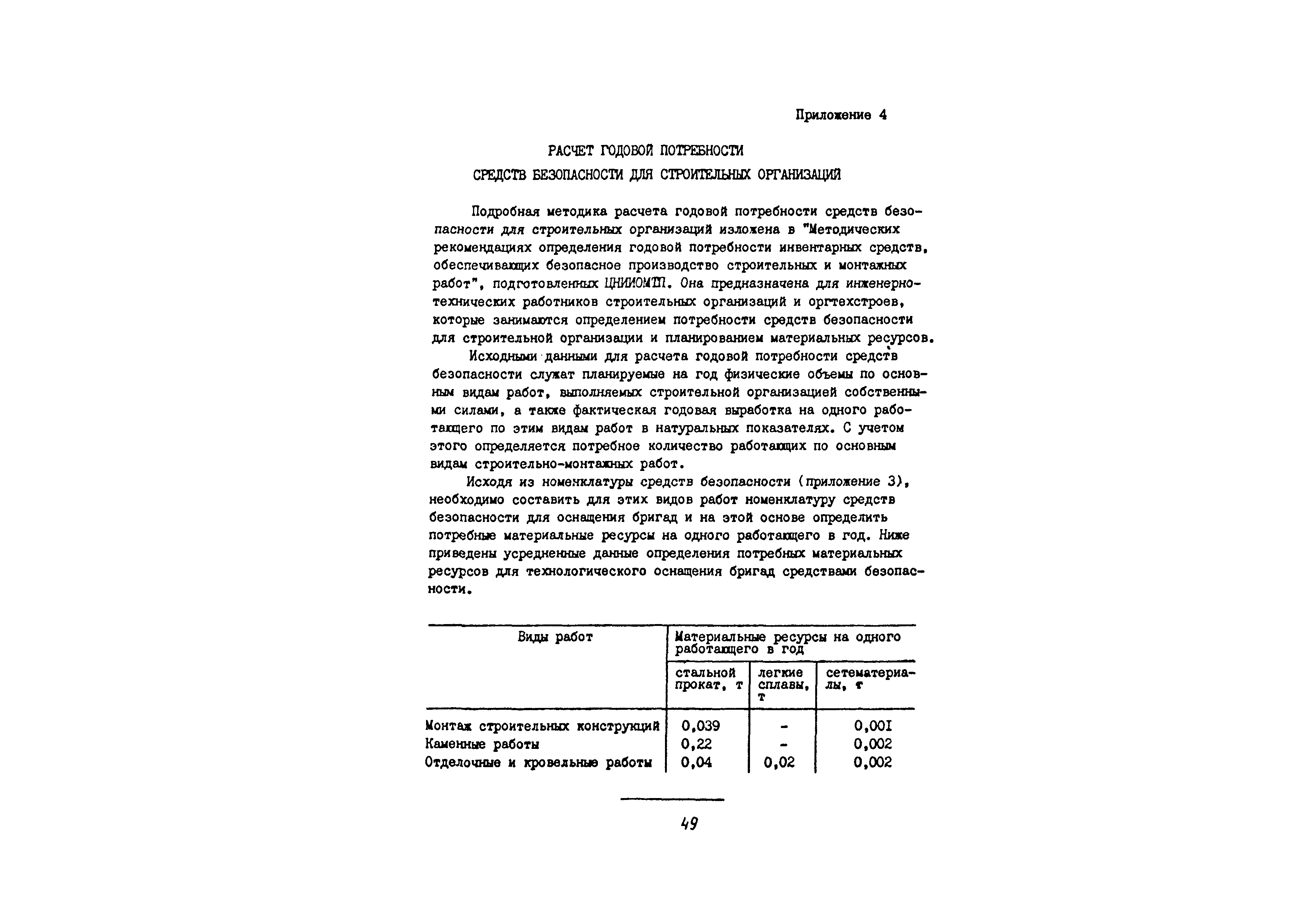 | Оглавление: | 1 Общие методические положения 2 Организация стройплощадки и рабочих мест с учетом опасных зон 3 Реализация требований техники безопасности в составе стройгенплана 4 Состав и содержание решений по технике безопасности в технологических картах 4.1 Общая характеристика решений и технических средств, предусматриваемых в технологических картах 4.2 Решения по технике безопасности в технологических картах на монтажные работы 4.3 Решения по технике безопасности в технологических картах на каменные работы 4.4 Решения по технике безопасности в технологических картах на отделочные работы 4.5 Решения по технике безопасности в технологических картах на кровельные работы 5. Решения по технике безопасности в календарных планах производства работ по возведению надземной части зданий Приложение 1. Состав и содержание проектов производства работ Приложение 2. Схемы складирования строительных материалов и элементов строительных конструкций с соблюдением требований техники безопасности Приложение 3. Номенклатура средств безопасности, предназначенных для внедрения в строительных организациях в рамках программы "Травмобезопасность" Приложение 4. Расчет годовой потребности средств безопасности для строительных организаций |