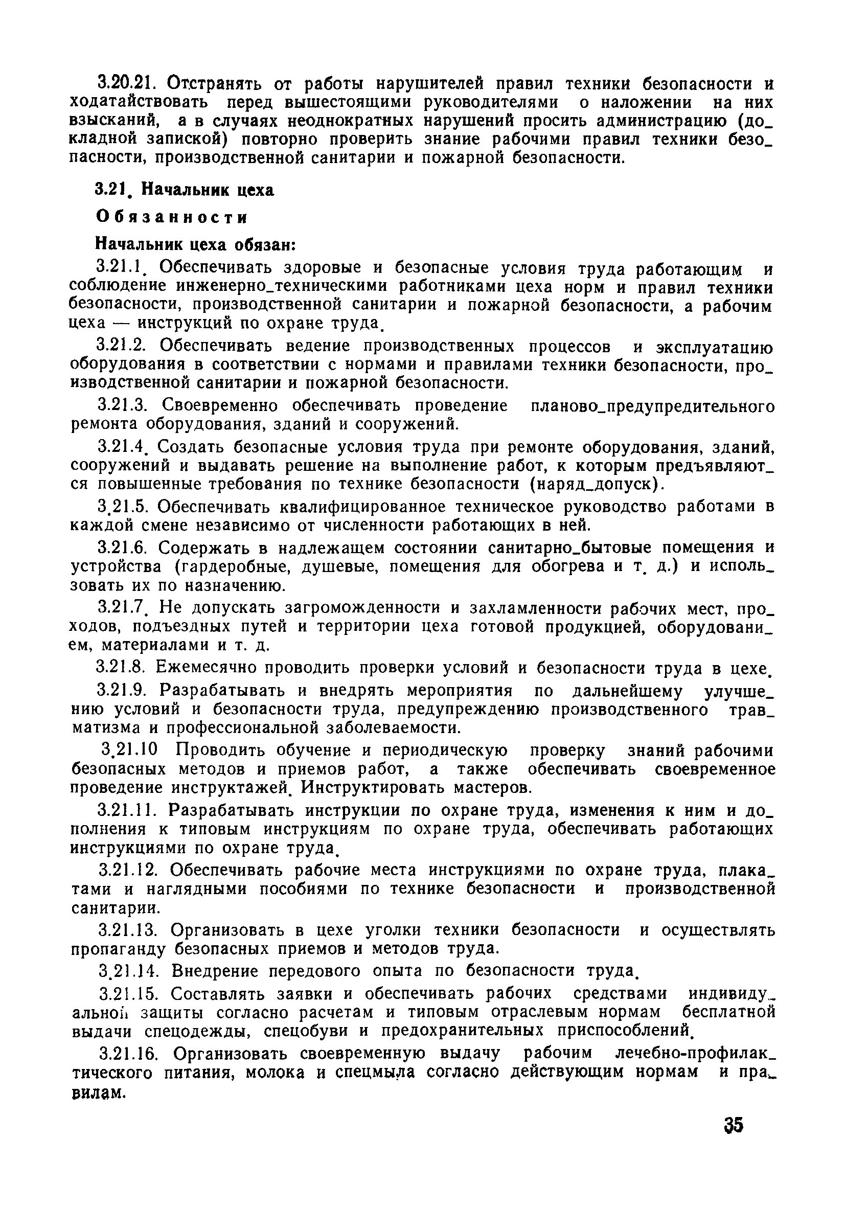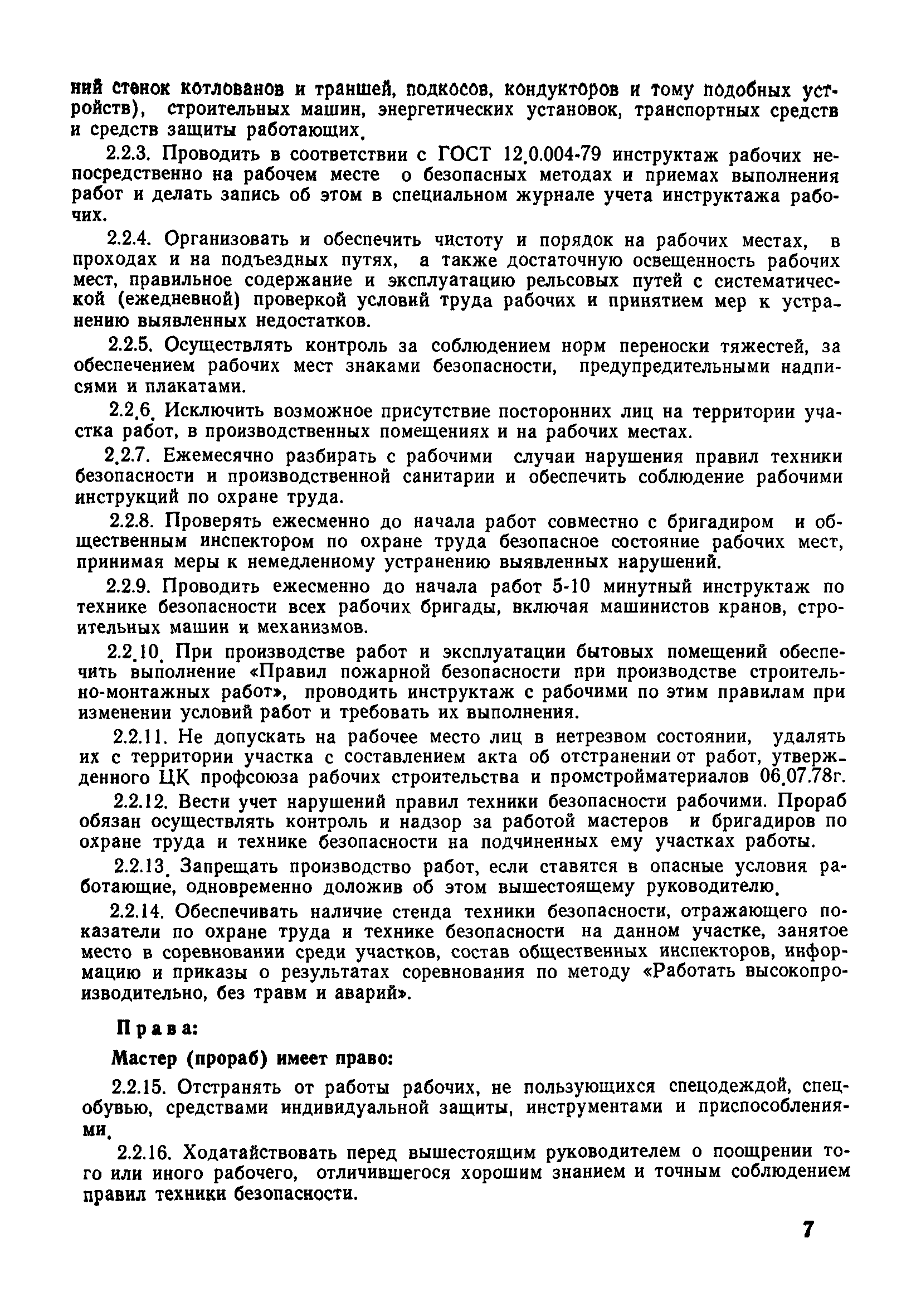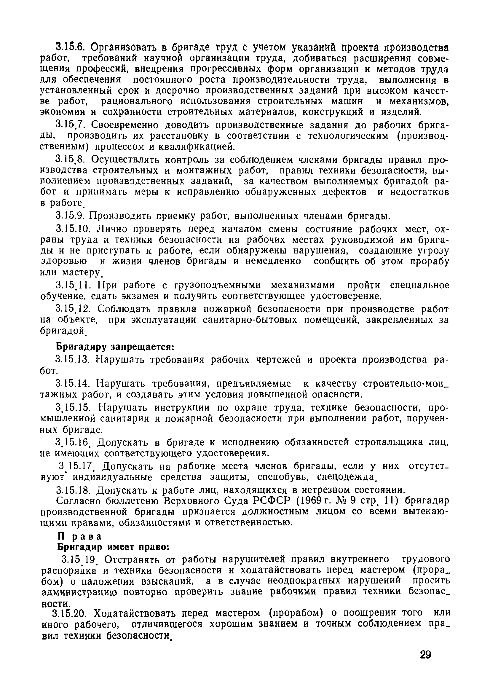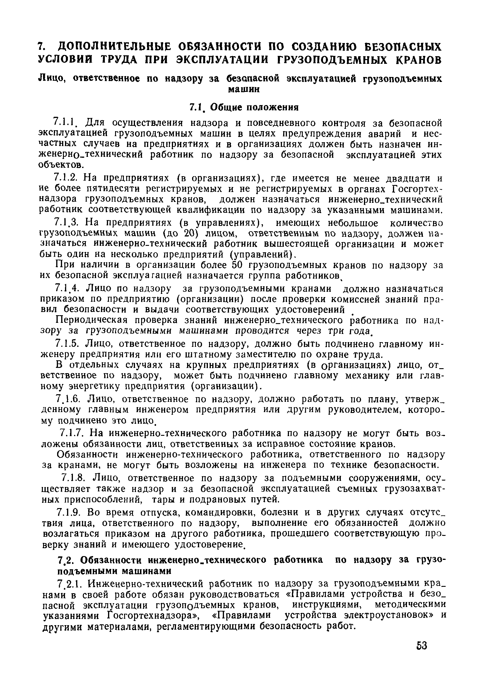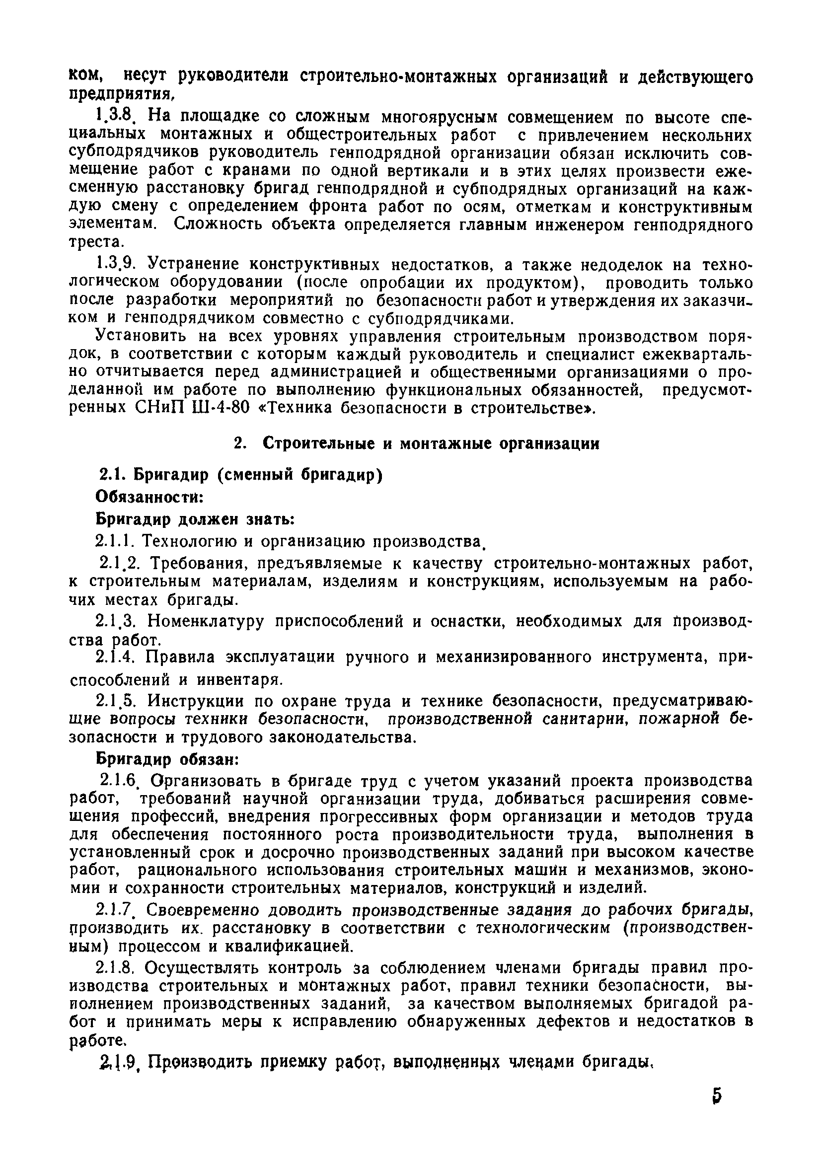 | Оглавление: | 1 Общие положения 1.1 Дисциплинарная ответственность 1.2 Материальная и уголовная ответственность 2 Строительные и монтажные организации 2.1 Бригадир (сменный бригадир) 2.2 Мастер (прораб) 2.3 Старший прораб (начальник участка) 2.4 Линейный механик 2.5 Инженер по охране труда управления 2.6 Главный механик управления 2.7 Энергетик управления (лицо ответственное за энергохозяйство) 2.8 Начальник производственно-технического отдела управления 2.9 Начальник отдела кадров 2.10 Главный бухгалтер 2.11 Начальник отдела организации труда и заработной платы 2.12 Заместитель начальника управления по производству 2.13. Заместитель начальника строительной и монтажной организации (управления) по кадрам м быту 2.14. Заместитель начальника управления по материально-техническому снабжению 2.15. Главный инженер строительной и монтажной организации (управления) 2.16. Начальник строительной и монтажной организации (управления) 3 Домостроительный комбинат 3.1. Начальник отдела техники безопасности ДСI( (старший инженер) 3.2. Начальник производственного отдела ДСК 3.3. Главный технолог ДСК 3.4. Главный энергетик ДСК 3.5. Главный механик ДСК 3.6. Главный строитель ДСК 3.7. Начальник отдела кадров ДСК 3.8. Главный бухгалтер ДСК 3.9. Начальник отдела организации труда и заработной платы 3.10. Начальник отдела снабжения ДСК 3.11. Заместитель начальника ДСК по кадрам и быту 3.12. Заместитель начальника по производству 3.13. Главный инженер ДСК 3.14. Начальник ДСК 3.15. Бригадир (сменный бригадир) 3.16. Мастер (прораб) строительного участка ДСК 3.17. Механик 3.18. Старший прораб (начальник участка) 3.19. Начальник строительно-монтажного потока 3.20 Мастер цеха ДСК 3.21. Начальник цеха 3.22. Начальник ОТК предприятия 4 Управление проектных работ (УПР) 4.1. Начальник управления 4.2. Главный инженер УПР 5 Управление производственно-технологической комплектации 5.1. Начальник УПТК 5.2. Главный инженер УПТК 5.3. Заместитель начальник УПТК 5.4. Механик. энергетик УПТК 5.5. Мастер цеха (участка) 6 Проектно-строительное объединение 6.1. Начальник отдела по охране труда объединения 6.2. Начальник технического отдела объединения 6.3. Начальник производственного отдела объединения 6.4. Главный технолог ПСО 6.5. Главный энергетик ПСО 6.6. Главный механик ПСО 6.7. Главный бухгалтер объединения 6.8. Начальник отдела организации труда и заработной платы объединения 6.9. Заместитель начальника по кадрам и быту объединения 6.10. Заместитель начальника ПСО по материально-техническому снабжению 6.11. Заместитель начальника ПСО по производству, строительству, специальным работам 6.12. Заместитель главного инженера ПСО 6.13 Начальник планового отдела 6.14. Начальник отдела кадров ПСО 6.15. Главный инженер объединения 6.16. Начальник объединения 7 Дополнительные обязанности по созданию безопасных условий труда при эксплуатации грузоподъемных кранов (Лицо, ответственное по надзору за безопасной эксплуатацией грузоподъемных машин) 7.1. Общие положения 7.2. Обязанности инженерно-технического работника по надзору за грузоподъемными машинами 7.3. Права инженерно-технического работника по надзору за грузоподъемными механизмами |