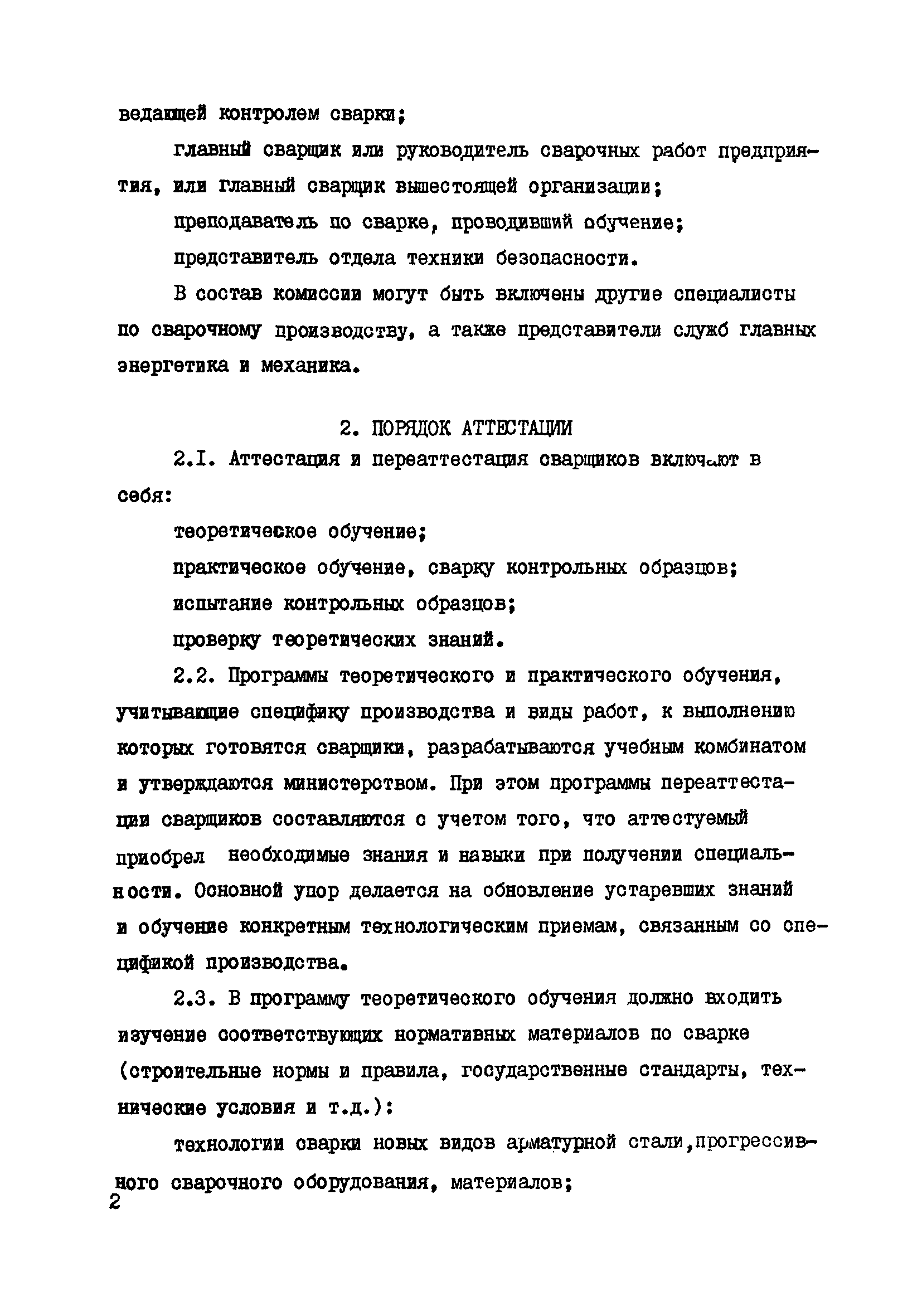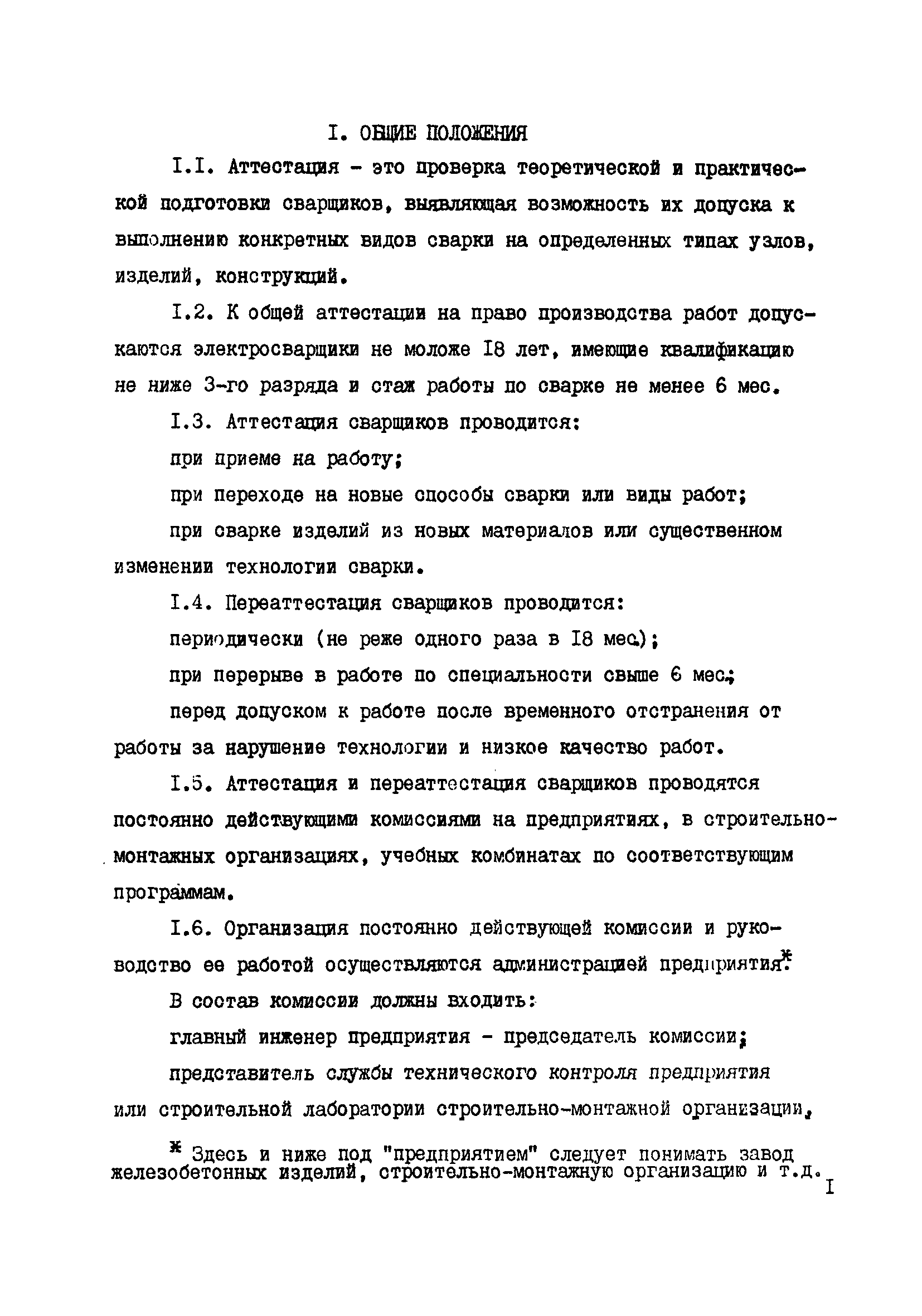 | Область применения: | Правила устанавливают порядок аттестации и переаттестация сварщиков на право выполнения сварочных работ при изготовлении арматурных изделий, металлоконструкций и монтаже сборных и монолитных железобетонных конструкций. Правила обязательны для сварщиков всех предприятий и строительных организаций Минсевзапстроя СССР, но не распространяются на сварщиков, выполняющих работы на объектах, подведомственных Госгортехнадзору СССР. Эта категория сварщиков аттестуется по специальным правилам. |