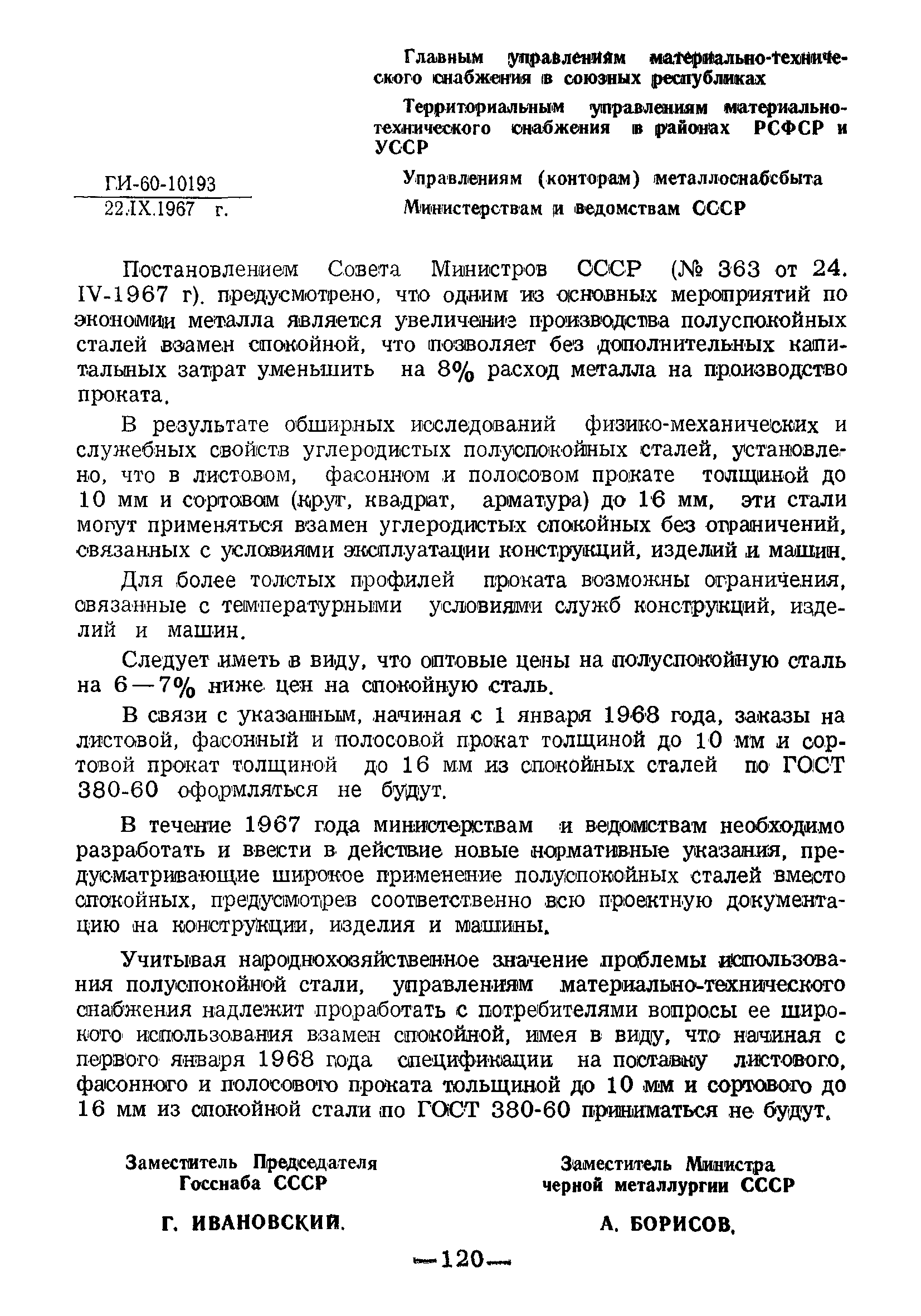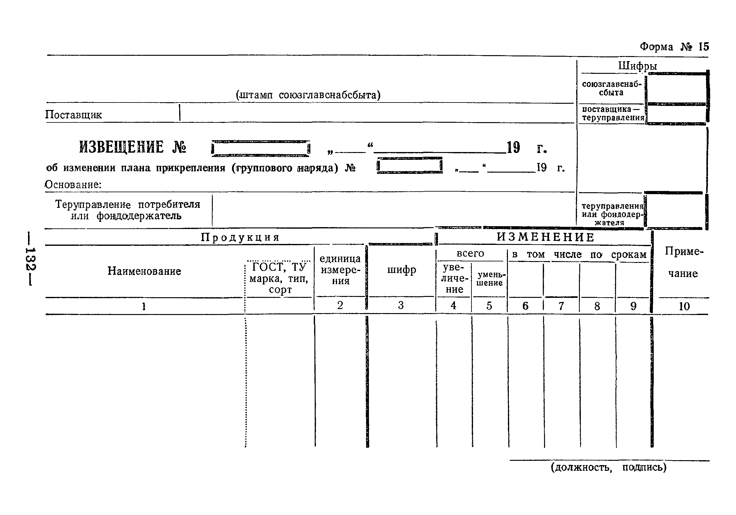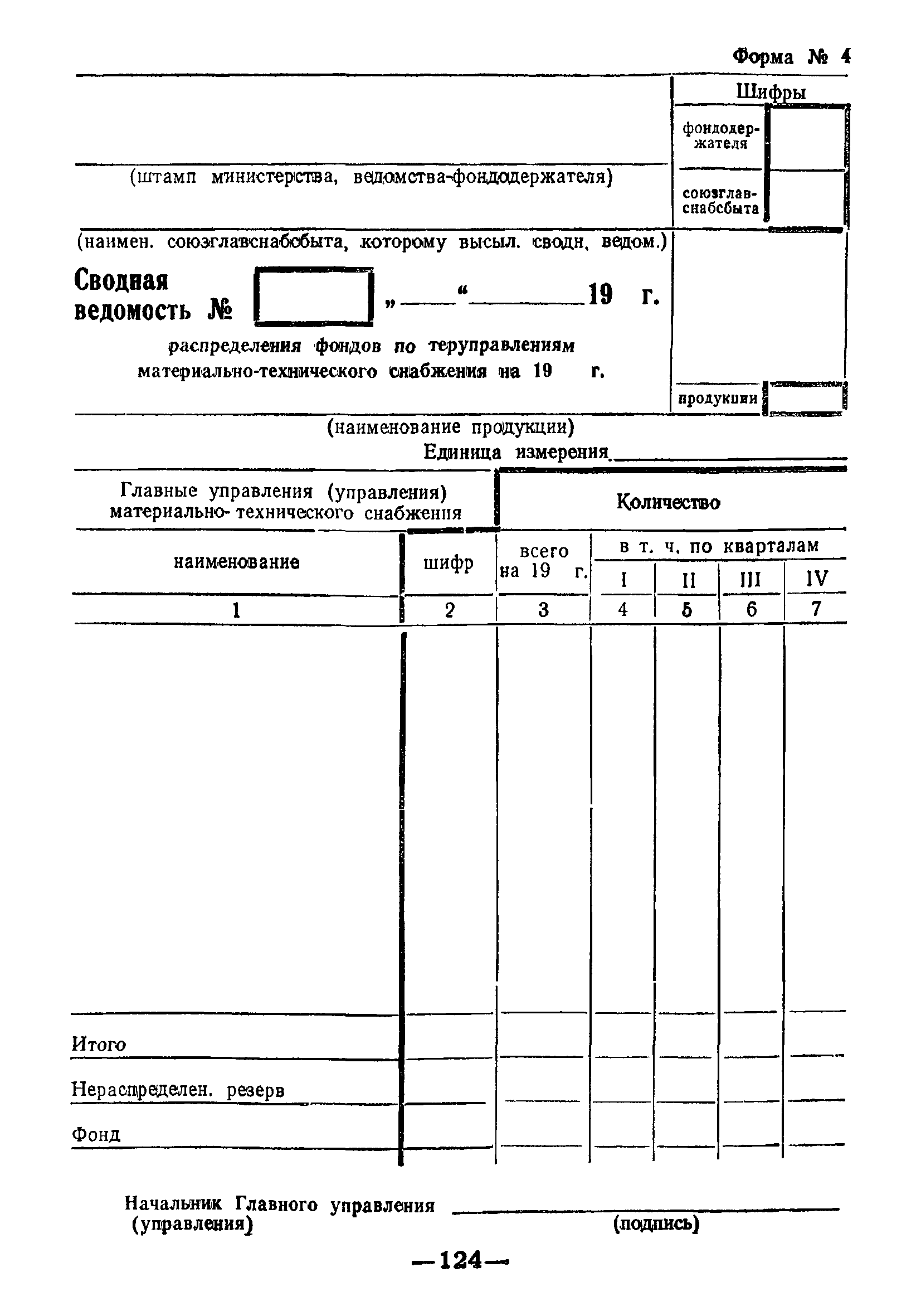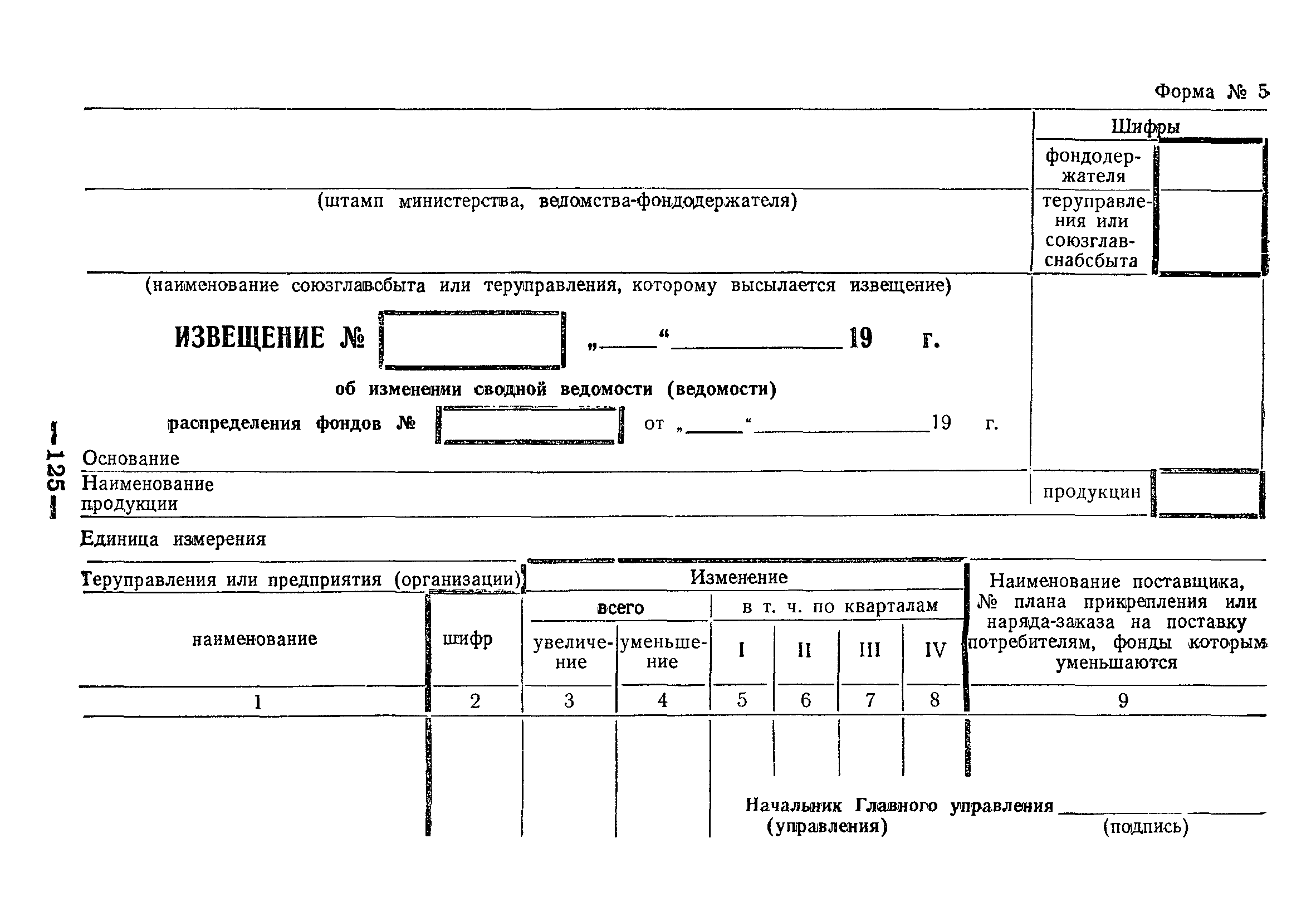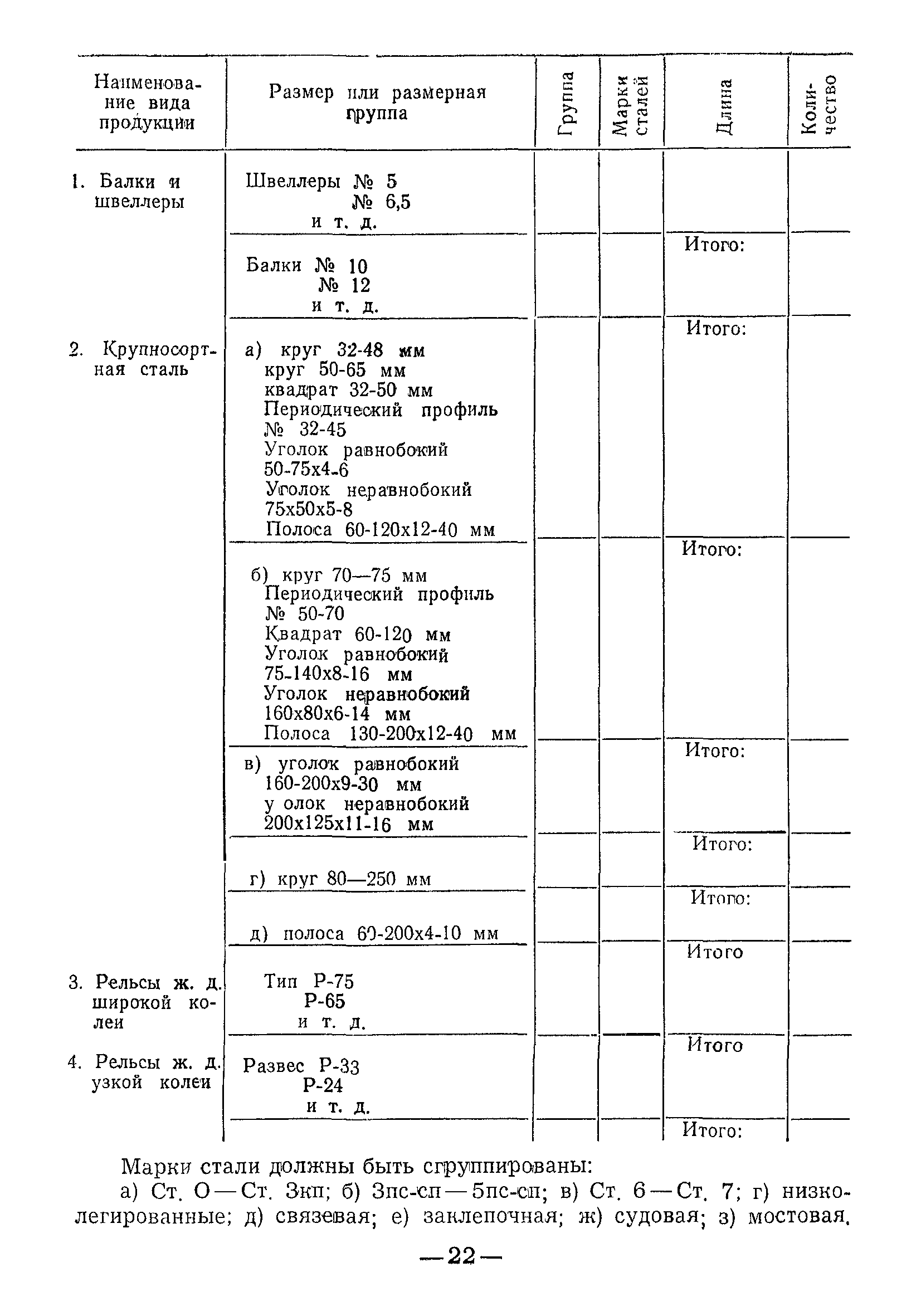 | Оглавление: | 1 Общие положения 2 Распределение фондов и доведение их до Союзглавметала и территориальных органов 3 Порядок передачи фондов на металлопродукцию по межминистерской кооперации 4 Порядок составления и представления спецификаций, заказов, совмещенных со спецификацией, и нарядов 5 По отделу сортового проката 6 По отделу рельсобалочной продукции 7 По отделу листового проката 8 По отделу качественного сортового проката 9 По отделу чугунов и ферросплавов 10 По отделу стальных и чугунных труб 11 По отделу качественных металлоизделий 12 По отделу гвоздильно-проволочных и крепежных изделий 13 По отделу металлотходов, некондиционной металлопродукции и МВР Приложения |