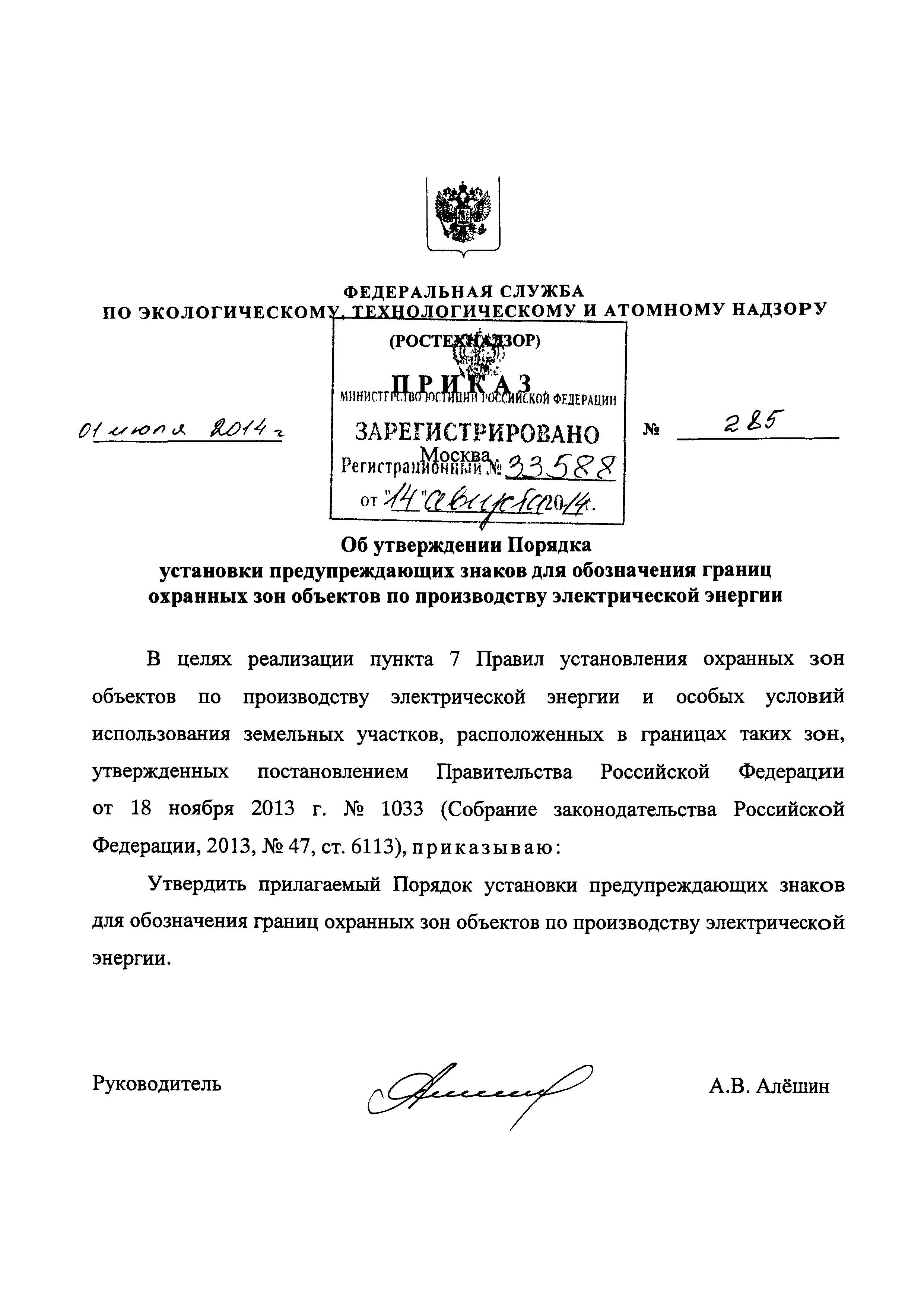 | Утверждён: | 01.07.2014 Федеральная служба по экологическому, технологическому и атомному надзору (285)