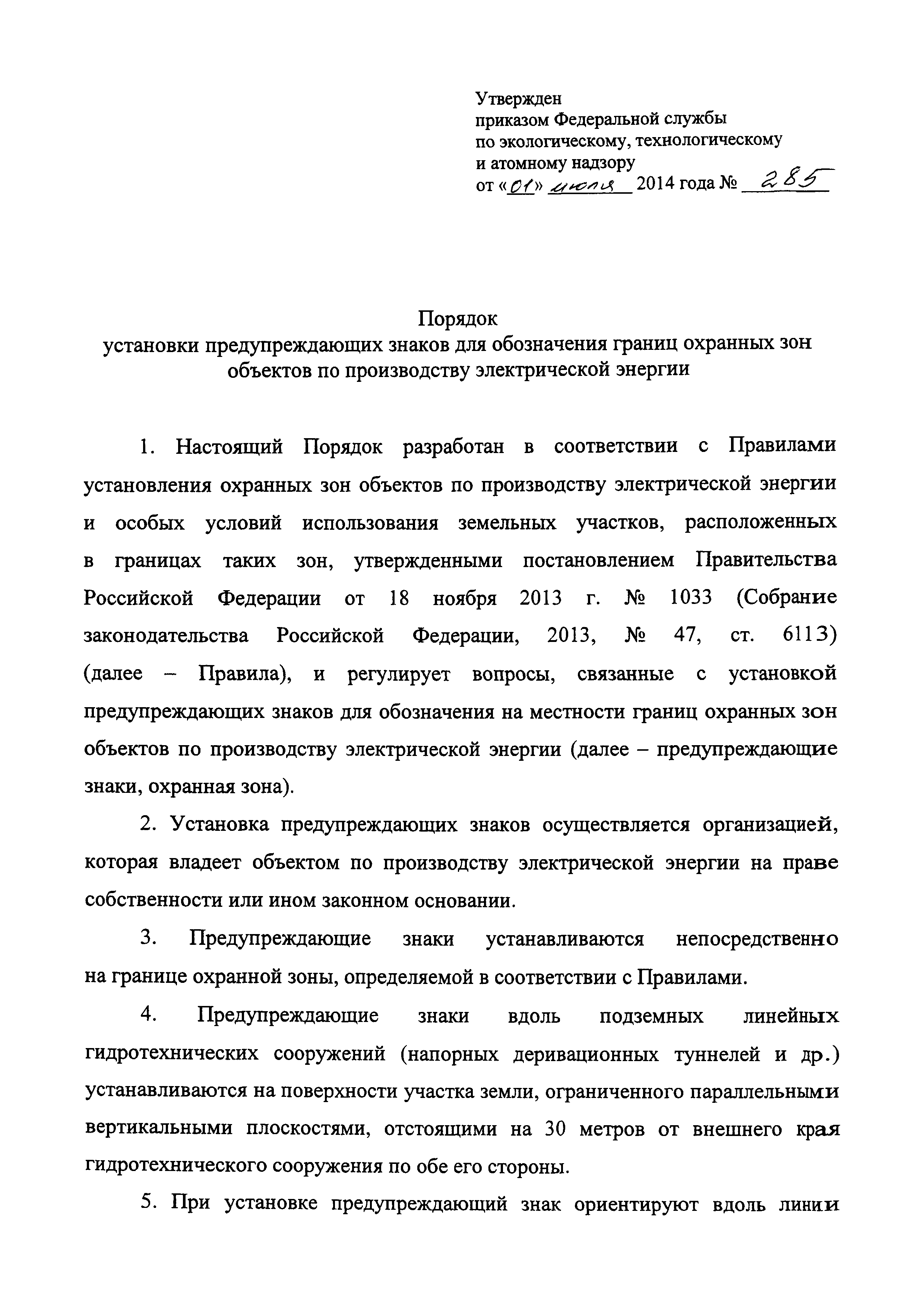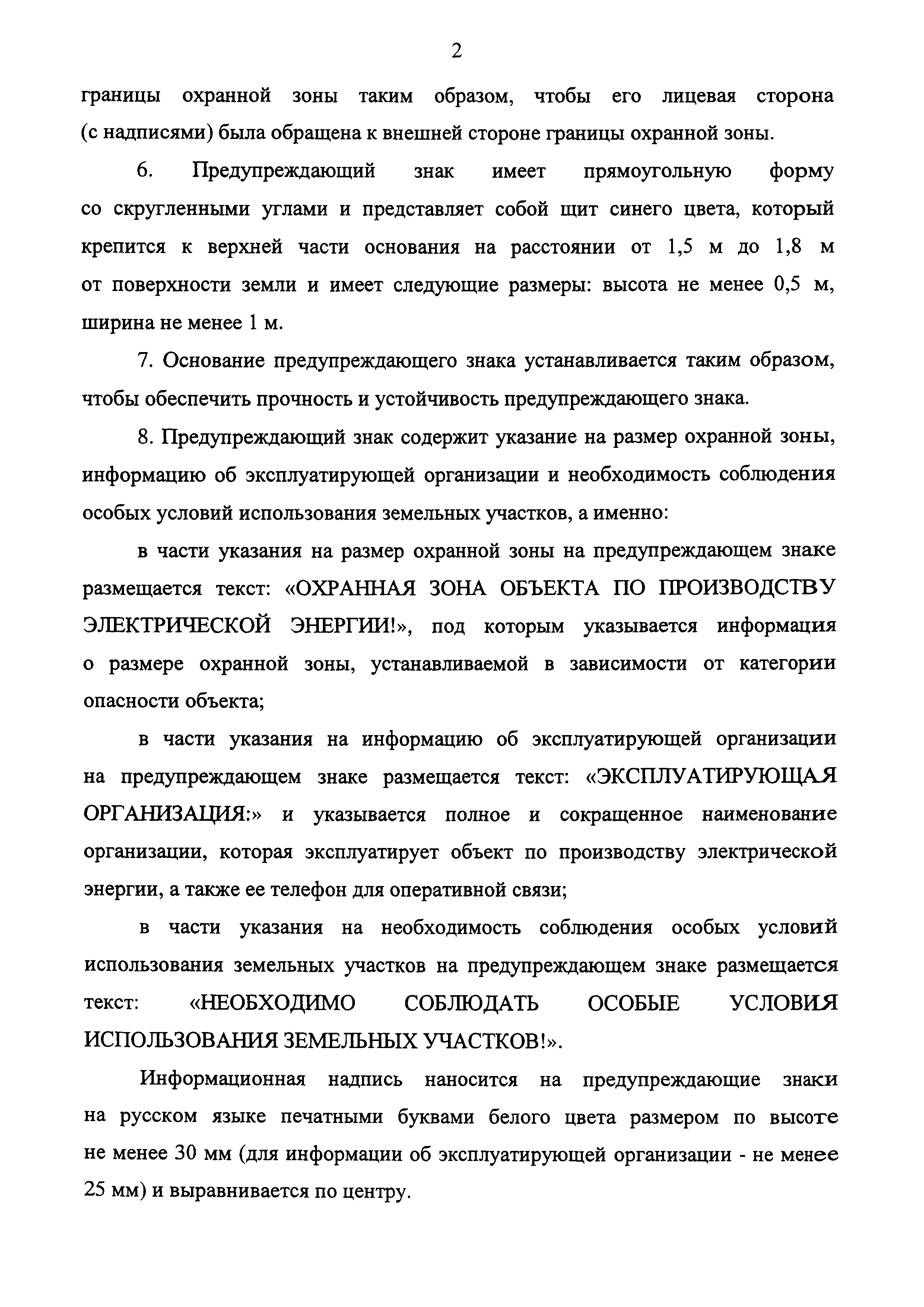 | Название рус.: | Порядок установки предупреждающих знаков для обозначения границ охранных зон объектов по производству электрической энергии |