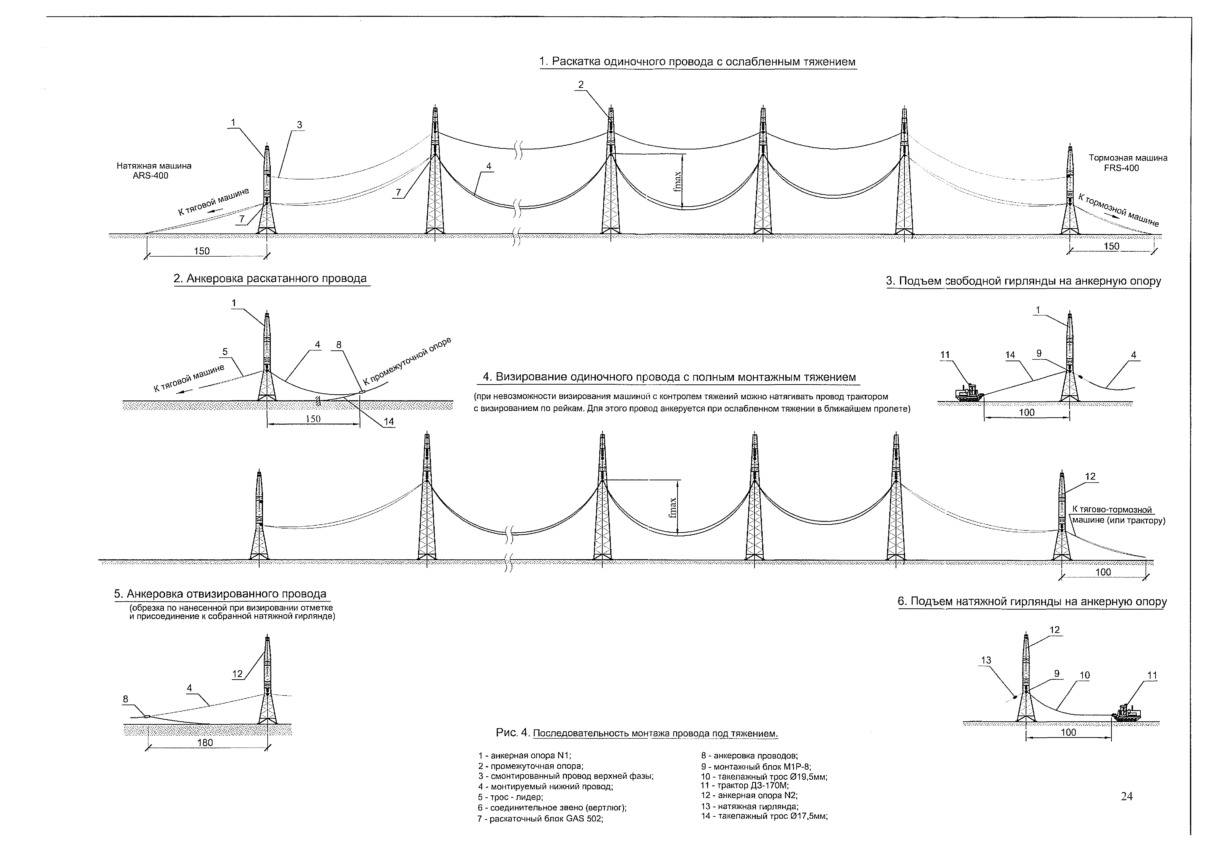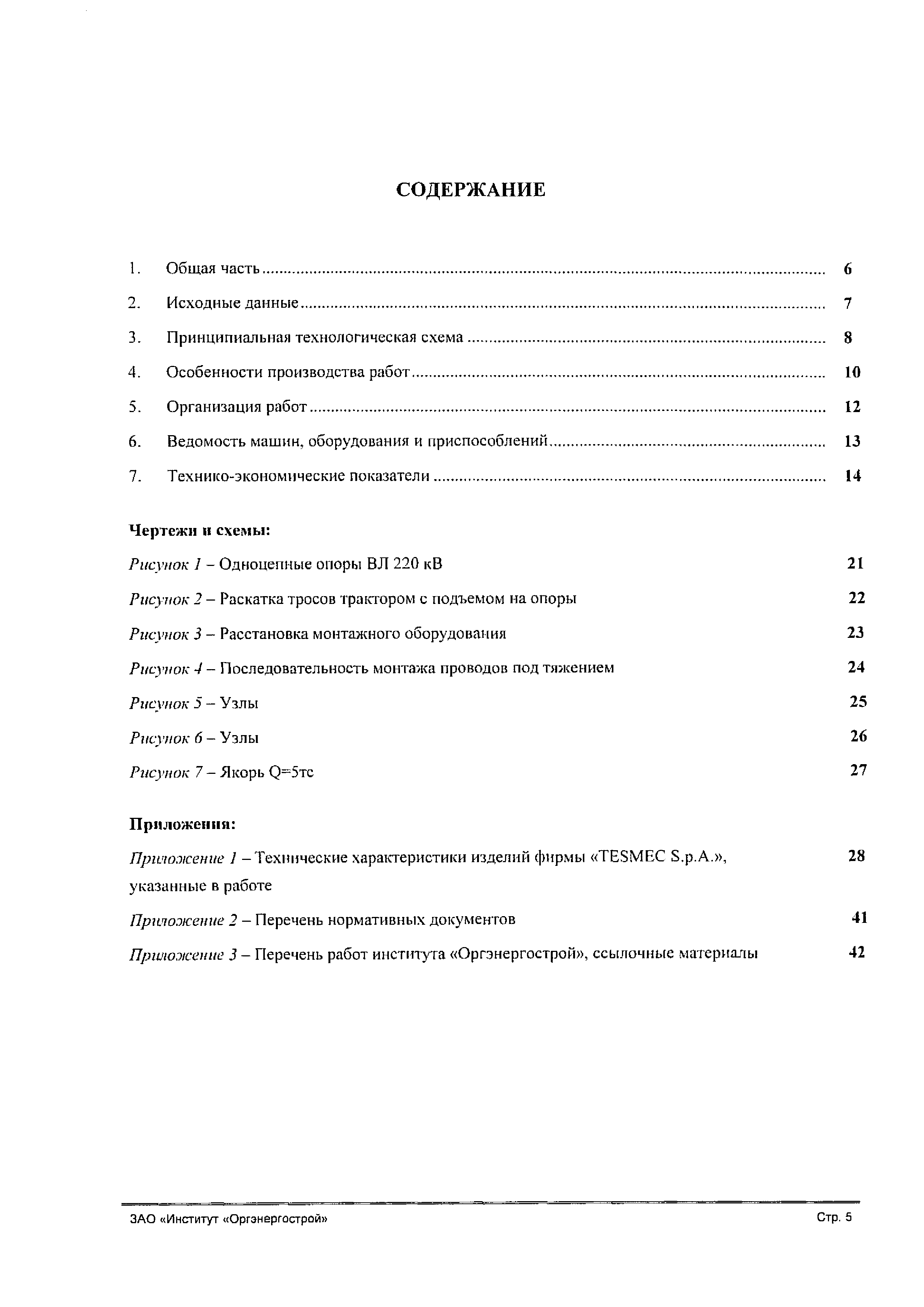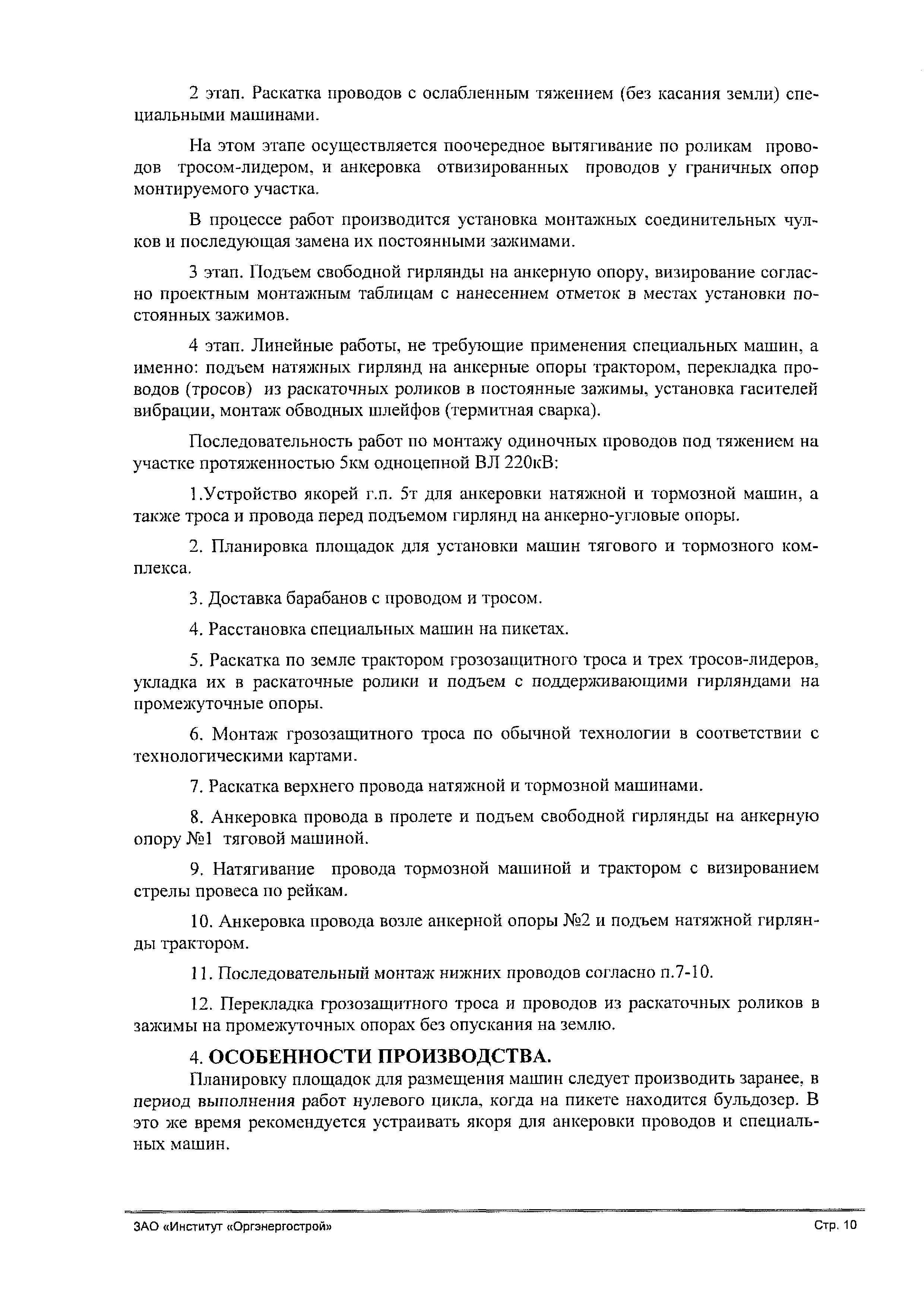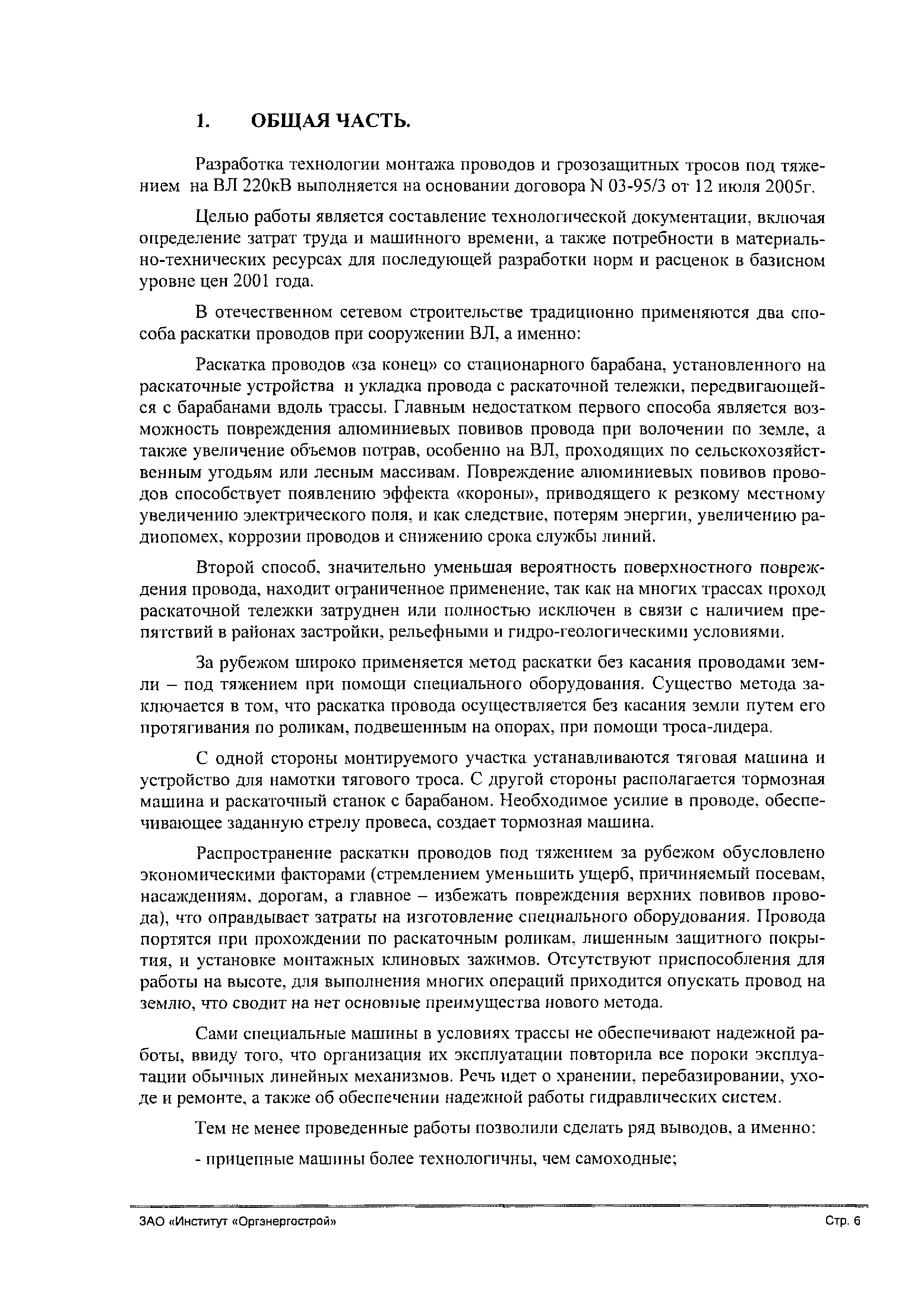| Оглавление: | 1. Общая часть 2. Исходные данные 3. Принципиальная технологическая схема 4. Особенности производства работ 5. Организация работ 6. Ведомость машин, оборудования и приспособлений 7. Технико-экономические показатели Чертежи и схемы Рисунок 1 — Одноцепные опоры ВЛ 220 кВ Рисунок 2 — Раскатка тросов трактором с подъемом на опоры Рисунок 3 — Расстановка монтажного оборудования Рисунок 4 — Последовательность монтажа проводов под тяжением Рисунок 5 — Узлы Рисунок 6— Узлы Рисунок 7— Якорь Q=5тс Приложение 1. Технические характеристики изделий фирмы "TESMEC S.p.А", указанные в работе Приложение 2. Перечень нормативных документов Приложение 3. Перечень работ института "Оргэнергострой", ссылочные материалы |