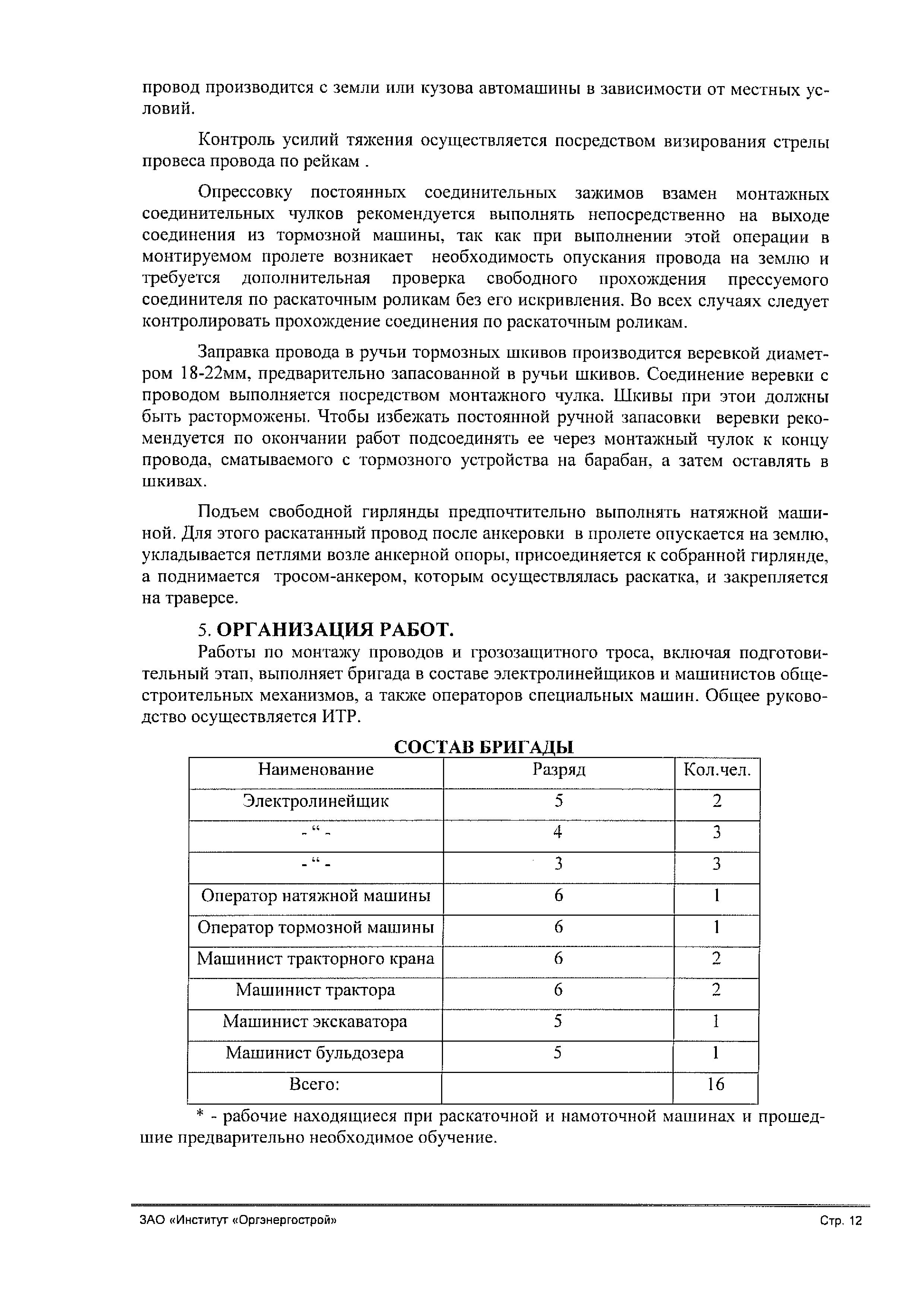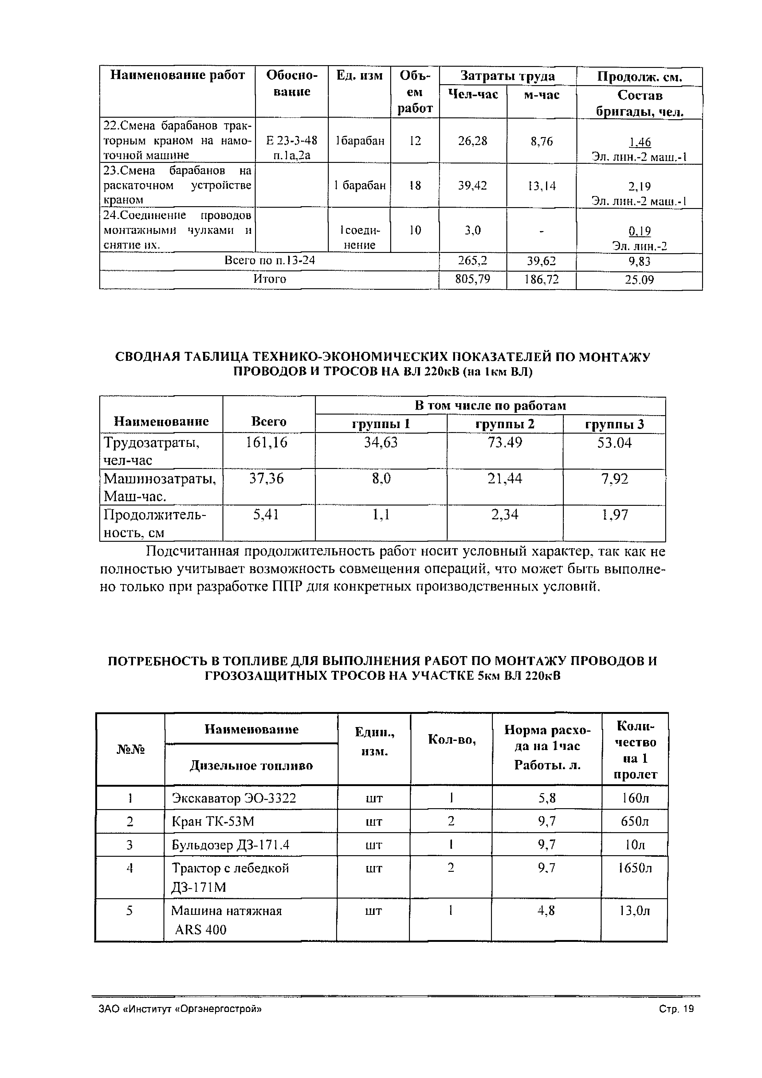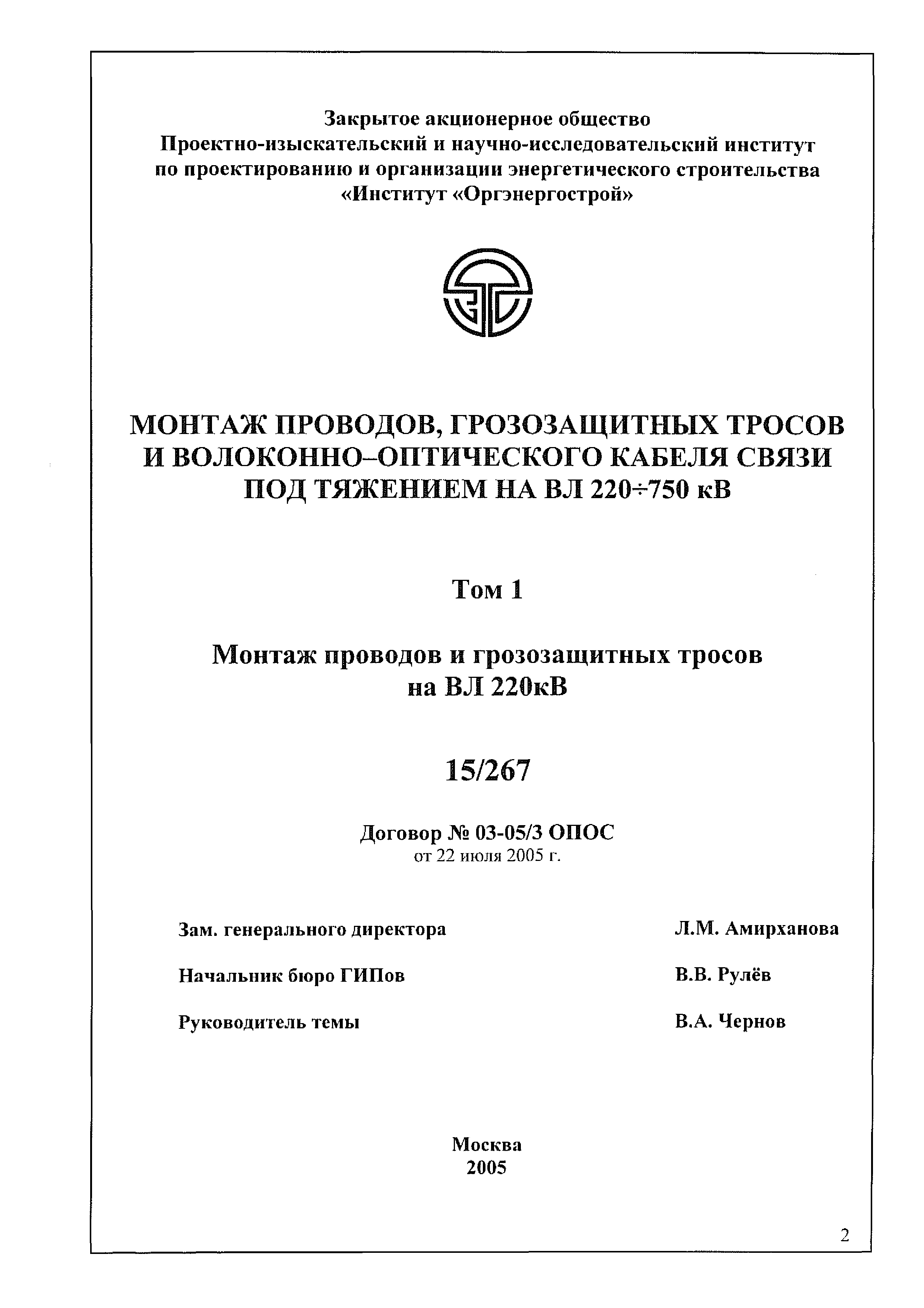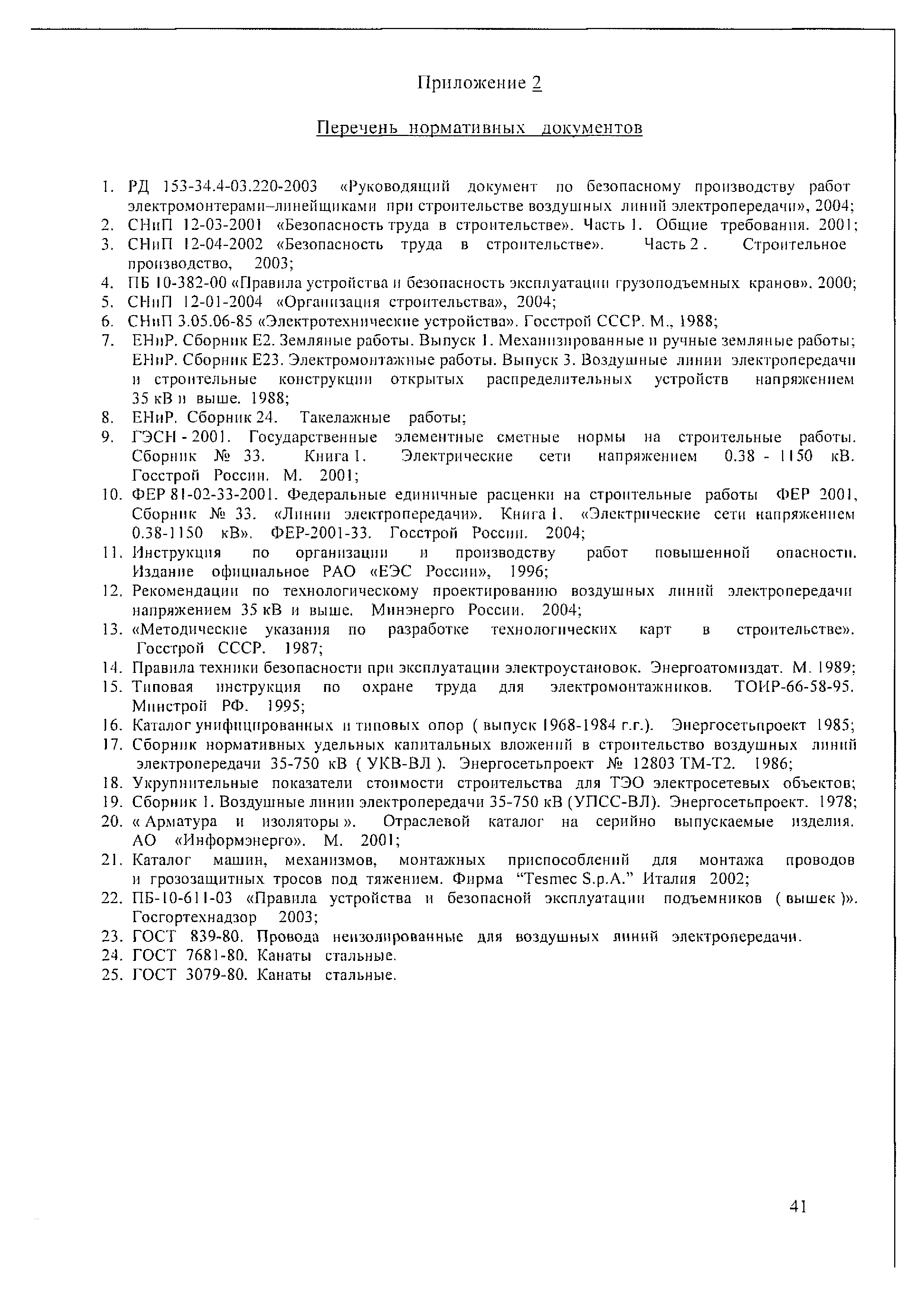 | Оглавление: | 1. Общая часть 2. Исходные данные 3. Принципиальная технологическая схема 4. Особенности производства работ 5. Организация работ 6. Ведомость машин, оборудования и приспособлений 7. Технико-экономические показатели Чертежи и схемы Рисунок 1 — Одноцепные опоры ВЛ 220 кВ Рисунок 2 — Раскатка тросов трактором с подъемом на опоры Рисунок 3 — Расстановка монтажного оборудования Рисунок 4 — Последовательность монтажа проводов под тяжением Рисунок 5 — Узлы Рисунок 6— Узлы Рисунок 7— Якорь Q=5тс Приложение 1. Технические характеристики изделий фирмы "TESMEC S.p.А", указанные в работе Приложение 2. Перечень нормативных документов Приложение 3. Перечень работ института "Оргэнергострой", ссылочные материалы |