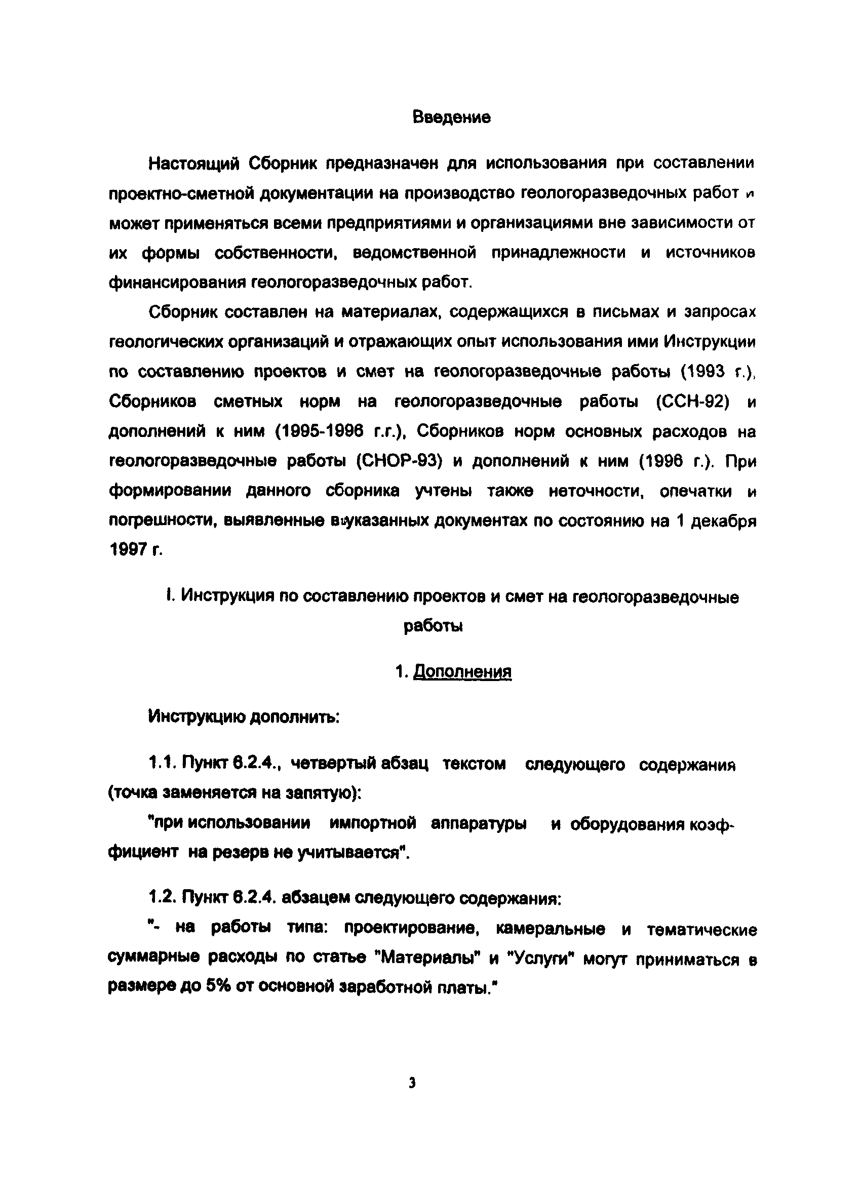 | Область применения: | Документ содержит организационно-технические условия работ, нормы времени, нормы расхода материальных и трудовых ресурсов на бурение скважин, вспомогательные работы, сопутствующие бурению, а также монтаж, демонтаж и перемещение буровых установок на новую точку и предназначен для определения на их основе сметной стоимости геологоразведочных работ. |