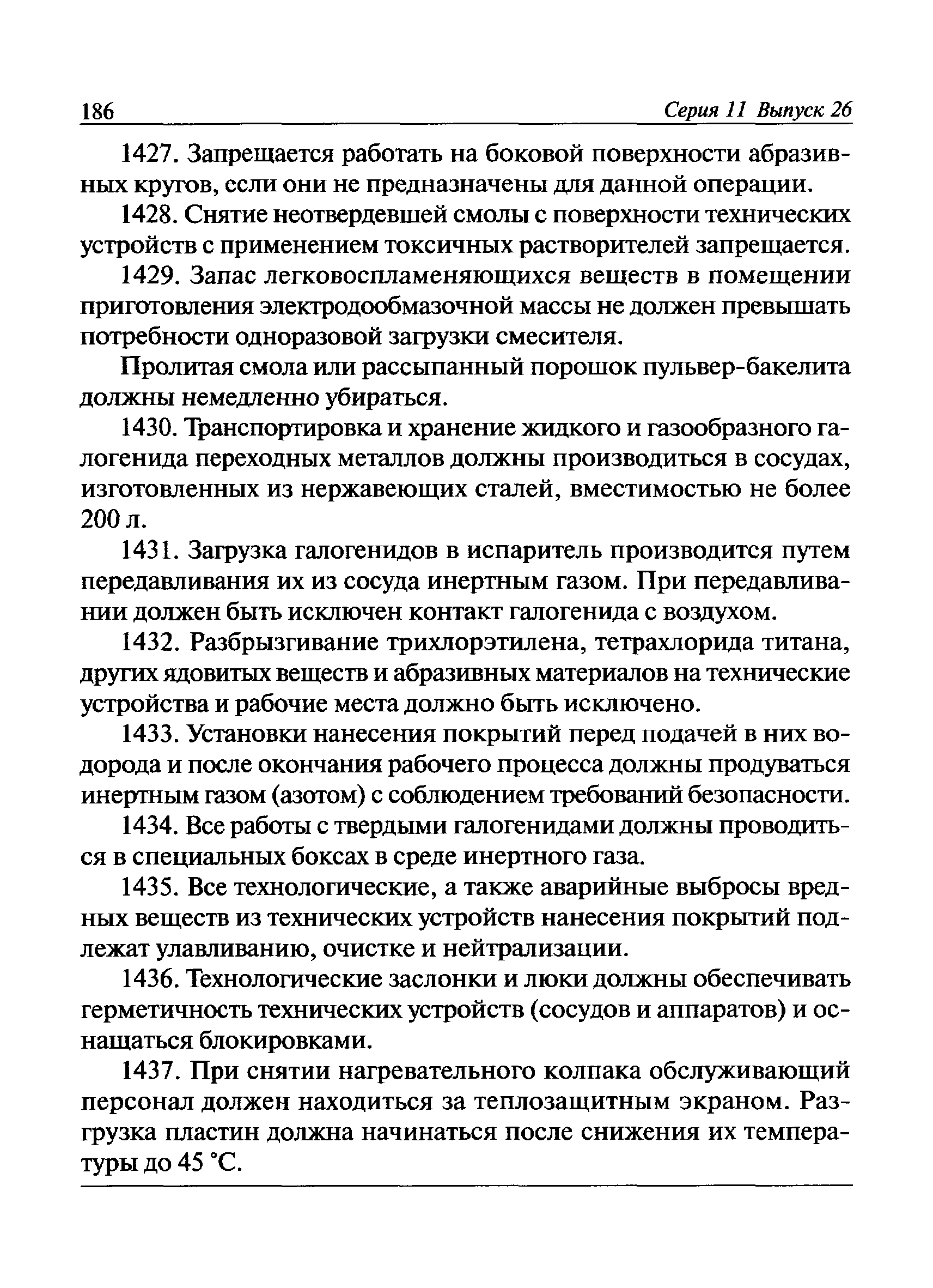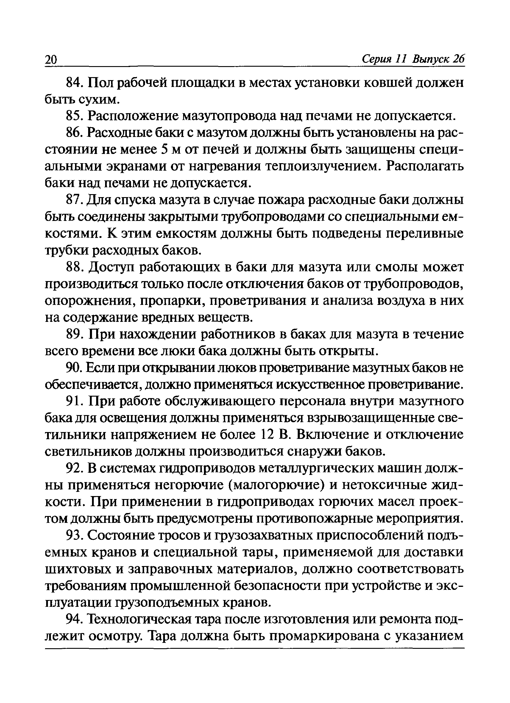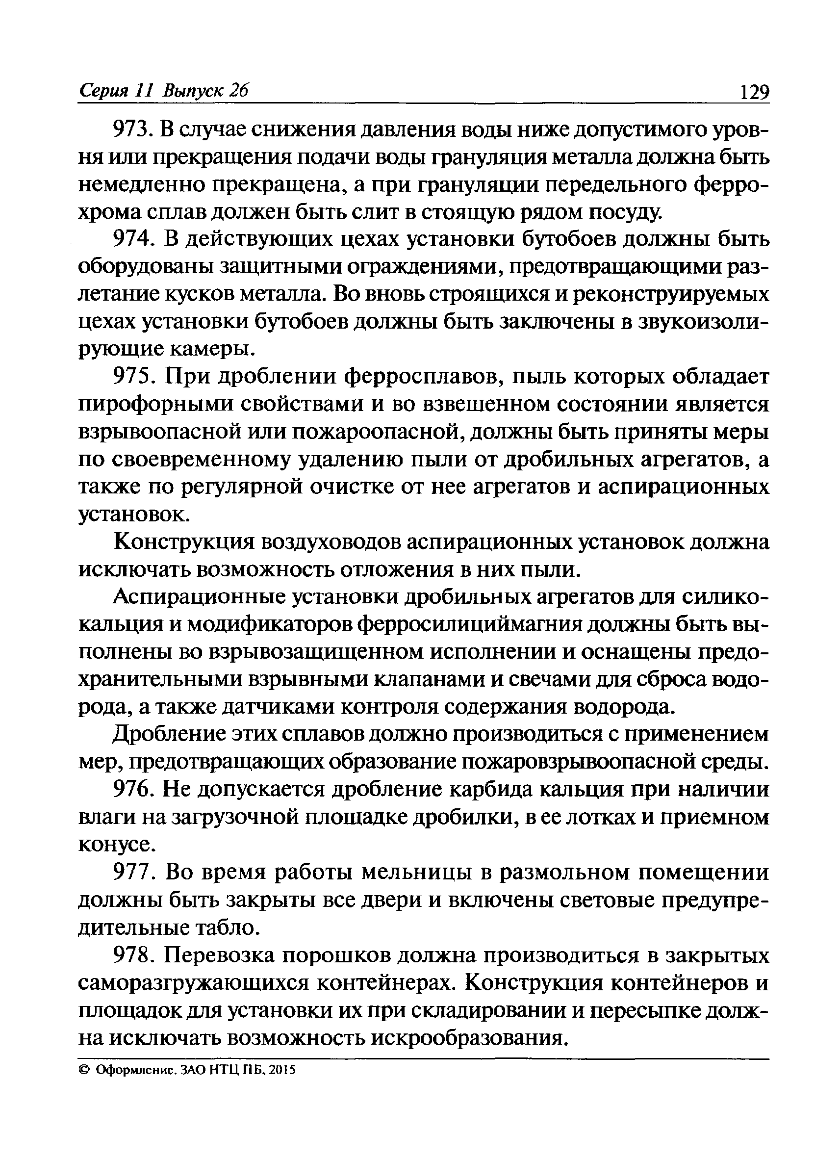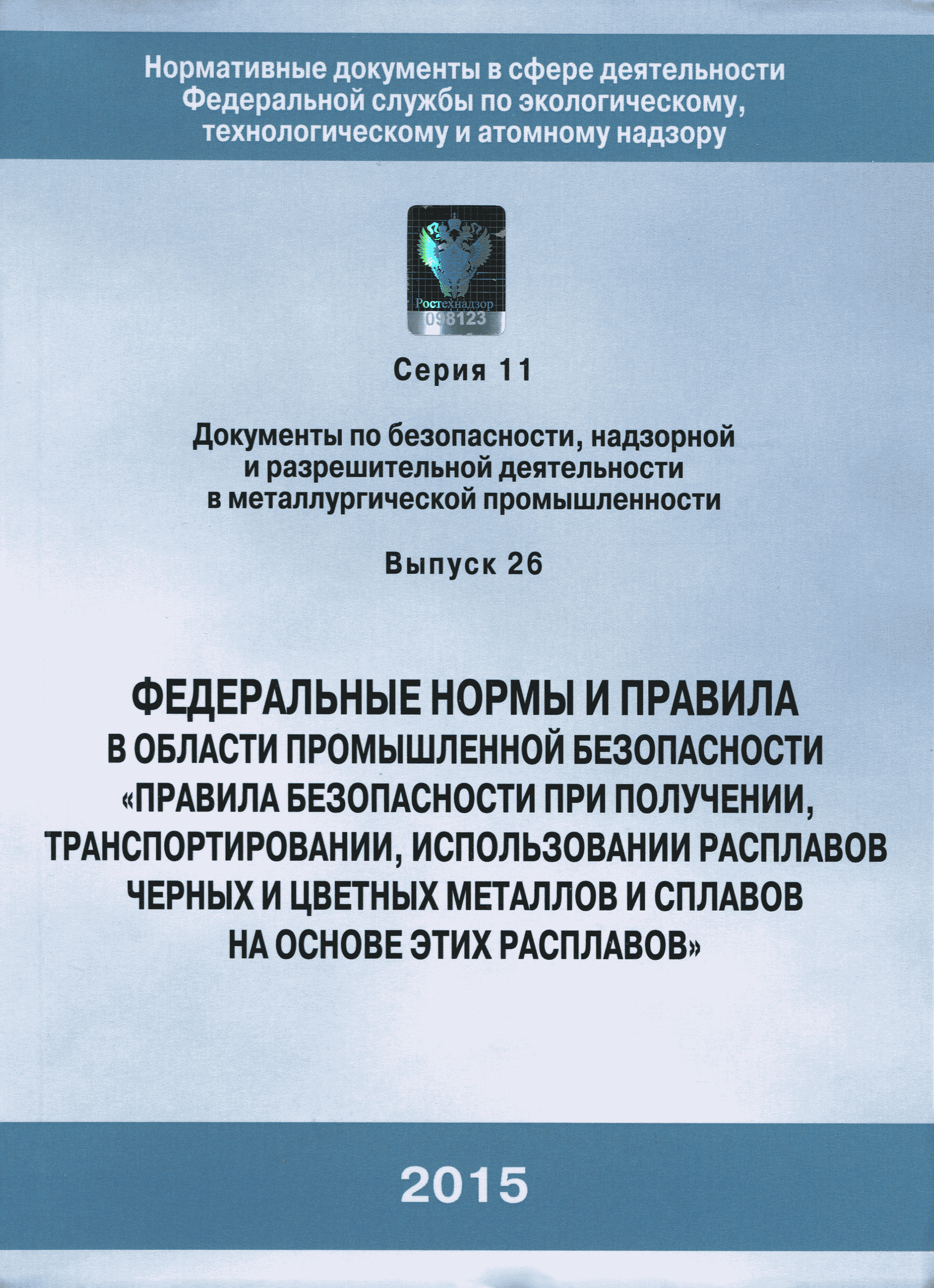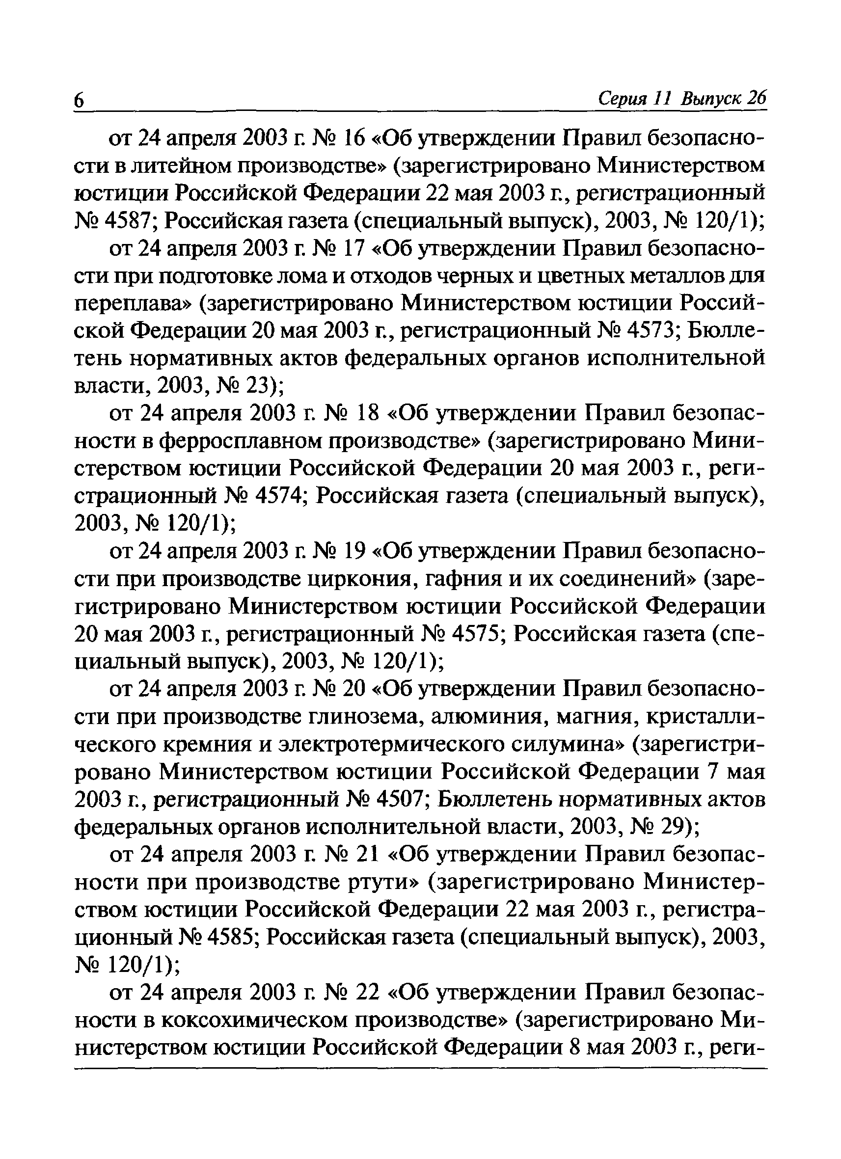 | | Заменяет собой: | | | Нормативные ссылки: |   Федеральный закон 116-ФЗ «О промышленной безопасности опасных производственных объектов»  ПБ 11-493-02 «Общие правила безопасности для металлургических и коксохимических предприятий и производств»  ПБ 11-552-03 «Правила безопасности в сталеплавильном производстве»  ПБ 11-541-03 «Правила безопасности при производстве глинозема, алюминия, магния, кристаллического кремния и электротермического силумина»  ПБ 11-543-03 «Правила безопасности в коксохимическом производстве»  ПБ 11-542-03 «Правила безопасности в доменном производстве»  ПБ 11-551-03 «Правила безопасности в литейном производстве»  ПБ 11-544-03 «Правила безопасности при производстве и потреблении продуктов разделения воздуха»  ПБ 11-523-03 «Правила безопасности при производстве твердых сплавов и тугоплавких металлов»  ПБ 11-545-03 «Правила безопасности при производстве свинца и цинка»  ПБ 11-546-03 «Правила безопасности при подготовке лома и отходов черных и цветных металлов для переплава»  ПБ 11-547-03 «Правила безопасности в ферросплавном производстве»  ПБ 11-548-03 «Правила безопасности при производстве циркония, гафния и их соединений»  ПБ 11-549-03 «Правила безопасности в производстве благородных металлов, сплавов и их полуфабрикатов» ПБ 11-550-03 «Правила безопасности при производстве ртути»  ПБ 11-554-03 «Правила безопасности при производстве никеля, меди и кобальта»  ПБ 11-555-03 «Правила безопасности при производстве порошков и пудр из алюминия, магния и сплавов на их основе»  ПБ 11-556-03 «Правила безопасности при производстве сурьмы и ее соединений»  РД 11-561-03 «Инструкция по составлению планов ликвидации (локализации) аварий в металлургических и коксохимических производствах»  ПБ 11-562-03 «Правила безопасности в трубном производстве»  ПБ 11-588-03 «Правила безопасности при производстве губчатого титана и титановых порошков»  ПБ 11-519-02 «Правила безопасности в прокатном производстве» «Положение о Федеральной службе по экологическому, технологическому и атомному надзору» ПБ 11-149-97 «Правила безопасности при производстве глинозема, алюминия, магния, кристаллического кремния и электротермического силумина»  ПБ 11-401-01 «Правила безопасности в газовом хозяйстве металлургических и коксохимических предприятий и производств»  Технический регламент «Технический регламент о безопасности сетей газораспределения и газопотребления»