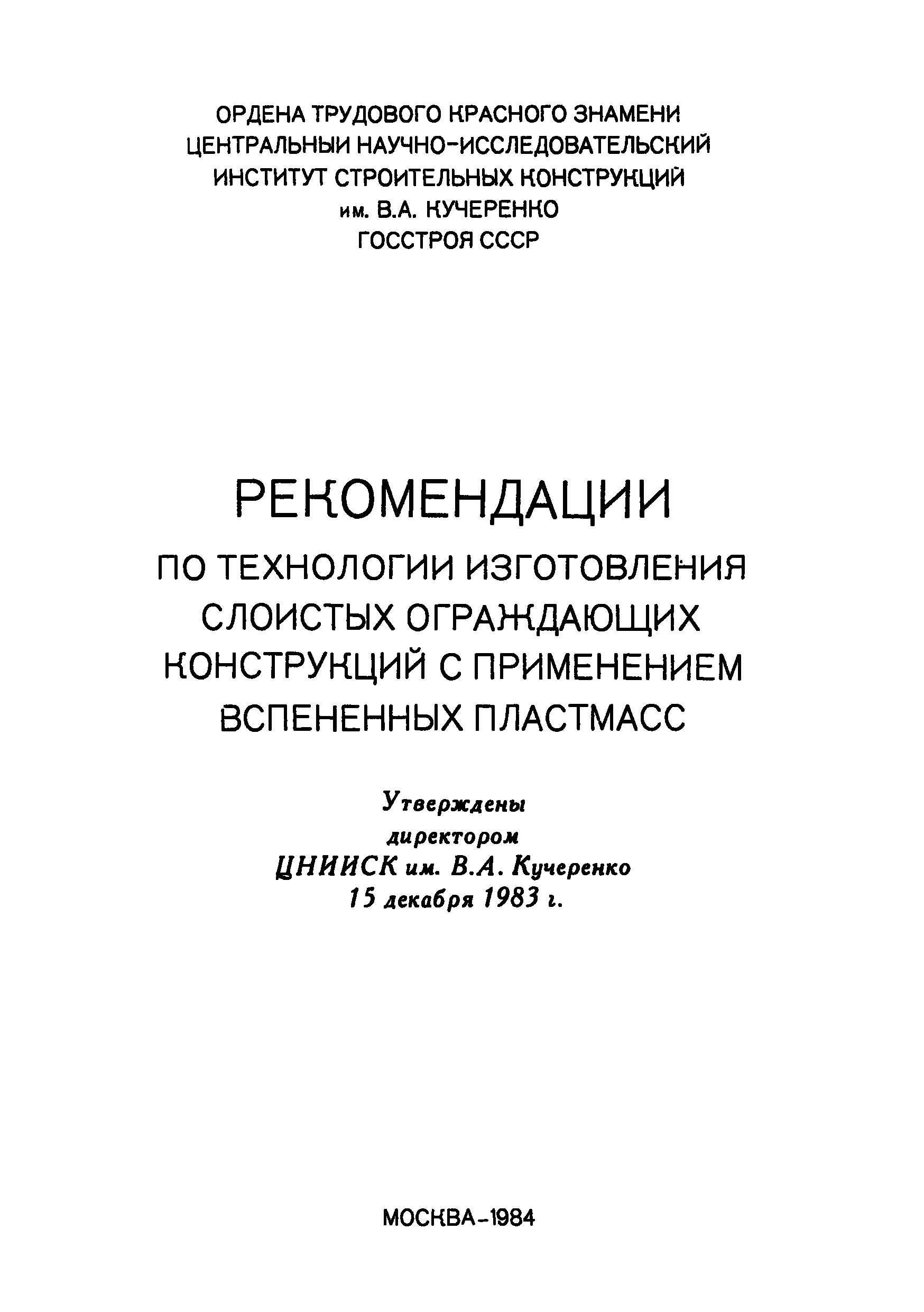 | Утверждён: | 15.12.1983 ЦНИИСК им. В.А. Кучеренко |