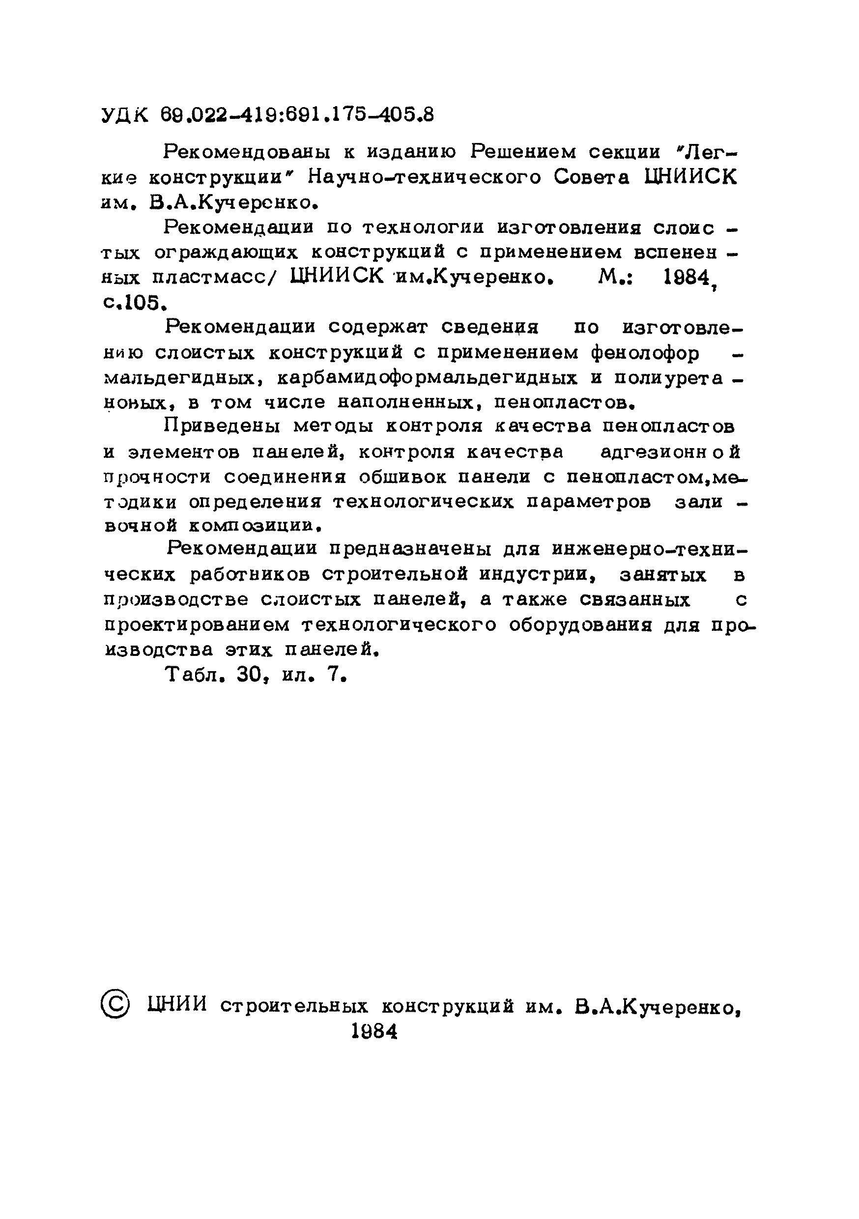 | Название рус.: | Рекомендации по технологии изготовления слоистых ограждающих конструкций с применением вспененных пластмасс |