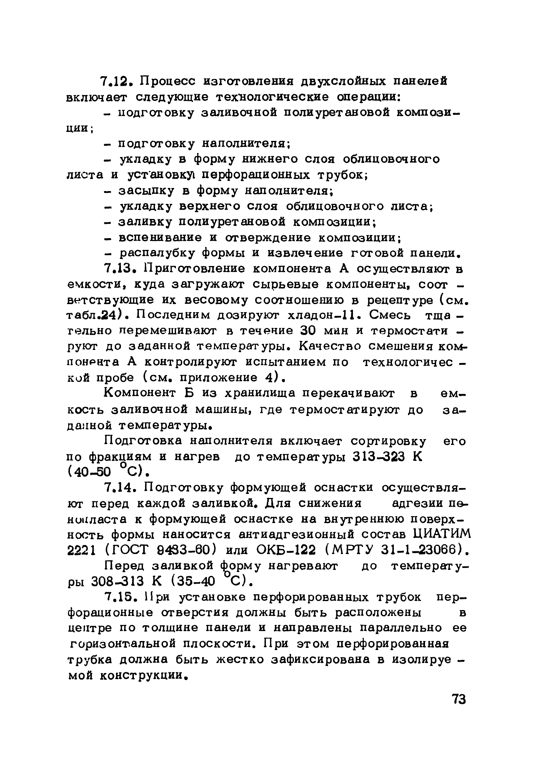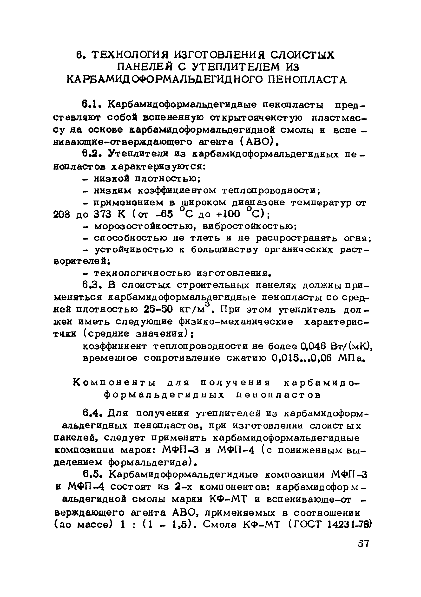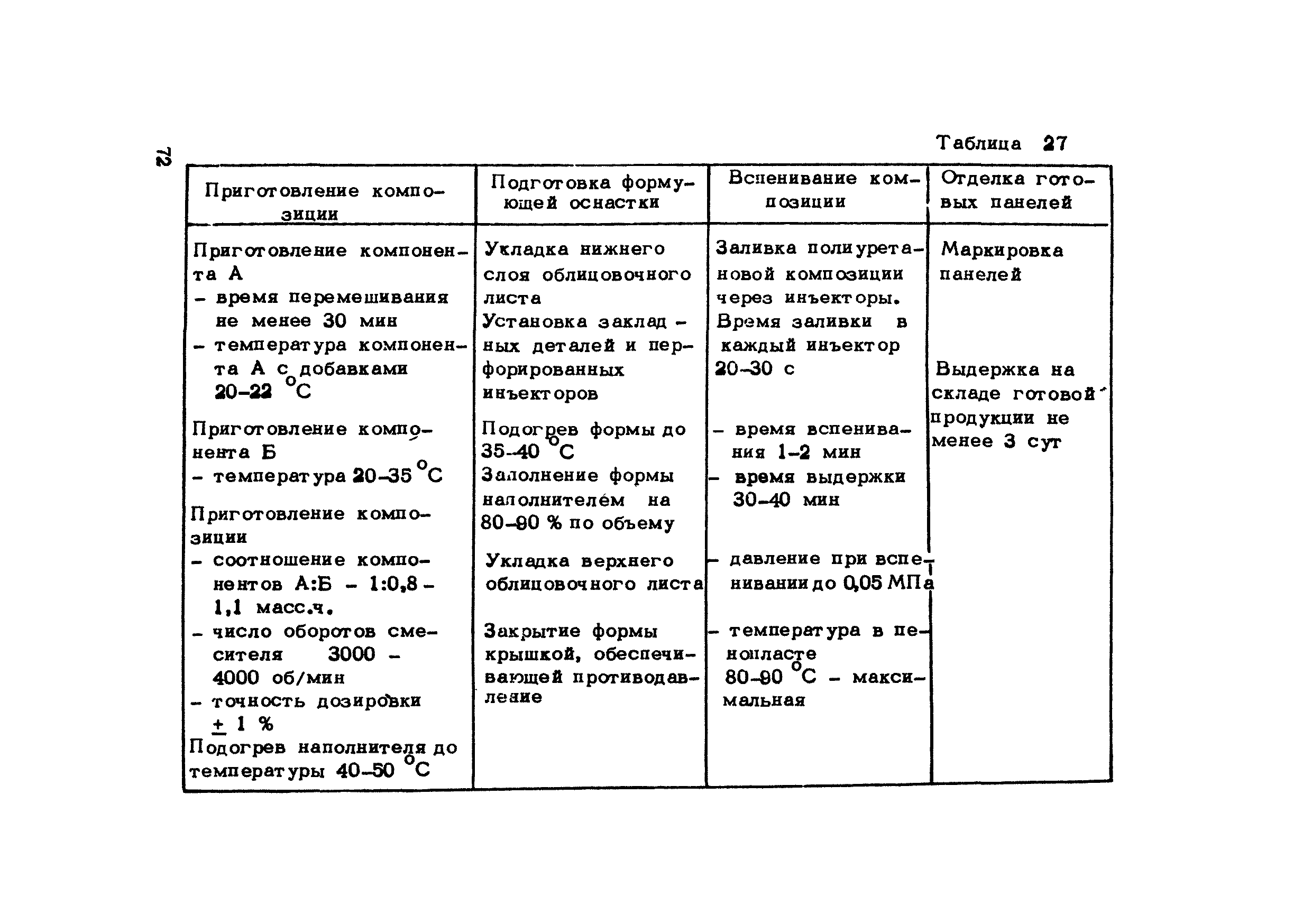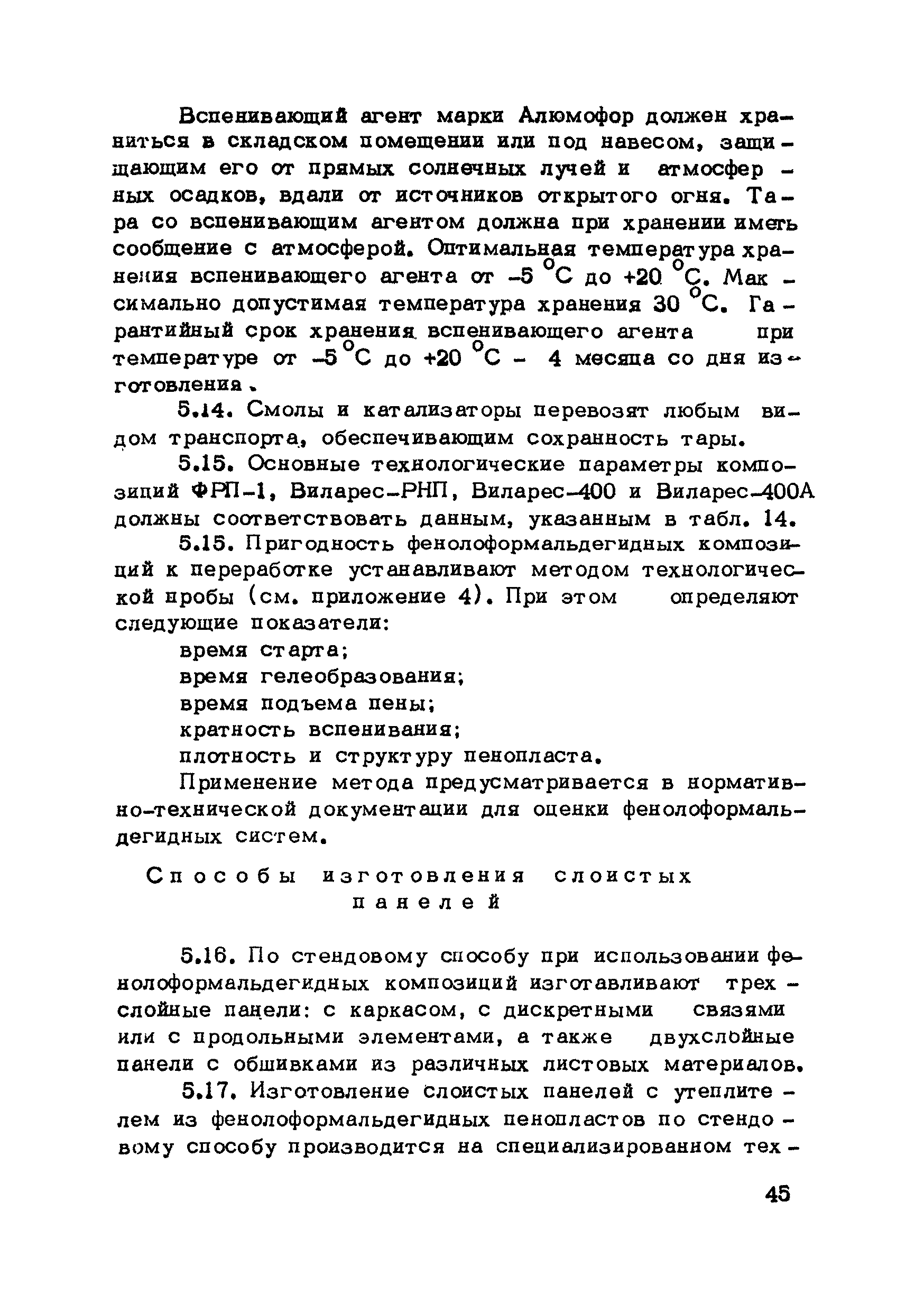 | Оглавление: | Предисловие 1. Общие положения 2. Требования к слоистым ограждающим конструкциям 3. Требования к материалам, применяемым при изготовлении панелей Материалы для обшивок Заливочные пенопласты Грунты и клеи 4. Производство слоистых панелей . Технология изготовления слоистых панелей с утеплителем из пенополиуретана Компоненты для получения жестких пенополиуретановая Способы изготовления слоистых панелей Требования безопасности при работе с компонентами полиуретановой композиции 5. Технология изготовления слоистых панелей с утеплителем из фенолоформальдегидных пенопластов Компоненты для получения фенолоформальдегидных пенопластов Способы изготовления слоистых панелей Требования безопасности при работе с компонентами фенолоформальдегидной композиции 6. Технология изготовления слоистых панелей с утеплителем из карбамидоформальдегидного пенопласта Компоненты для получения карбамидоформальдегидных пенопластов Стендовый способ изготовления слоистых панелей Контроль качества панелей Требования безопасности при работе с карбамидоформальдегидными системами 7. Технология изготовления слоистых панелей с утеплителем на основе композиционного пенололиуретана Компоненты для получения композиционного пенопласта Способ изготовления панелей 8. Требования к упаковке и транспортировке панелей 9. Указания по применению панелей 10. Требования безопасности при производстве слоистых, ограждающих панелей с применением заливочных пенопластов 11. Отходы производства Приложение 1. Методы контроля качества пенопласта и элементов панелей Приложение 2. Контроль качества адгезионной прочности соединения обшивок с пенопластом Приложение 3. Подготовка заливочной машины к работе и проверка дозировки насосов Приложение 4. Методика определения технологических параметров пенополиуретановых и фенолоформальдегидных заливочных композиций Приложение 5. Методика определения технологических параметров исходного сырья и карбамидоформальдегидных композиций |