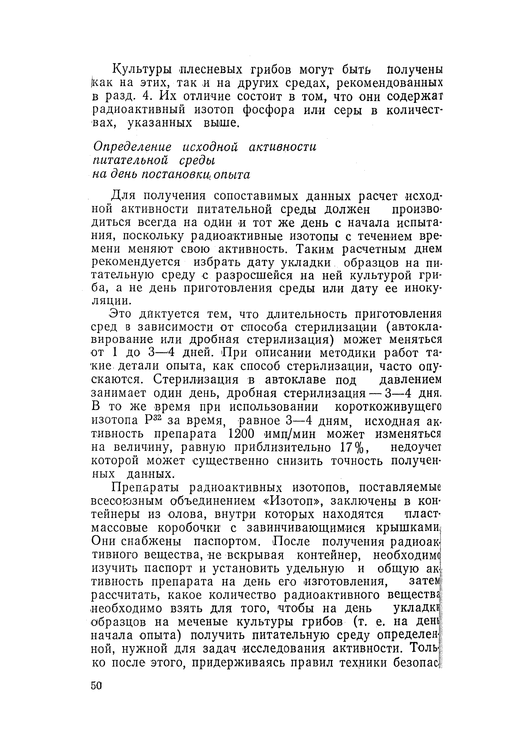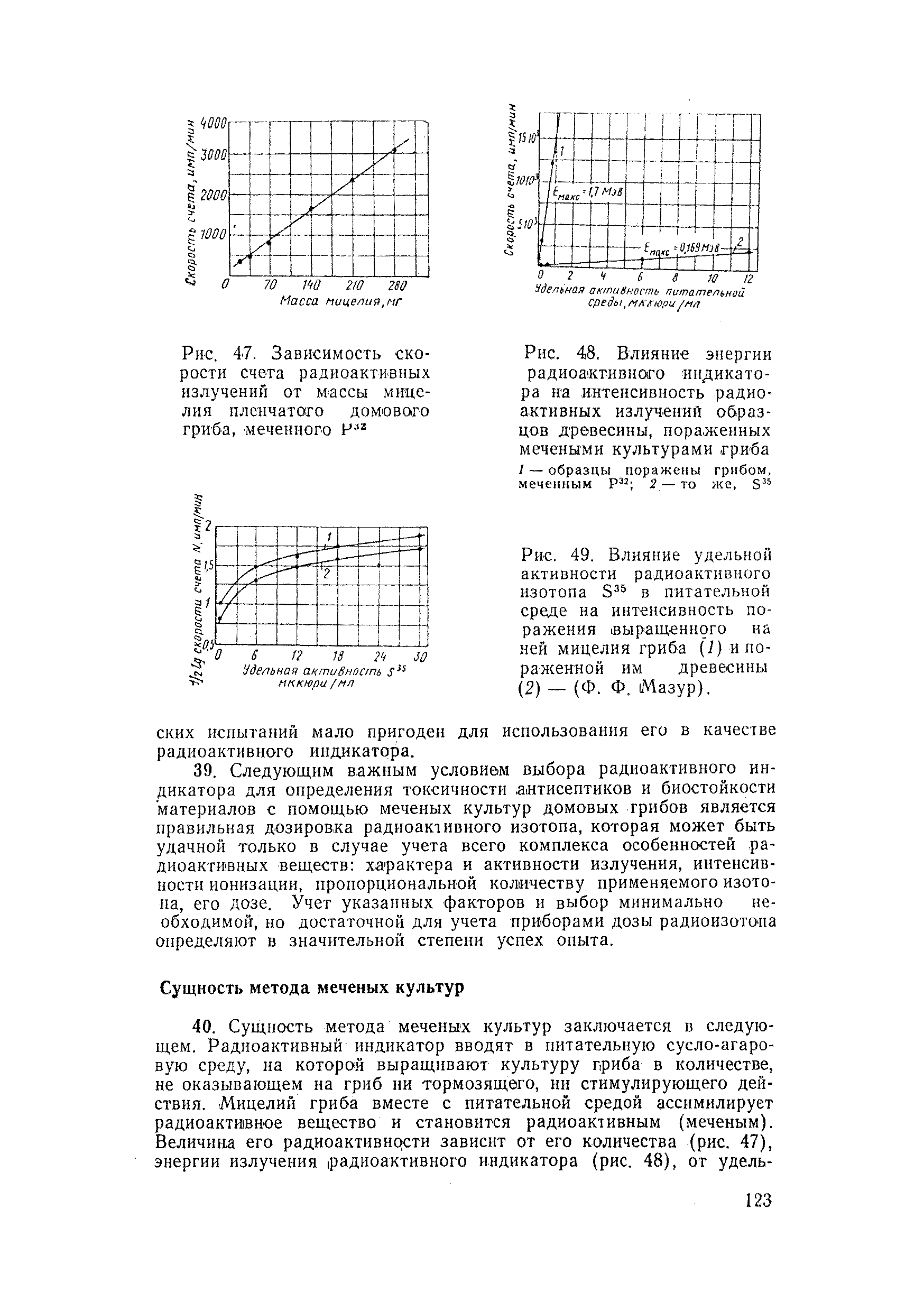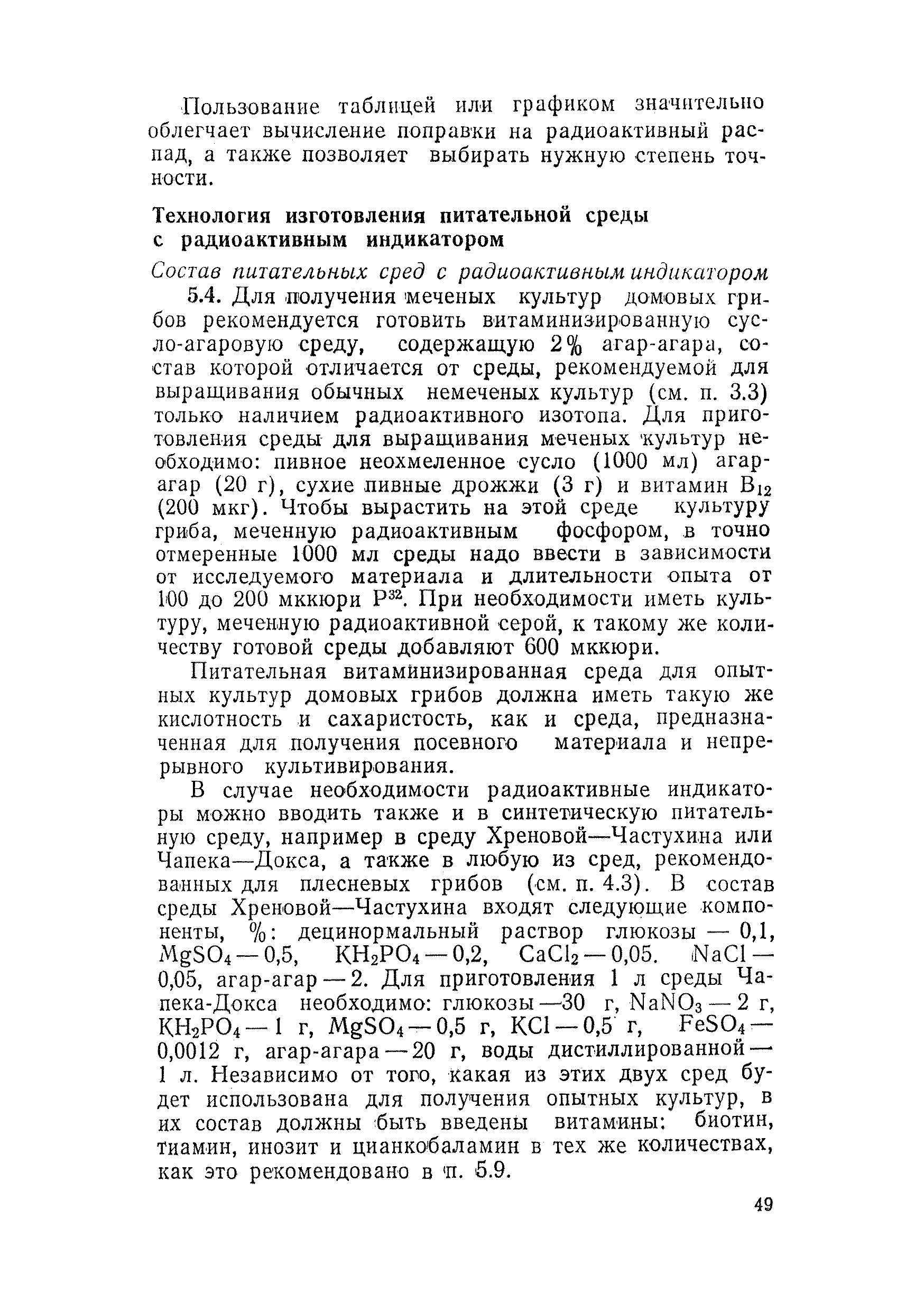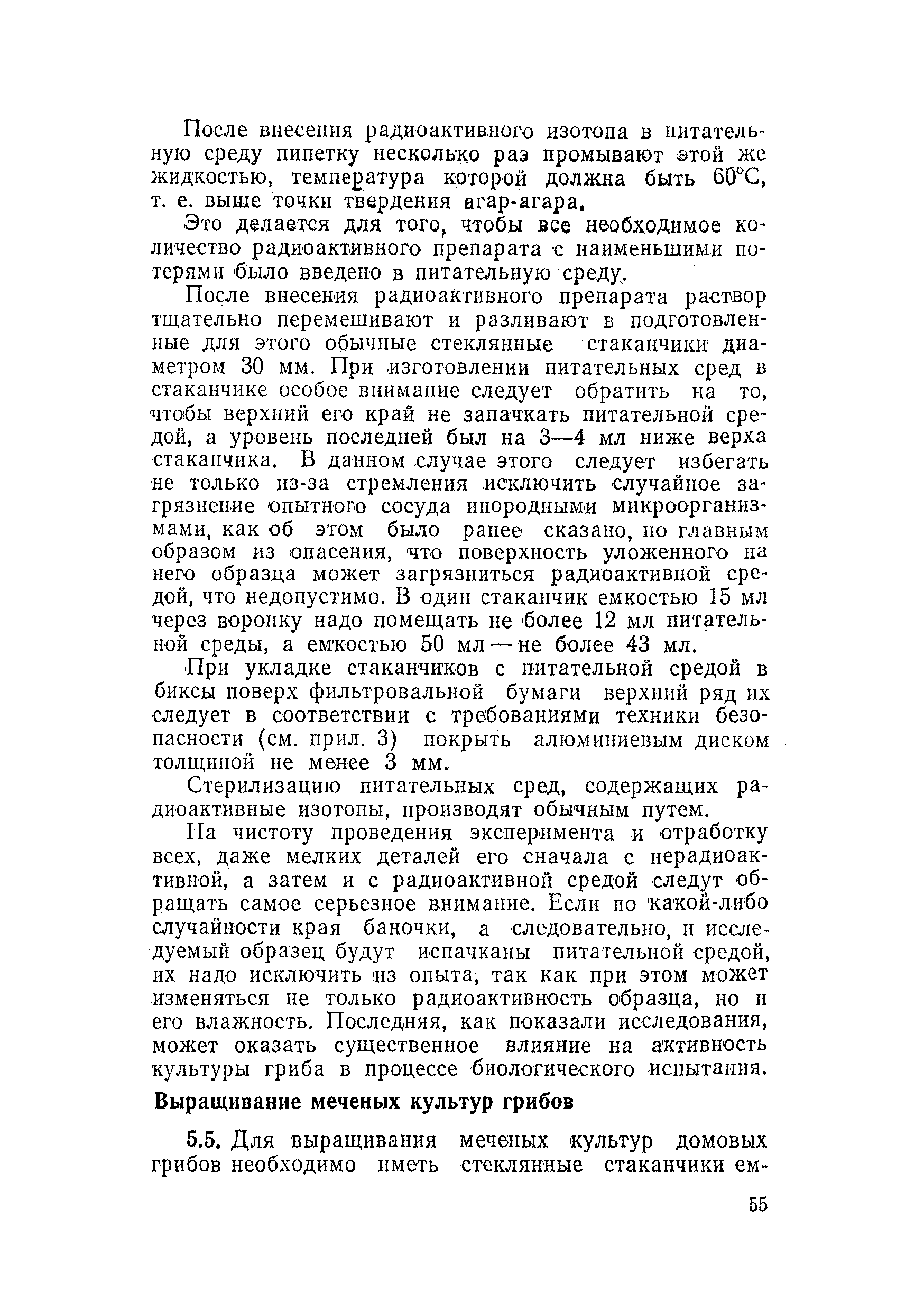 | Оглавление: | 1 Общая часть 2 Подготовка образцов к испытанию 3 Подготовка чистых культур домовых грибов к испытанию 4 Подготовка чистых культур плесневых грибов и их смеси к испытанию 5 Получение меченых культур грибов и проведение испытаний на них 6 Определение поражения образцов материалов по интенсивности радиоактивных излучений 7 Оценка результатов испытаний методом меченных культур грибов Приложение 1. Терминология Приложение 2. Особенности метода меченых культур и условий его применения для биологических испытаний Приложение 3. Техника безопасности при работе с мечеными культурами грибов Приложение 4. Условия заказа и получения радиоактивных изотопов |