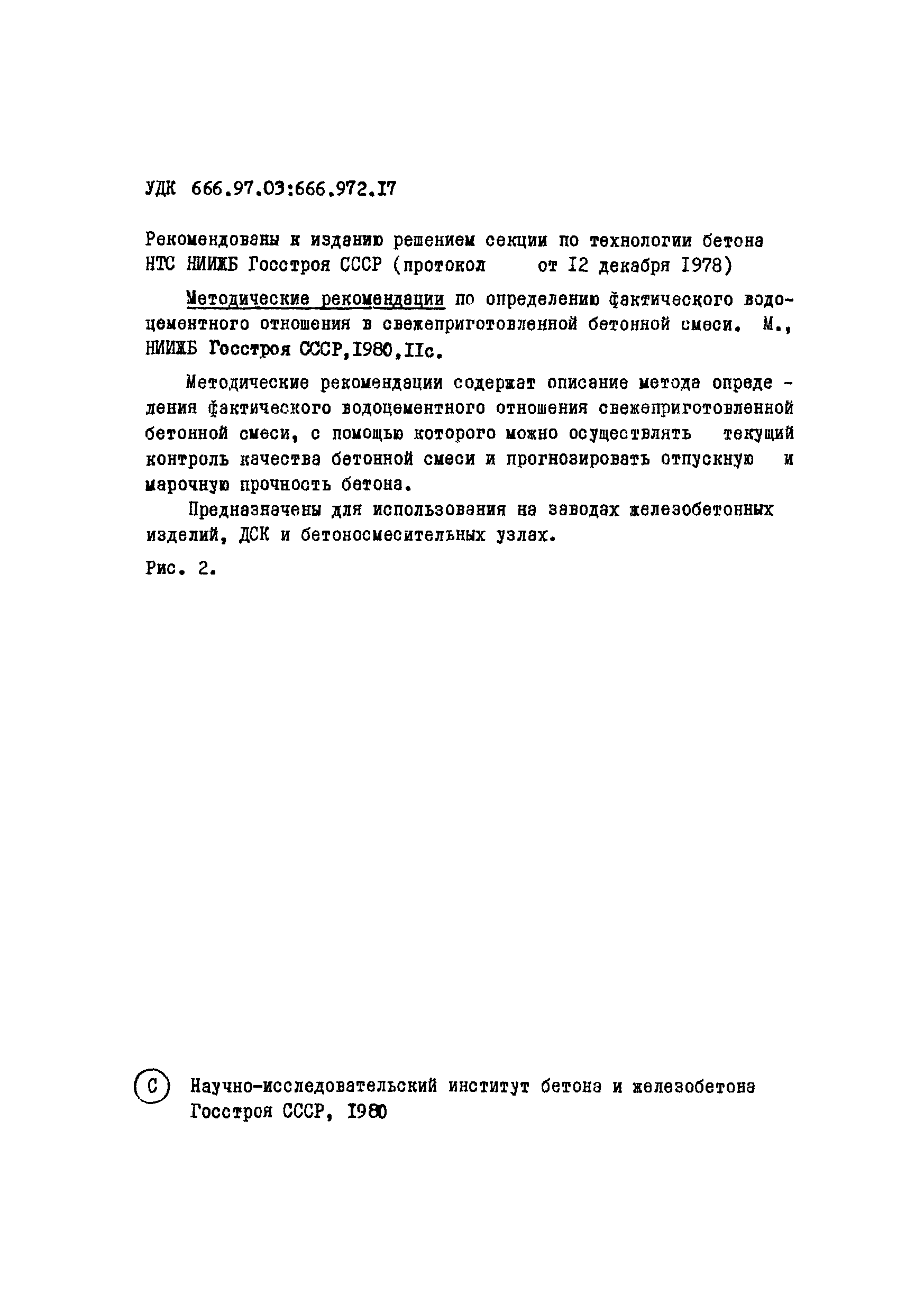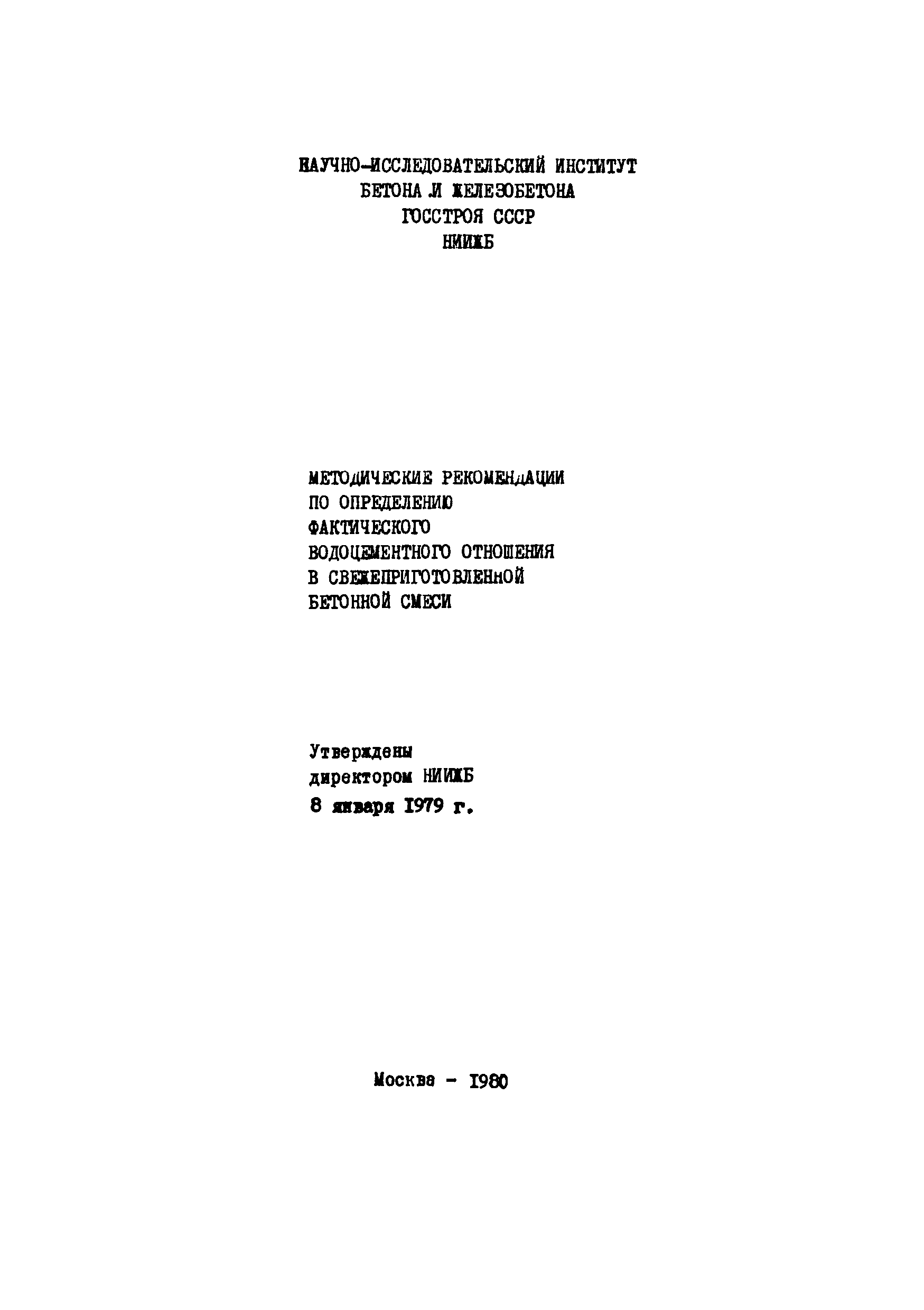 | Название рус.: | Методические рекомендации по определению фактического водоцементного отношения в свежеприготовленной бетонной смеси |