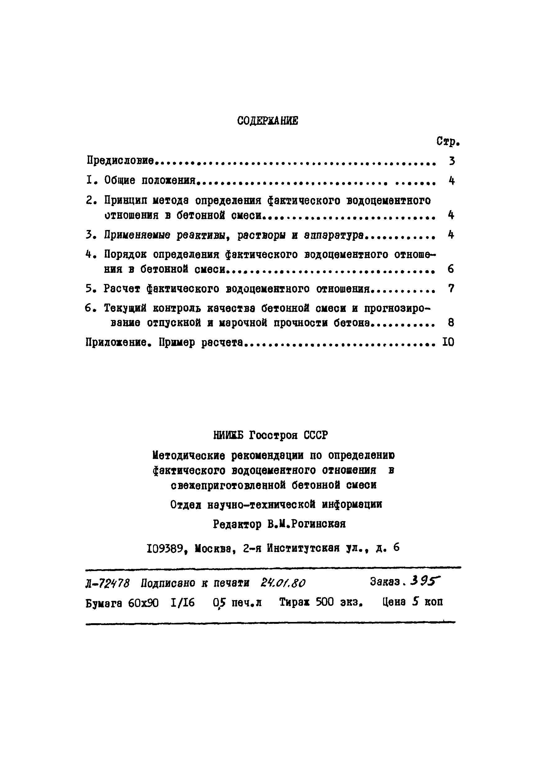 | Оглавление: | Предисловие 1. Общие положения 2. Принцип метода определения фактического водоцементного отношения в бетонной смеси 3. Применяемые реактивы, растворы и аппаратура 4. Порядок определения фактического водоцементного отношения в бетонной смеси 5. Расчет фактического водоцементного отношение 6. Текущий контроль качества бетонной смеси и прогнозирование отпускной и марочной прочности бетона Приложение. Пример расчета |