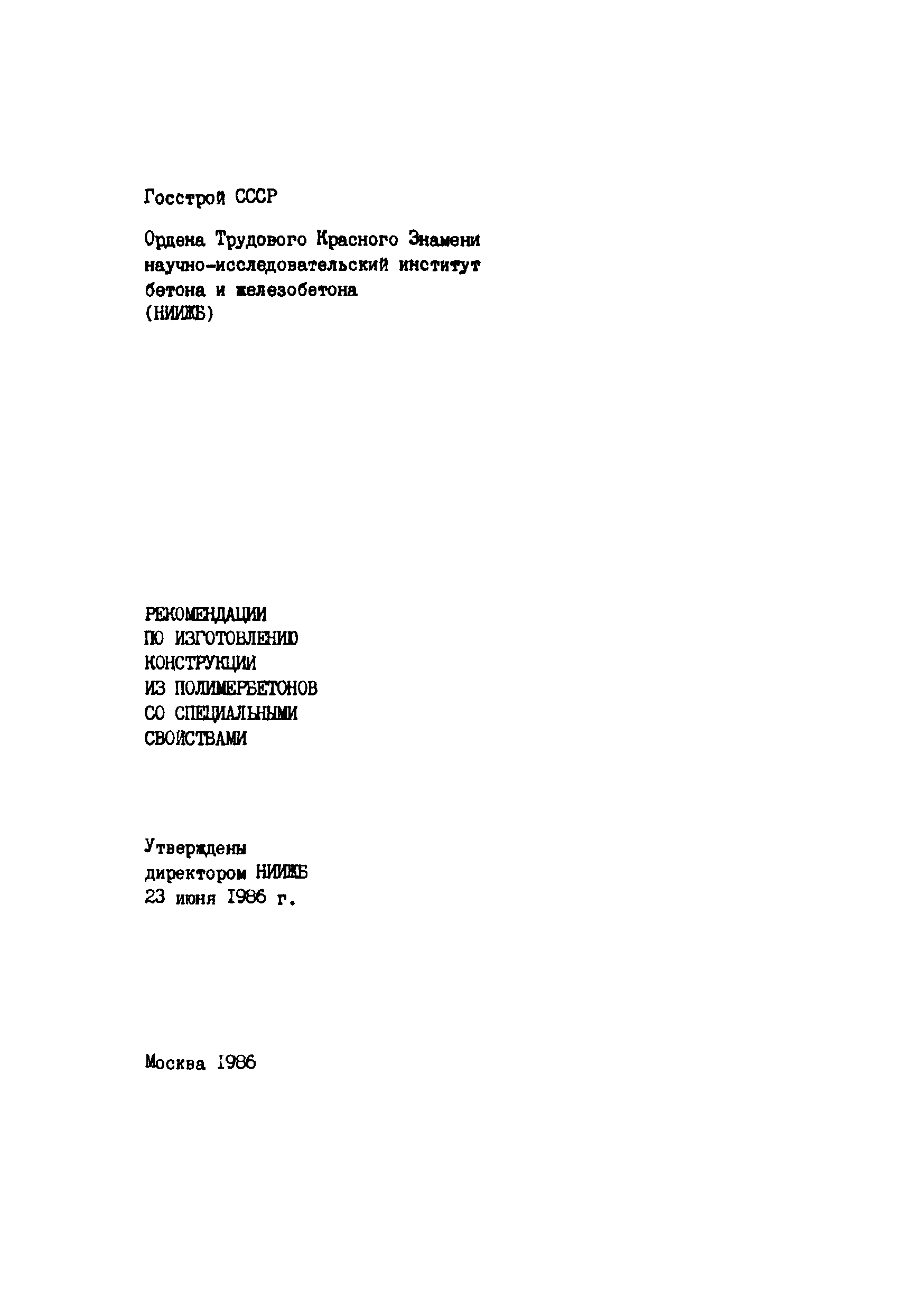 | Утверждён: | 23.06.1986 НИИЖБ Госстроя СССР (NIIZhB, USSR Gosstroy ) |