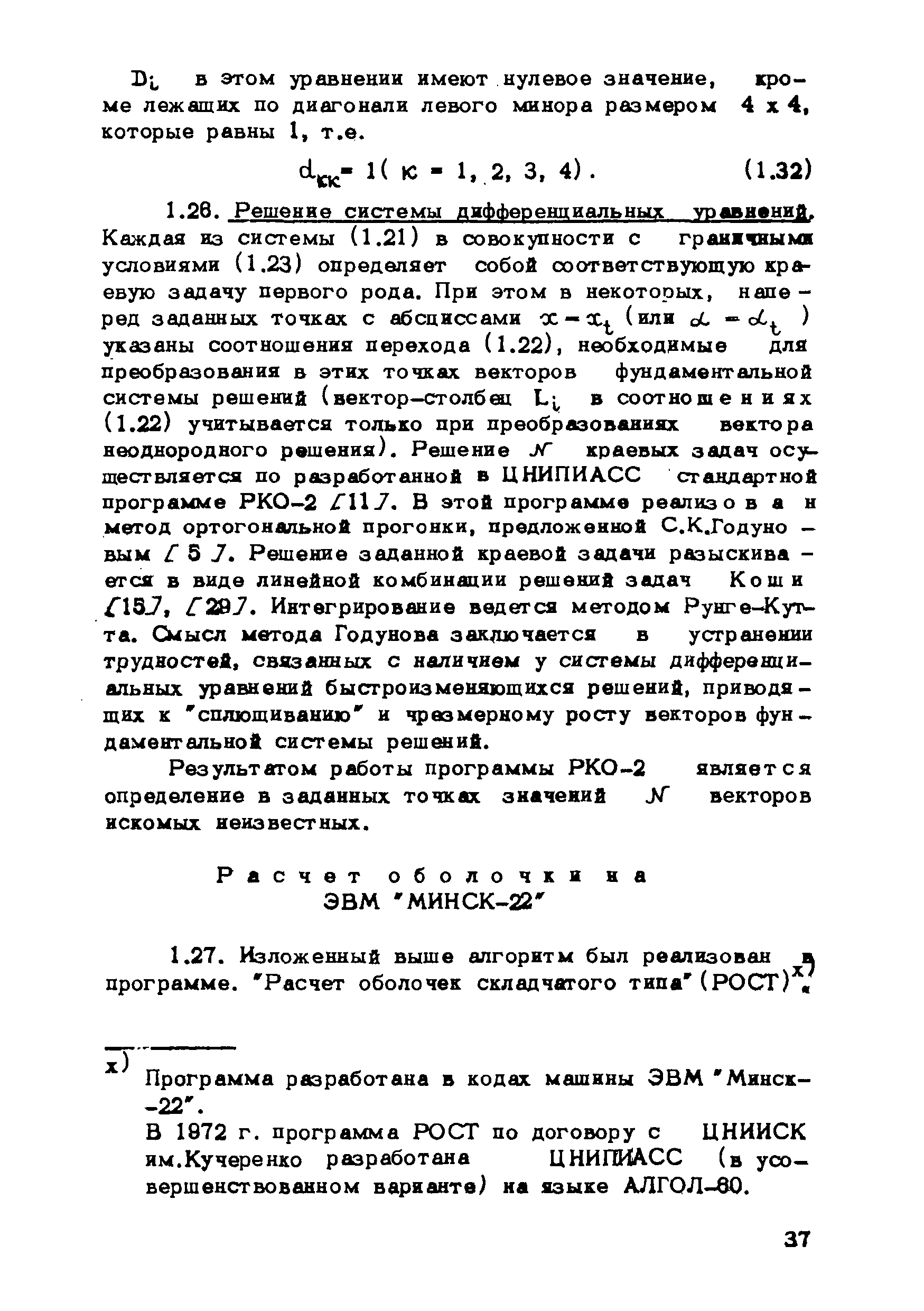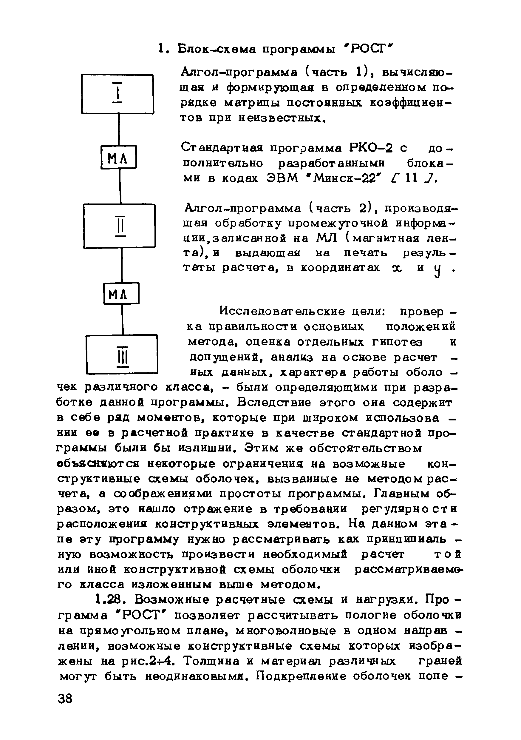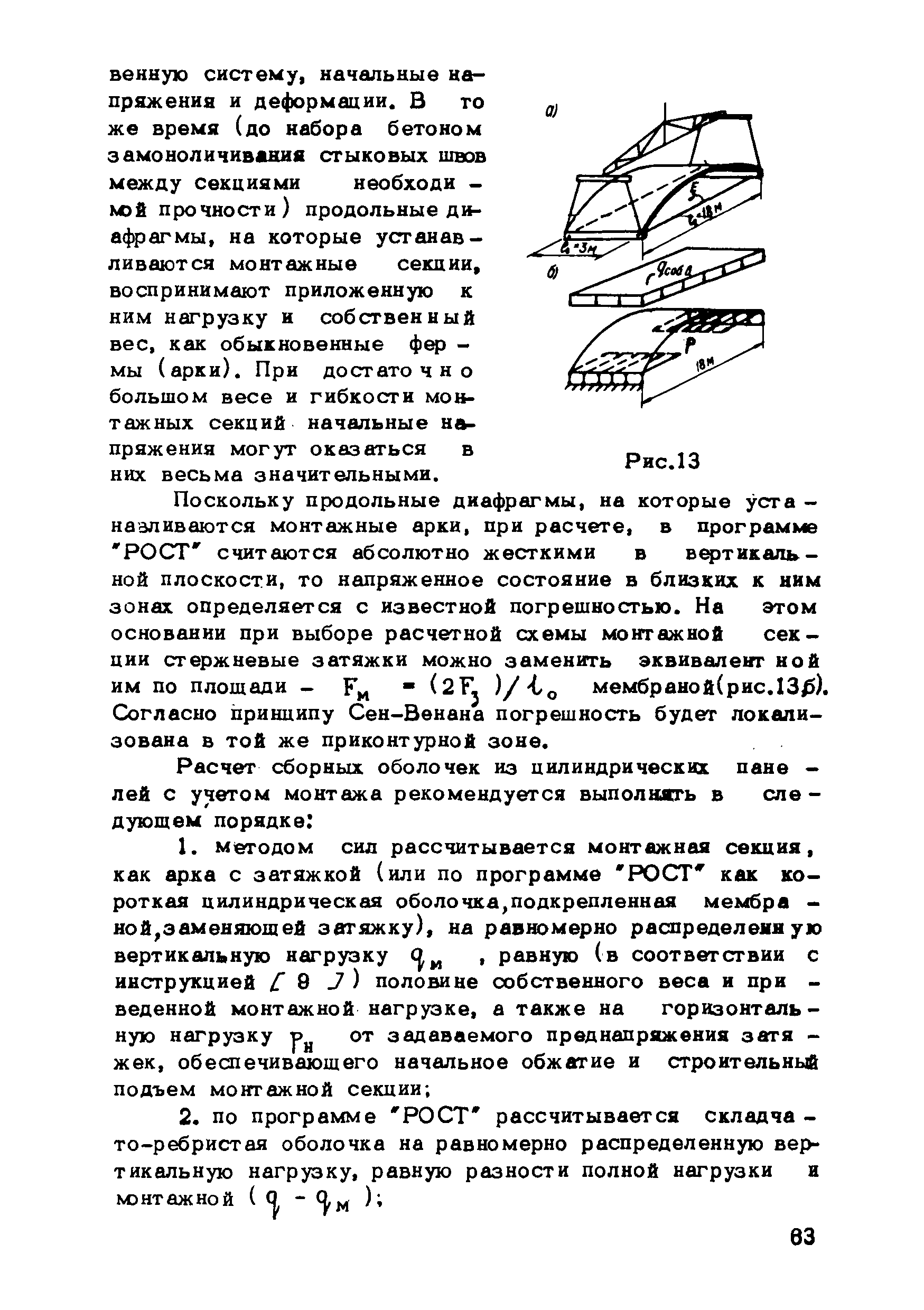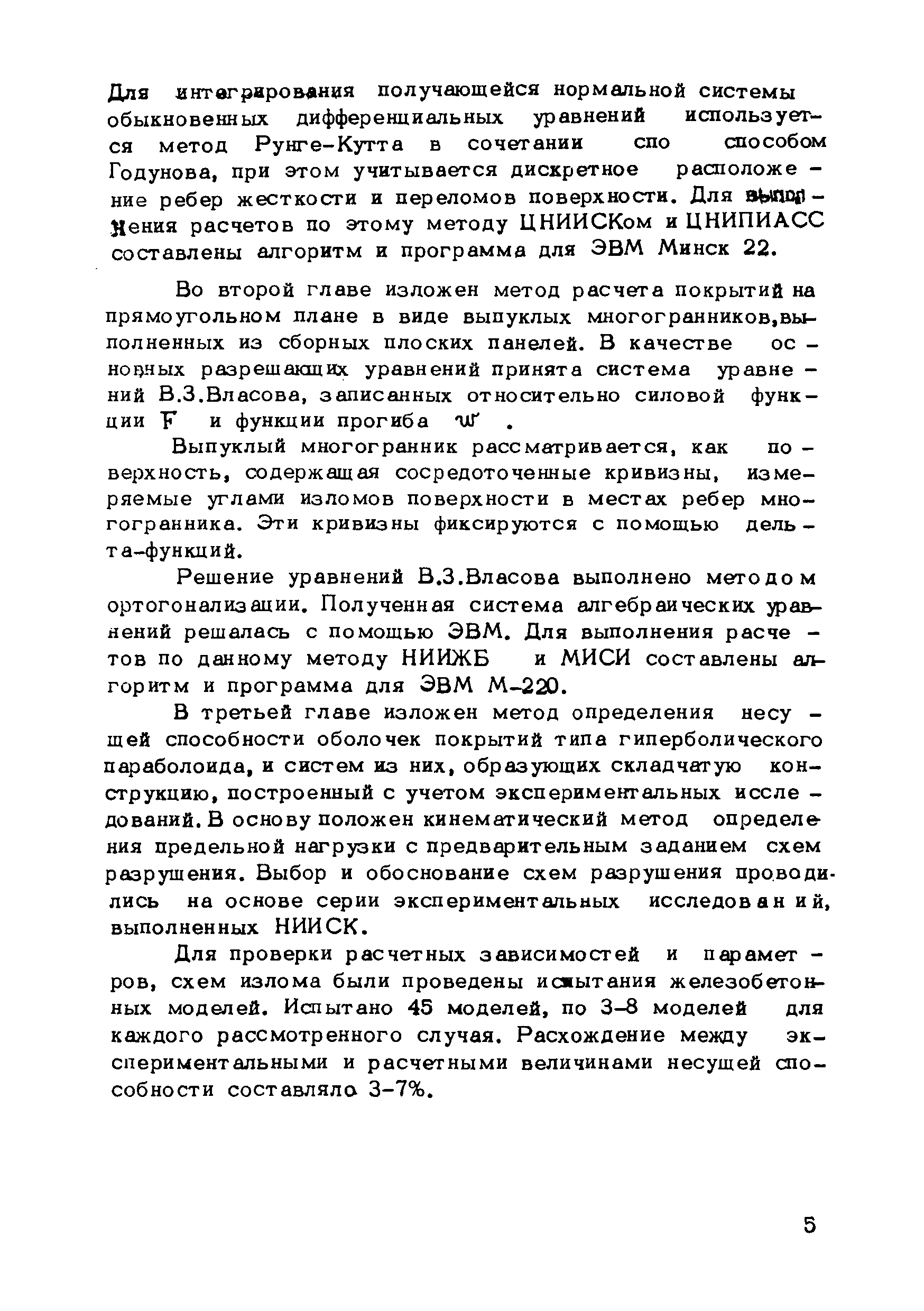 Рекомендации по методам расчета оболочек складчатого типа| Статус: | справочные материалы, мп, тпр | | Название рус.: | Рекомендации по методам расчета оболочек складчатого типа | | Дата добавления в базу: | 01.10.2014 | | Дата актуализации: | 01.01.2021 | | Область применения: | Рекомендации могут использоваться в практике проектирования новых типов оболочек покрытий и предназначены для инженеров-проектировщиков, научных работников и аспирантов, занимающихся исследованиями и разработкой тонкостенных пространственных систем. | | Оглавление: | Введение Глава 1. Метод и алгоритм расчета оболочек складчатого типа на прямоугольном плане из криволинейных ребристых панелей Геометрия поверхности и исходные положения Метод решения исходных уравнений оболочек с использованием тригонометрических рядов Построение решения контактной задачи сопряжения граней складчатой оболочки между собой, с поперечными диафрагмами и ребрами жесткости Алгоритм расчета Расчет оболочки на ЭВМ "Минск-22" Приложение 1. Учет продольных ребер Приложение 2. Примеры расчета и особенности напряженного состояния оболочек складчатого типа на прямоугольном плане из криволинейных ребристых панелей 1. Особенности напряженного состояния типовой оболочки покрытия при действии равномерно распределенной нагрузки 2. Особенности напряженного состояния типовой оболочки покрытия при действии сосредоточенной нагрузки 3. Учет влияния постепенности монтажа на окончательное распределение усилий в сборных типовых оболочках 4. Особенности напряженного состояния оболочек складчатого типа в зависимости от различной формы искривления граней и от величины углов перелома поверхности 5. Некоторые выводы и рекомендации по расчету и проектированию Глава 2. Оболочки вида выпуклых многогранников Общие положения Геометрия пологой граненой поверхности Основные уравнения и их решение Определение перемещений Расчет граненых оболочек, подкрепленных ребрами Расчет граненых оболочек на сосредоточенные нагрузки Приложение 3. Примеры и анализ результатов решений Пример 1 Пример 2 Пример 3 Пример 4 Программа Примечания к программе Глава 3. Расчет несущей способности покрытий из оболочек типа гиперболического параболоида с прямолинейными краями Общие положения Отдельно стоящие оболочки в виде равностороннего гиперболического параболоида с прямолинейными краями Покрытия в виде системы из четырех оболочек Приложение 4. Таблицы для расчета Таблица для расчета оболочек, опирающихся на нижние углы, закрепленные от горизонтальных смещений Таблица для расчета оболочек, опирающихся на нижние углы, соединенные затяжкой Таблица для расчета шарнирно-подвижно опертых по контуру оболочек Таблица для расчета свободно опертых по контуру оболочек Приложение 5. Примеры расчета Оболочка, опертая на нижние несмещаемые углы Пример 1 Пример 2 Оболочка, опертая на нижние смещающиеся углы Пример 3 Пример 4 Оболочка, радиально-шарнирно опертая по контуру Пример 5 Пример 6 Оболочка, свободно опертая по контуру Пример 7 Пример 8 Покрытие с горизонтальными коньками Пример 9 Покрытие с плоским контуром Пример 10 Литература | | Разработан: | ЦНИИОМТП Госстроя СССР