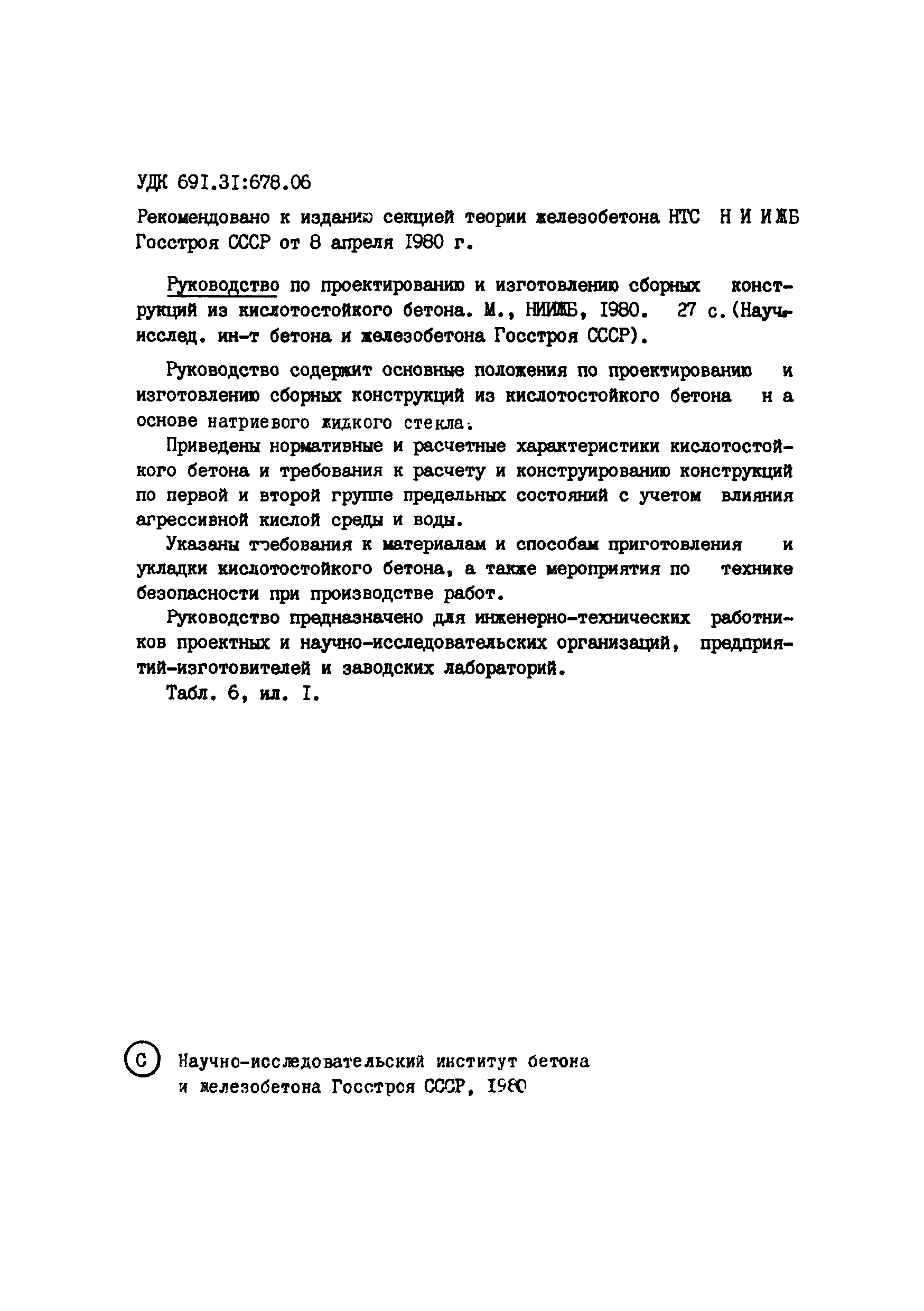 | Утверждён: | 14.01.1980 НИИЖБ Госстроя СССР (NIIZhB, USSR Gosstroy ) |