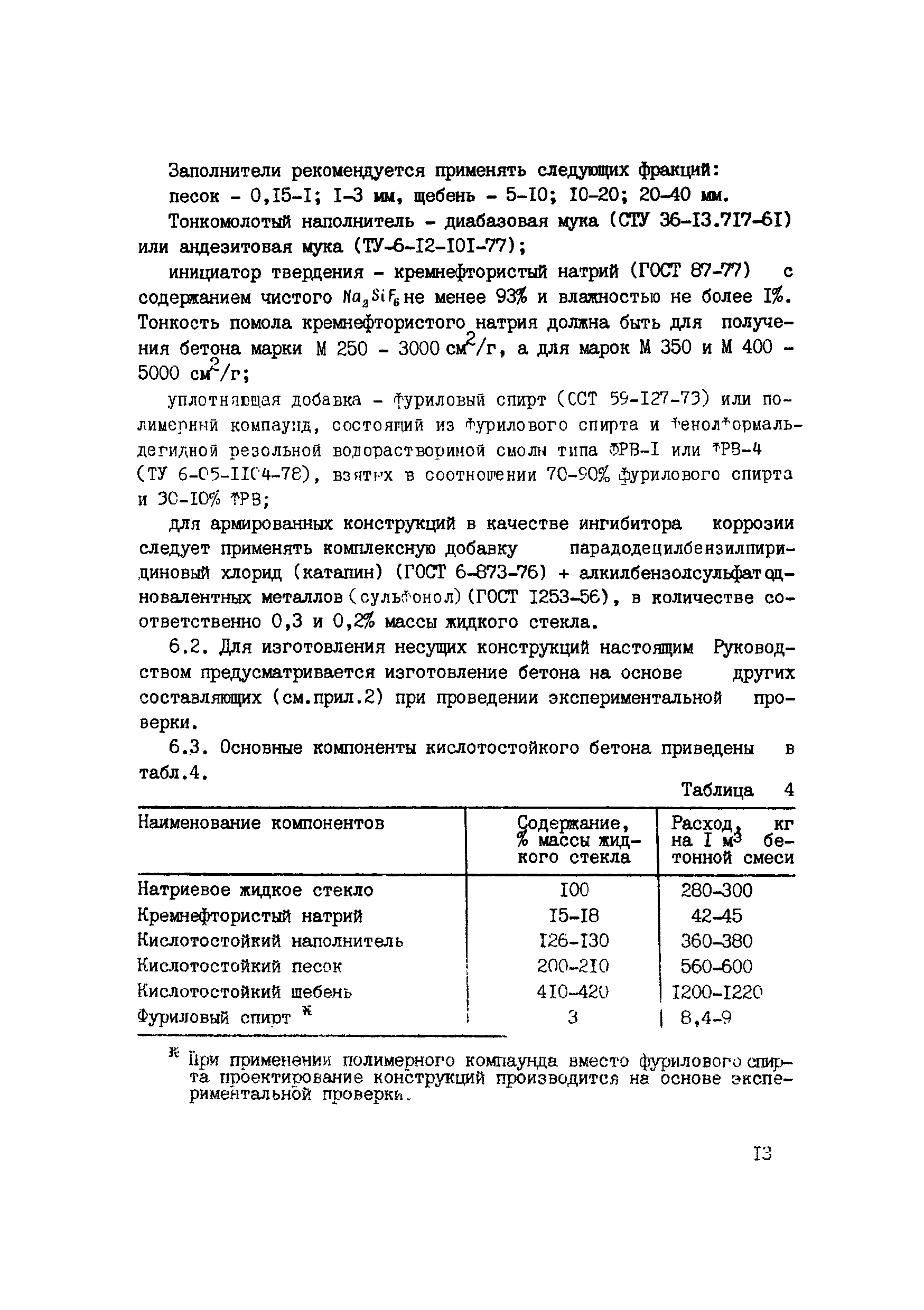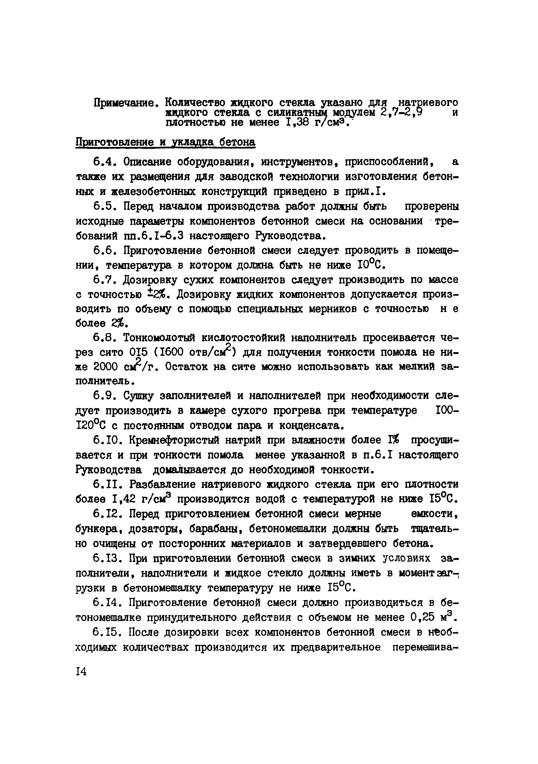 | Оглавление: | Предисловие 1. Основные положения 2. Материалы для конструкций из кислотостойкого бетона, эксплуатирующихся в агрессивных кислых средах 3. Расчет элементов конструкций из кислотостойкого бетона по предельным состояниям первой группы 4. Расчет элементов конструкций из кислотостойкого бетона по предельным состояниям второй группы 5. Конструктивные требования 6. Приготовление кислотостойкого бетона 7. Техника безопасности Приложение 1. Оборудование для приготовления кислотостойкого бетона Приложение 2. Составы и свойства кислотостойких бетонов Приложение 3. Лабораторный и производственный контроль технологического процесса качества исходного сырья и готовой продукции |