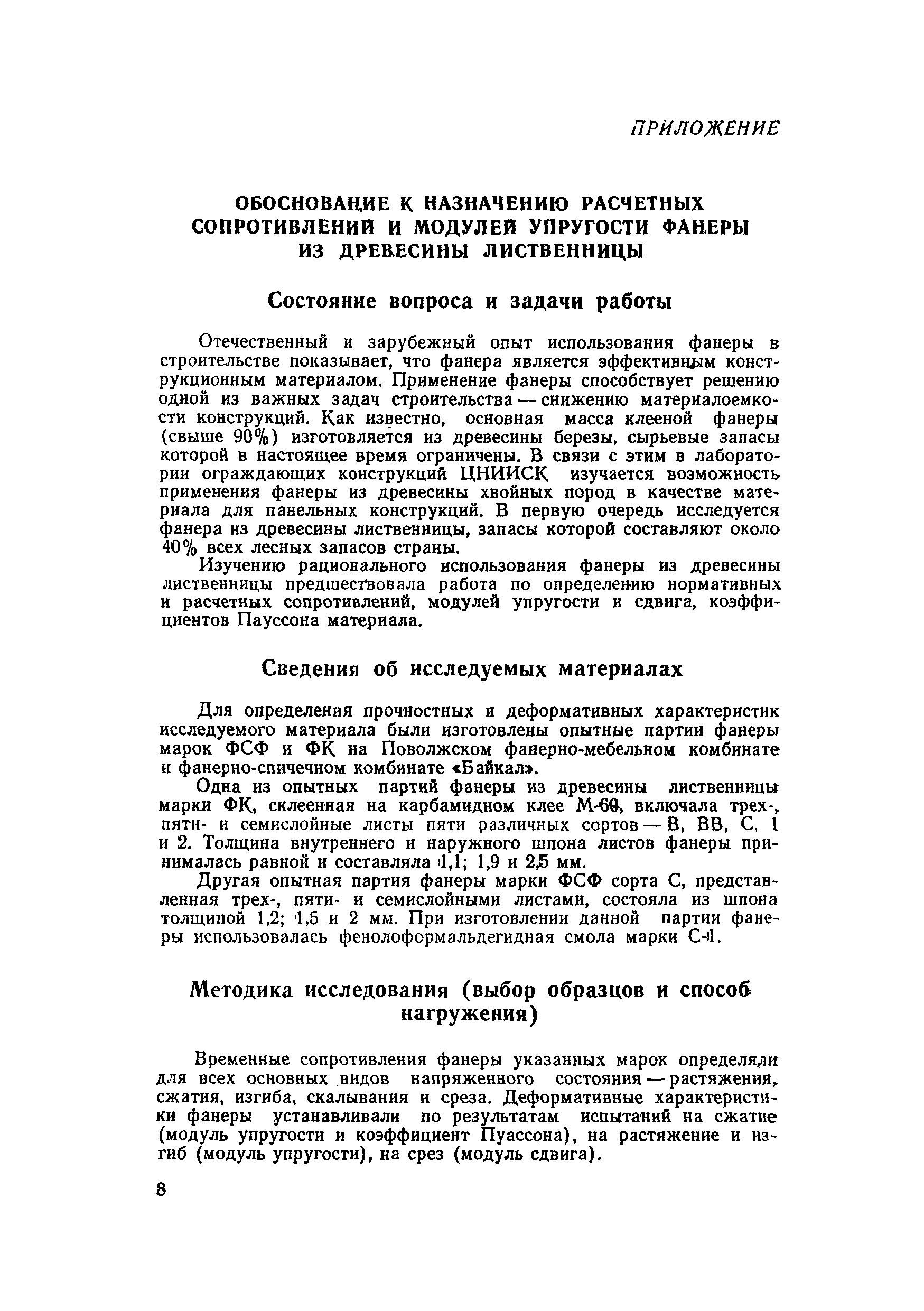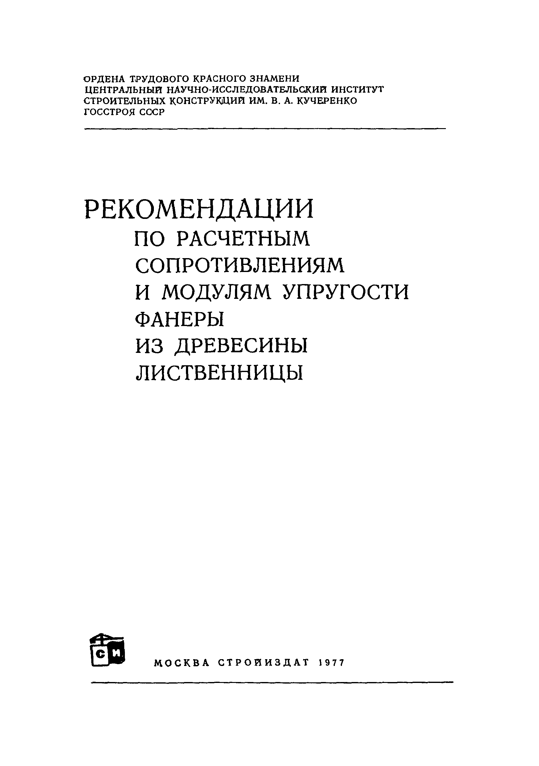 | Название рус.: | Рекомендации по расчетным сопротивлениям и модулям упругости фанеры из древесины лиственницы |