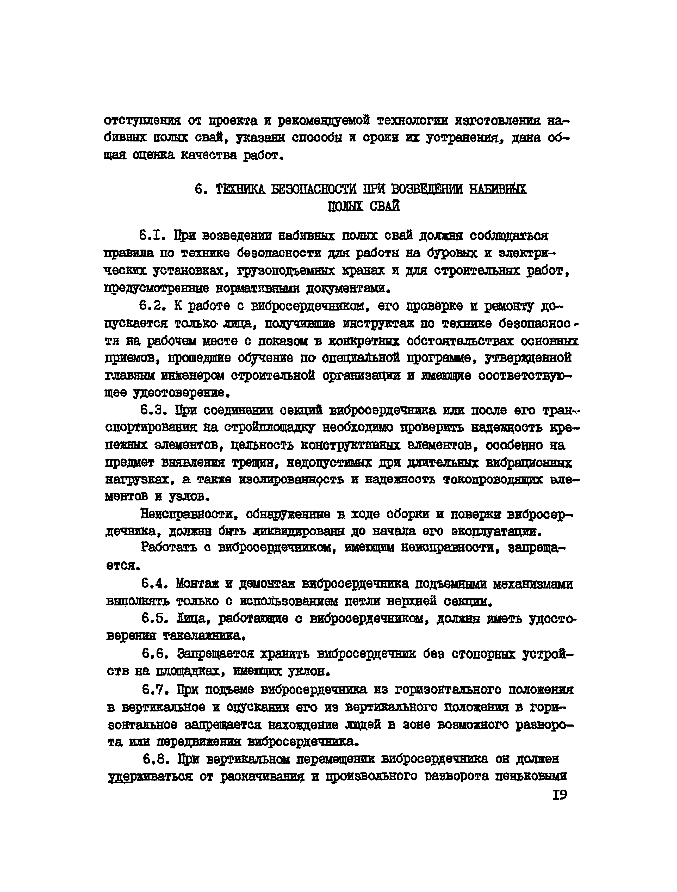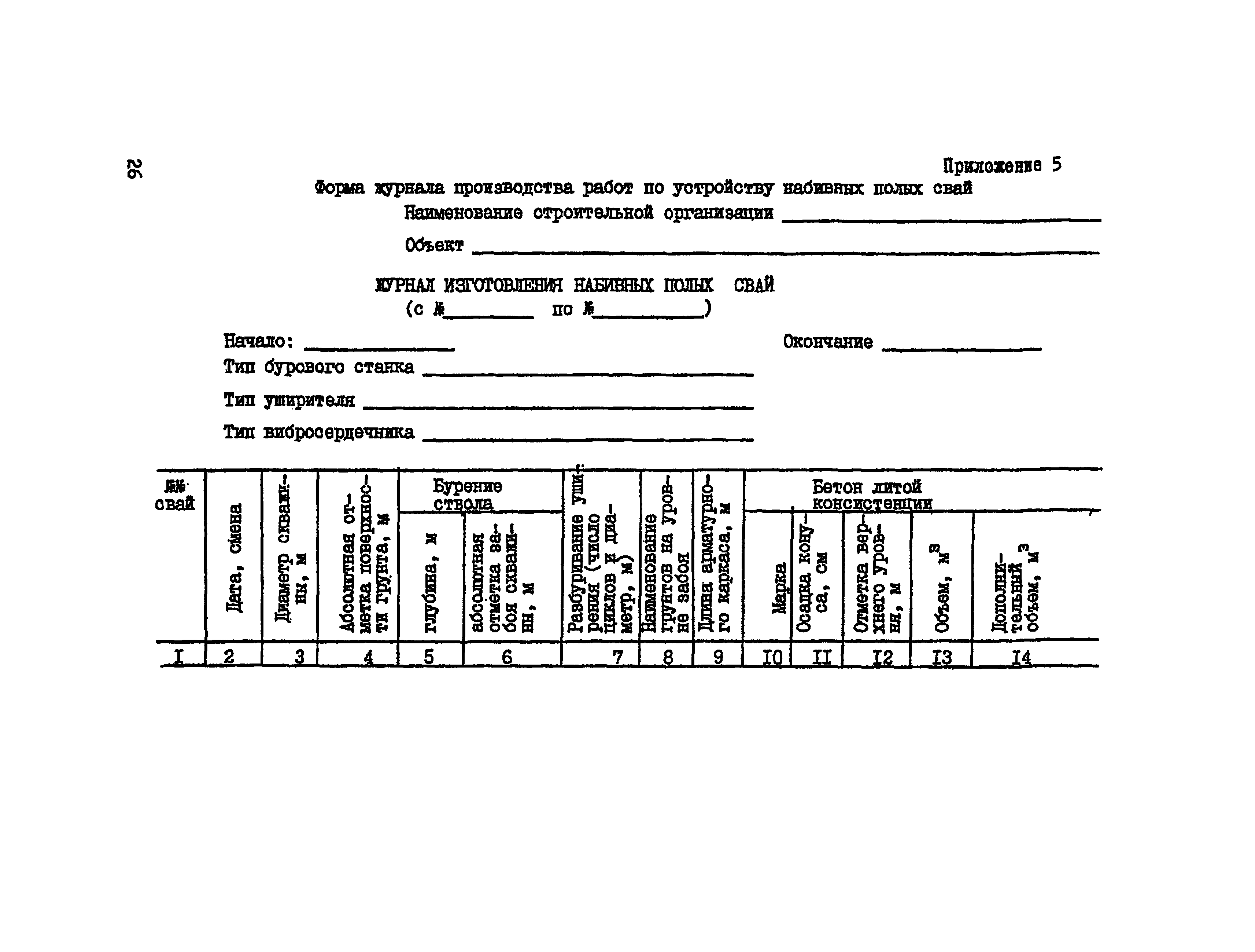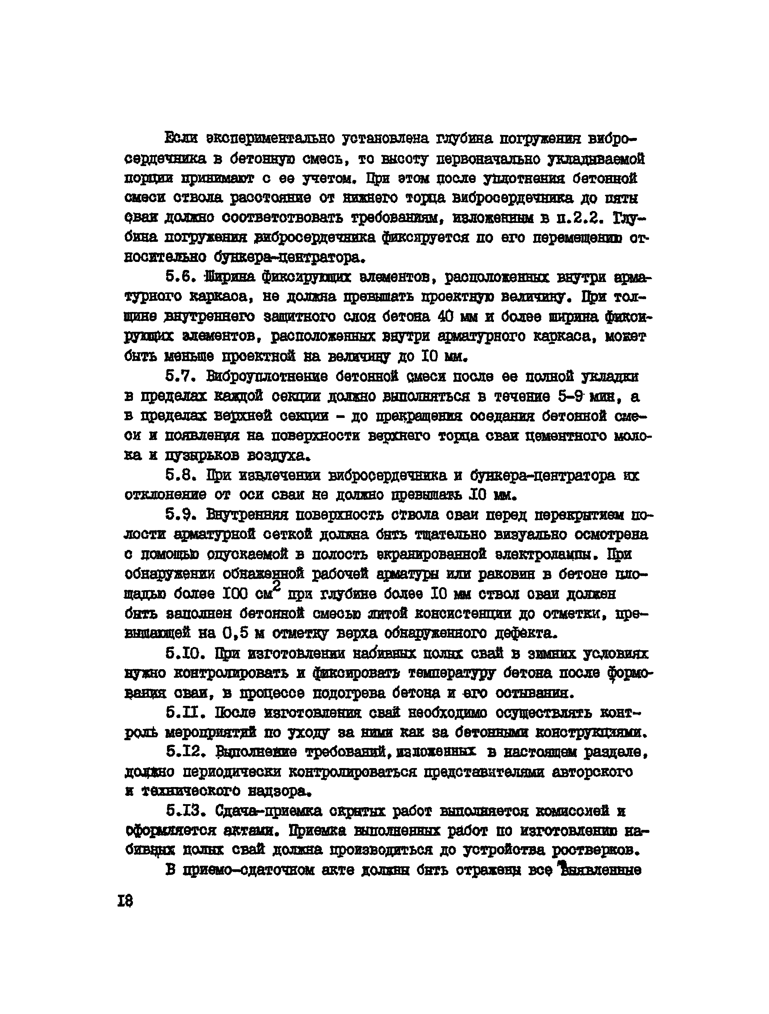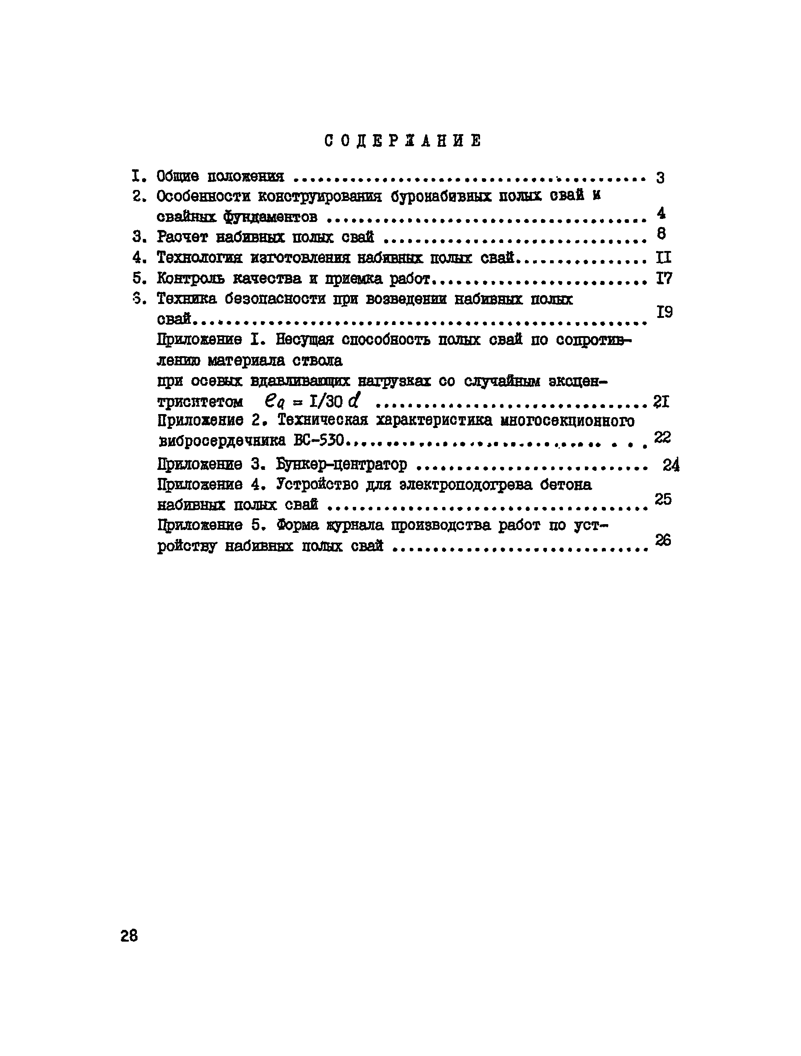 | Оглавление: | 1 Общие положения 2 Особенности конструирования буронабивных полых свай и свайных фундаментов 3 Расчет набивных полых свай 4 Технология изготовления набивных полых свай 5 Контроль качества и приемка работ 6 Техника безопасности при возведении набивных полых свай Приложение 1. Несущая способность полых свай по сопротивлению материалов ствола при осевых вдавливающих нагрузках со случайным эксцентриситетом Приложение 2. Техническая характеристика многосекционного вибросердечника ВС-530 Приложение 3. Бункер-центратор Приложение 4. Устройство для электроподогрева бетона набивных полых свай Приложение 5. Форма журнала производства работ по устройству набивных полых свай |