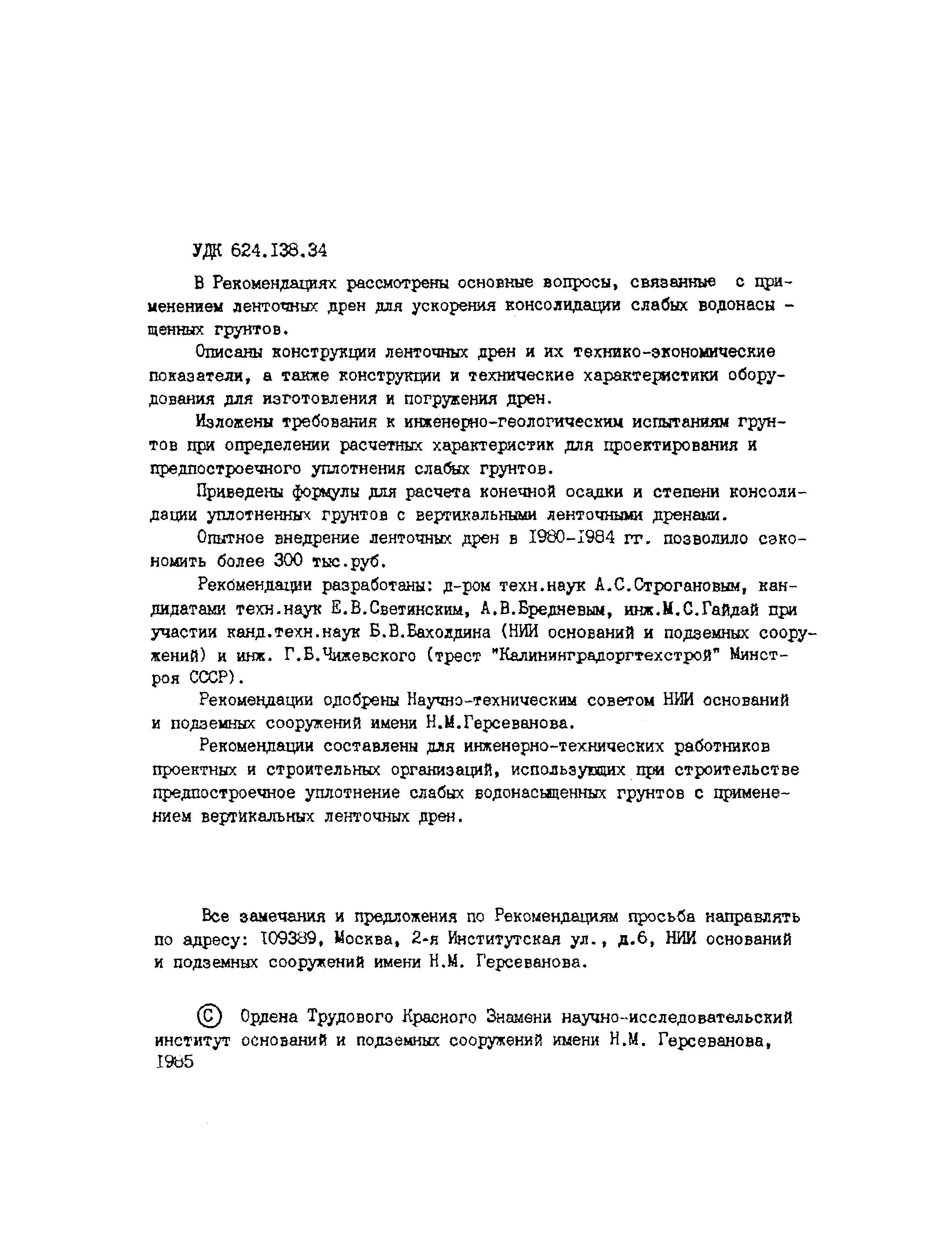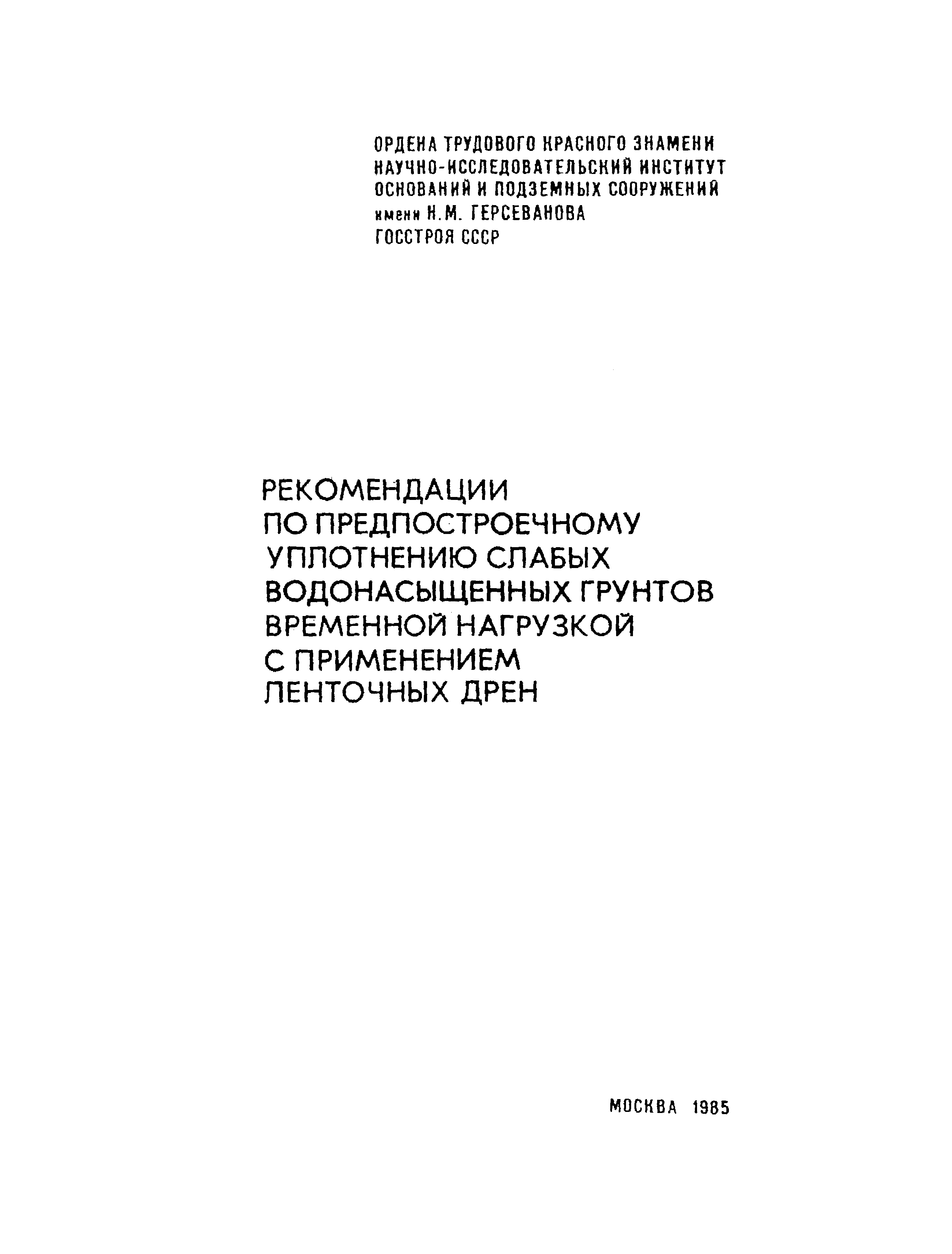 | Название рус.: | Рекомендации по предпостроечному уплотнению слабых водонасыщенных грунтов временной нагрузкой с применением ленточных дрен |