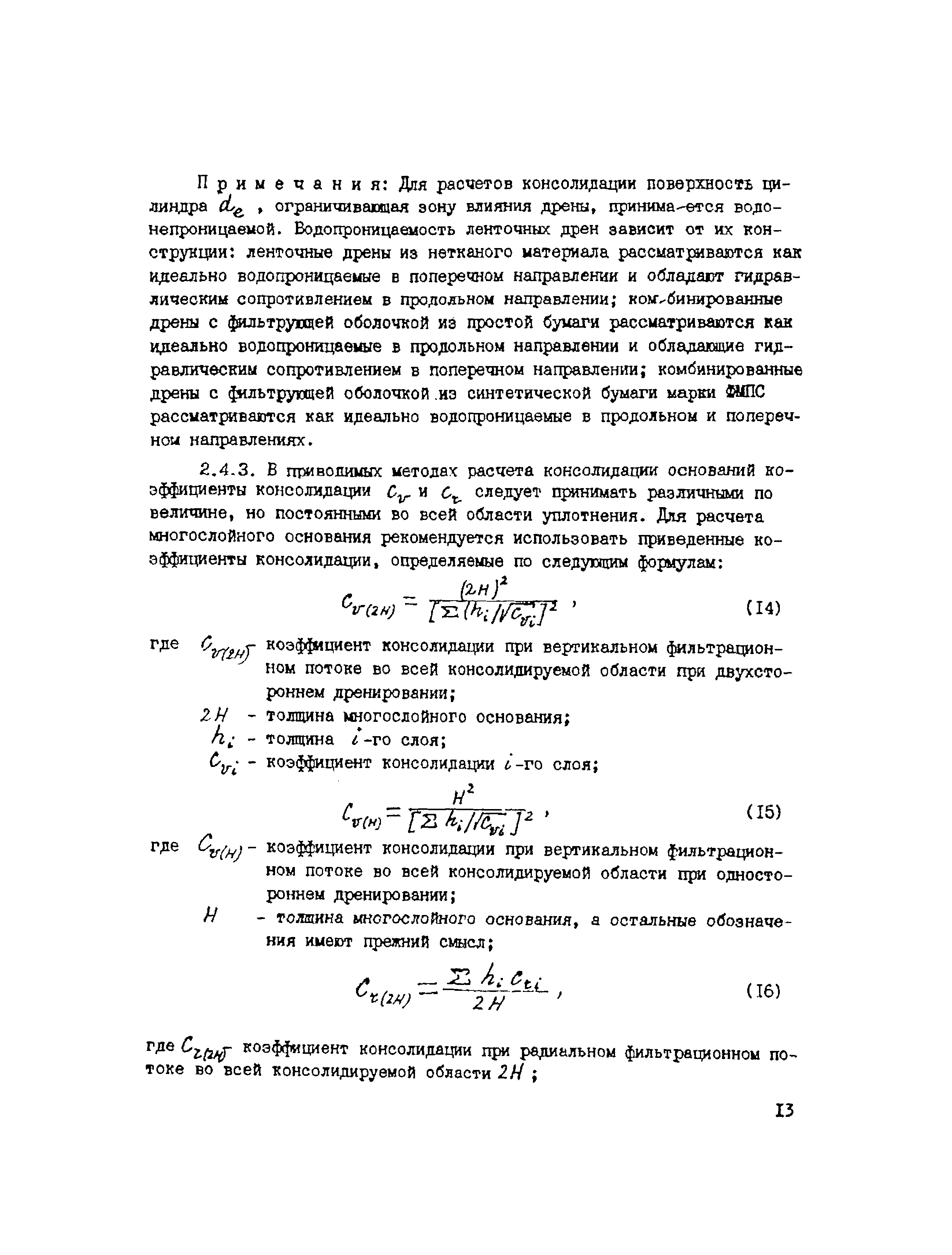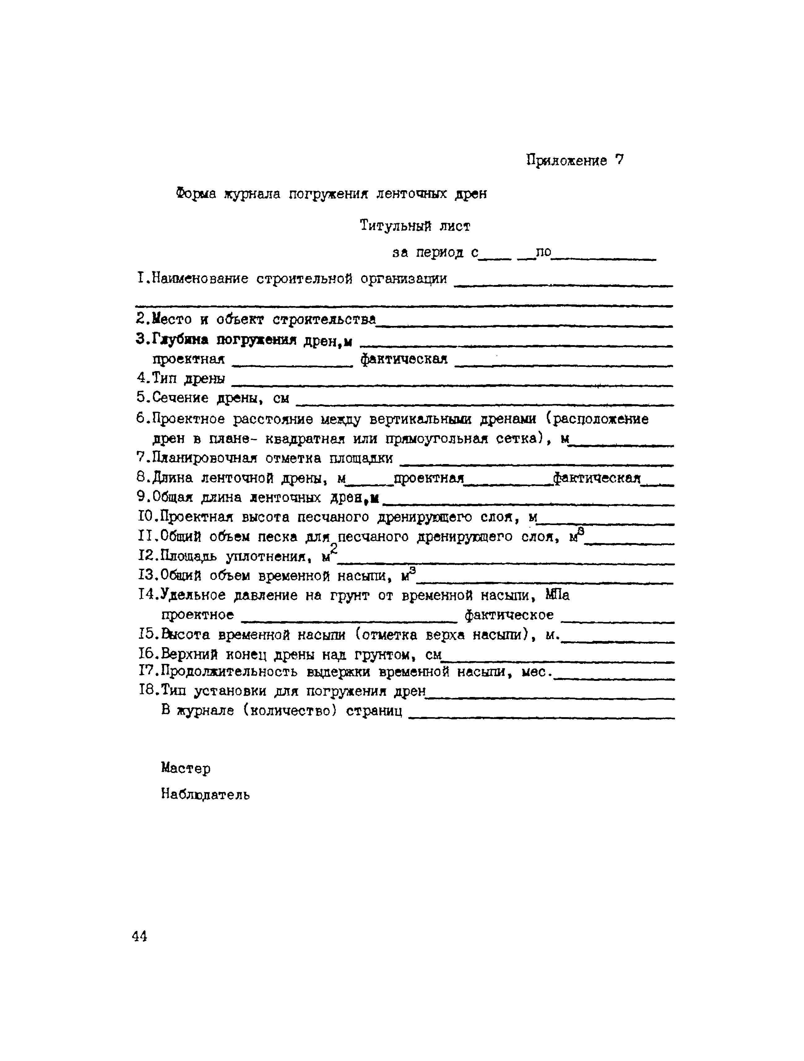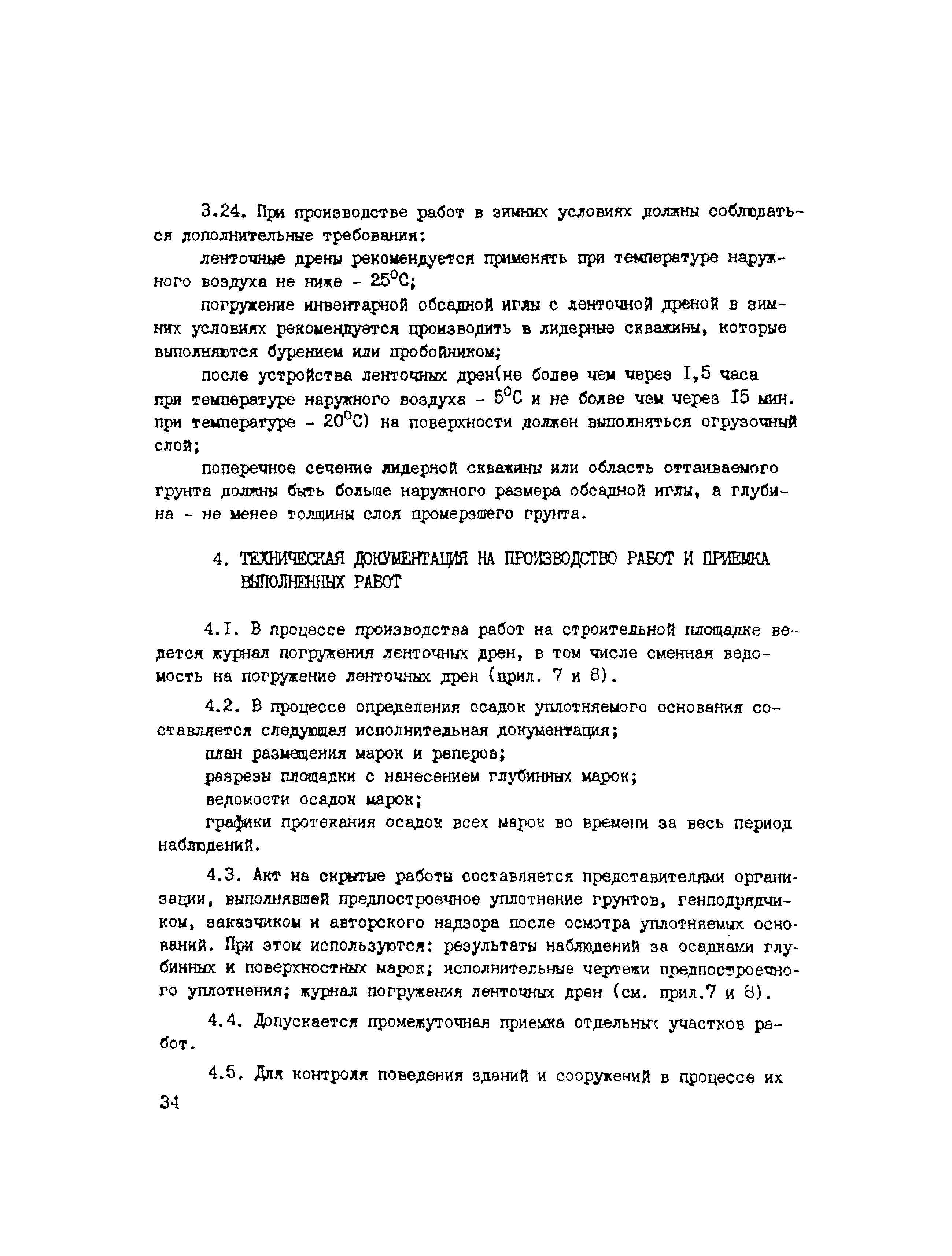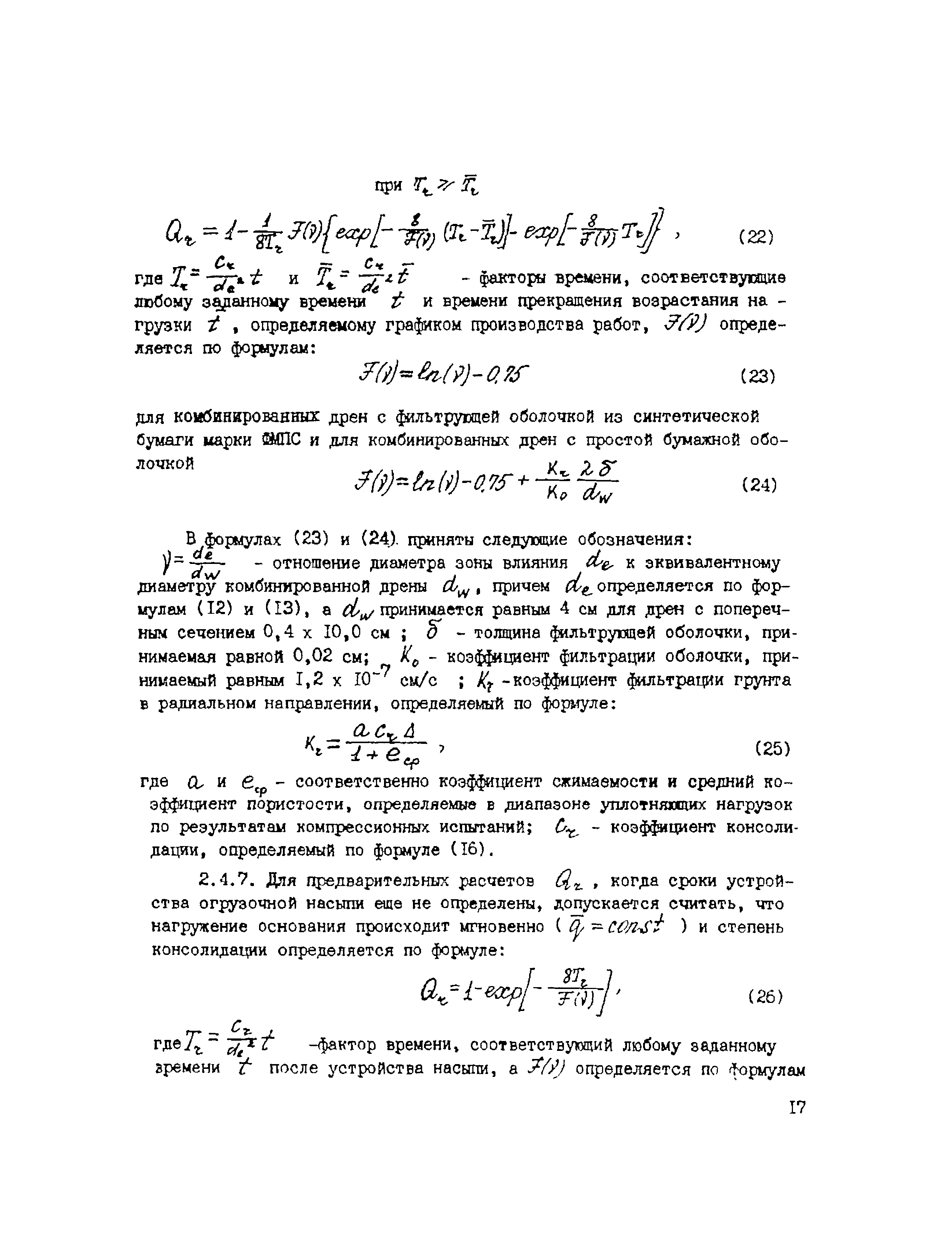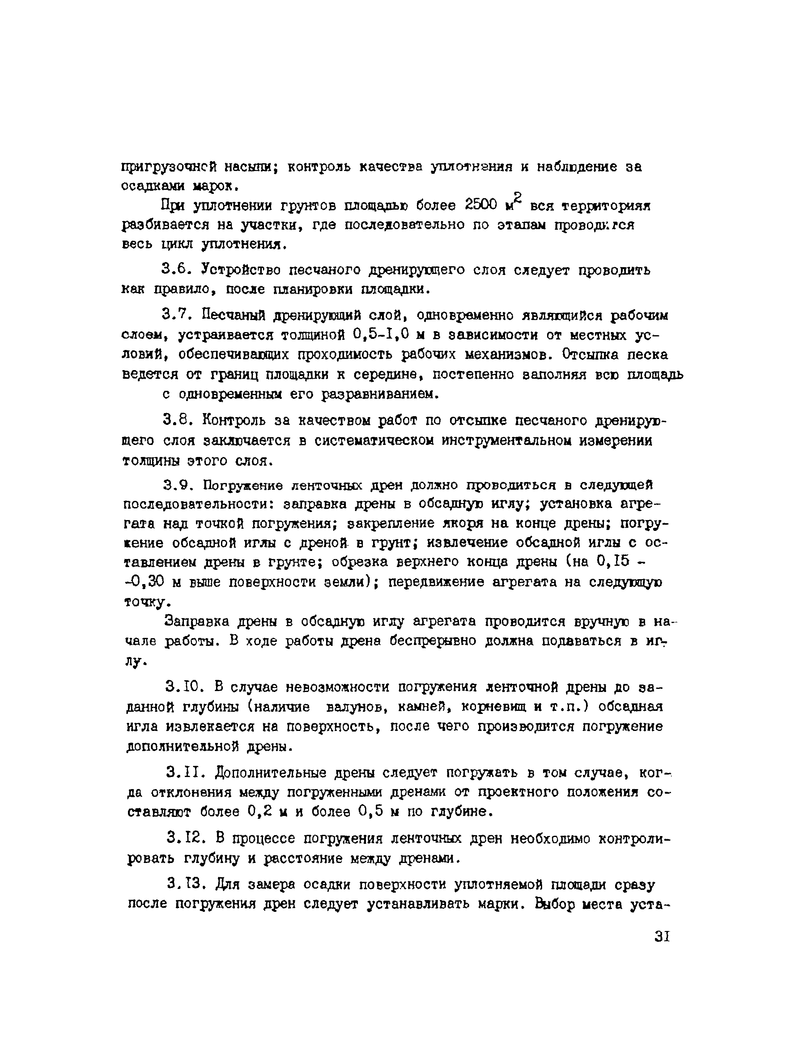 | Оглавление: | 1. Общие положения 2. Проектирование предпостроечного уплотнения оснований с применением вертикальных дрен 2.1 Инженерно-геологические исследования 2.2 Требования, предъявляемые к проекту предпостроечного уплотнения 2.3 Расчет конечных осадок оснований насыпей при предпостроечном уплотнении и инженерной подготовке территорий 2.4 Методы расчета консолидации оснований без дрен и с ленточными дренами 2.5 Проектирование фундаментов на предварительно уплотненных основаниях 2.6 Конструкции ленточных дрен и оборудование для их выпуска 3. Производство работ 4. Техническая документация на производство работ и приемка выполненных работ 5. Требования по технике безопасности Приложение 1. Пример определения коэффициента консолидации Приложение 2. Краткая характеристика установок для статического зондирования грунтов Приложение 3. Пример расчета толщины песчаного слоя для инженерной подготовки территории Приложение 4. Пример расчета времени консолидации слоя водонасыщенного торфа без дрен при намыве песка Приложение 5. Примеры расчета степени консолидации оснований с ленточными дренами Приложение 6. Техническая характеристика материала типа Дорнит Ф-2 Приложение 7. Форма журнала погружения ленточных дрен Приложение 8. Сметная ведомость погружения ленточных дрен |