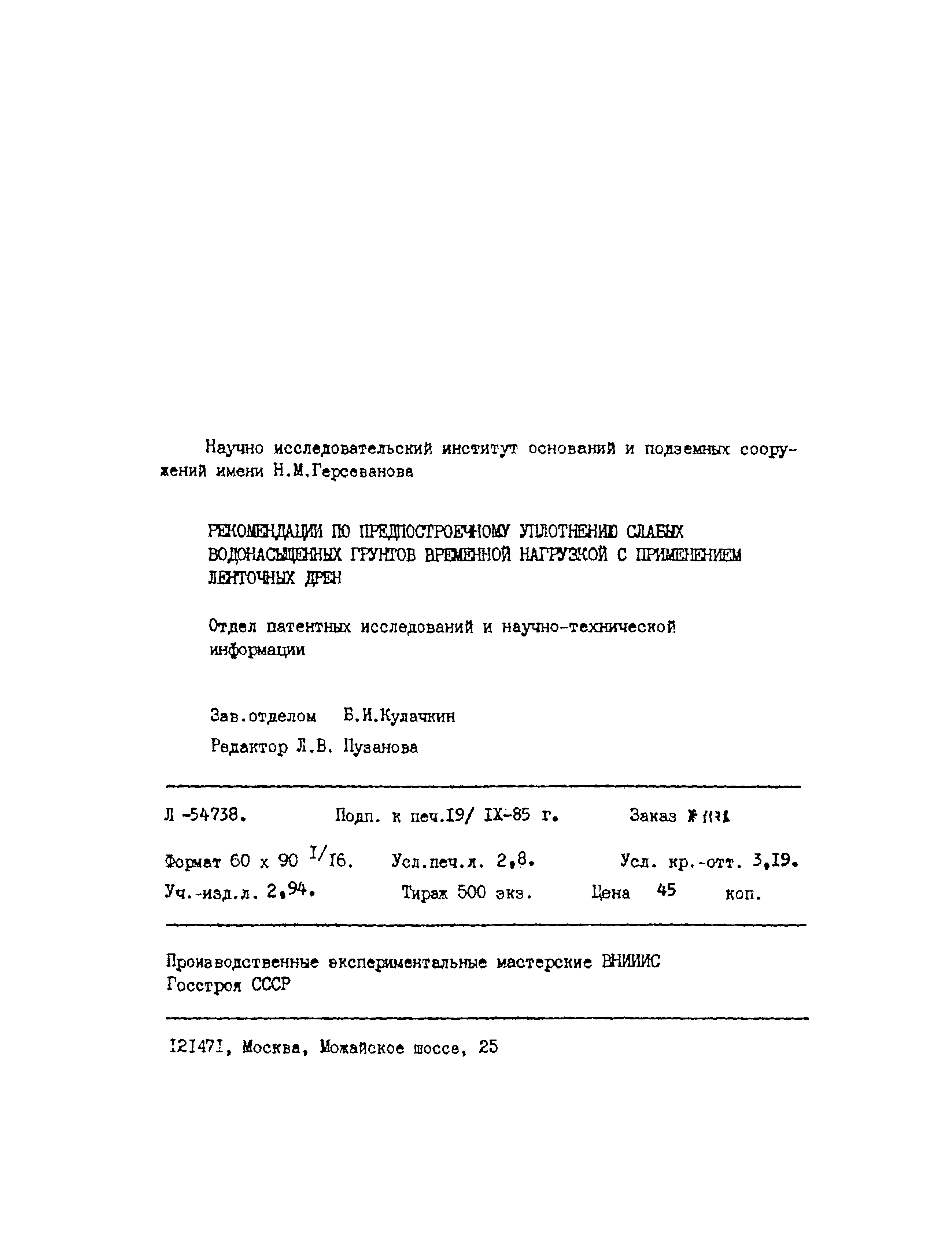 | Утверждён: | НИИОСП им. Н.М. Герсеванова Госстроя СССР (Gersevanov NIIOSP, USSR Gosstroy ) |