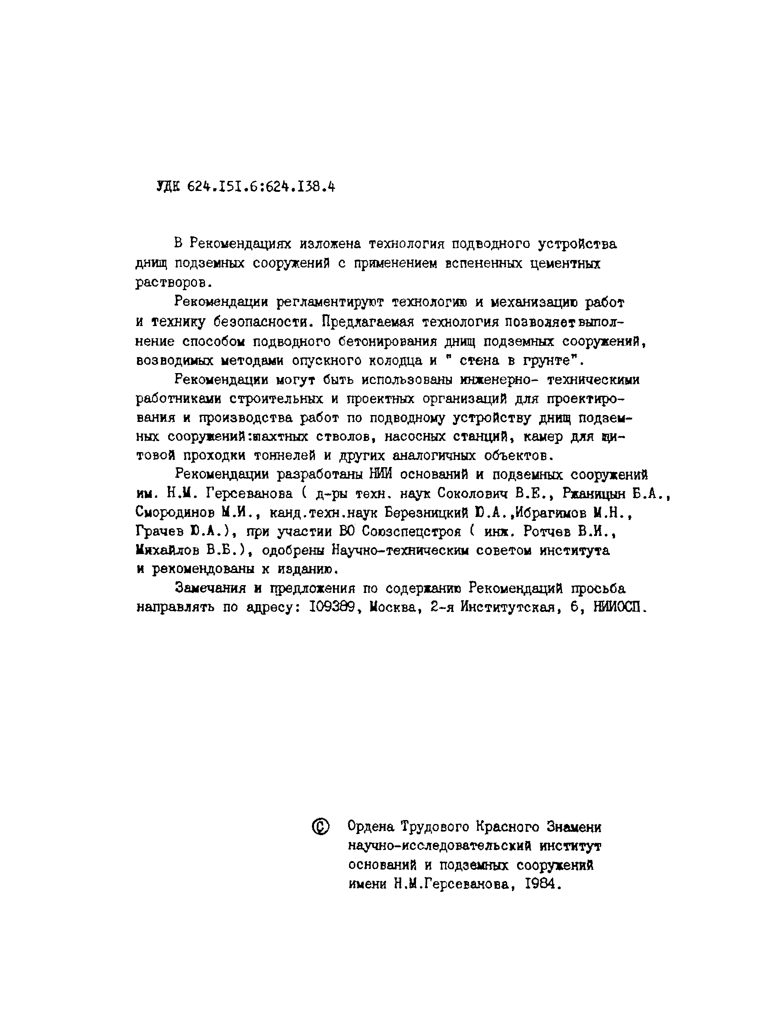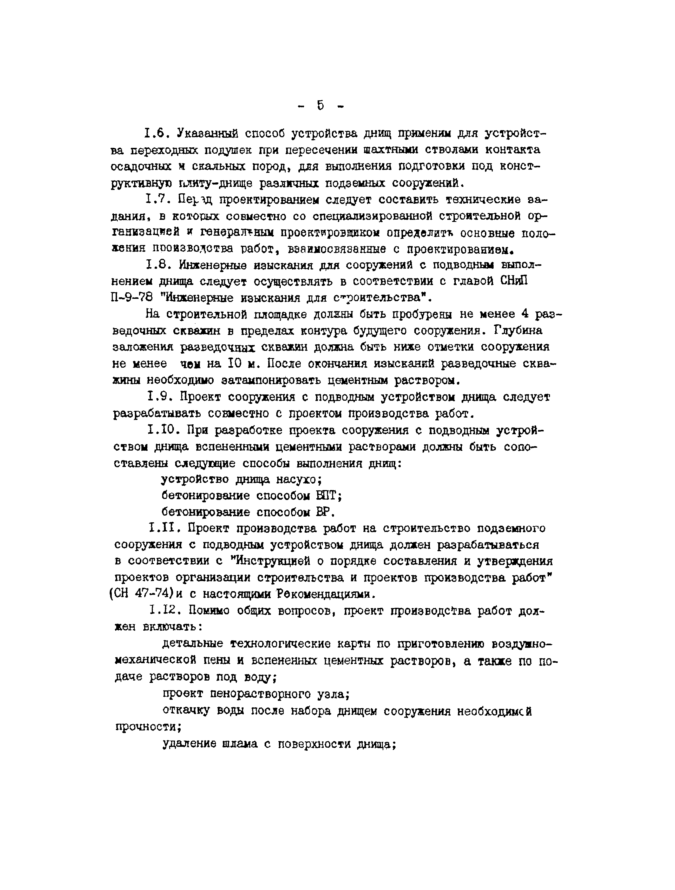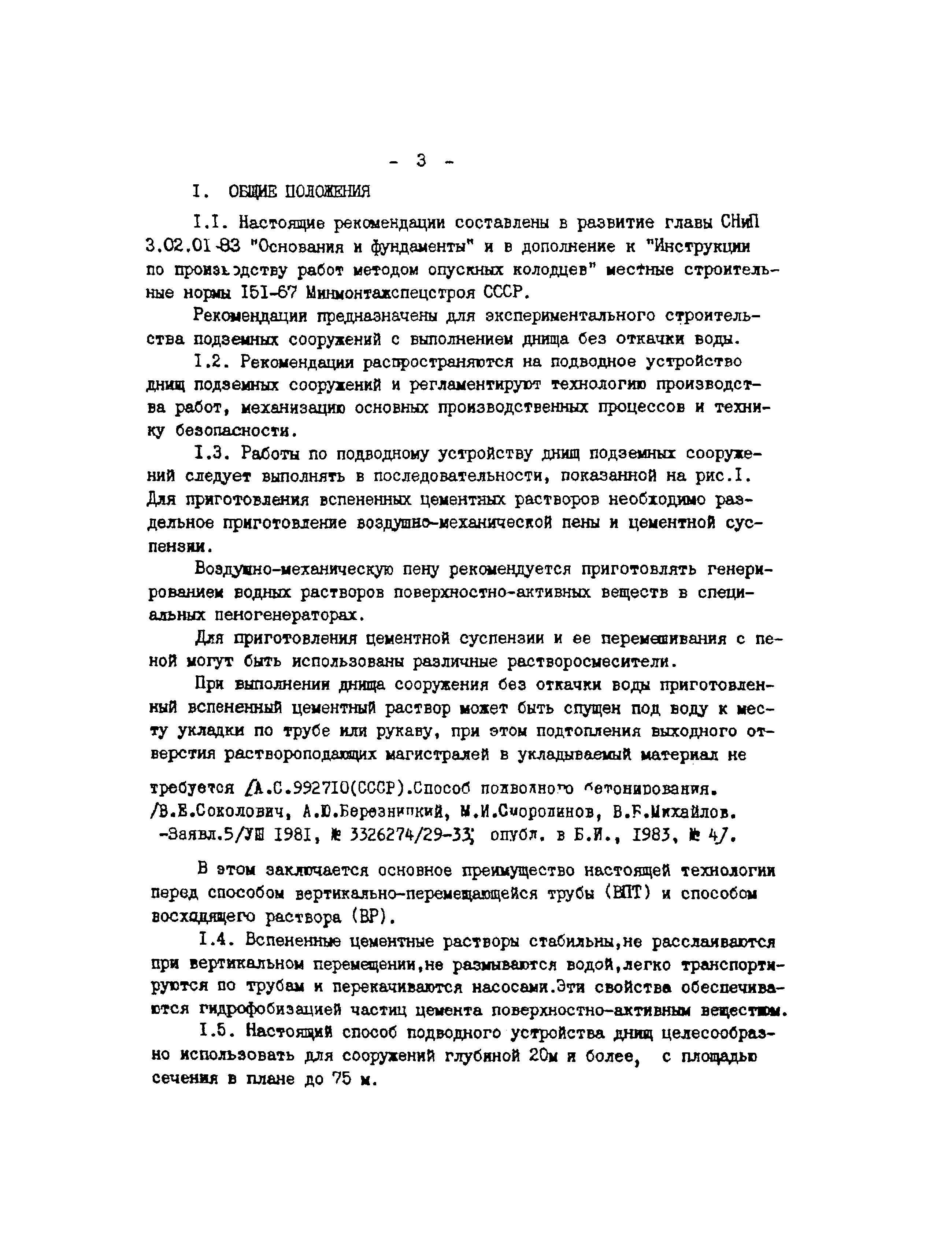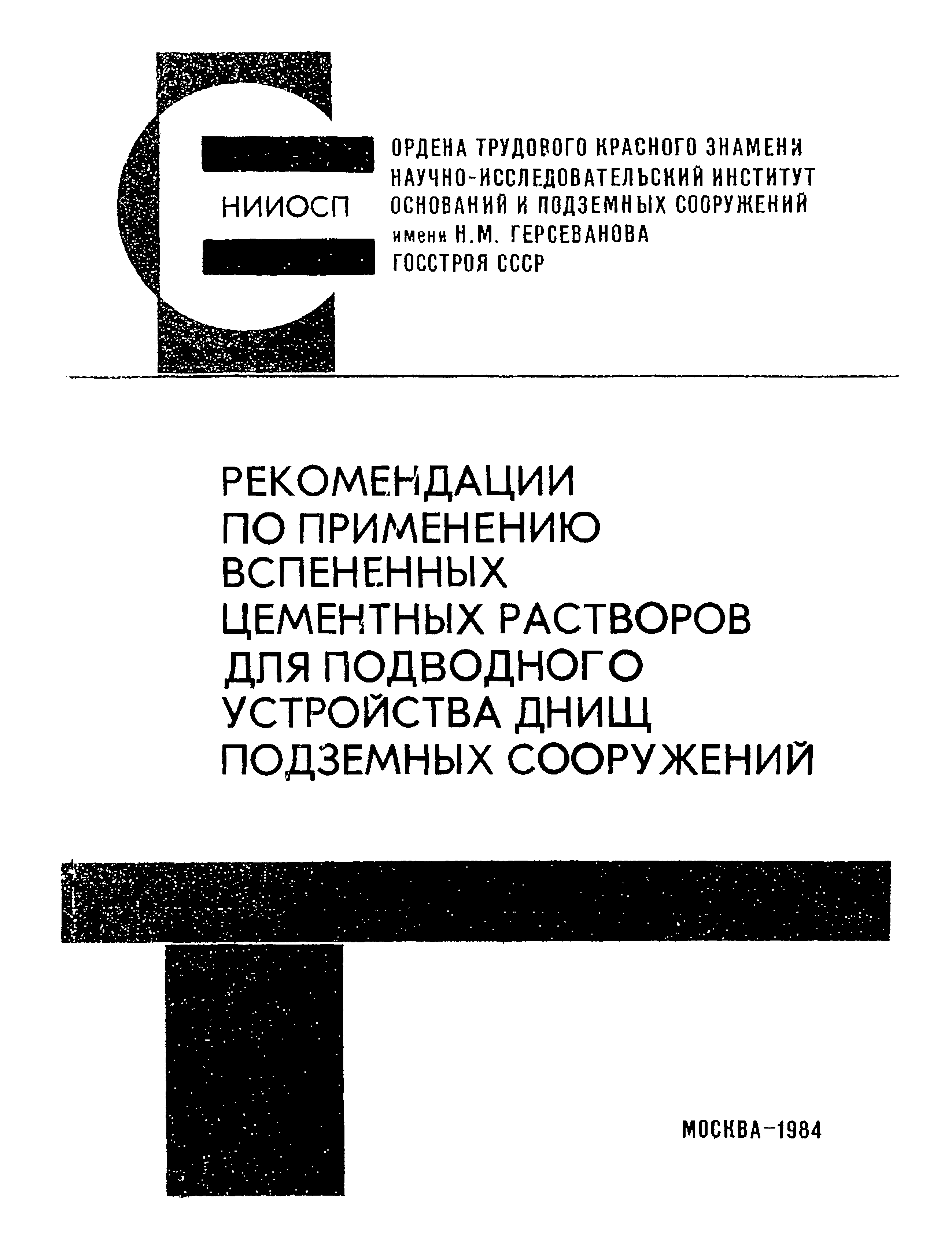 | Название рус.: | Рекомендации по применению вспененных цементных растворов для подводного устройства днищ подземных сооружений |