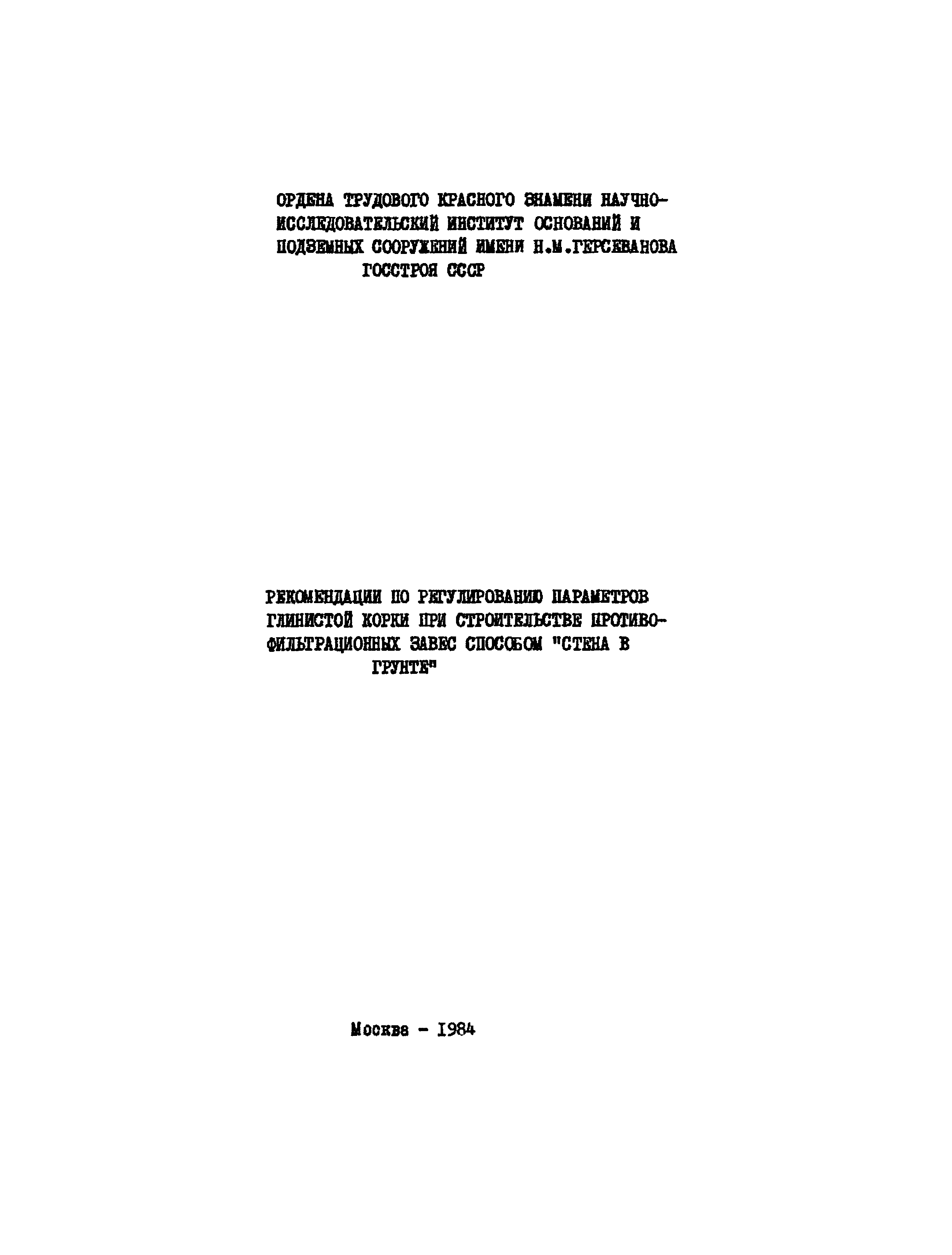 | Название рус.: | Рекомендации по регулированию параметров глинистой корки при строительстве противофильтрационных завес способом "стена в грунте" |