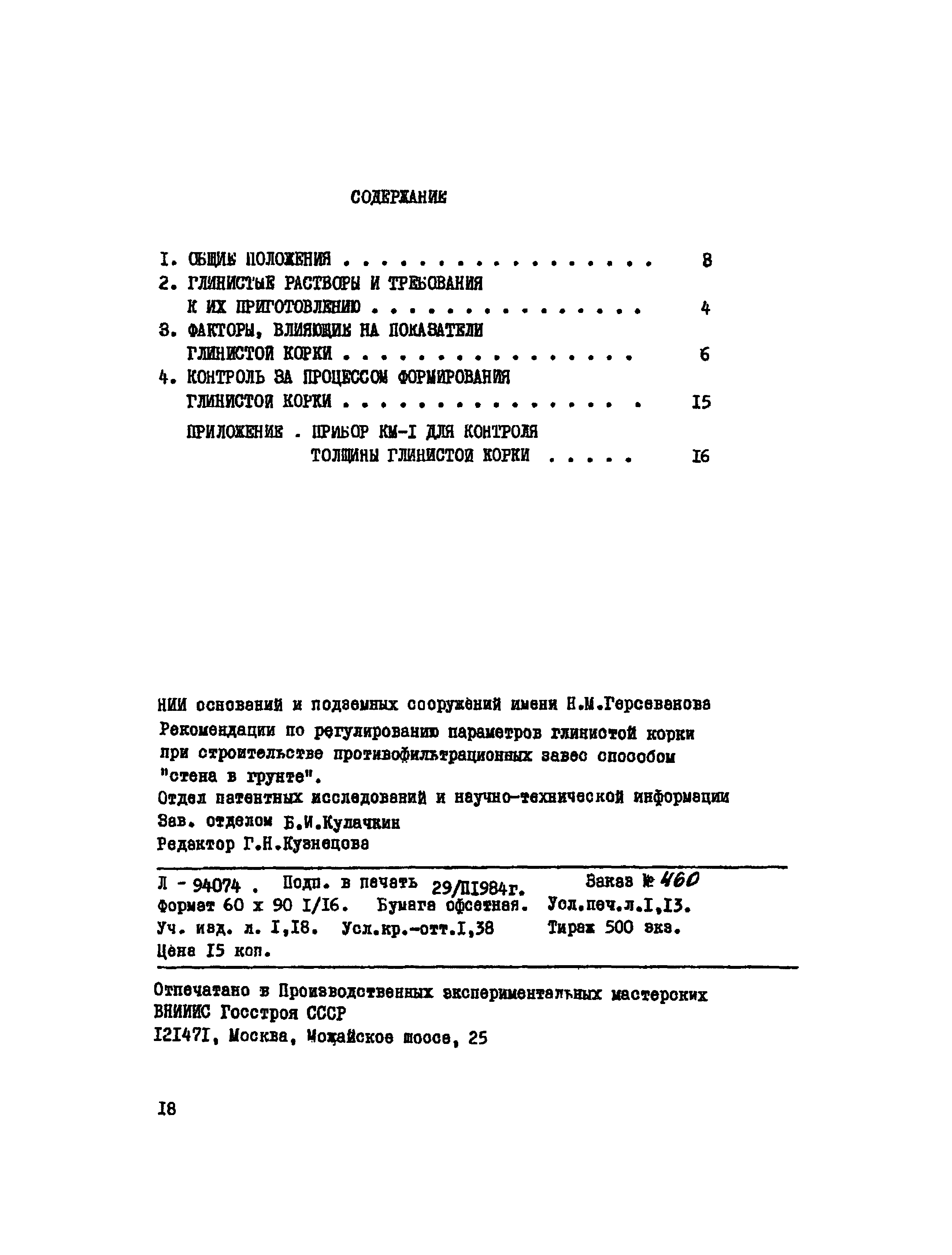 | Оглавление: | 1 Общие положения 2 Глинистые растворы и требования к их приготовлению 3 Факторы, влияющие на показатели глинистой корки 4 Контроль за процессом формирования глинистой корки Приложение. Прибор КМ-1 для контроля толщины глинистой корки |
