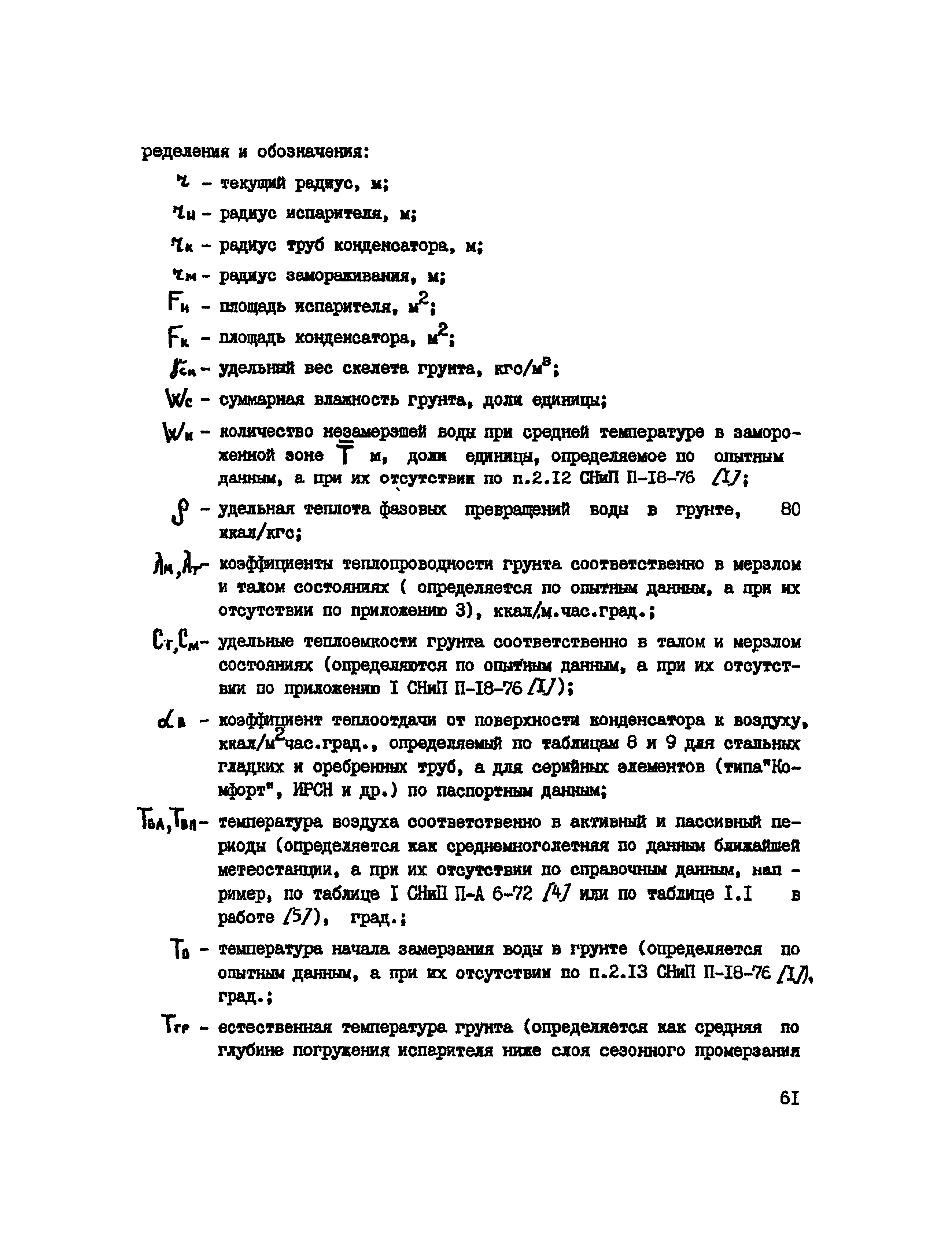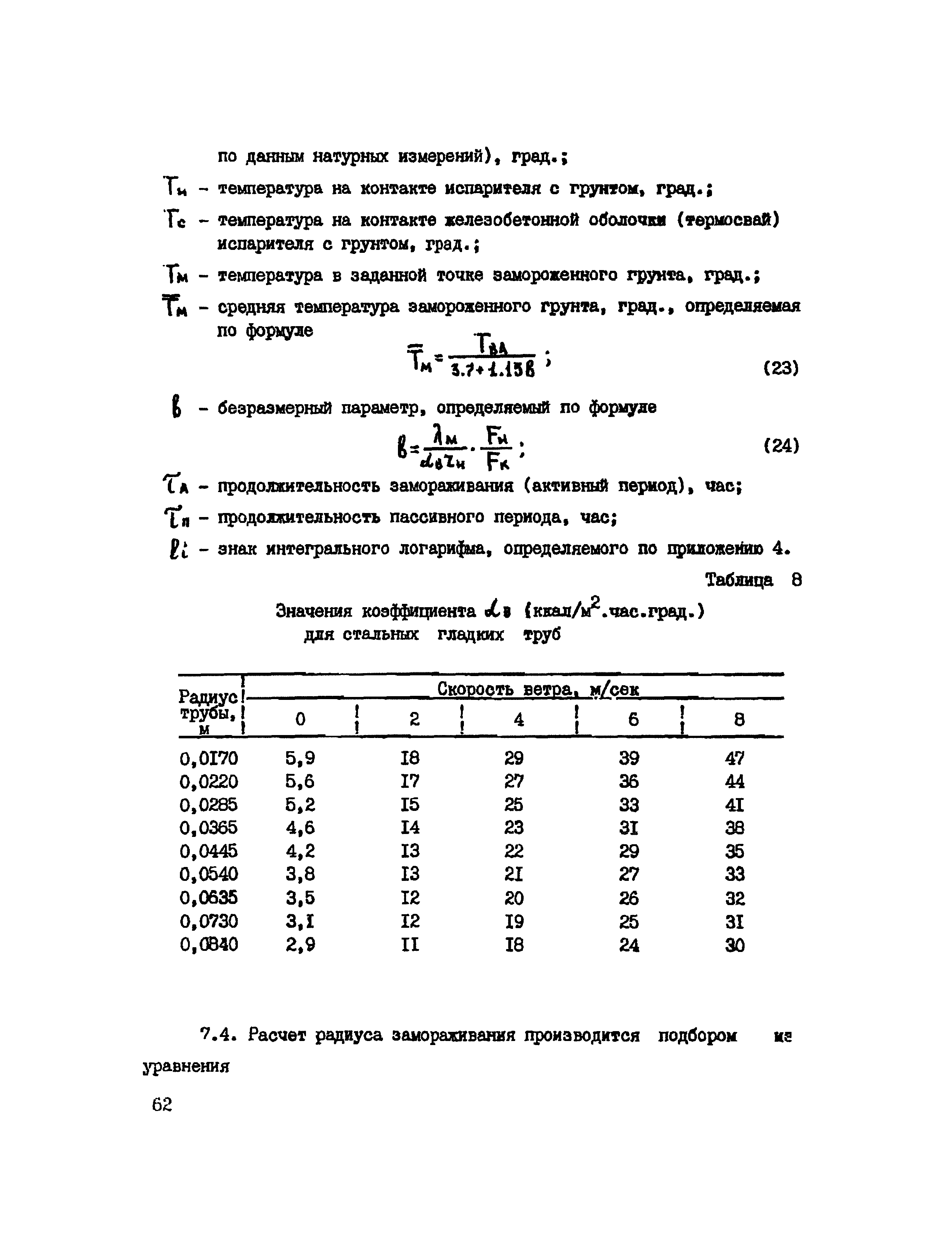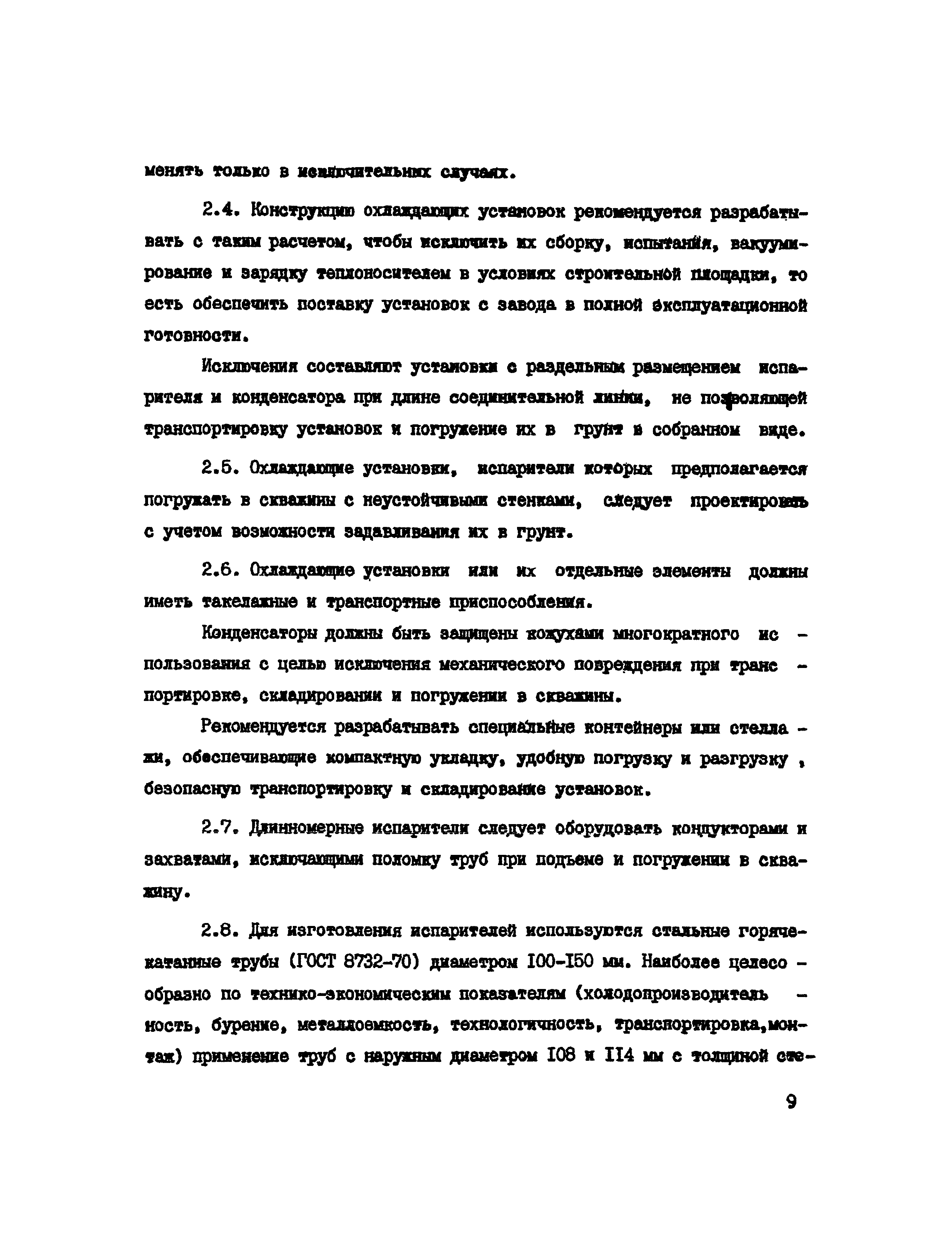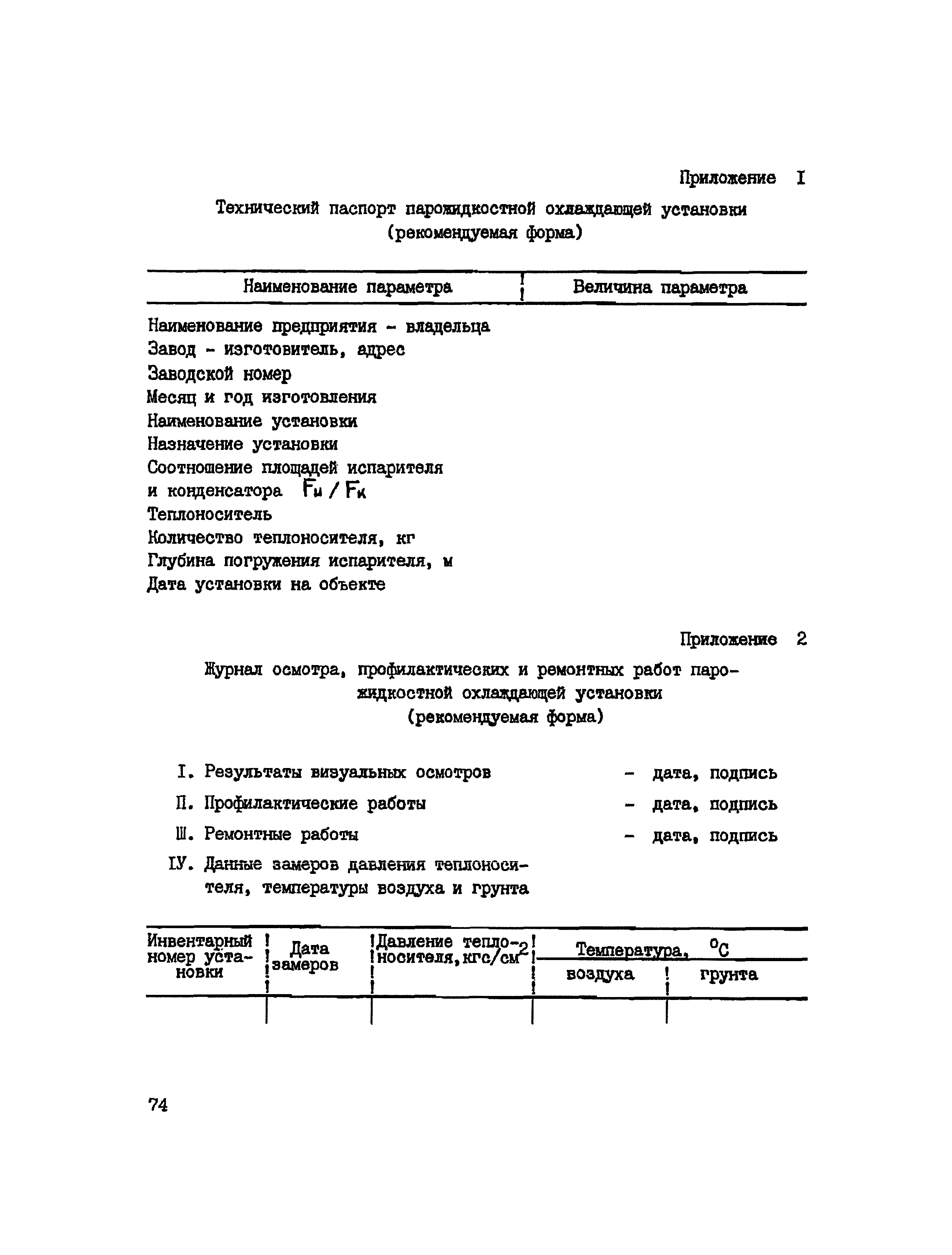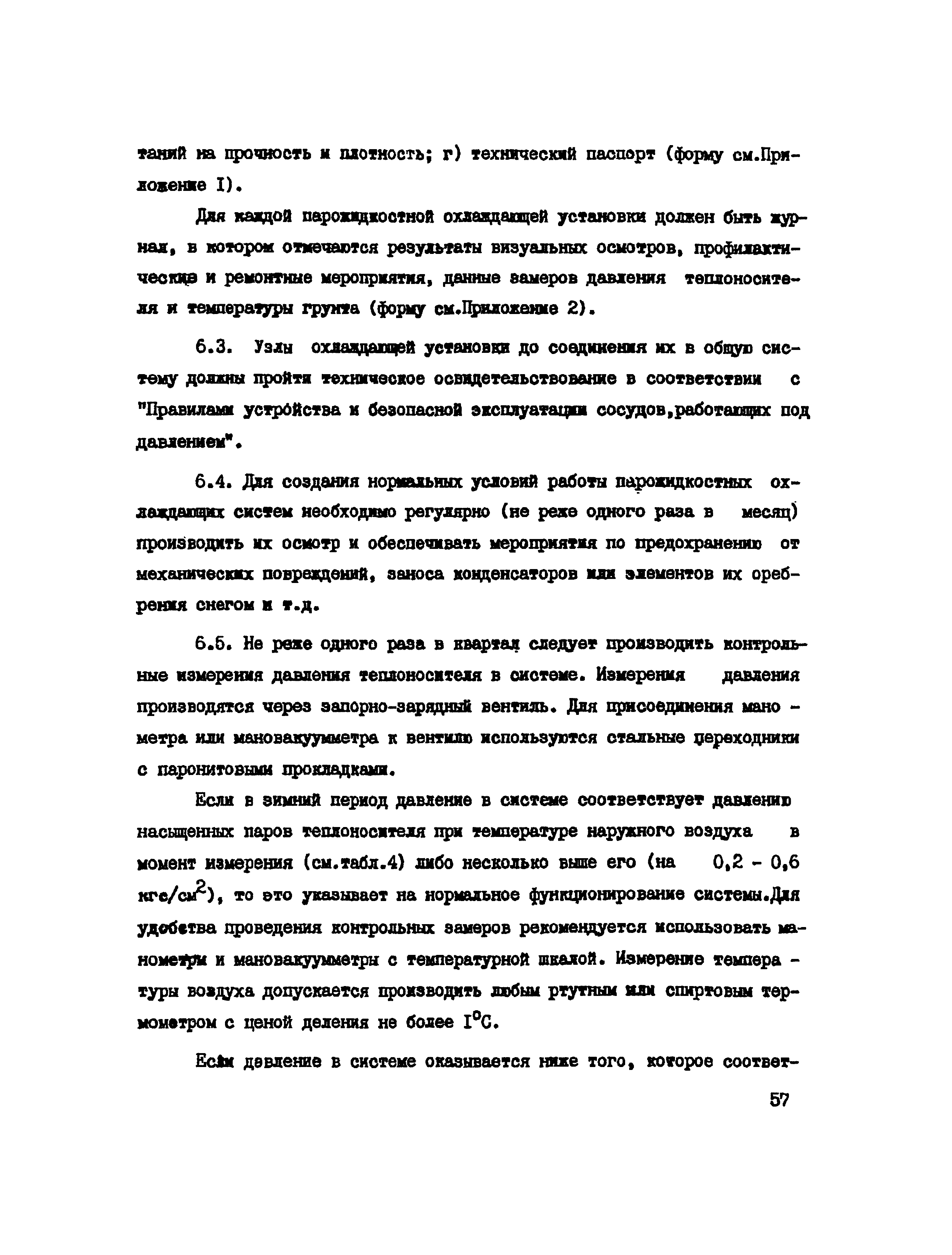Рекомендации по проектированию и применению в строительстве охлаждающих установок, работающих без энергетических затрат| Статус: | справочные материалы, мп, тпр | | Название рус.: | Рекомендации по проектированию и применению в строительстве охлаждающих установок, работающих без энергетических затрат | | Дата добавления в базу: | 01.10.2014 | | Дата актуализации: | 01.01.2021 | | Область применения: | Рекомендации содержат положения по назначению, области применения, конструированию, устройству и эксплуатации автономных холодильных установок с легкокипящим теплоносителем, работающих за счет низких температур воздуха в зимний период. Приводятся рекомендации по предпостроечному замораживанию грунтов в основании сооружений, но их замораживанию в процессе строительства, по восстановлению мерзлого состояния грунтов, по созданию противофильтрационных экранов и мерзлотных завес. Дана методика теплотехнических расчетов замораживания грунта. Рекомендации предназначены для проектных и строительных организаций, занимающихся вопросами строительства в суровых климатических условиях | | Оглавление: | 1 Общие положения 2 Конструкция парожидкостных охлаждающих установок 3 Характеристика теплоносителей и расчет их количества для зарядки парожидкостных установок. 4 Изготовление, монтаж, испытания и заправка охлаждающих установок 5 Использование парожидкостных установок в строительстве 6 Эксплуатация парожидкостных охлаждающих систем и основные положения по технике безопасности 7 Теплотехнические расчеты парожидкостных охлаждающих установок Литература Приложение 1. Технический паспорт парожидкостной охлаждающей установки (рекомендуемая форма) Приложение 2. Журнал осмотра, профилактических и ремонтных работ парожидкостной охлаждающей установок (рекомендуемая форма) Приложение 3. Коэффициент теплопроводности теплоизоляционных материалов (в сухом состоянии) Приложение 4. Значения интегрального логарифма | | Разработан: | НИИОСП им. Герсеванова Госстроя России