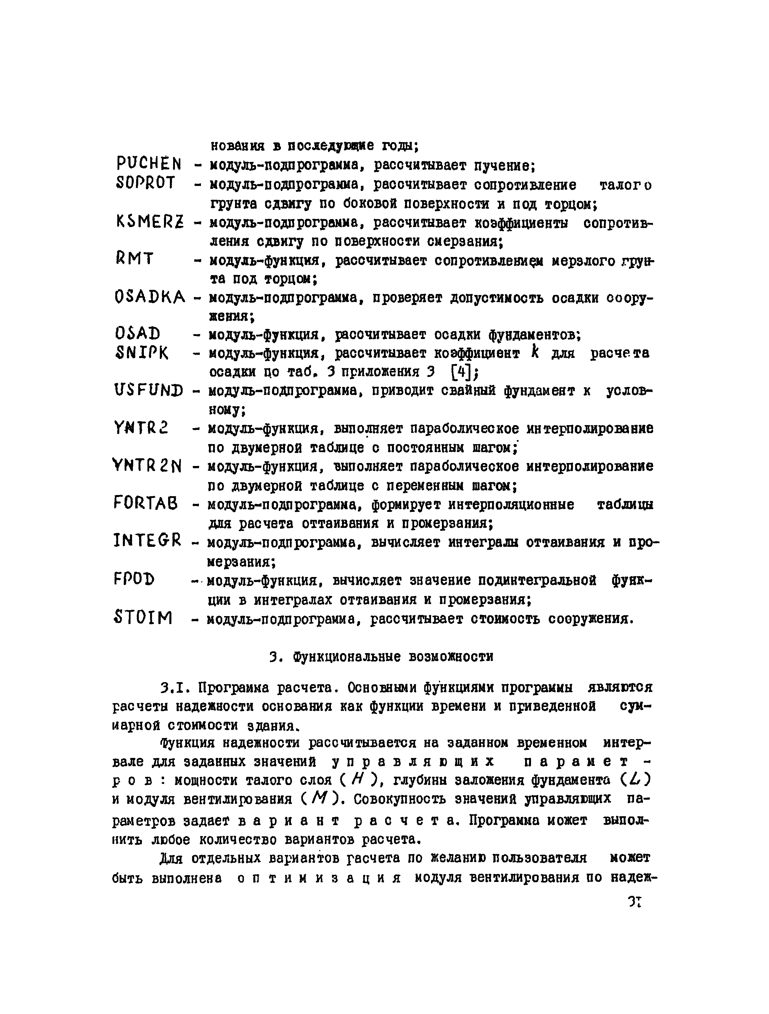 | Оглавление: | Введение 1 Общие положения 2 Назначение исходных данных 3 Описание алгоритма Литература Приложение 1. Описание фортран-программы расчета функции надежности основания и приведенной суммарной стоимости здания Приложение 2. Условия приобретения программы Приложение 3. Пример расчета |