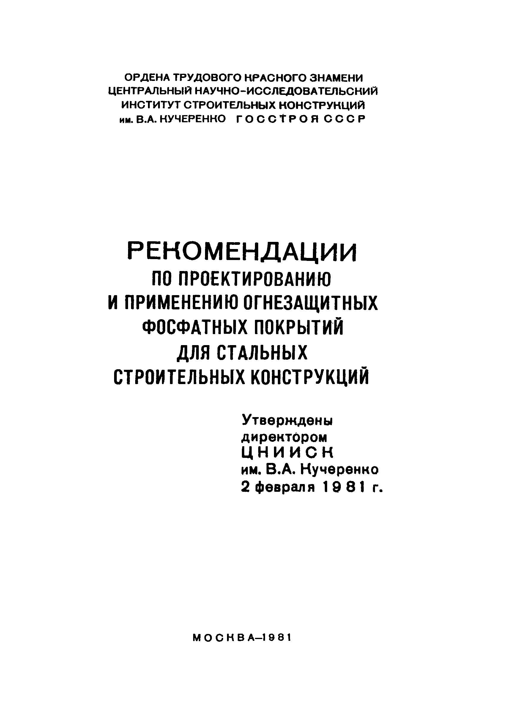 | Утверждён: | 02.02.1981 ЦНИИСК им. В.А. Кучеренко