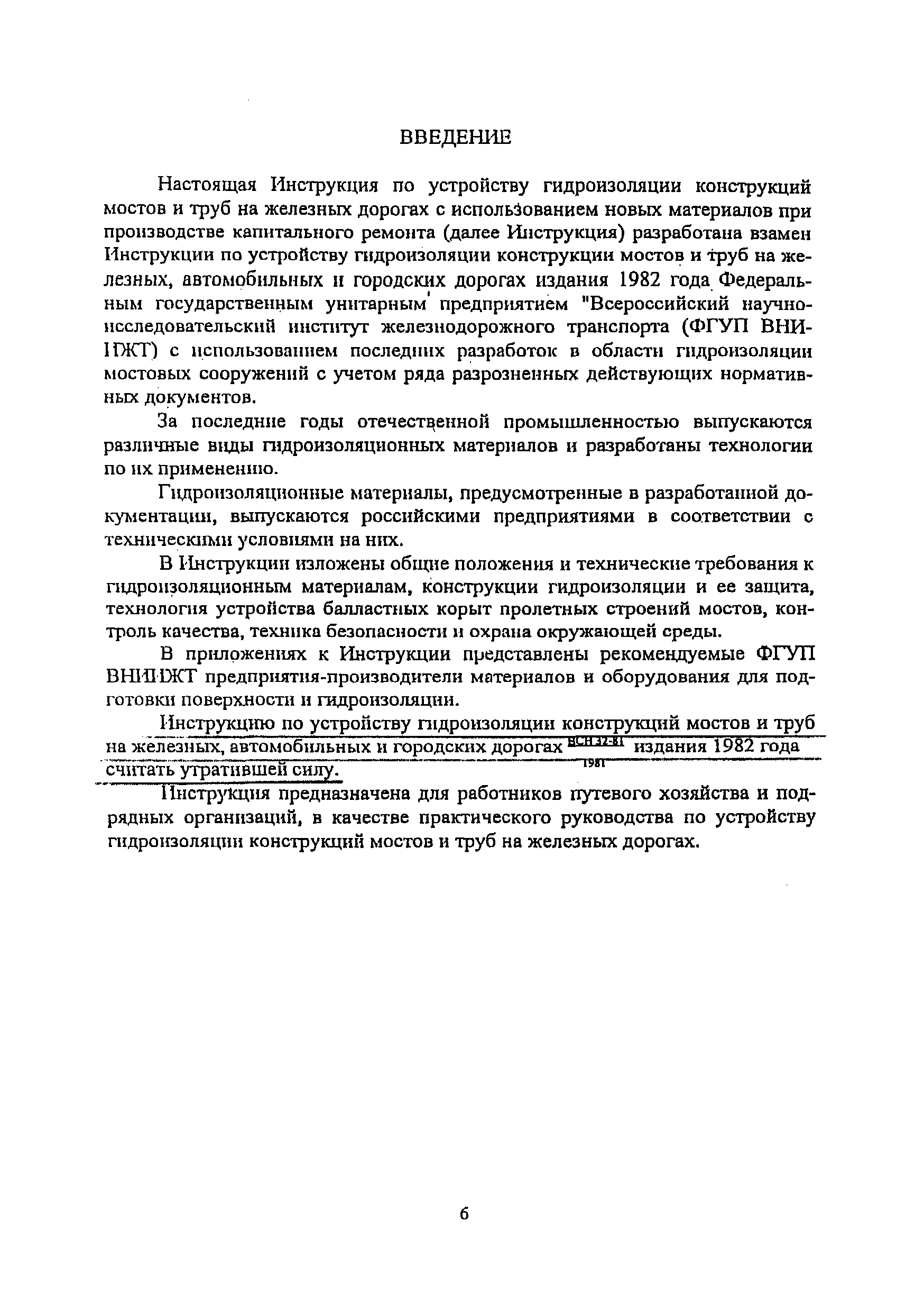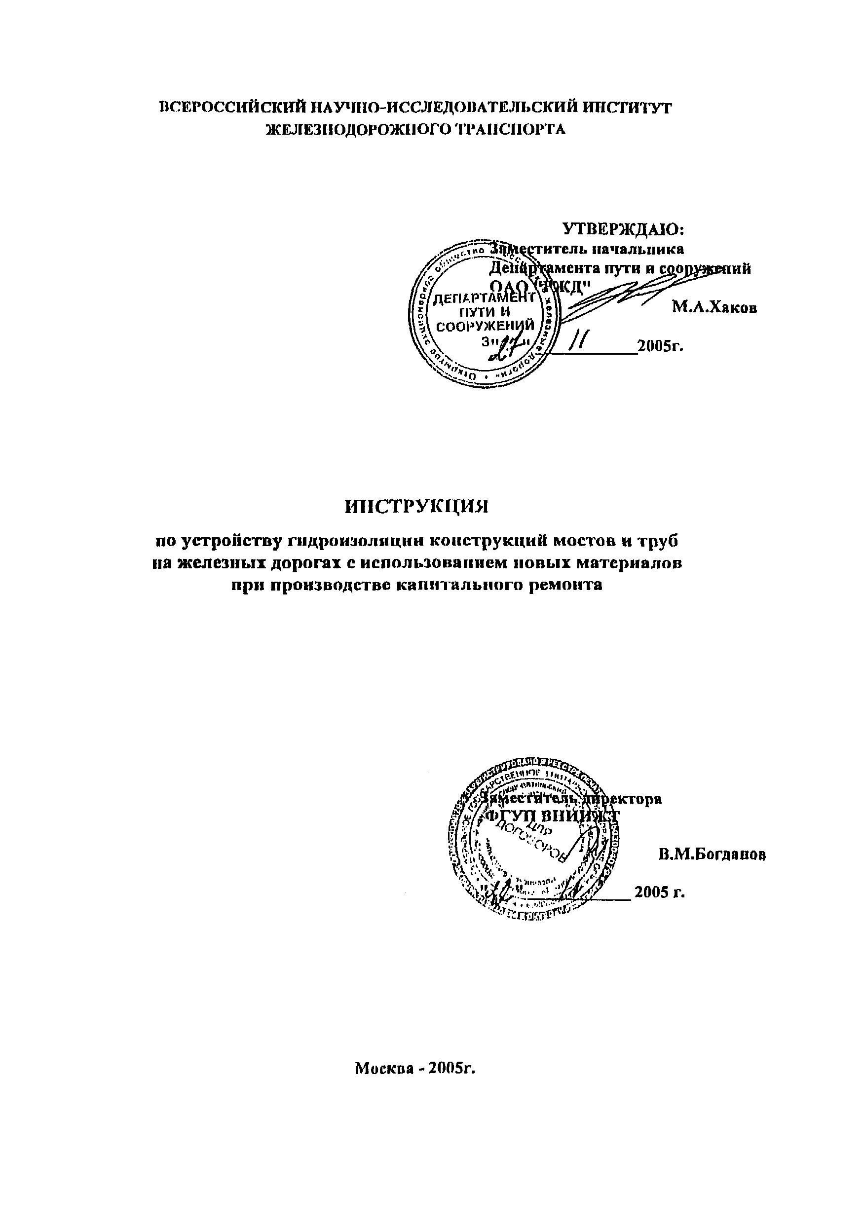| Название рус.: | Инструкция по устройству гидроизоляции конструкций мостов и труб на железных дорогах с использованием новых материалов при производстве капитального ремонта |