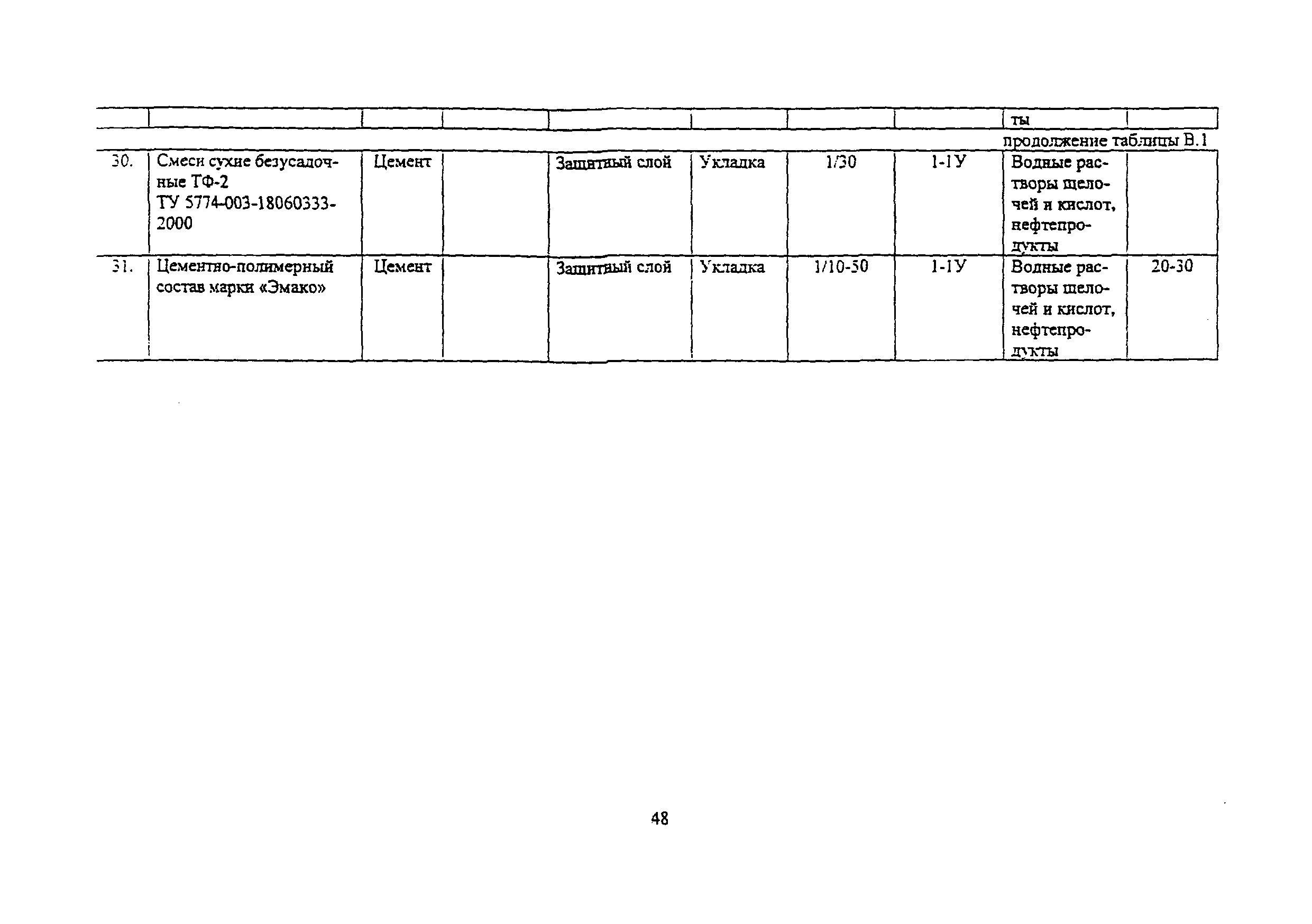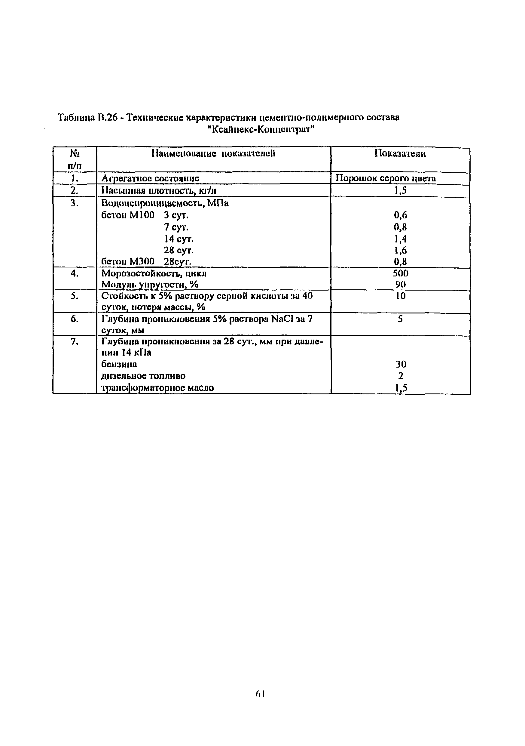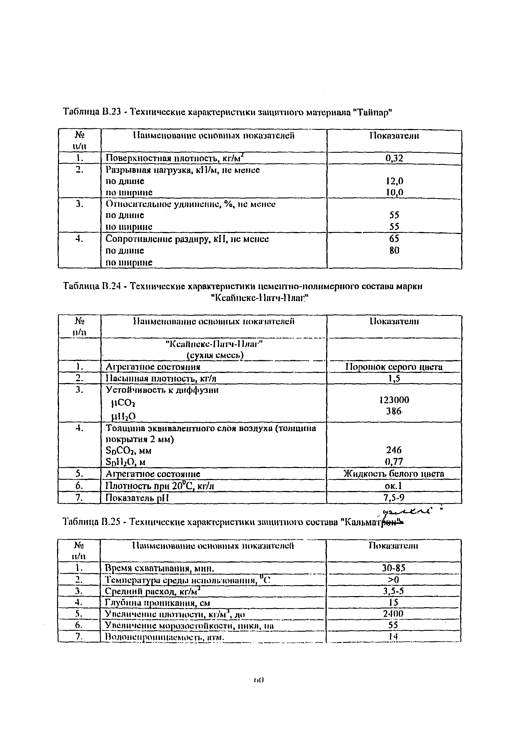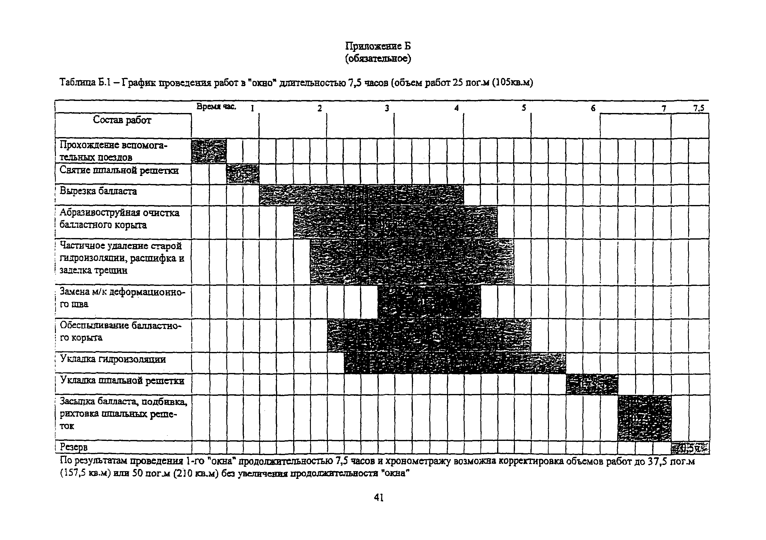 | Оглавление: | Введение 1. Общие положения 2. Выбор гидроизоляционных материалов, их характеристика 3. Конструкция гидроизоляции 4. Подготовка поверхности под гидроизоляцию 5. Устройство гидроизоляции в местах примыкания к водоотводным трубкам 6. Технология выполнения гидроизоляции 7. Защитный слой гидроизоляции 8. Контроль качества материала в правила приемки гидроизоляционного слоя 9. Оборудование для производства работ по устройству гидроизоляции 10. Хранение гидроизоляционных материалов 11. Охрана труда, окружающей среды и пожарная безопасность при устройстве гидроизоляции Список использованных источников Приложение А А. 1. Климатическое районирование А.2. Технические требования к качеству поверхности перед окрашиванием Приложение Б Б.1. График проведения работ в "окно" длительностью 7,5 часов (объем работ 25 пог.м (105 м2) Б.2. График проведения работ в "окно" длительностью 24 часа (объем работ 127 пог.м (534 м2) Приложение В В.1. Тип гидроизоляции балластных корыт конструкций мостов В.2. Характеристика рулонного гидроизоляционного материала "Техноэласт ЭМП-5,5/250" В.3. Технические характеристики рулонного гидроизоляционного материала "Техноэластмост" В.4. Технические характеристики материалов "Сервидек- Сервипак" В.5. Технические характеристики рулонного гидроизоляционного материала "Днепротекс" В.6. Технические характеристики рулонного гидроизоляционного материала "Мостопласт" В.7. Технические характеристики рулонного гидроизоляционного материала "Г-ПХБЭ-ПП" В.8. Технические характеристики рулонного гидроизоляционного материала "Кромэл" В.9. Технические характеристики рулонного гидроизоляционного материала "Поликор-12" В.10. Технические характеристики рулонного гидроизоляционного материала "Экофлекс" В.11. Технические характеристики рулонного гидроизоляционного материала "Унифлекс" В.12. Технические характеристики рулонного гидроизоляционного материала "Изопласт" В.13. Технические характеристики рулонного гидроизоляционного материала "Любиритмост" В.14. Технические характеристики рулонного гидроизоляционного материала "Филизол-Супер" В.15. Технические характеристика рулонного гидроизоляционного материала "Рубитексмост" В.16. Технические характеристики двухкомпонентного мастичного материала "Изокром-И" В.17. Технические характеристики двухкомпонентного мастичного материала "Изокром-К" В.18. Технические характеристики однокомпонентного мастичного материала "Изокром-И" В.19. Технические характеристики мастичных гидроизоляционных материалов "Мастмэл-1" и "Мастмэл-2" В.20. Технические характеристики смоляно-каучукового состава "Гермокрон" В.21. Технические характеристики мастичного материала "Биски" В.22. Технические характеристики пеностирольных экструзиционных плит "Пеноплекс", тип 45, толщиной 40 мм В.23. Технические характеристики защитного материала "Тайпар" В.24. Технические характеристики цементно-полимерного состава марки "Ксайпекс-Патч-Плаг" В.25. Технические характеристики защитного состава "Кальматрон" В.26. Технические характеристики цементно-полимерного состава марки "Ксайпекс-Концентрат" В.27. Технические характеристика цементно-полимерных составов марки "Ремстрим" В.28. Технические характеристики сухих смесей ТФ-2 В.29. Технические характеристики бетонных сухих ремонтных смесей марки "Эмако" В.30. Вспомогательные материалы 