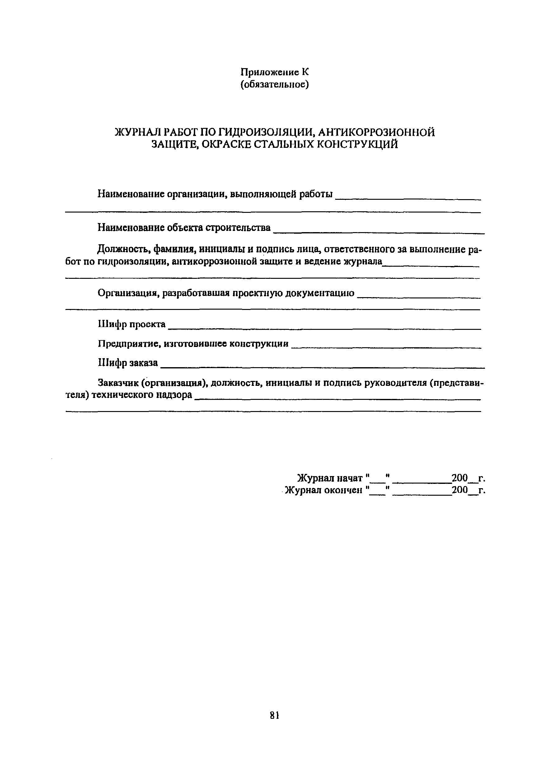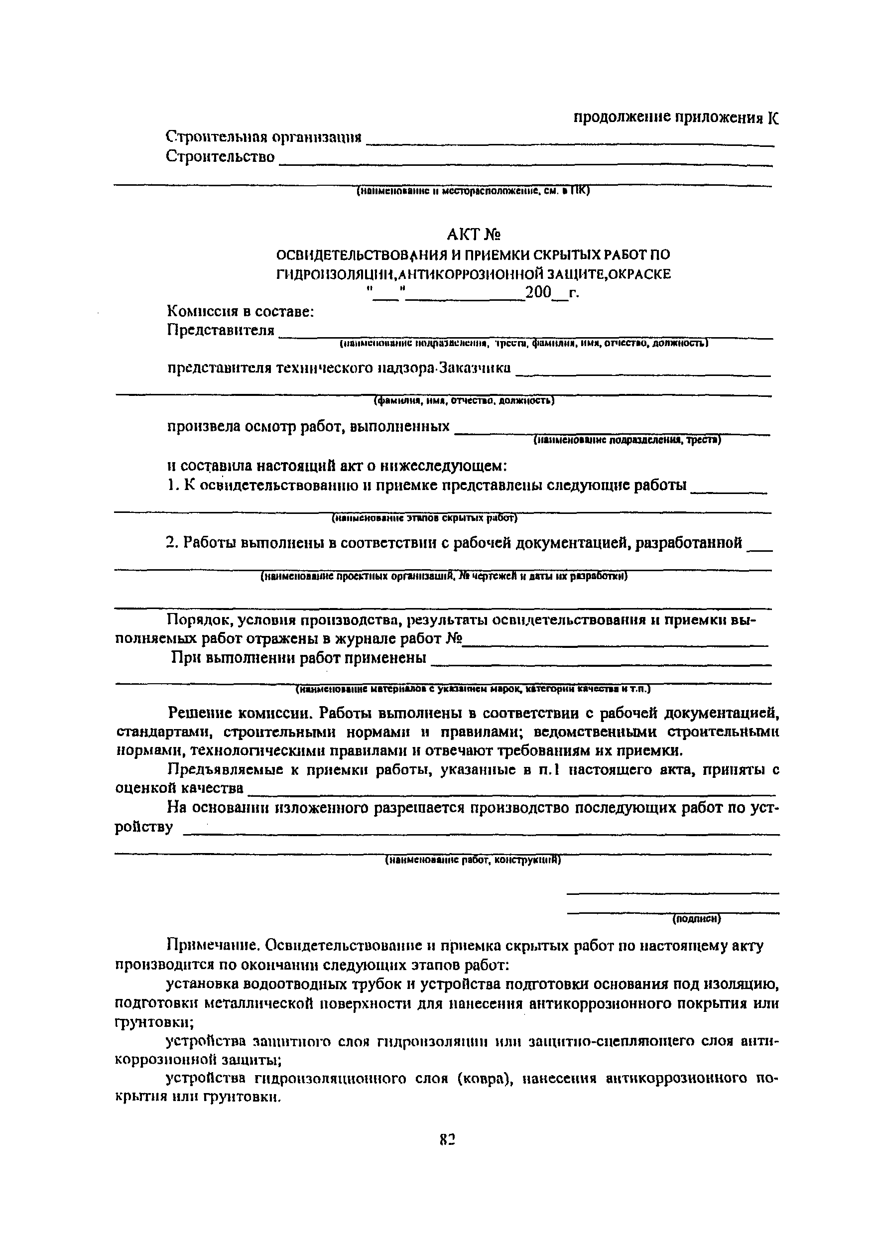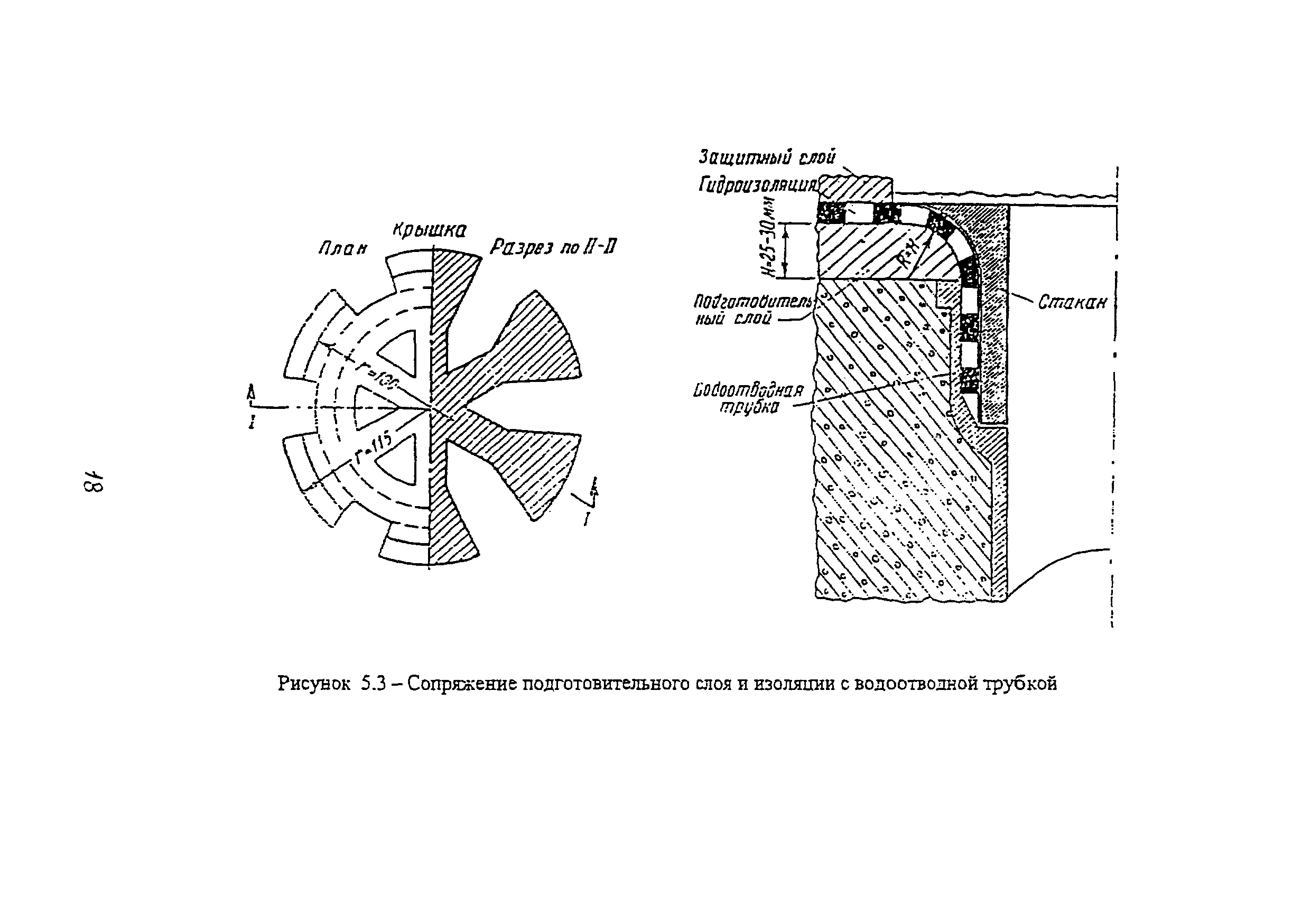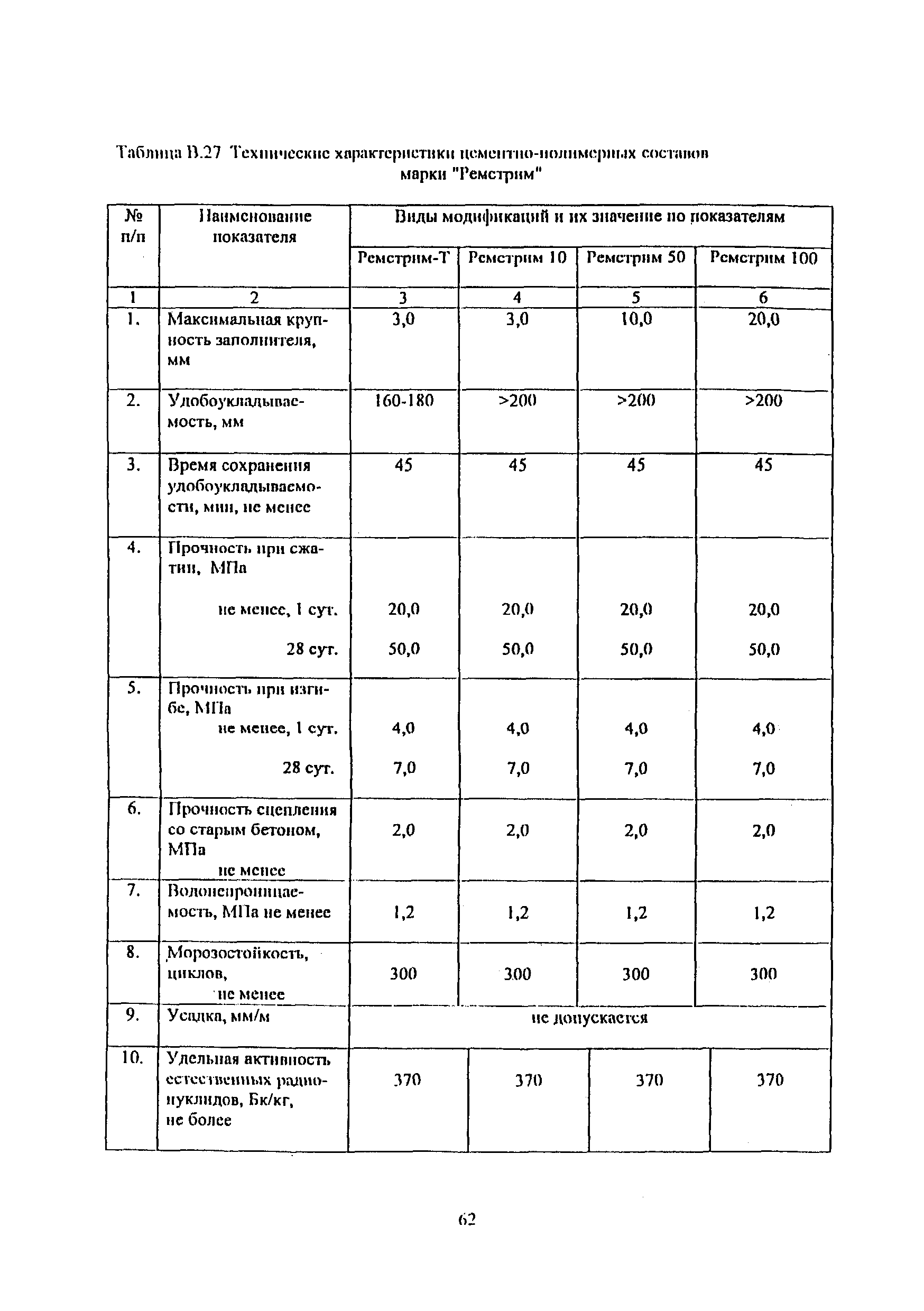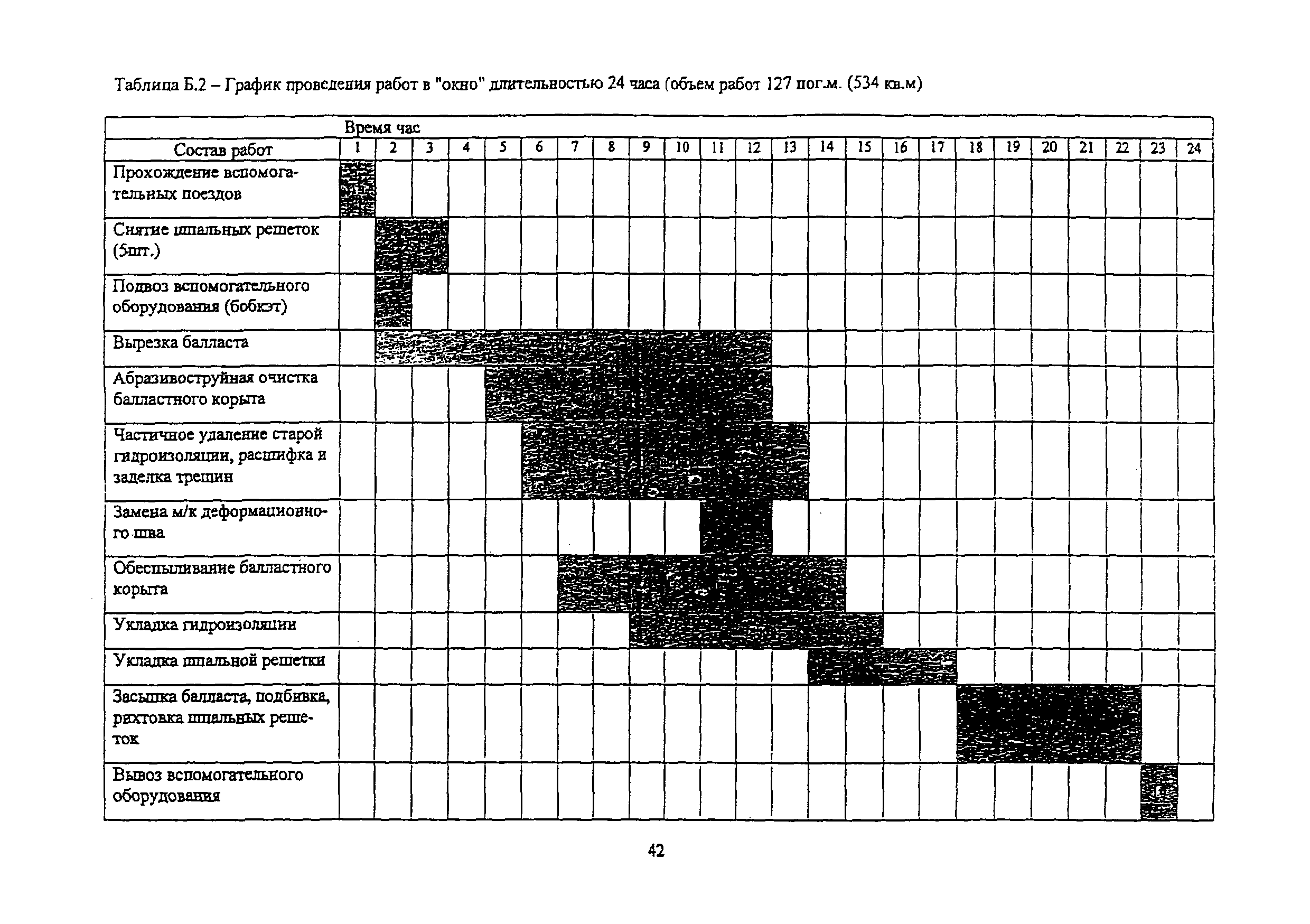 | Оглавление: | Введение 1. Общие положения 2. Выбор гидроизоляционных материалов, их характеристика 3. Конструкция гидроизоляции 4. Подготовка поверхности под гидроизоляцию 5. Устройство гидроизоляции в местах примыкания к водоотводным трубкам 6. Технология выполнения гидроизоляции 7. Защитный слой гидроизоляции 8. Контроль качества материала в правила приемки гидроизоляционного слоя 9. Оборудование для производства работ по устройству гидроизоляции 10. Хранение гидроизоляционных материалов 11. Охрана труда, окружающей среды и пожарная безопасность при устройстве гидроизоляции Список использованных источников Приложение А А. 1. Климатическое районирование А.2. Технические требования к качеству поверхности перед окрашиванием Приложение Б Б.1. График проведения работ в "окно" длительностью 7,5 часов (объем работ 25 пог.м (105 м2) Б.2. График проведения работ в "окно" длительностью 24 часа (объем работ 127 пог.м (534 м2) Приложение В В.1. Тип гидроизоляции балластных корыт конструкций мостов В.2. Характеристика рулонного гидроизоляционного материала "Техноэласт ЭМП-5,5/250" В.3. Технические характеристики рулонного гидроизоляционного материала "Техноэластмост" В.4. Технические характеристики материалов "Сервидек- Сервипак" В.5. Технические характеристики рулонного гидроизоляционного материала "Днепротекс" В.6. Технические характеристики рулонного гидроизоляционного материала "Мостопласт" В.7. Технические характеристики рулонного гидроизоляционного материала "Г-ПХБЭ-ПП" В.8. Технические характеристики рулонного гидроизоляционного материала "Кромэл" В.9. Технические характеристики рулонного гидроизоляционного материала "Поликор-12" В.10. Технические характеристики рулонного гидроизоляционного материала "Экофлекс" В.11. Технические характеристики рулонного гидроизоляционного материала "Унифлекс" В.12. Технические характеристики рулонного гидроизоляционного материала "Изопласт" В.13. Технические характеристики рулонного гидроизоляционного материала "Любиритмост" В.14. Технические характеристики рулонного гидроизоляционного материала "Филизол-Супер" В.15. Технические характеристика рулонного гидроизоляционного материала "Рубитексмост" В.16. Технические характеристики двухкомпонентного мастичного материала "Изокром-И" В.17. Технические характеристики двухкомпонентного мастичного материала "Изокром-К" В.18. Технические характеристики однокомпонентного мастичного материала "Изокром-И" В.19. Технические характеристики мастичных гидроизоляционных материалов "Мастмэл-1" и "Мастмэл-2" В.20. Технические характеристики смоляно-каучукового состава "Гермокрон" В.21. Технические характеристики мастичного материала "Биски" В.22. Технические характеристики пеностирольных экструзиционных плит "Пеноплекс", тип 45, толщиной 40 мм В.23. Технические характеристики защитного материала "Тайпар" В.24. Технические характеристики цементно-полимерного состава марки "Ксайпекс-Патч-Плаг" В.25. Технические характеристики защитного состава "Кальматрон" В.26. Технические характеристики цементно-полимерного состава марки "Ксайпекс-Концентрат" В.27. Технические характеристика цементно-полимерных составов марки "Ремстрим" В.28. Технические характеристики сухих смесей ТФ-2 В.29. Технические характеристики бетонных сухих ремонтных смесей марки "Эмако" В.30. Вспомогательные материалы 