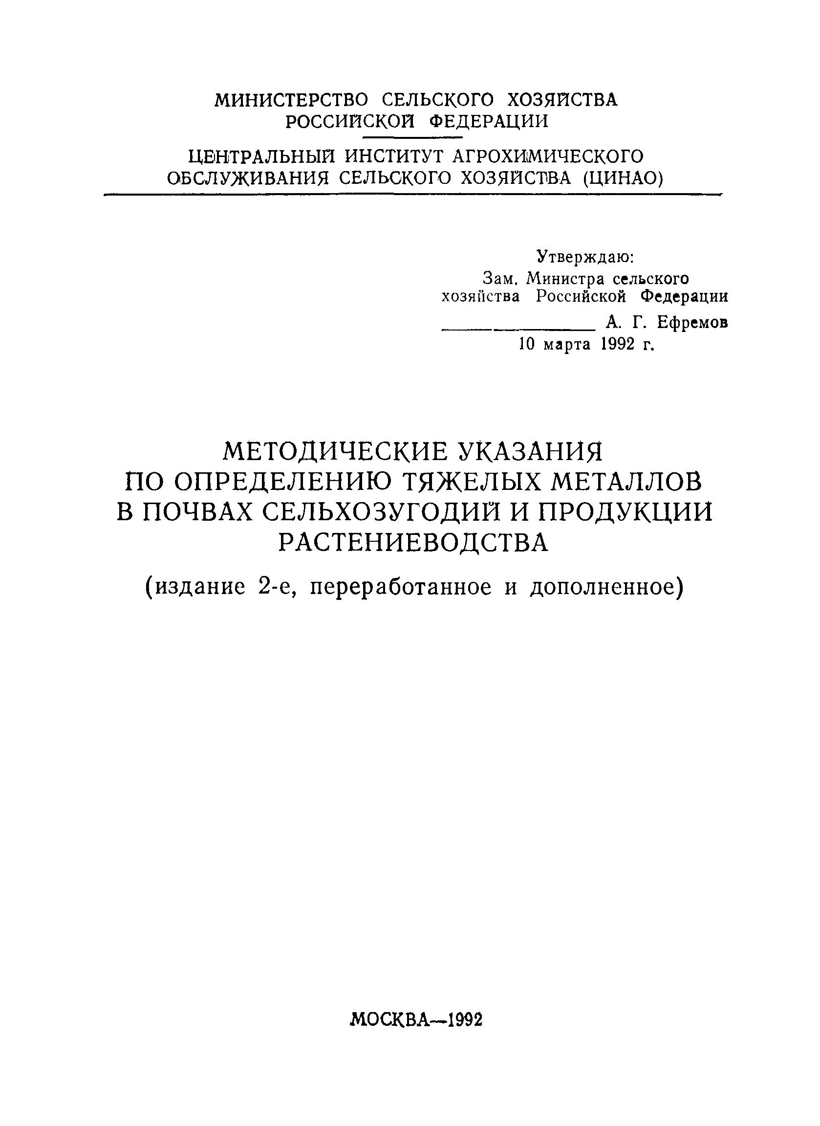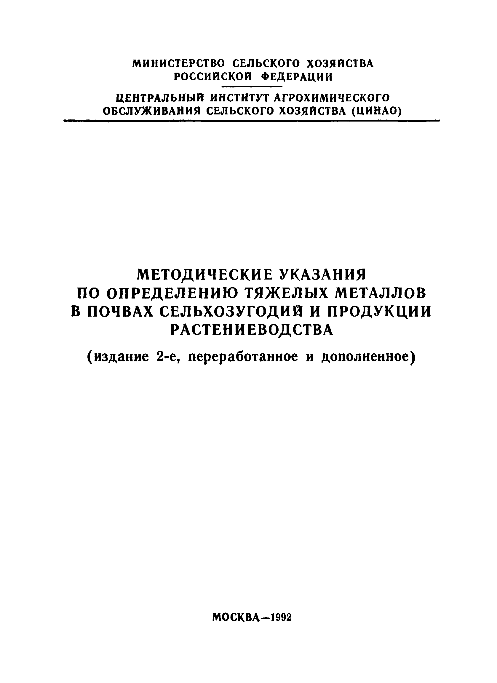 | Название рус.: | Методические указания по определению тяжелых металлов в почвах сельхозугодий и продукции растениеводства |