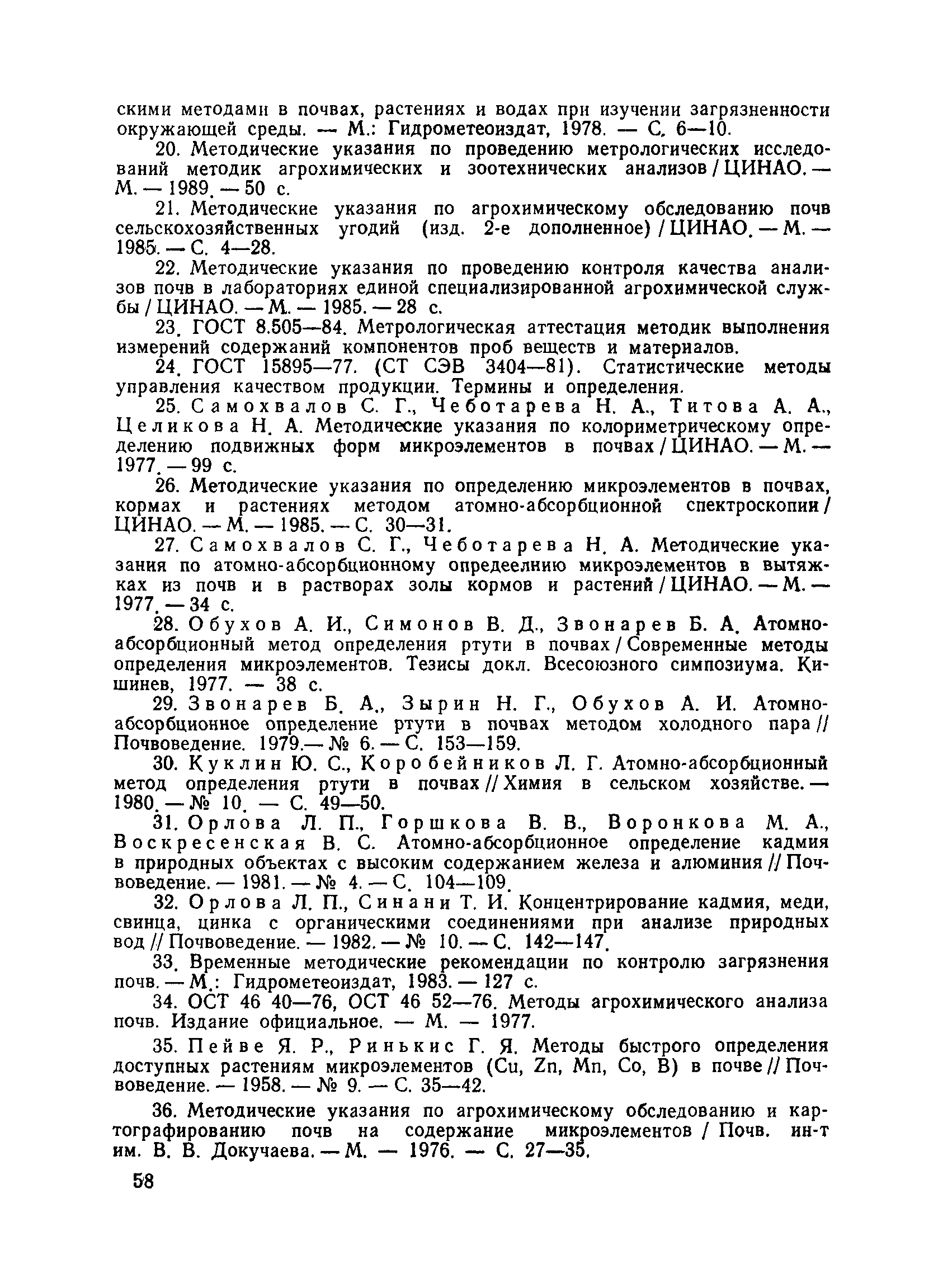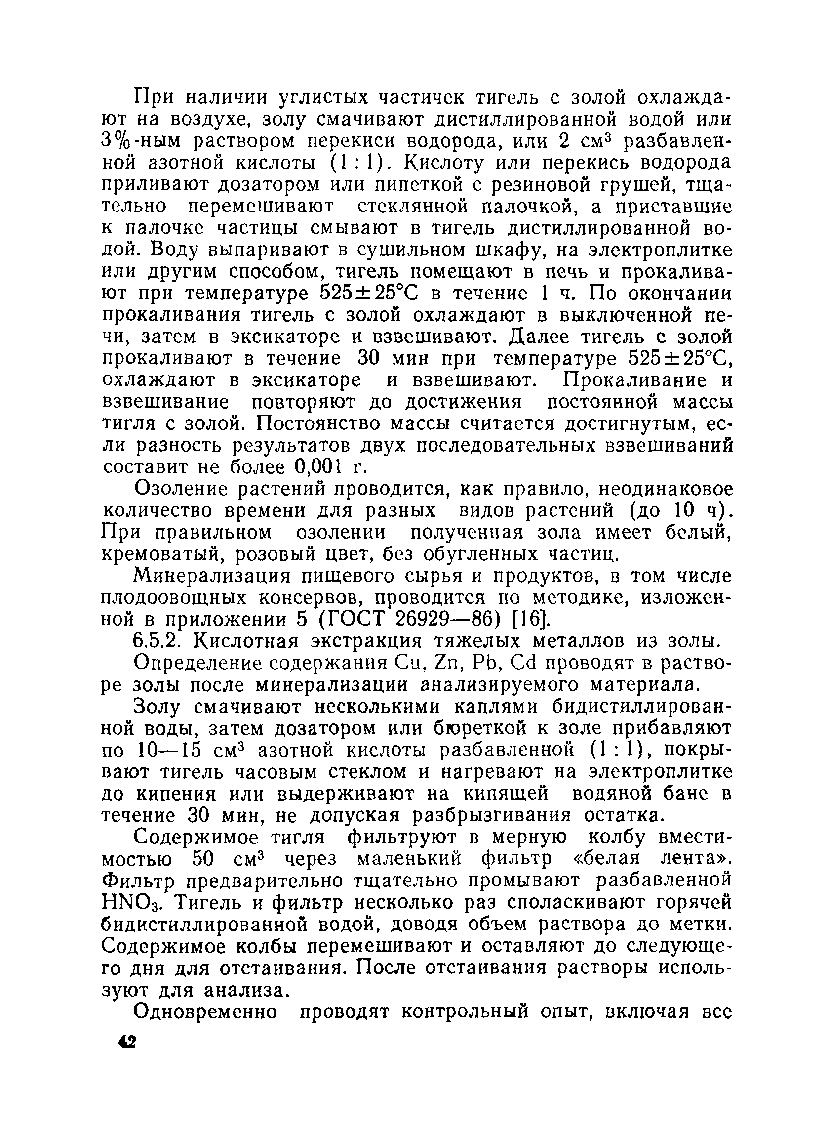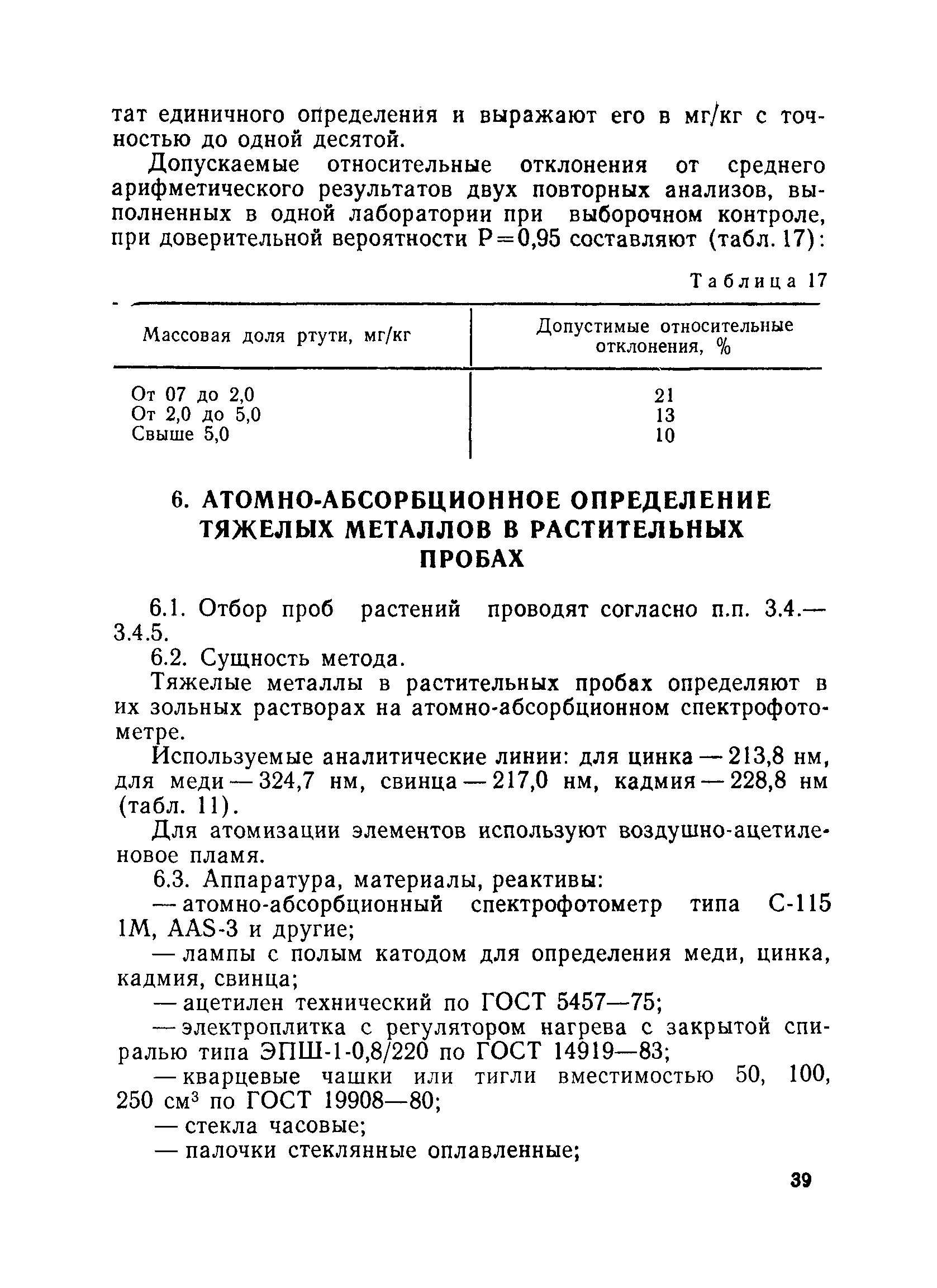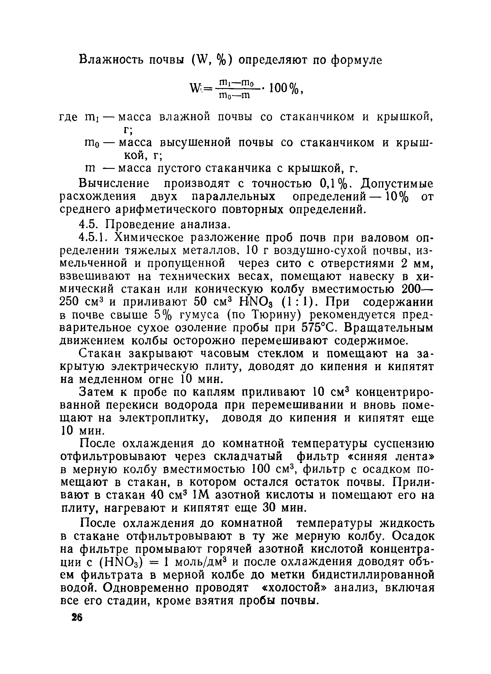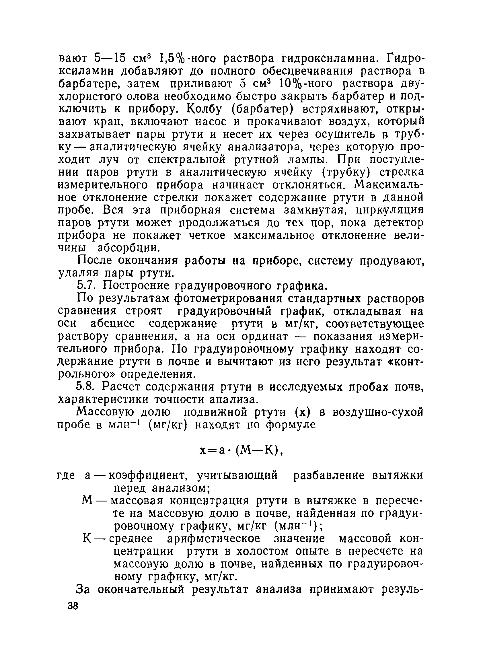 | Оглавление: | 1. Основные положения 2. Планирование работ по определению тяжелых металлов в почвах сельскохозяйственных угодий, продукции растениеводства и кормах 3. Отбор проб почвы и растений при общих и локальных загрязнениях 3.3. Отбор проб почвы 3.4. Отбор проб продукции растениеводства и кормов 4. Определение содержания тяжелых металлов в пробах почвы 4.3. Подготовка к выполнению анализа 4.3.1. Приготовление растворов 4.3.2. Приготовление растворов сравнения для проведения на стройки прибора и построения градуировочного графика при экстракции тяжелых металлов растворами кислот 4.4. Подготовка проб почвы к анализу 4.5. Проведение анализа 4.5.1. Химическое разложение проб почвы при валовом определении тяжелых металлов 4.5.2. Экстракция подвижных форм тяжелых металлов из почв с помощью кислот 4.5.3. Извлечение подвижных форм тяжелых металлов ацетатно-аммонийным буферным раствором с рН-4,8 4.6. Атомно-абсорбционное определение тяжелых металлов в почвенных вытяжках 4.6.1. Сущность метода и принцип работы на атомно-абсорбционном спектрофотометре 4.6.2. Подготовка прибора к работе 4.6.3. Порядок выполнения измерений содержания тяжелых металлов в почвенных вытяжках на атомно-абсорбционном спектрофотометре 4.7. Градуировка прибора и построение градуировочного графика 4.8. Расчет содержания тяжелых металлов в почвах и характеристика точности анализов 5. Атомно-абсорбционный метод определения ртути в почве 5.4. Подготовка к выполнению измерений 5.5. Подготовка проб к анализу 5.6. Проведение анализа 5.7. Построение градуировочного графика 5.8. Расчет содержания ртути в исследуемых пробах почв, характеристики точности анализа 6. Атомно-абсорбционное определение тяжелых металлов в растительных пробах 6.4. Подготовка к анализу 6.4.3. Подготовка растительного материала 6.5. Проведение анализа 6.5.1. Минерализация растительных проб 6.5.2. Кислотная экстракция тяжелых металлов из золы 6.6. Определение тяжелых металлов в растворах золы на атомно-абсорбционном спектрофотометре 6.7. Расчет содержания тяжелых металлов в растительных пробах 7. Требования к технике безопасности выполнения работ 8. Требования к квалификации операторов Приложения Литература |